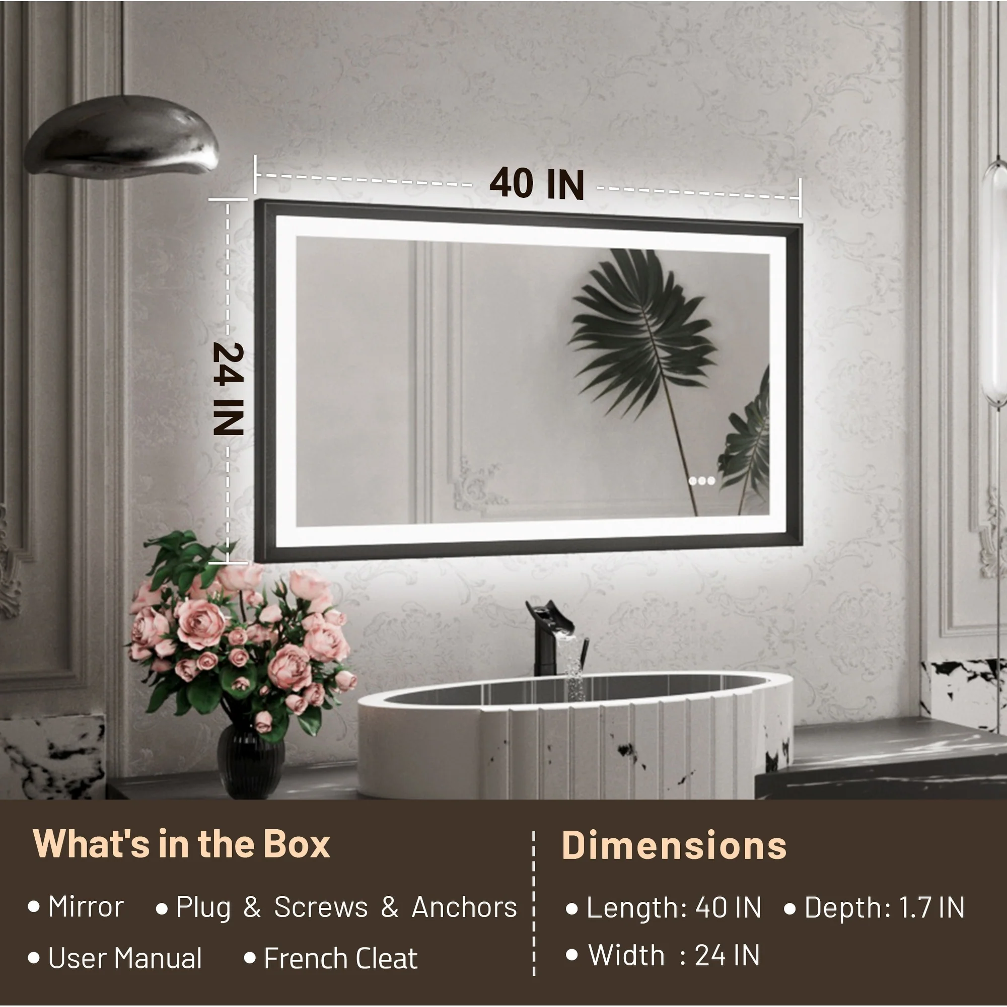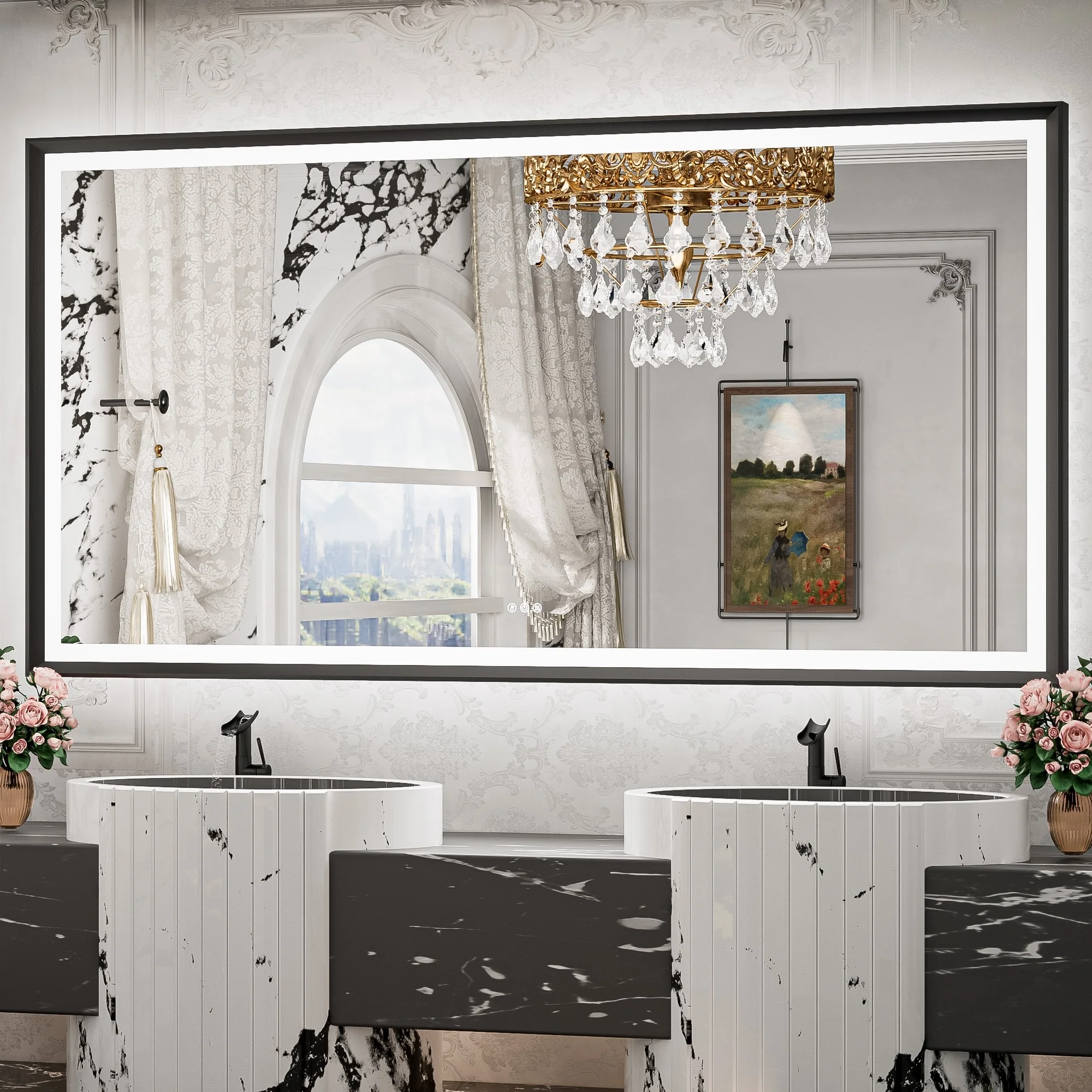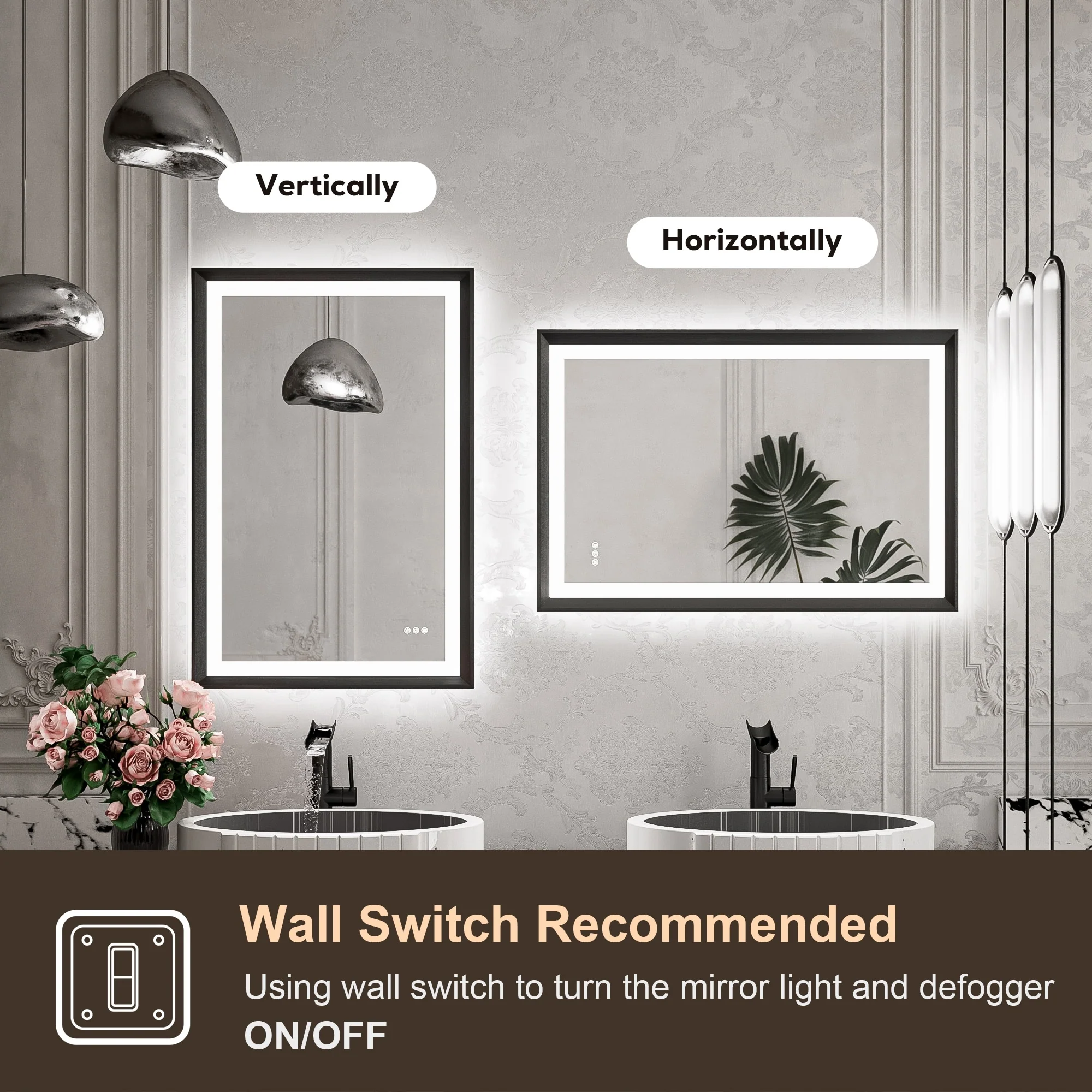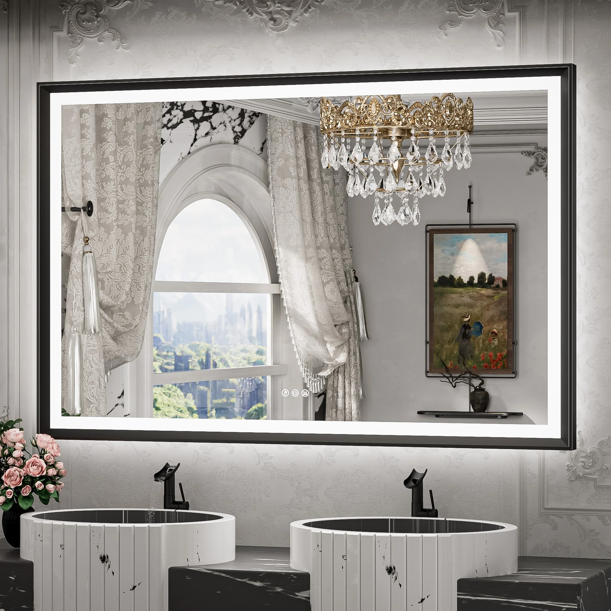 TETOTE LED Frontlit & Backlit Bathroom Vanity Wall Mirror, Metal Frame, Anti Fog, Dimmable