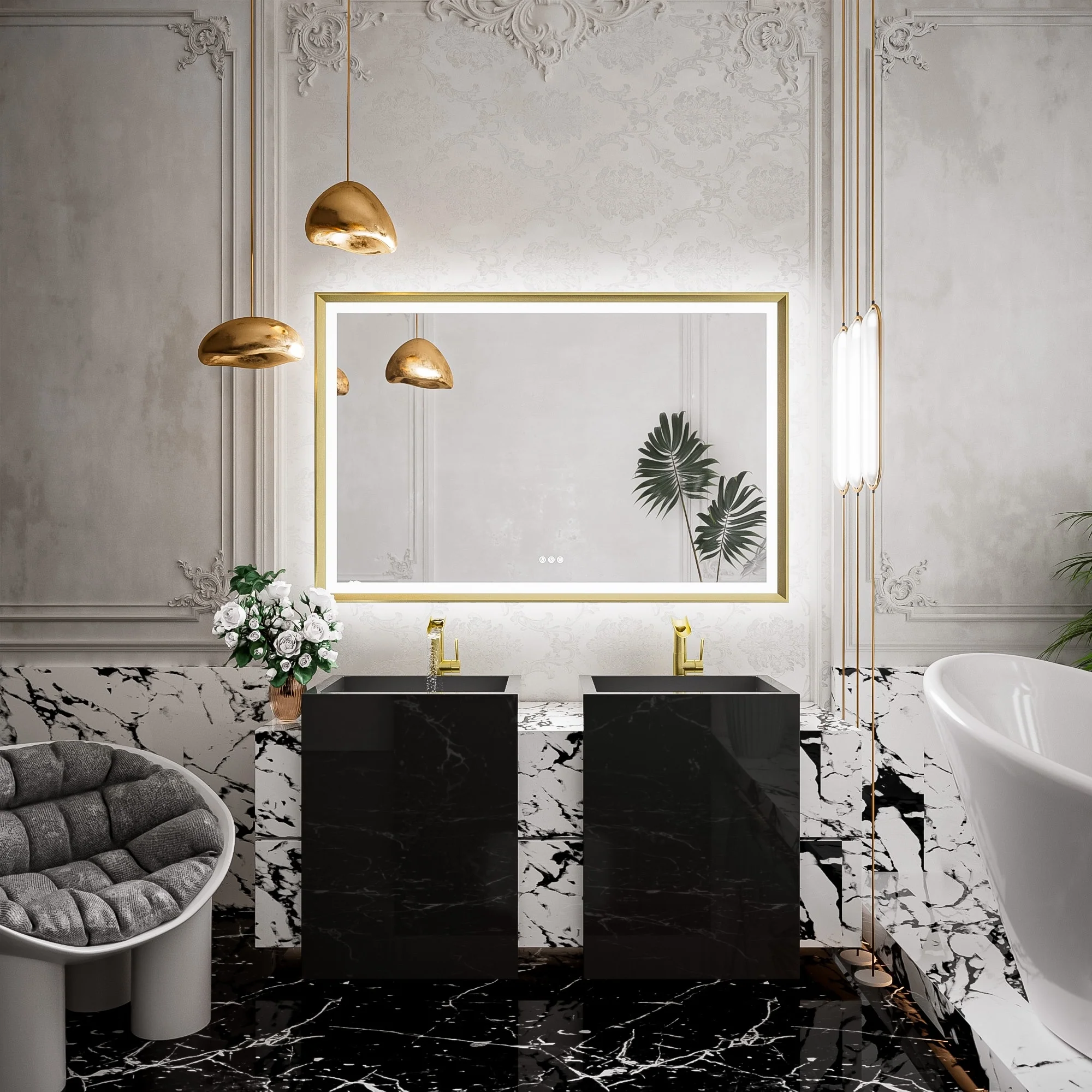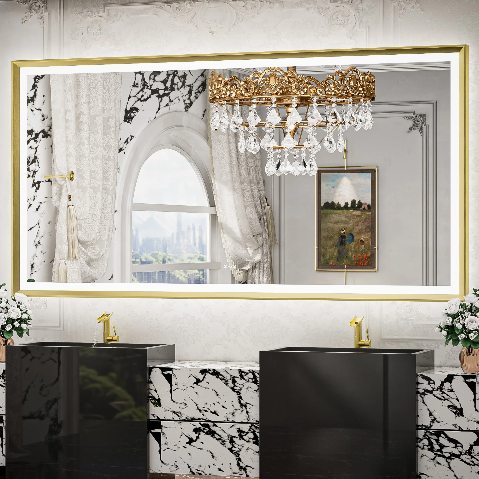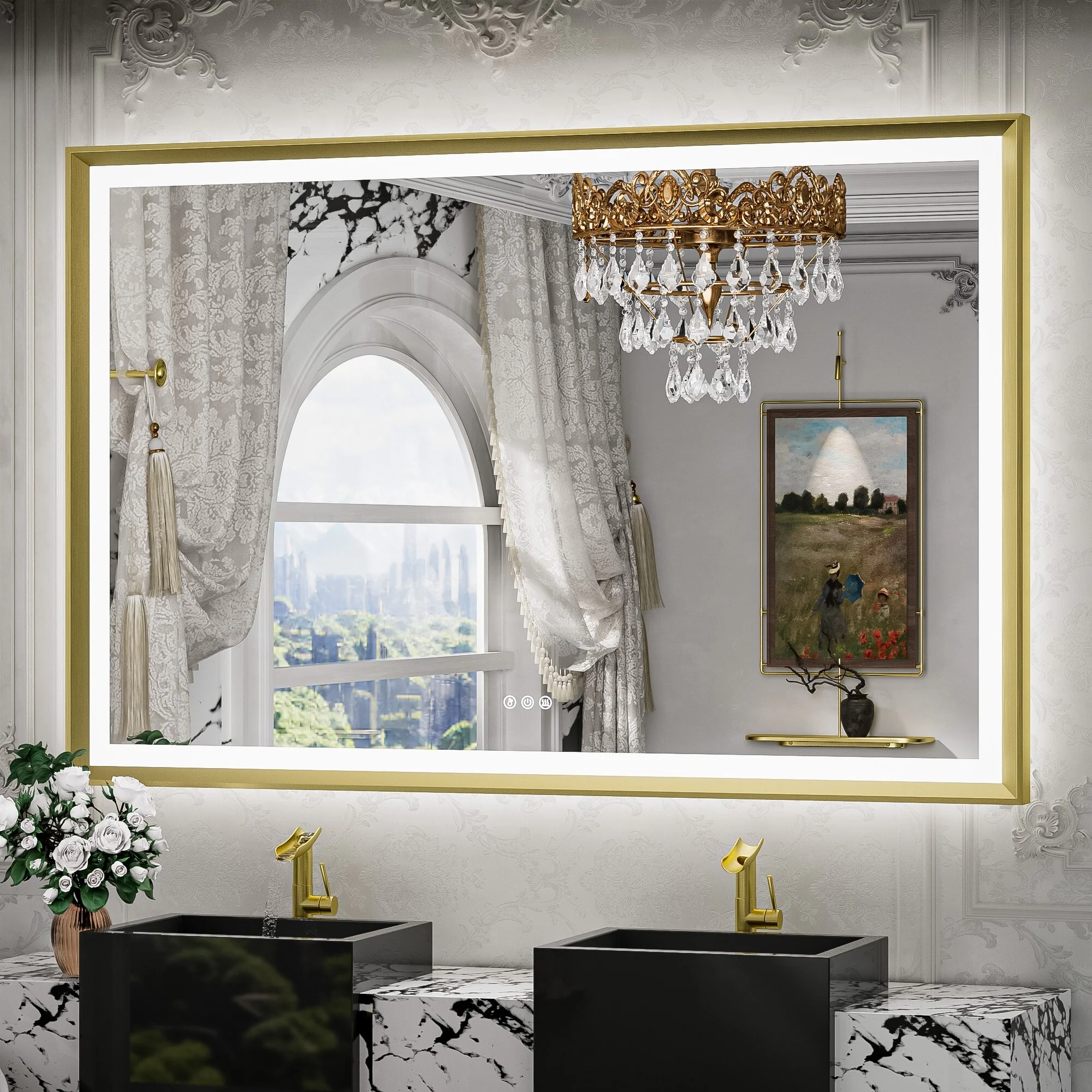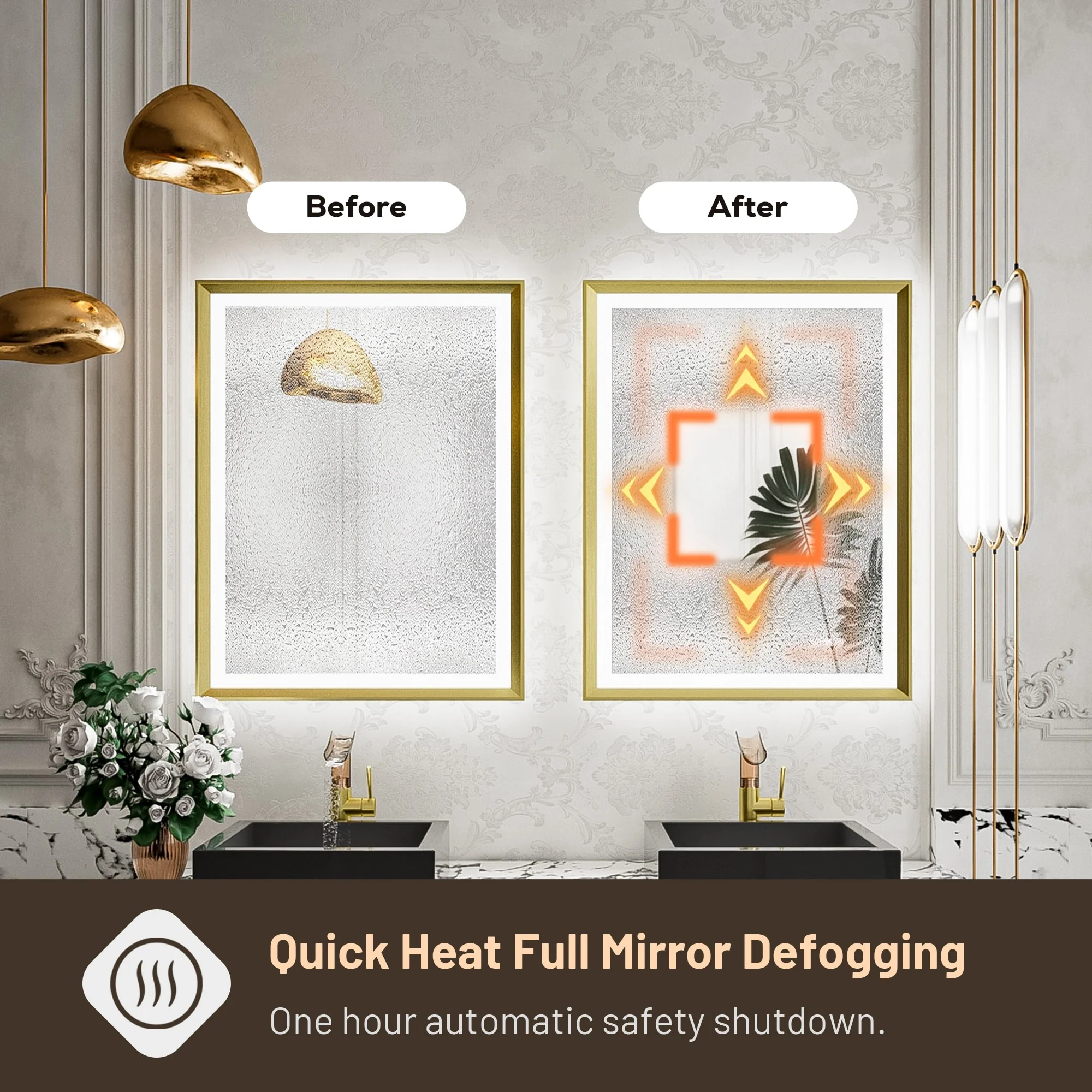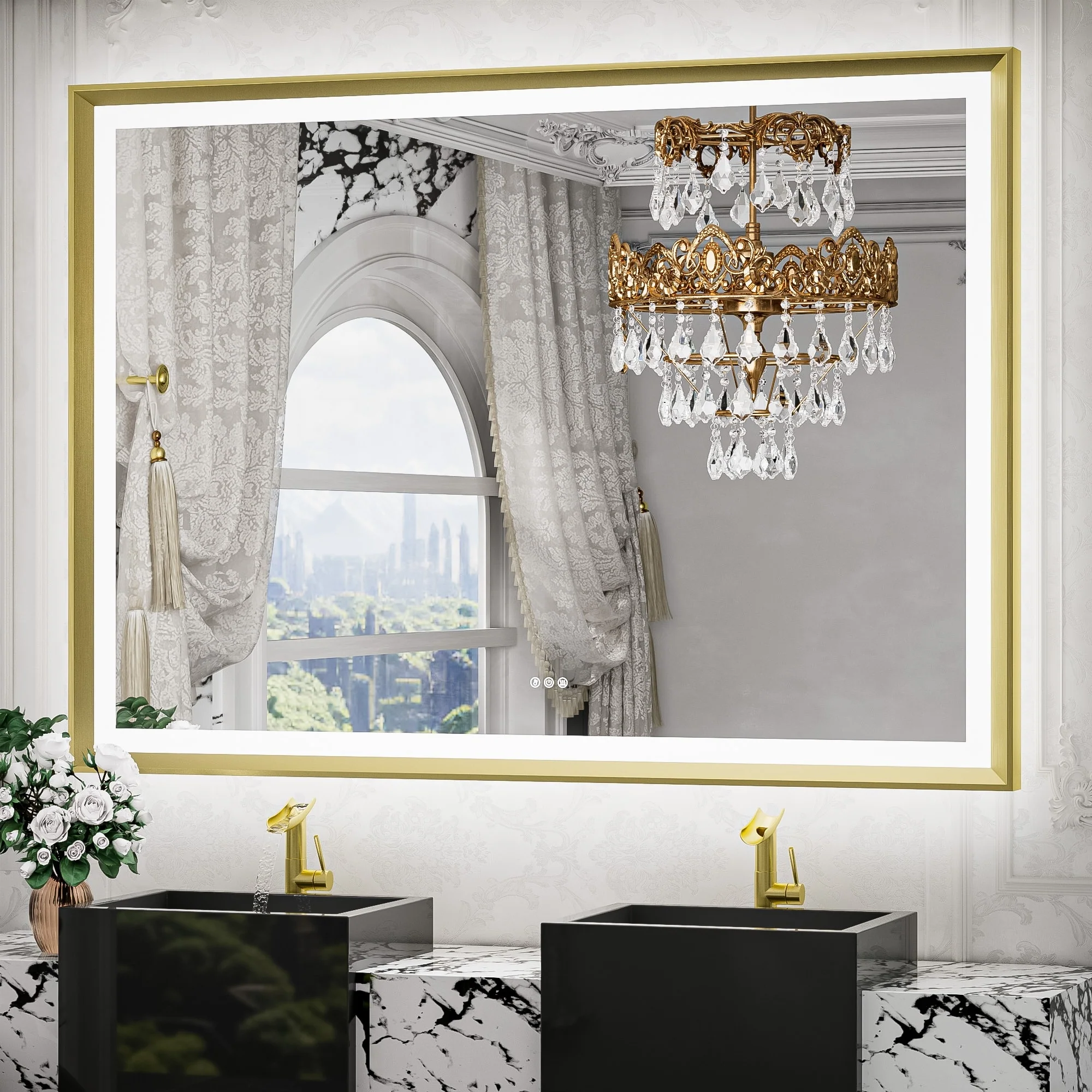 TETOTE LED Frontlit & Backlit Bathroom Vanity Wall Mirror, Metal Frame, Anti Fog, Dimmable