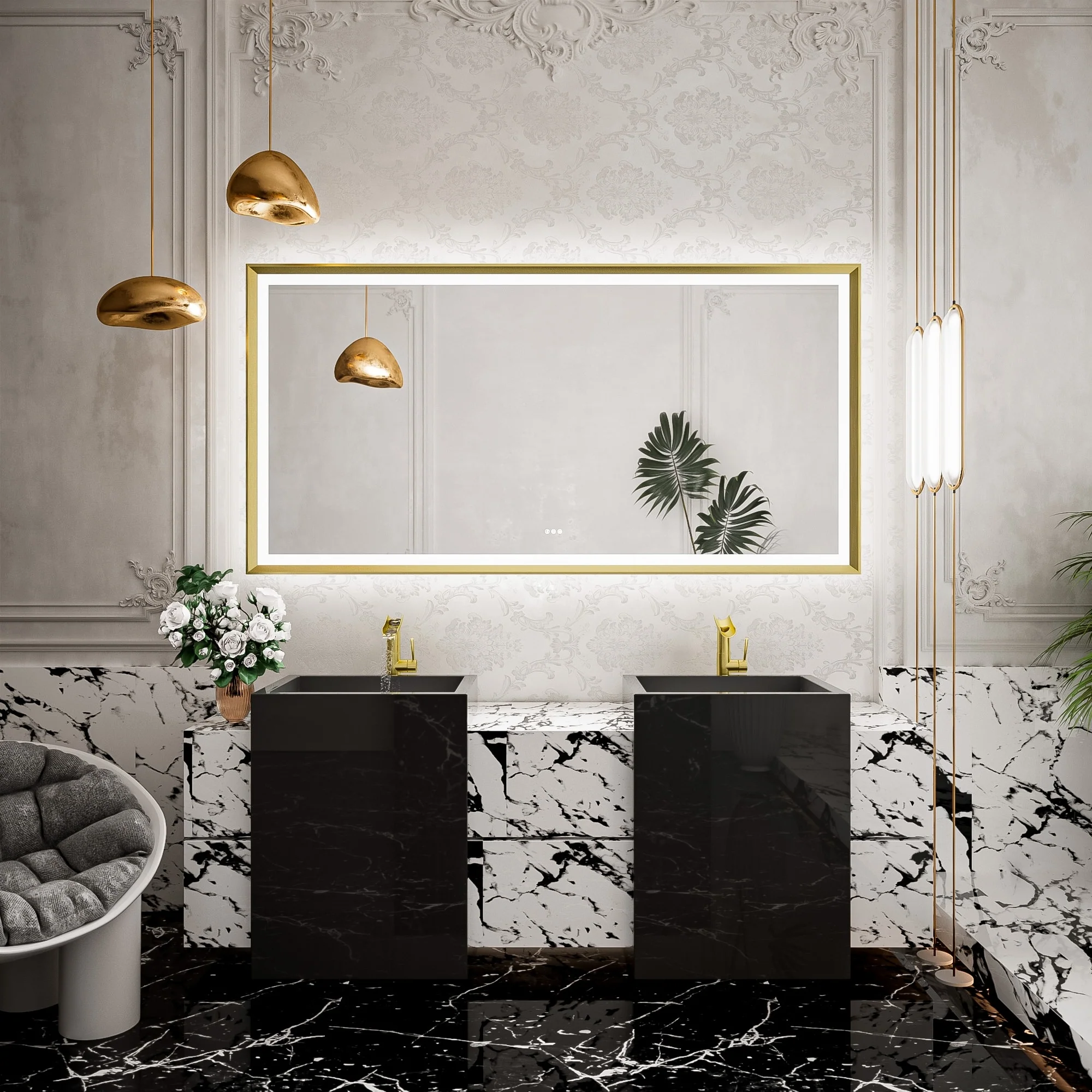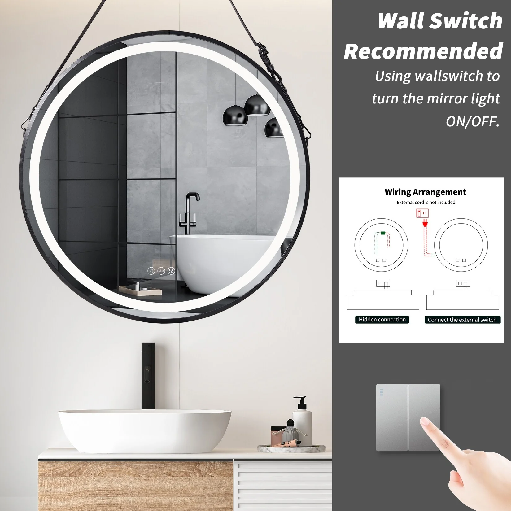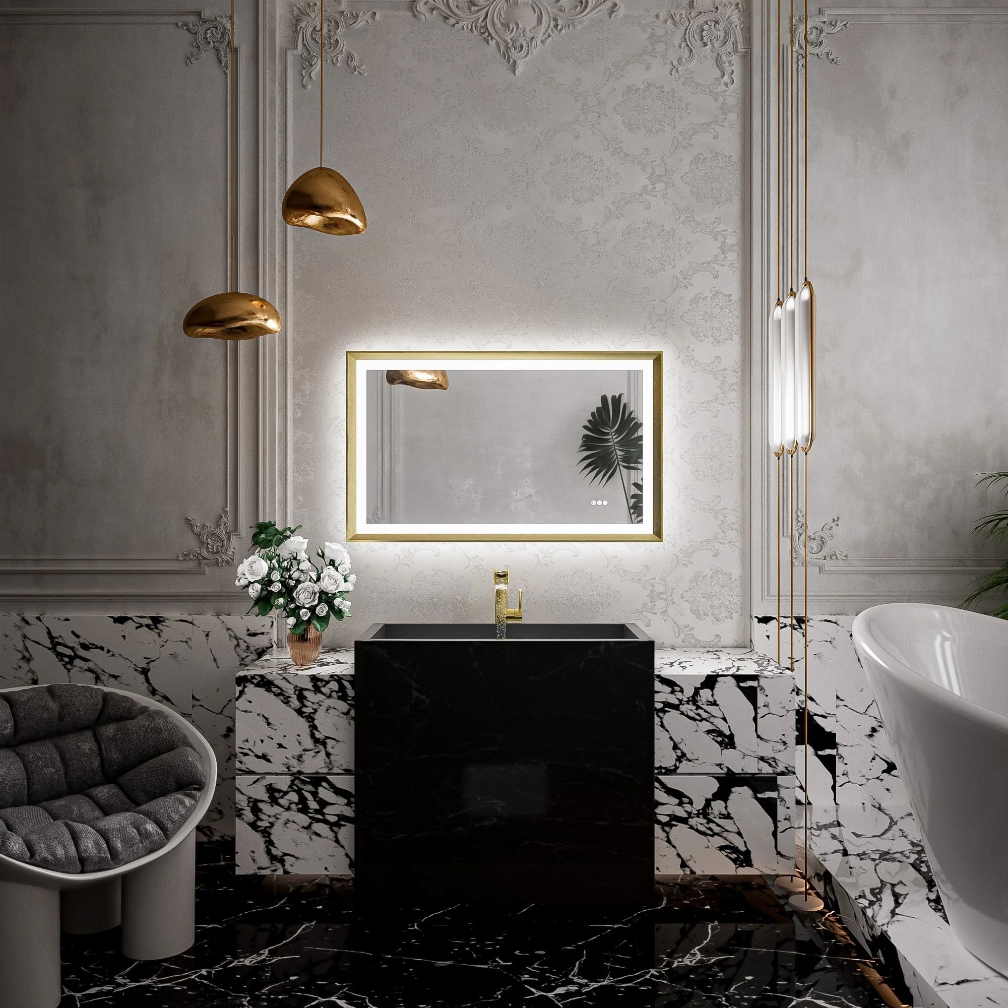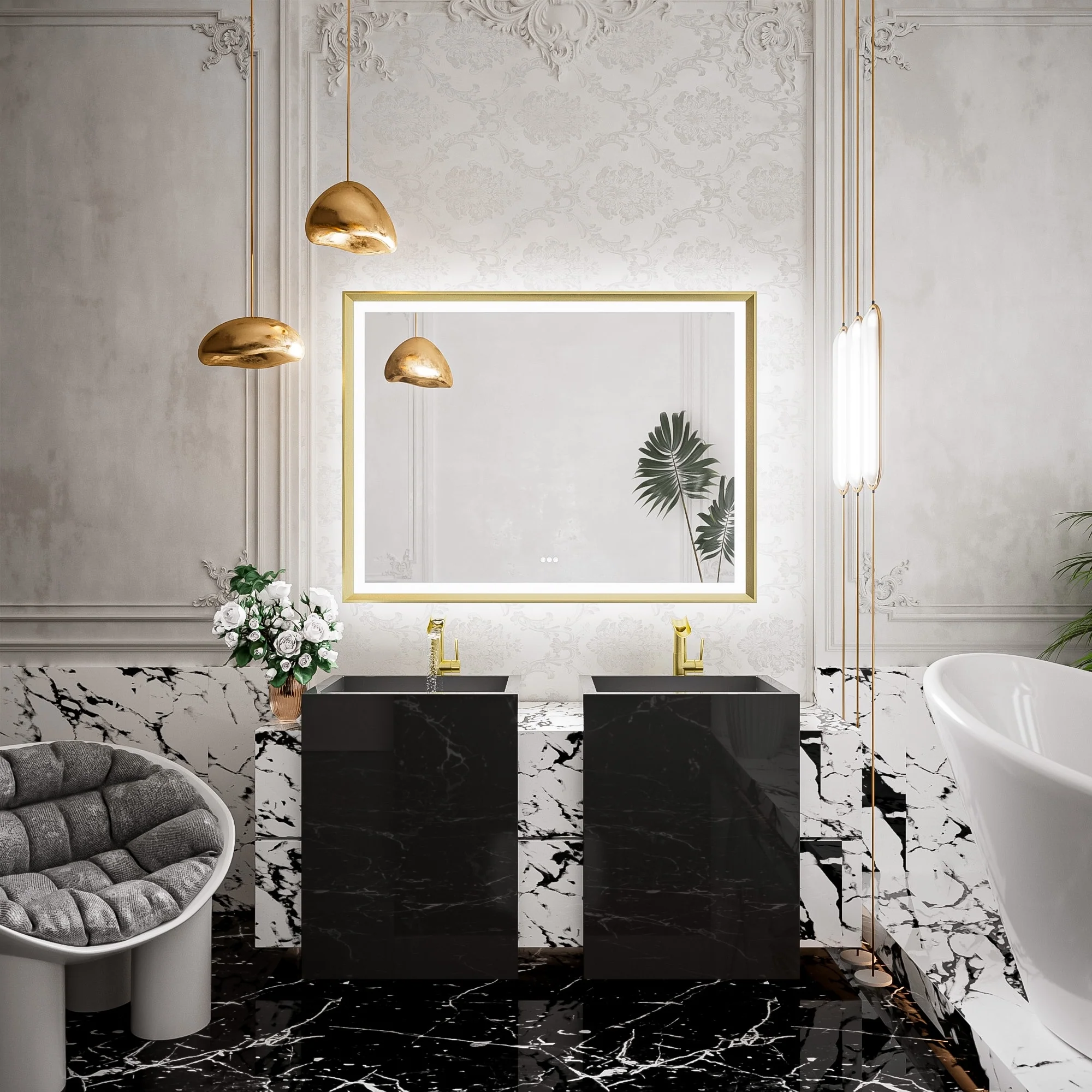 TETOTE LED Frontlit & Backlit Bathroom Vanity Wall Mirror, Metal Frame, Anti Fog, Dimmable