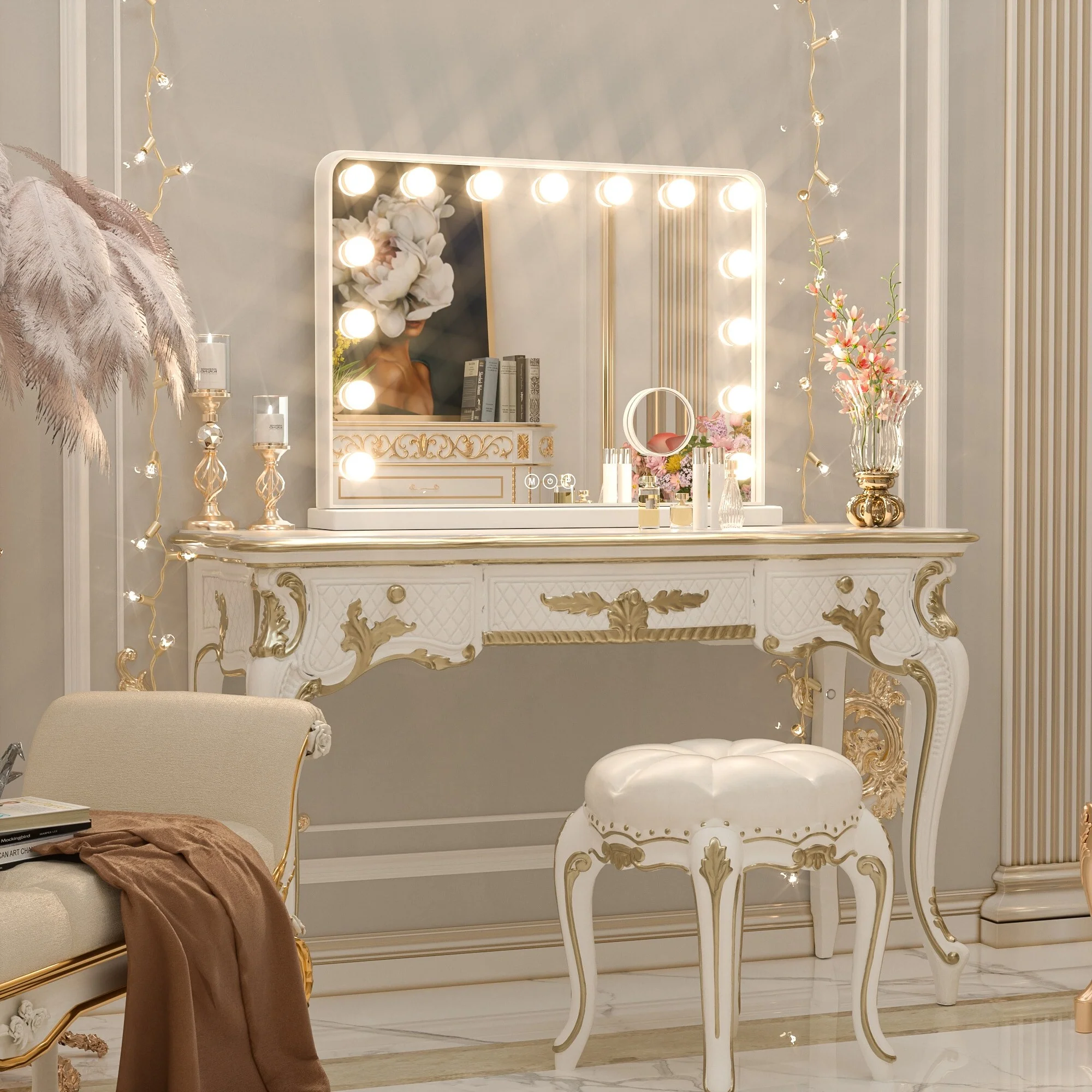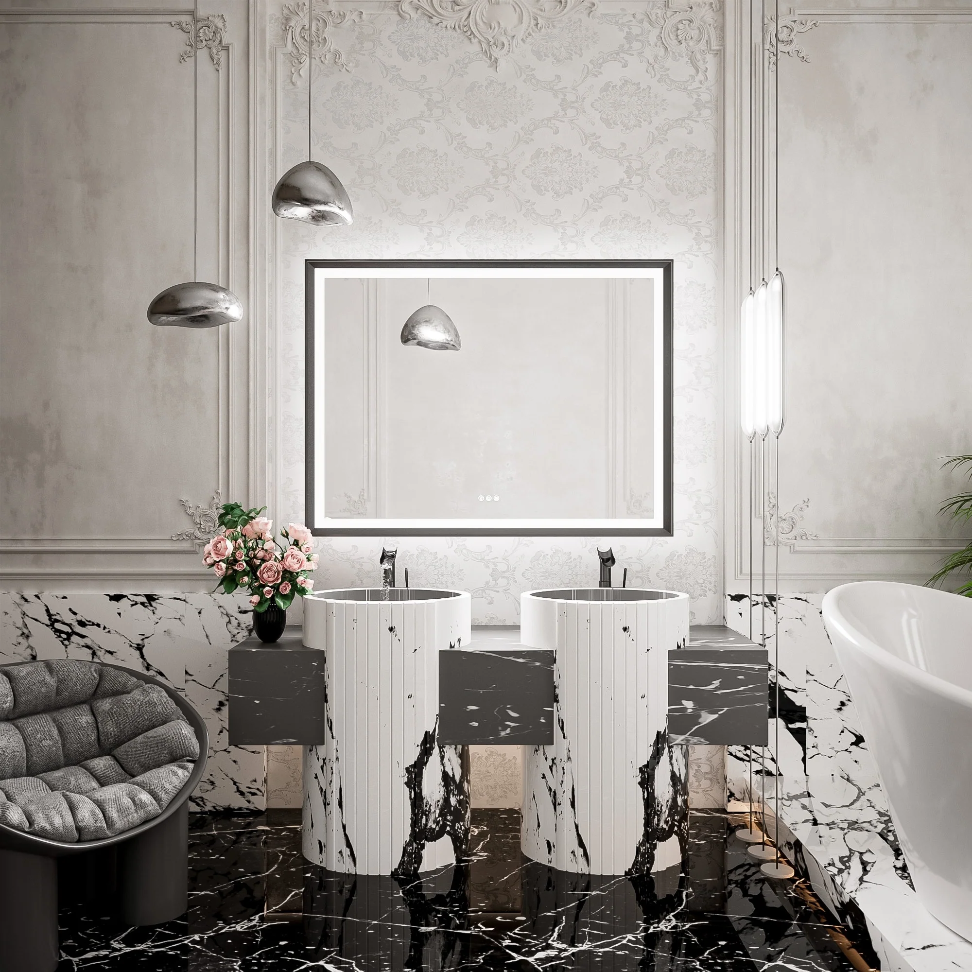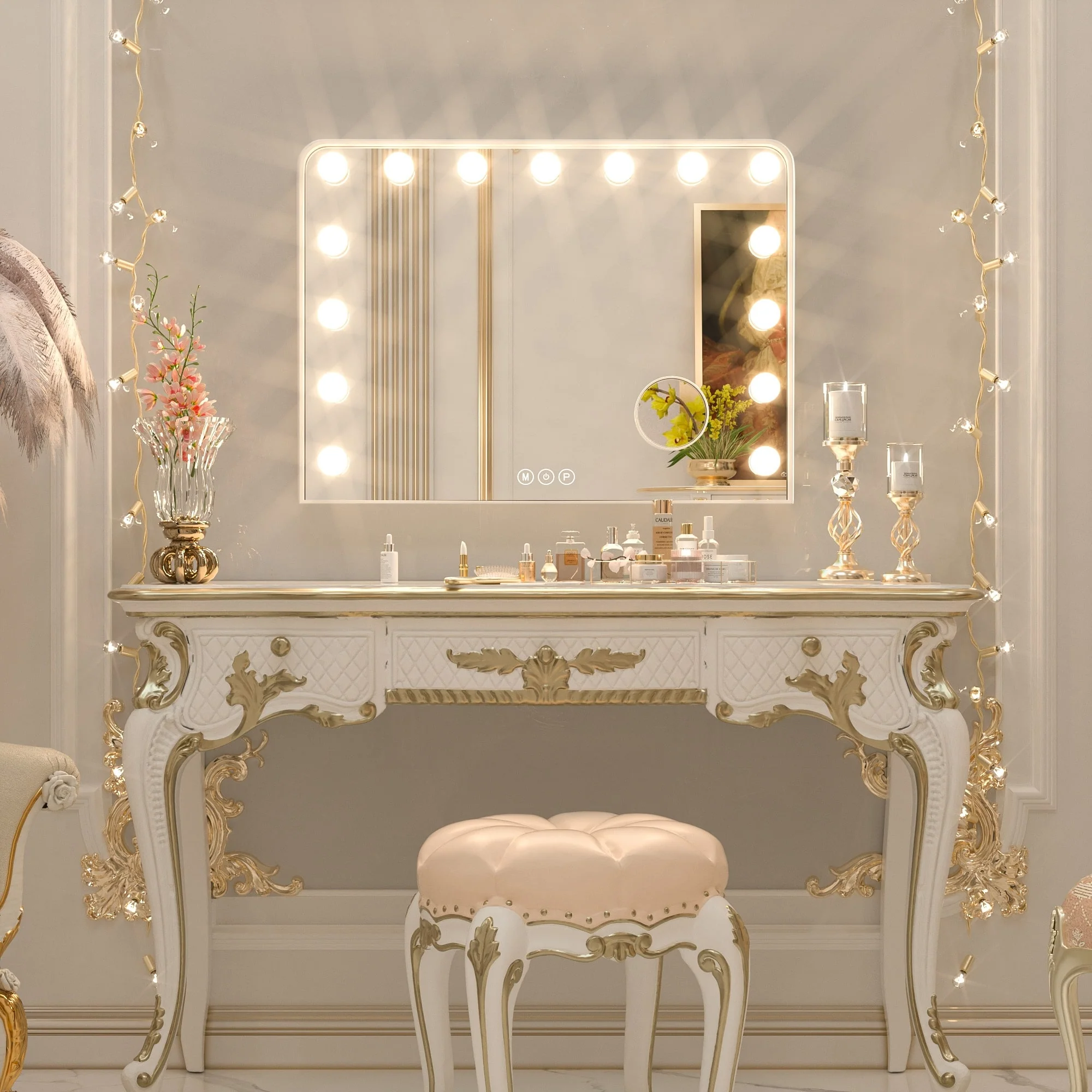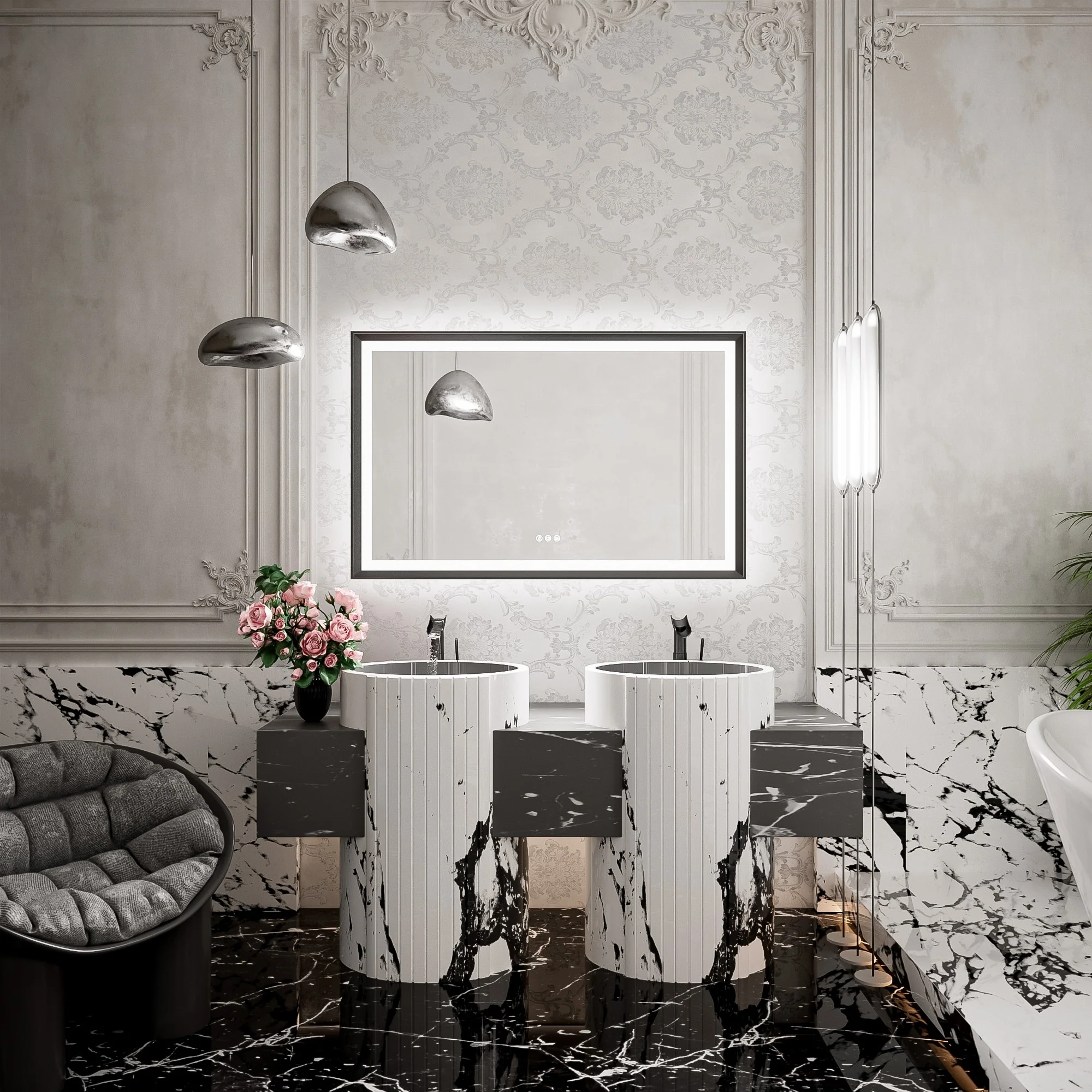 TETOTE LED Frontlit & Backlit Bathroom Vanity Wall Mirror, Metal Frame, Anti Fog, Dimmable