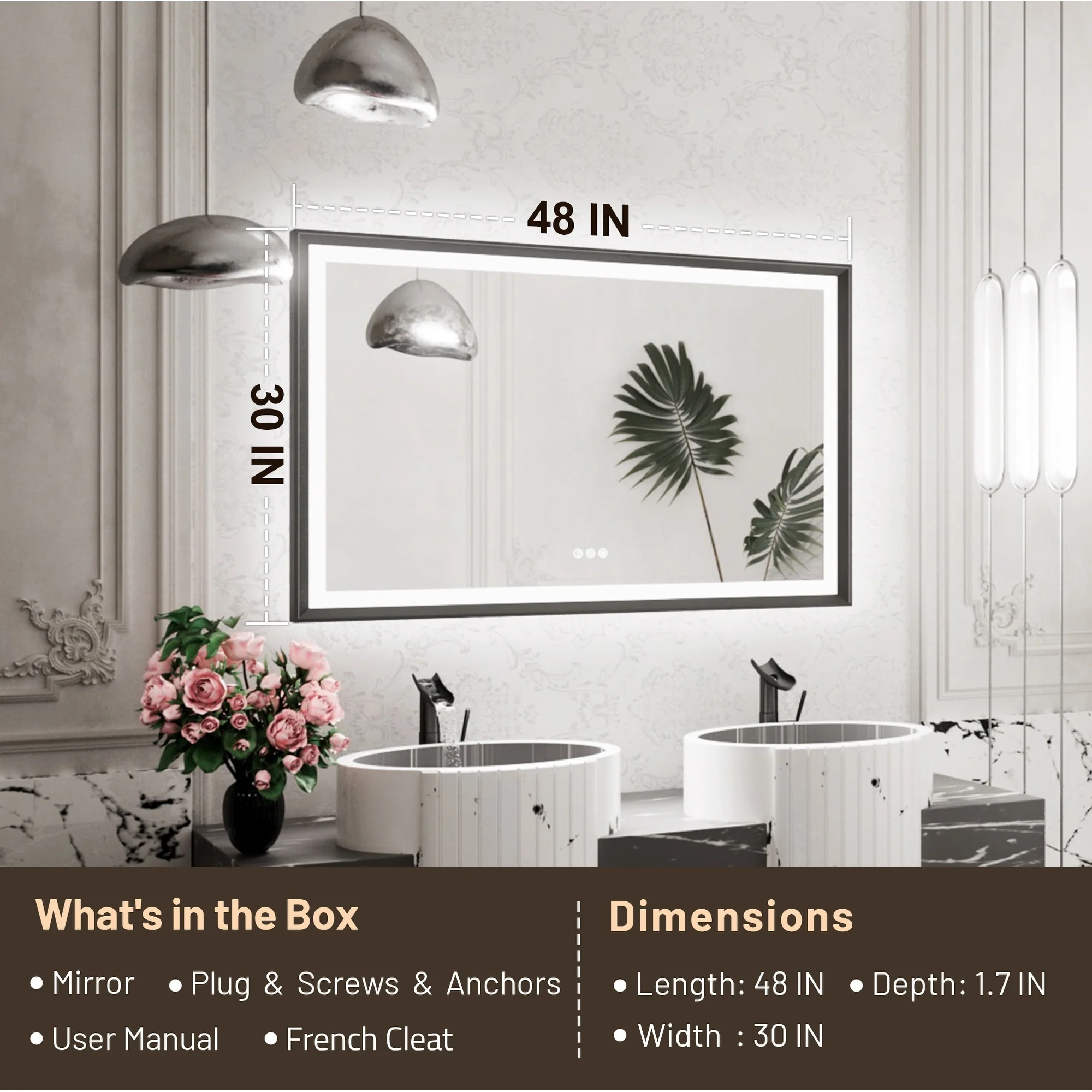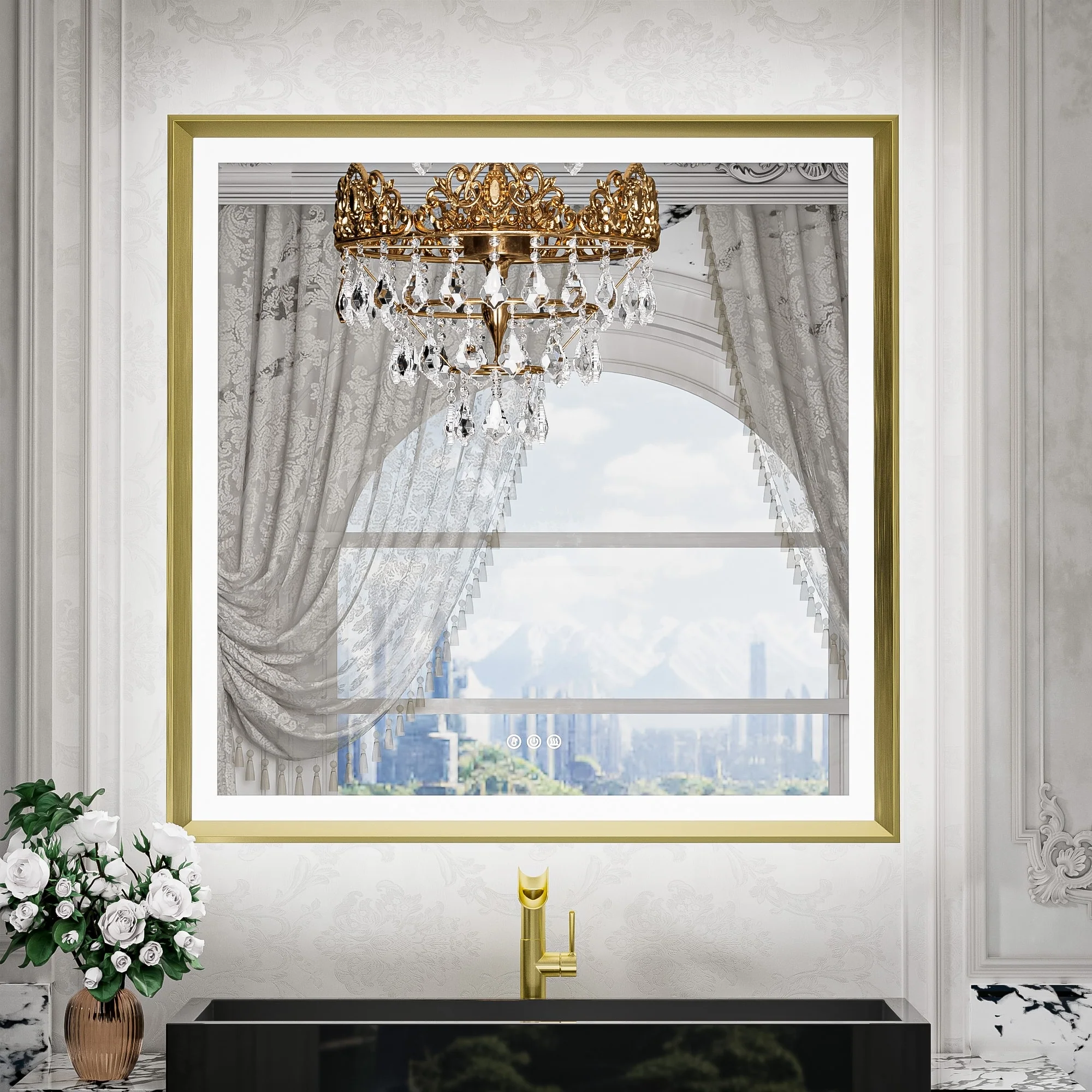AQUADOM Soho 30" Led Lighted Mirror for Bathroom Defogger, Backlit and Front-Lit - 30"x30"x1"