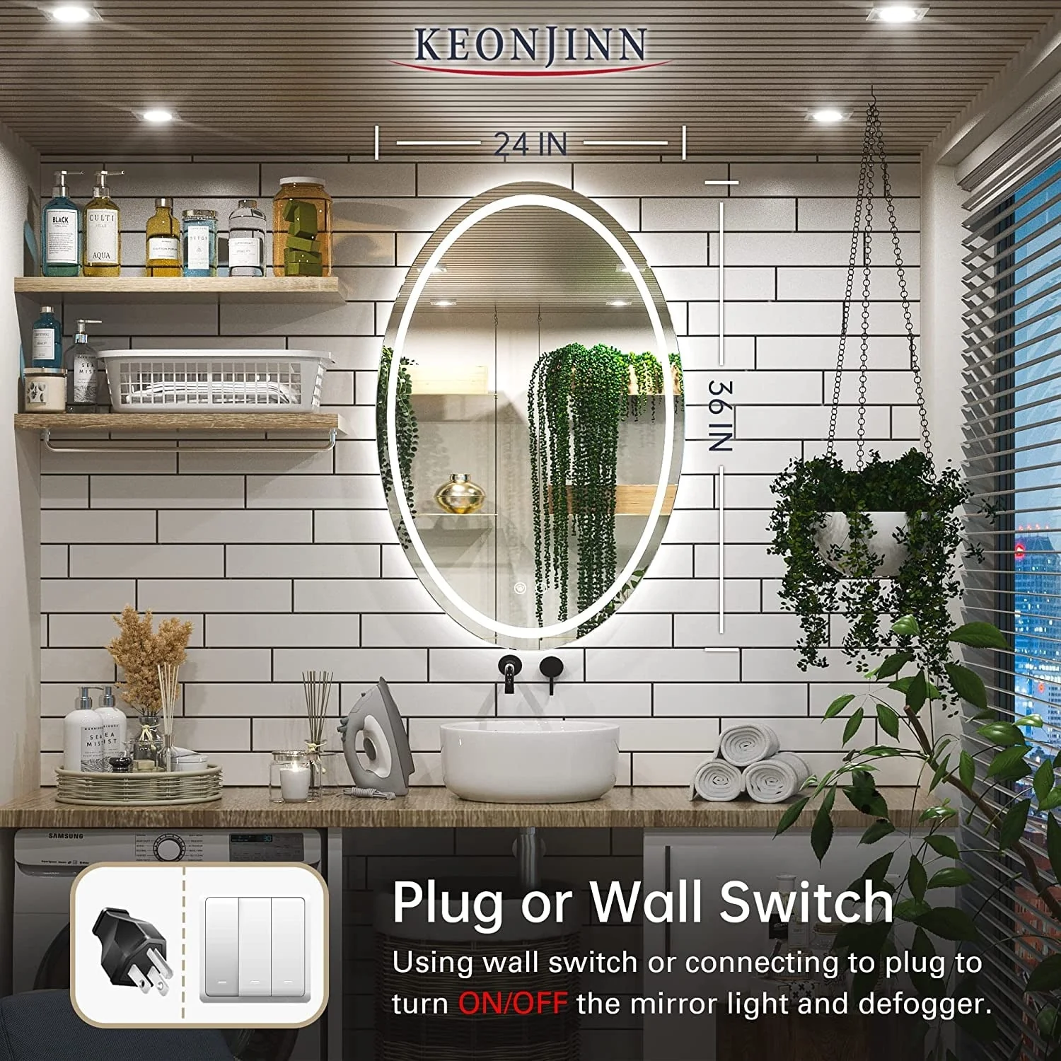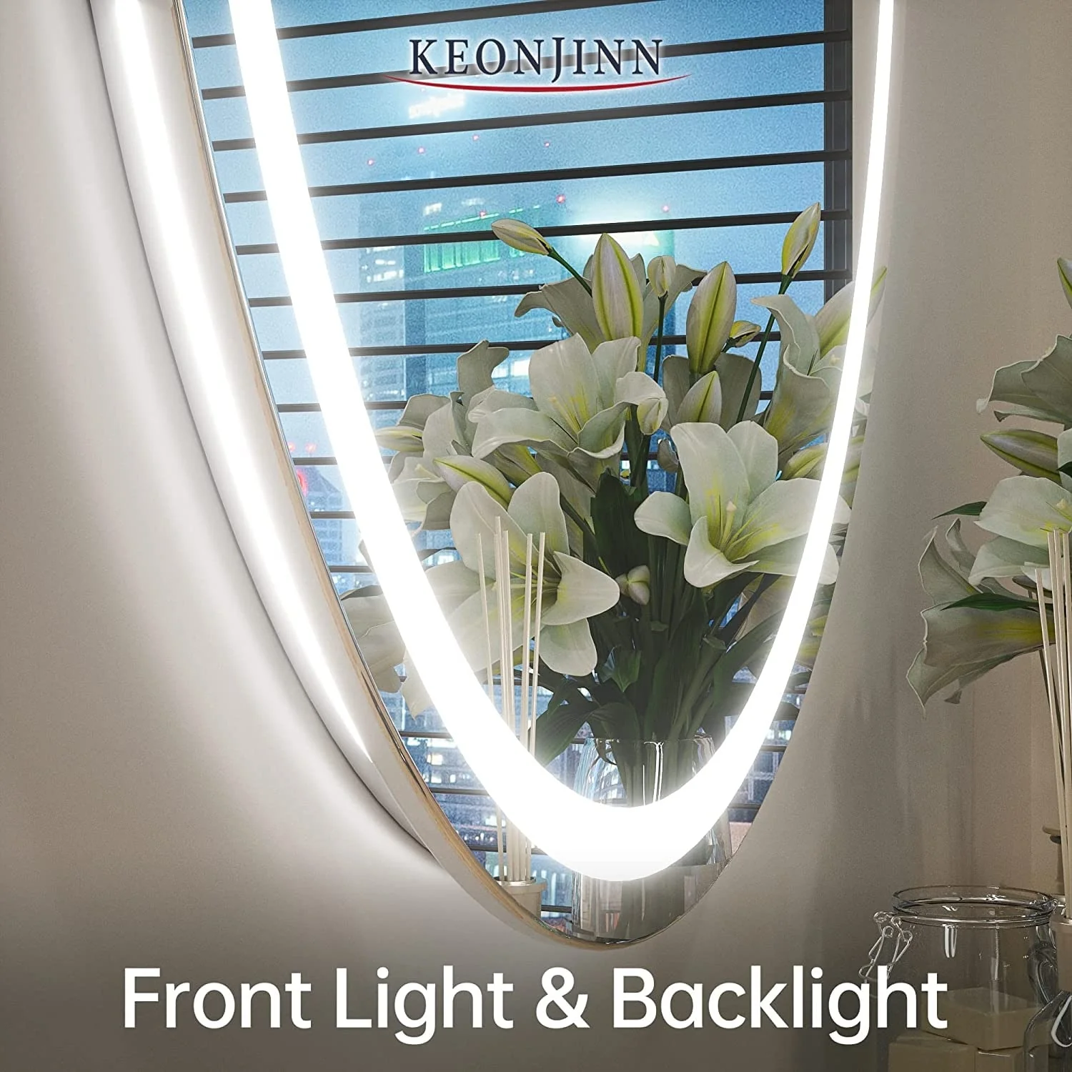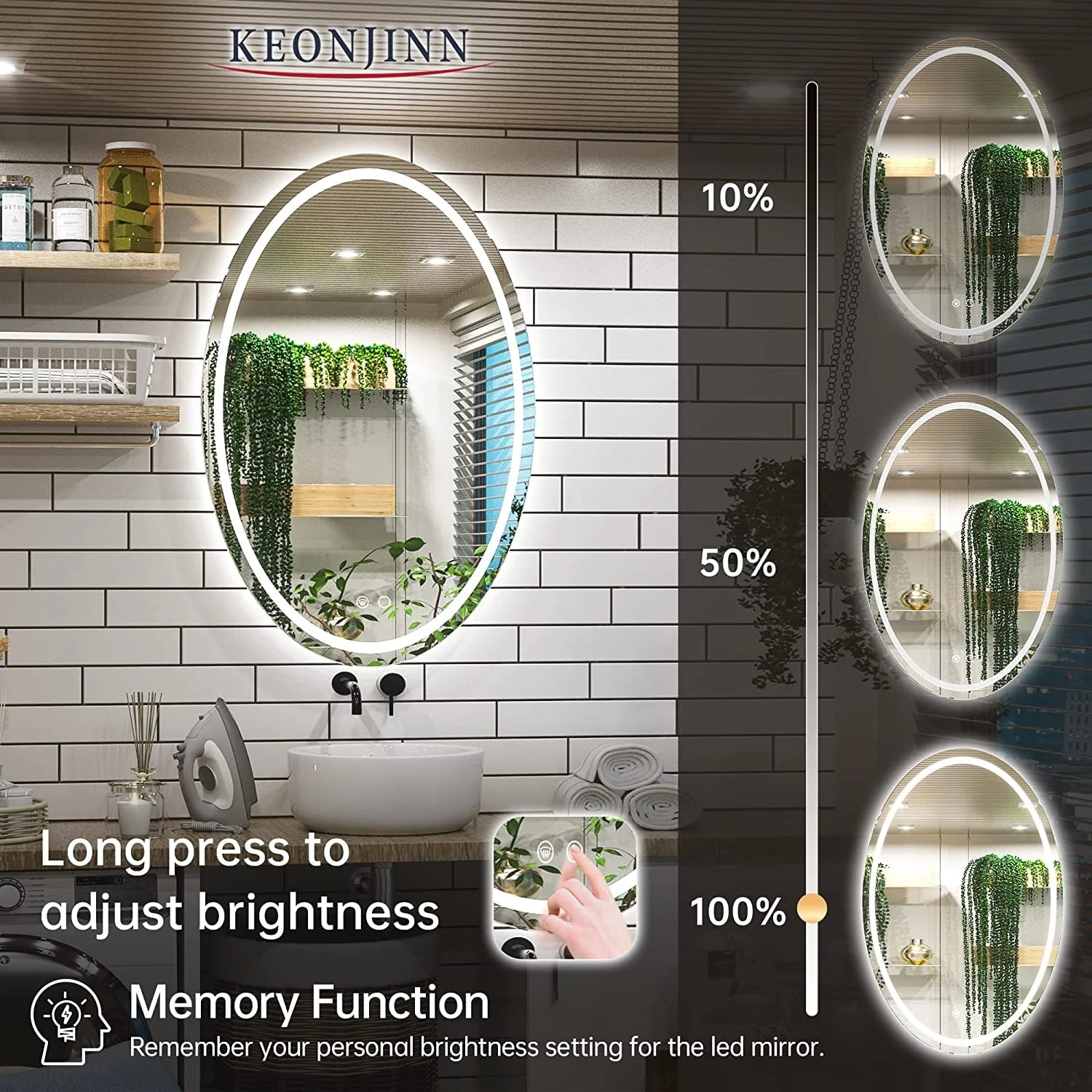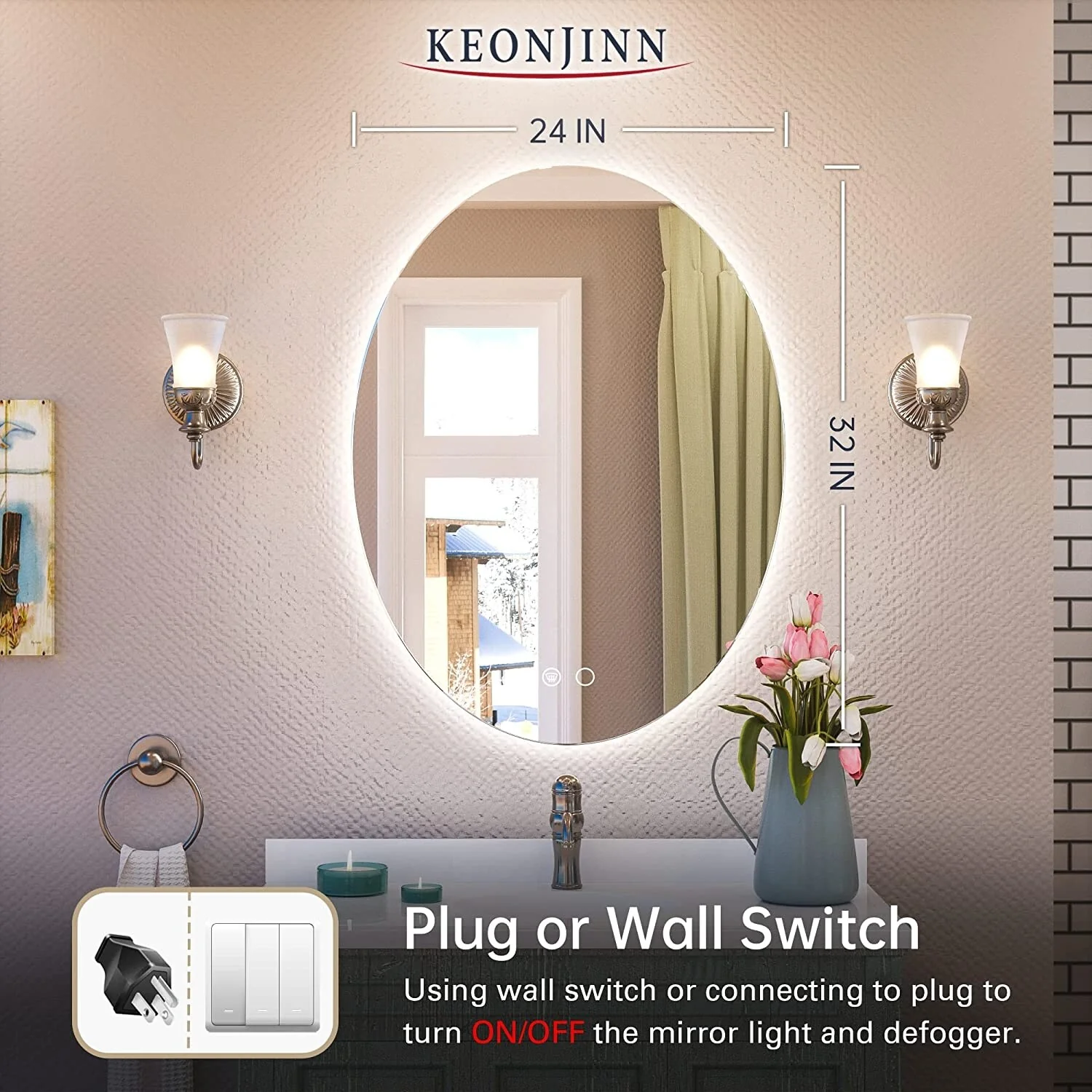 KEONJINN Oval Frameless Wall Mounted LED Bathroom Mirror Anti-Fog Dimmable