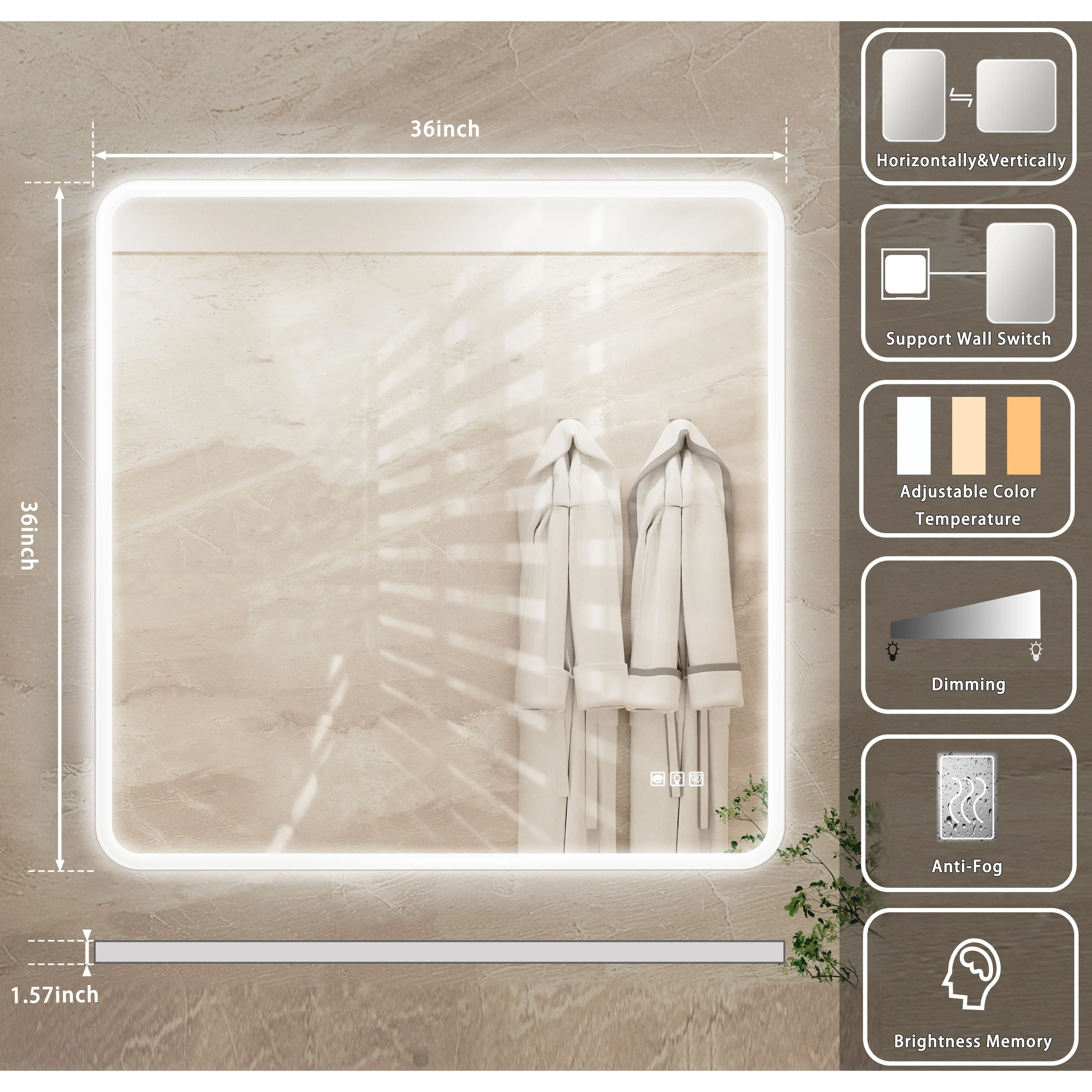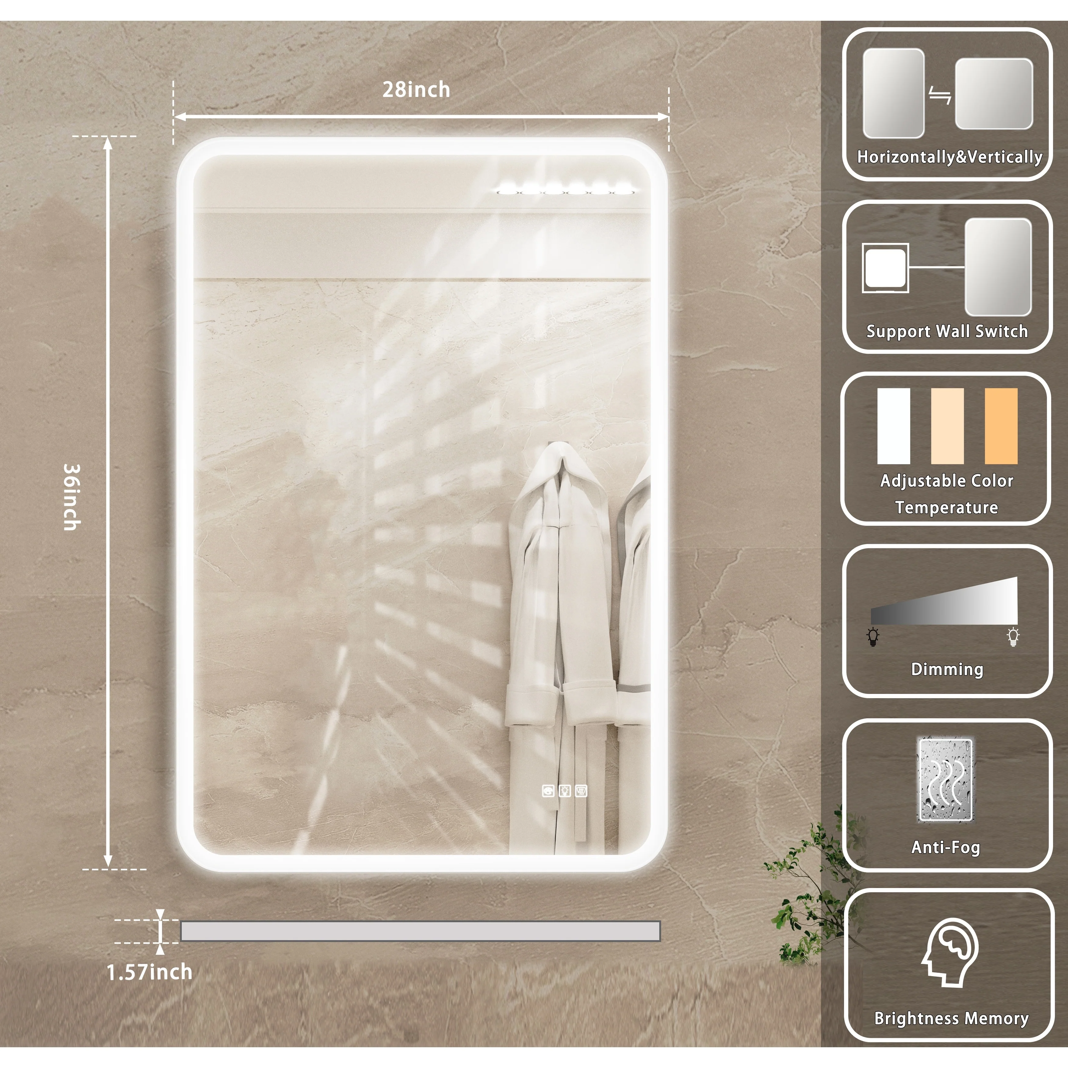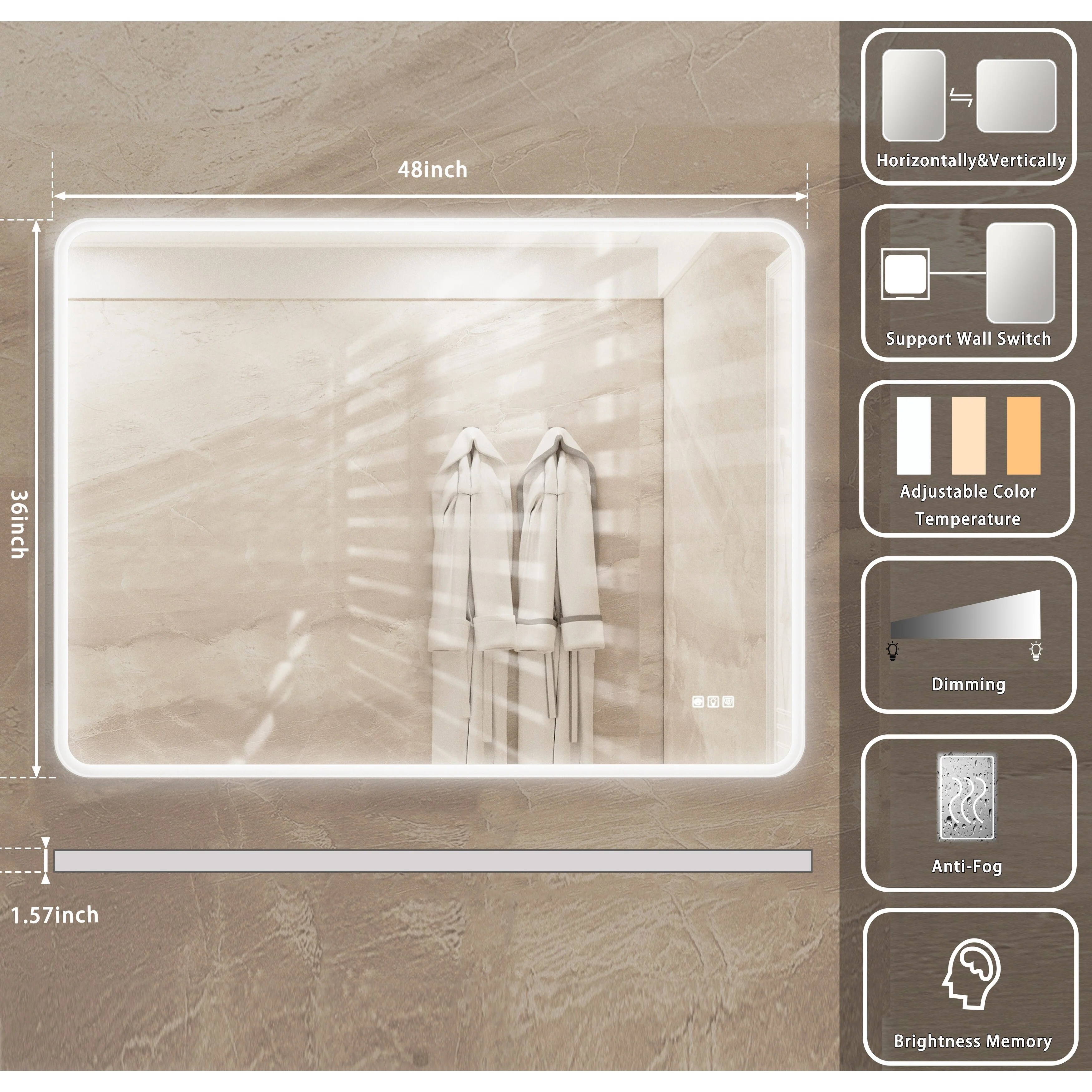 Fogless Color and Brightness Adjustable LED Mirror