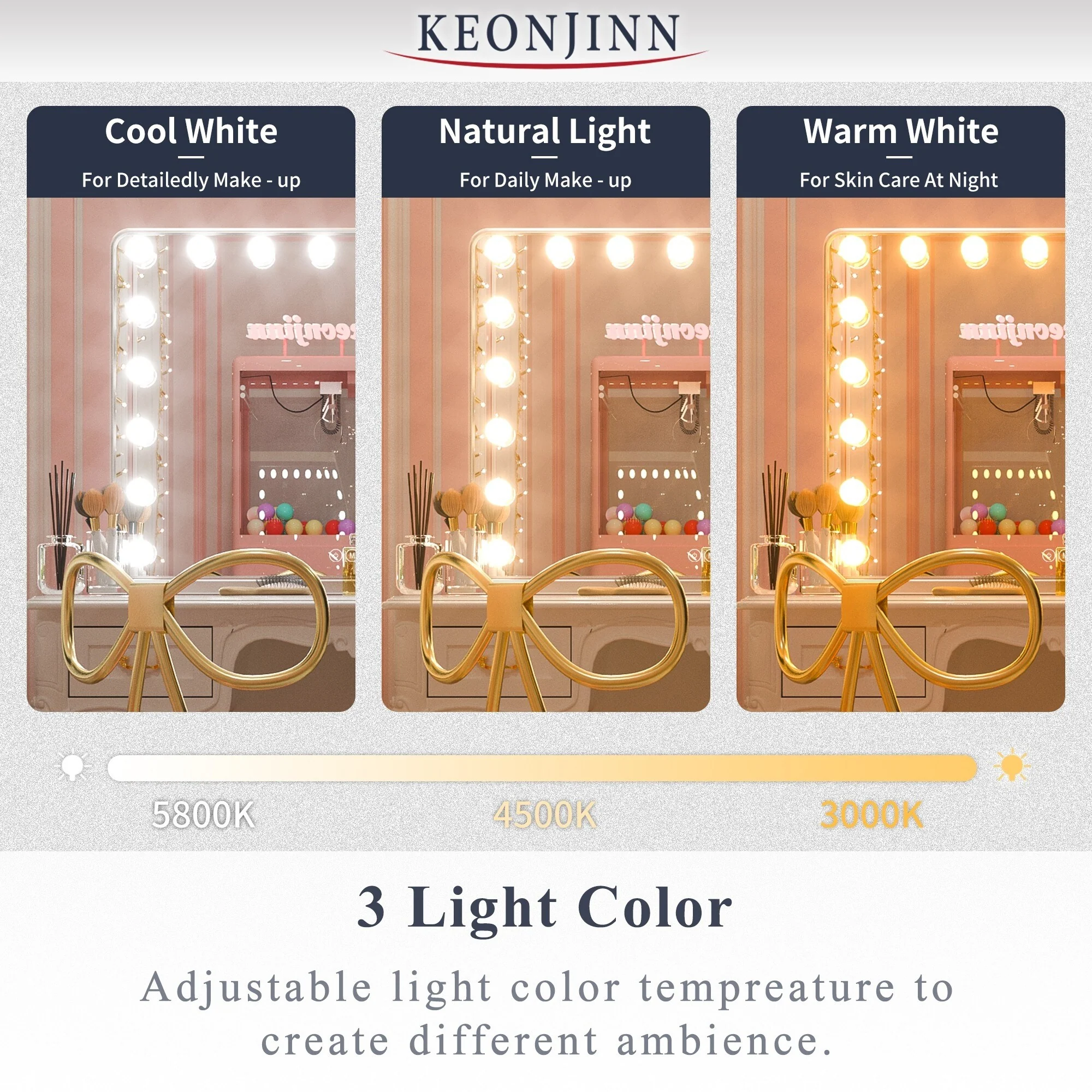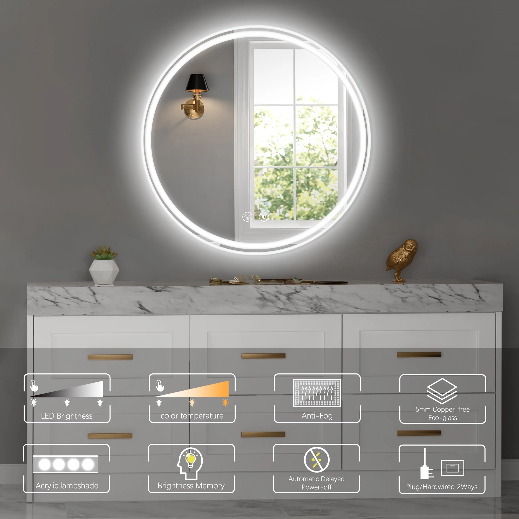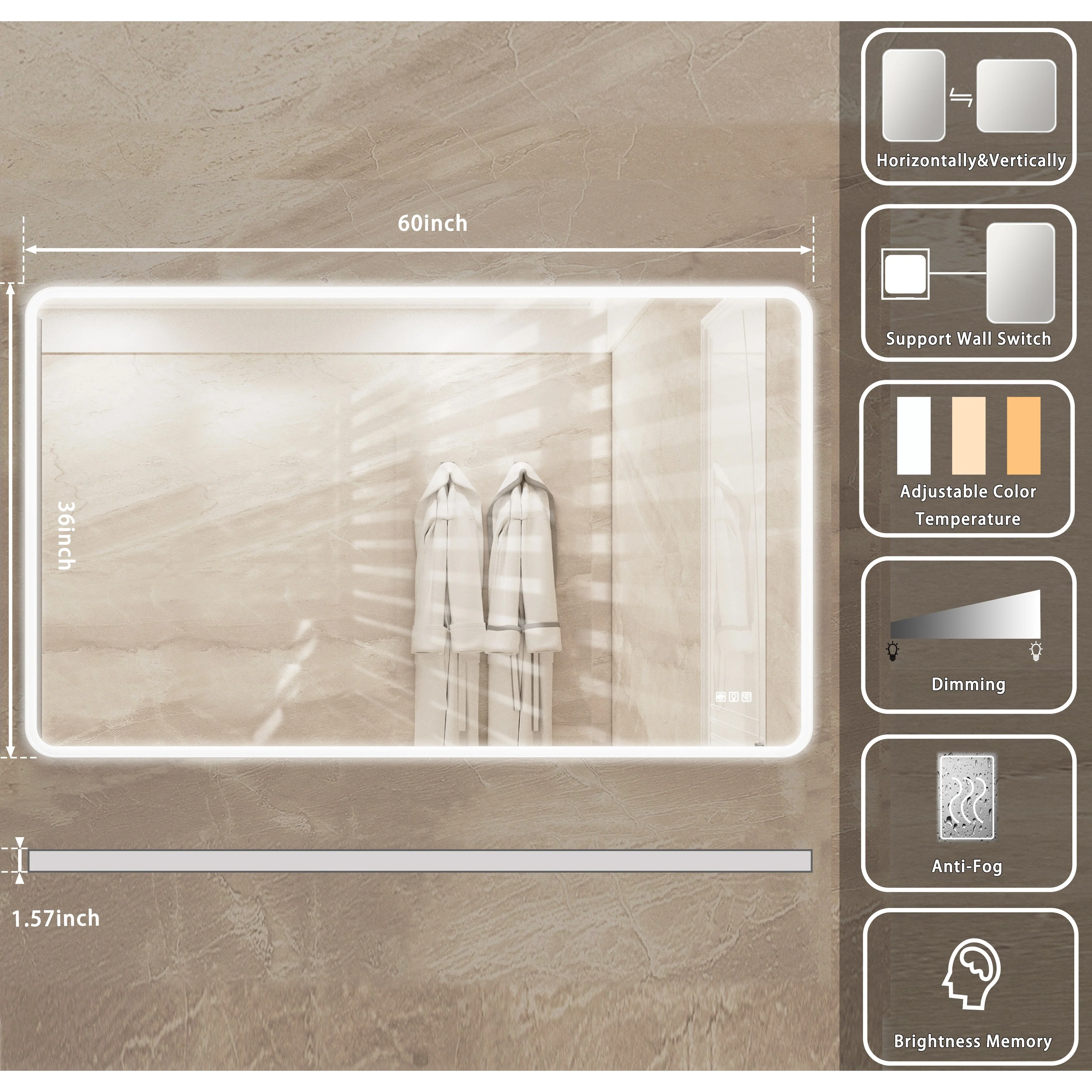 Fogless Color and Brightness Adjustable LED Mirror