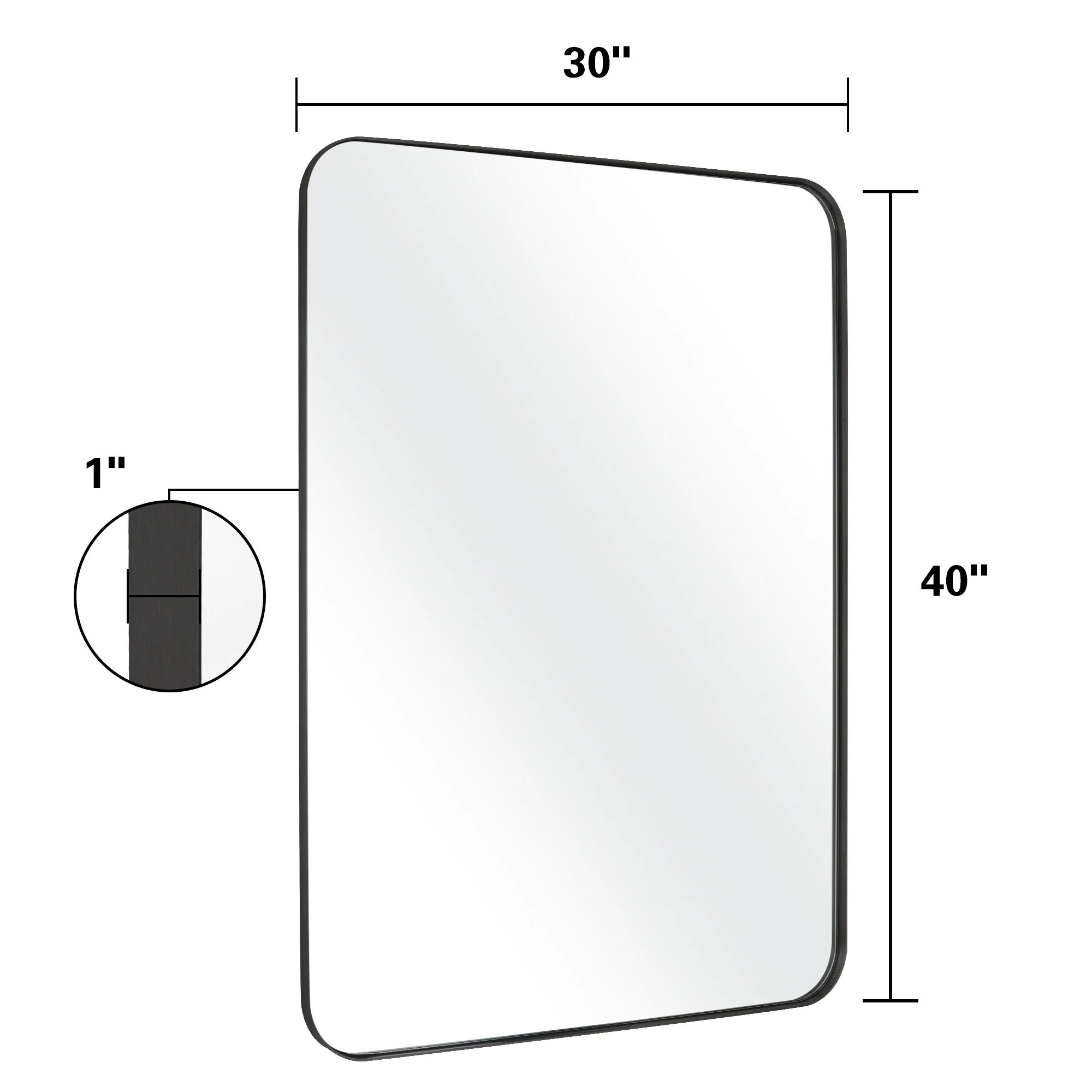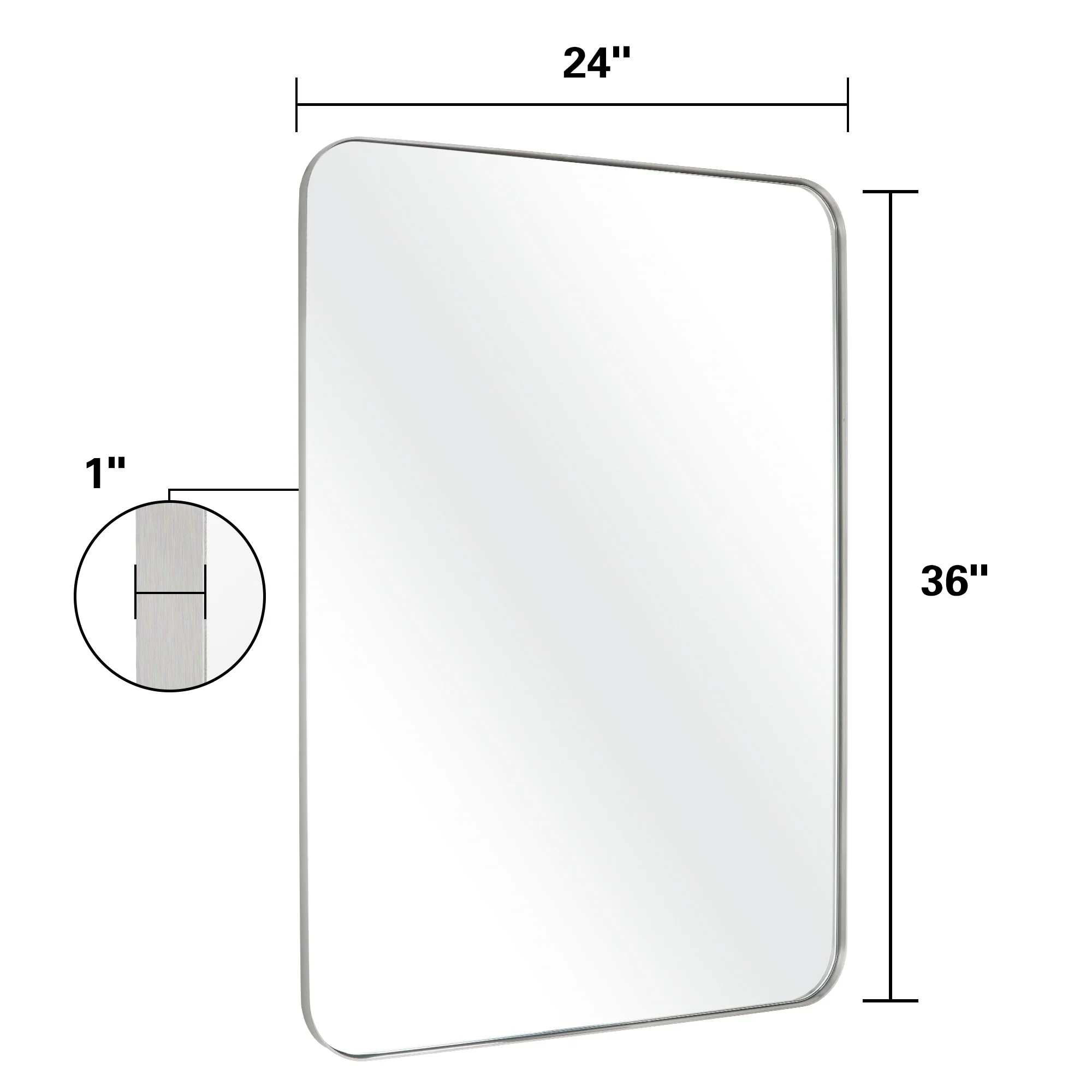 Glass Warehouse 40 in. H x 22 in. W Radius Corner Stainless Steel Framed Mirror