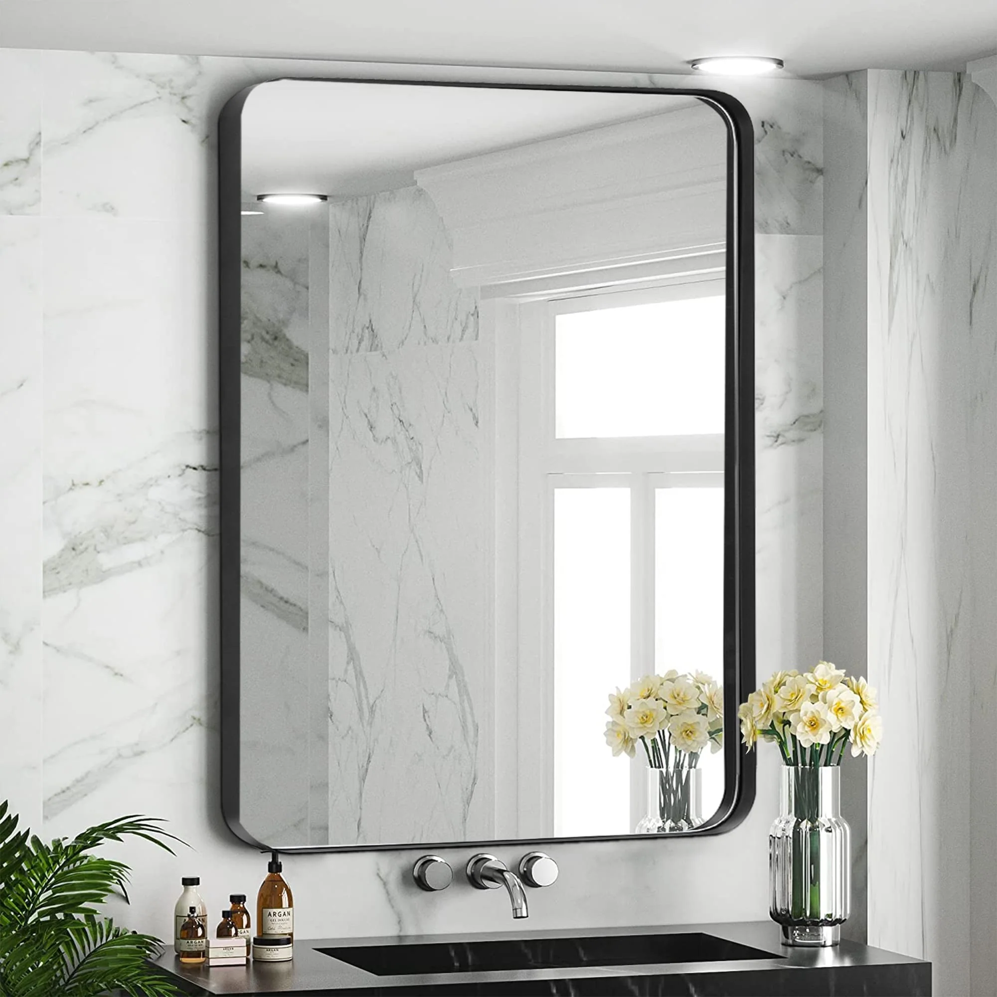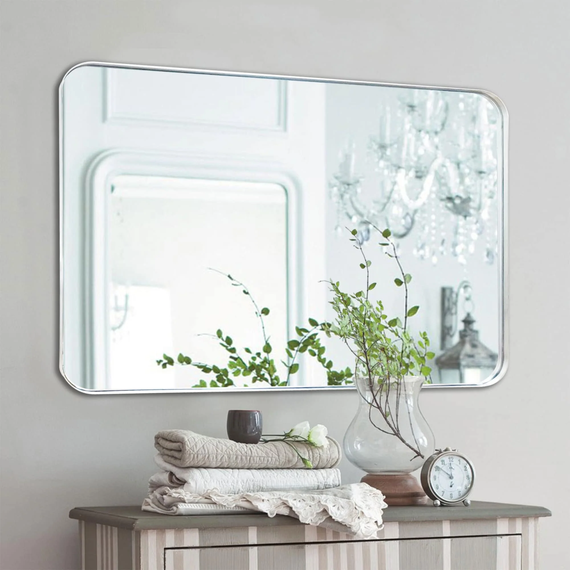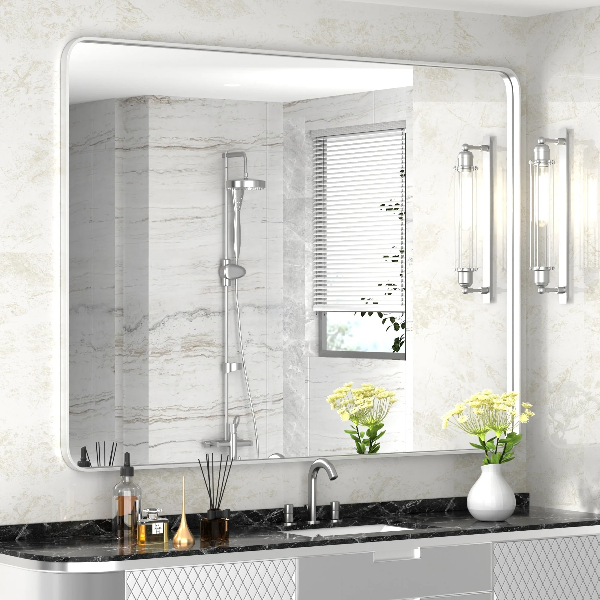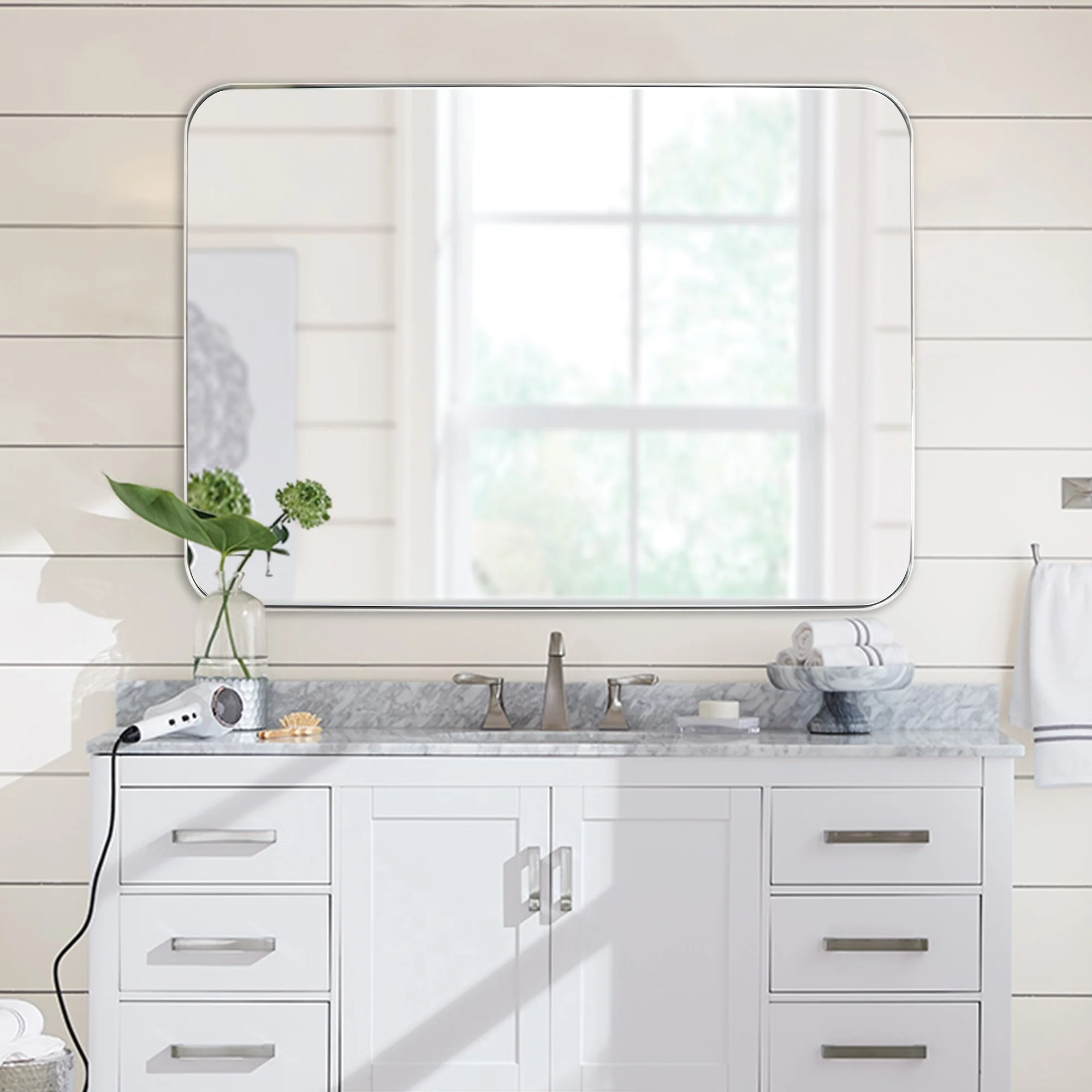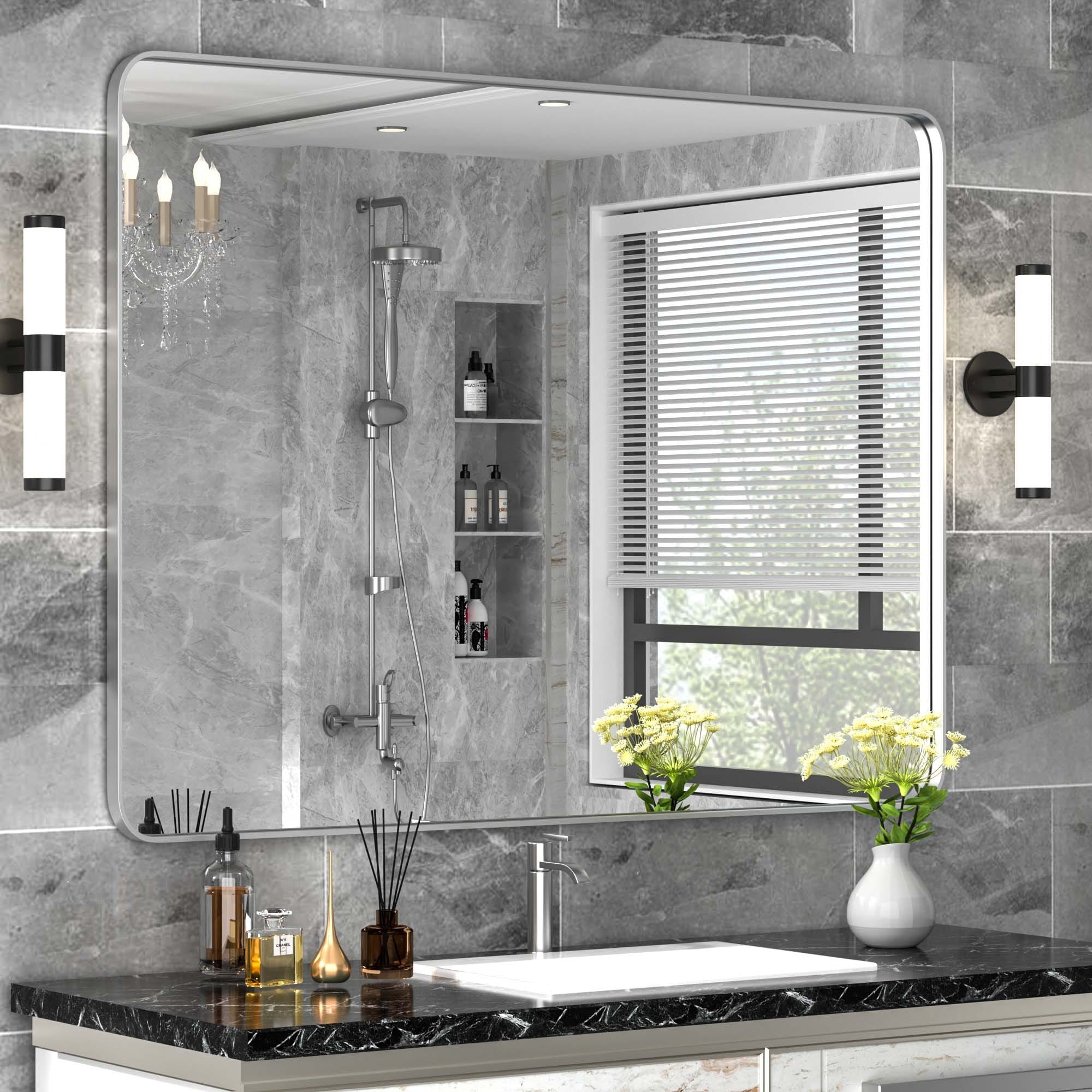Large 60x36 Inch Bathroom Vanity Mirror, Rounded Rectangle Anti-Rust Aluminum Frame, Hangs Horizontally or Vertically