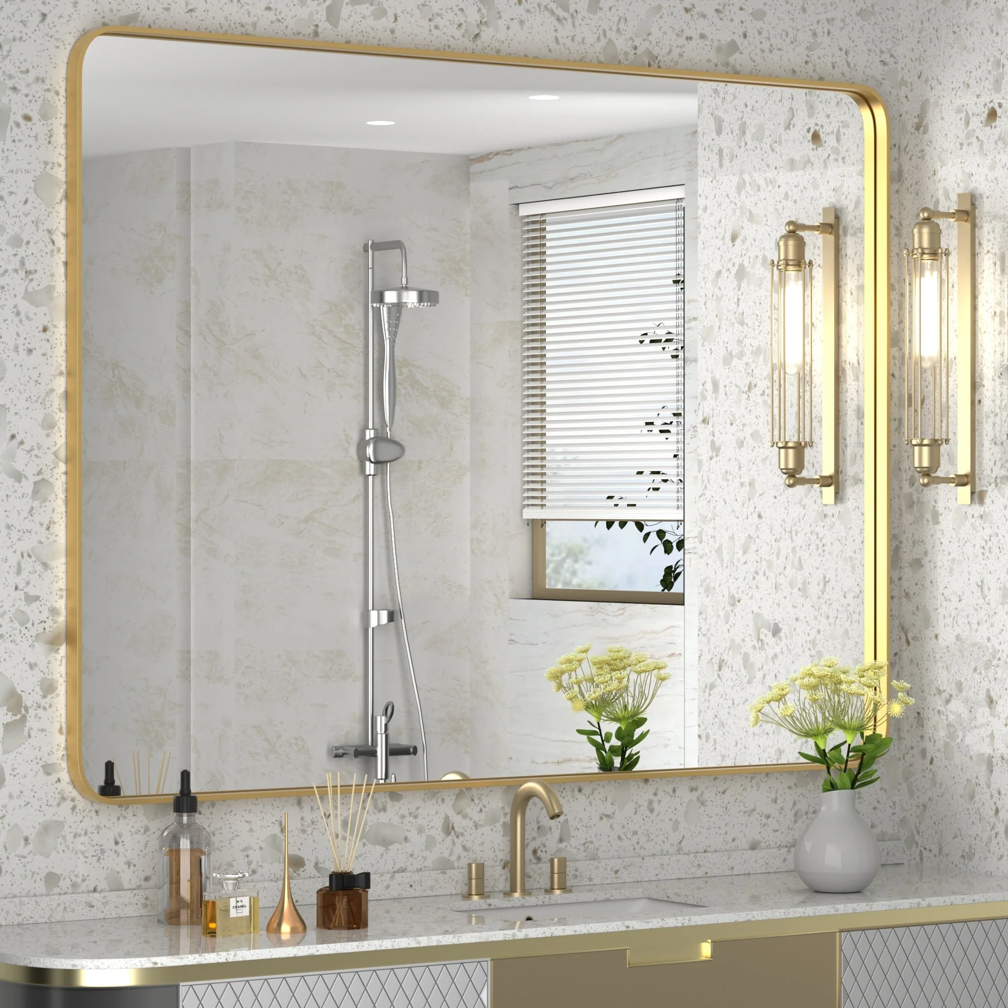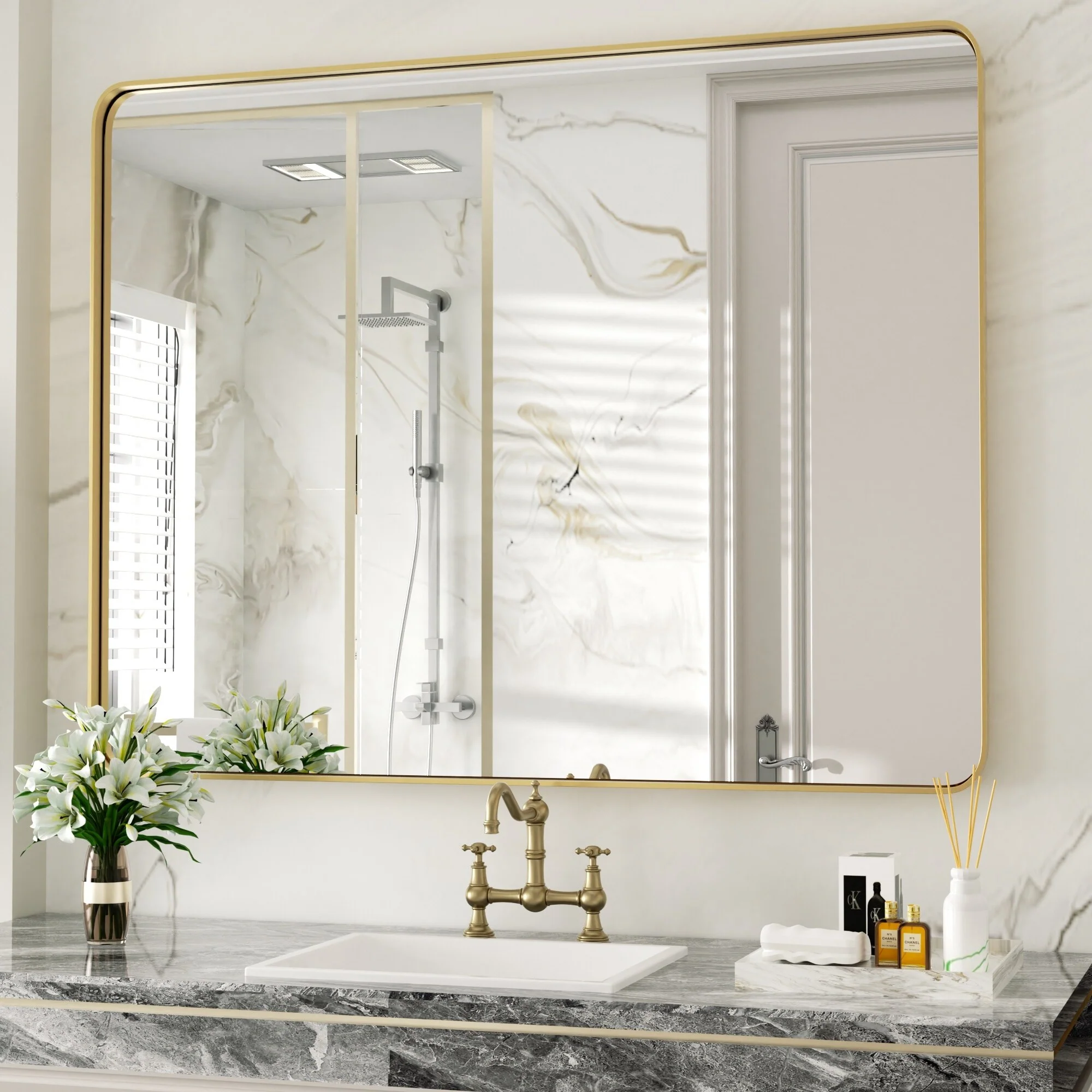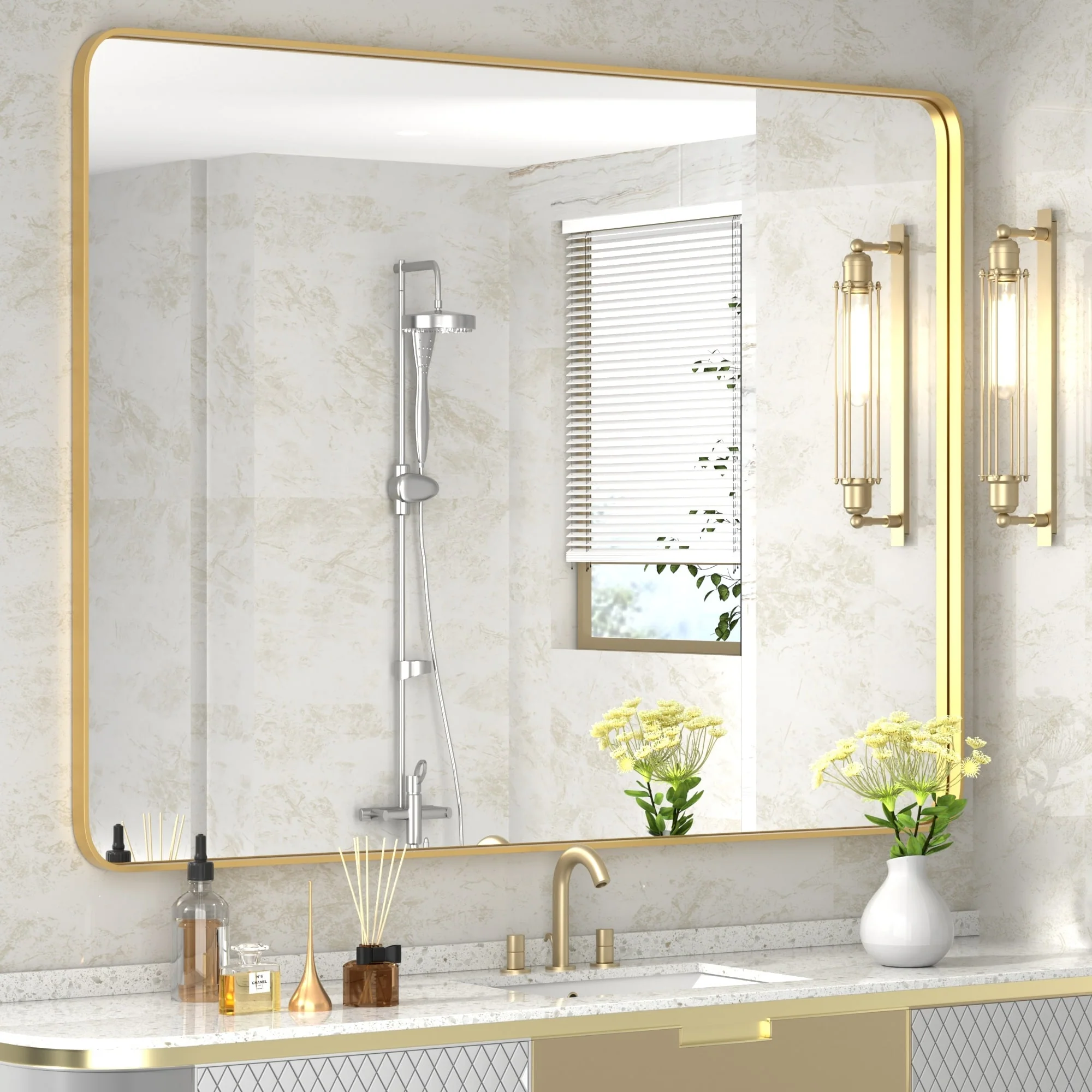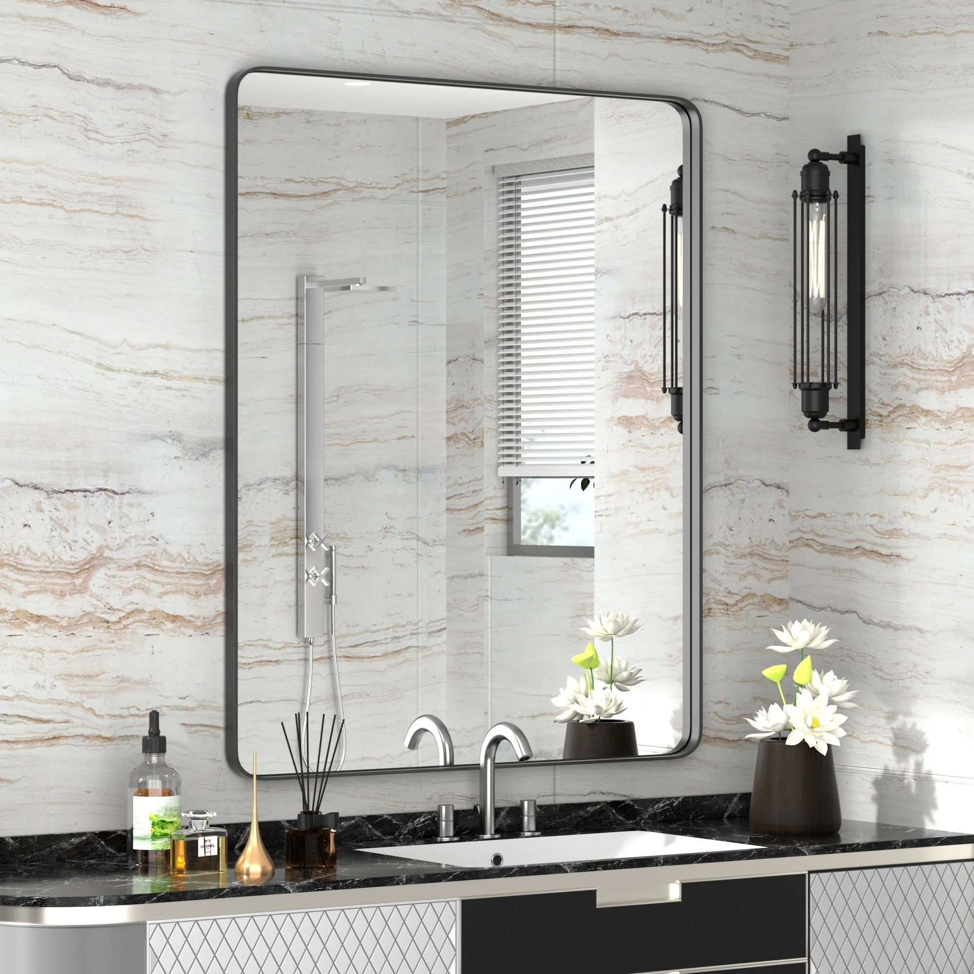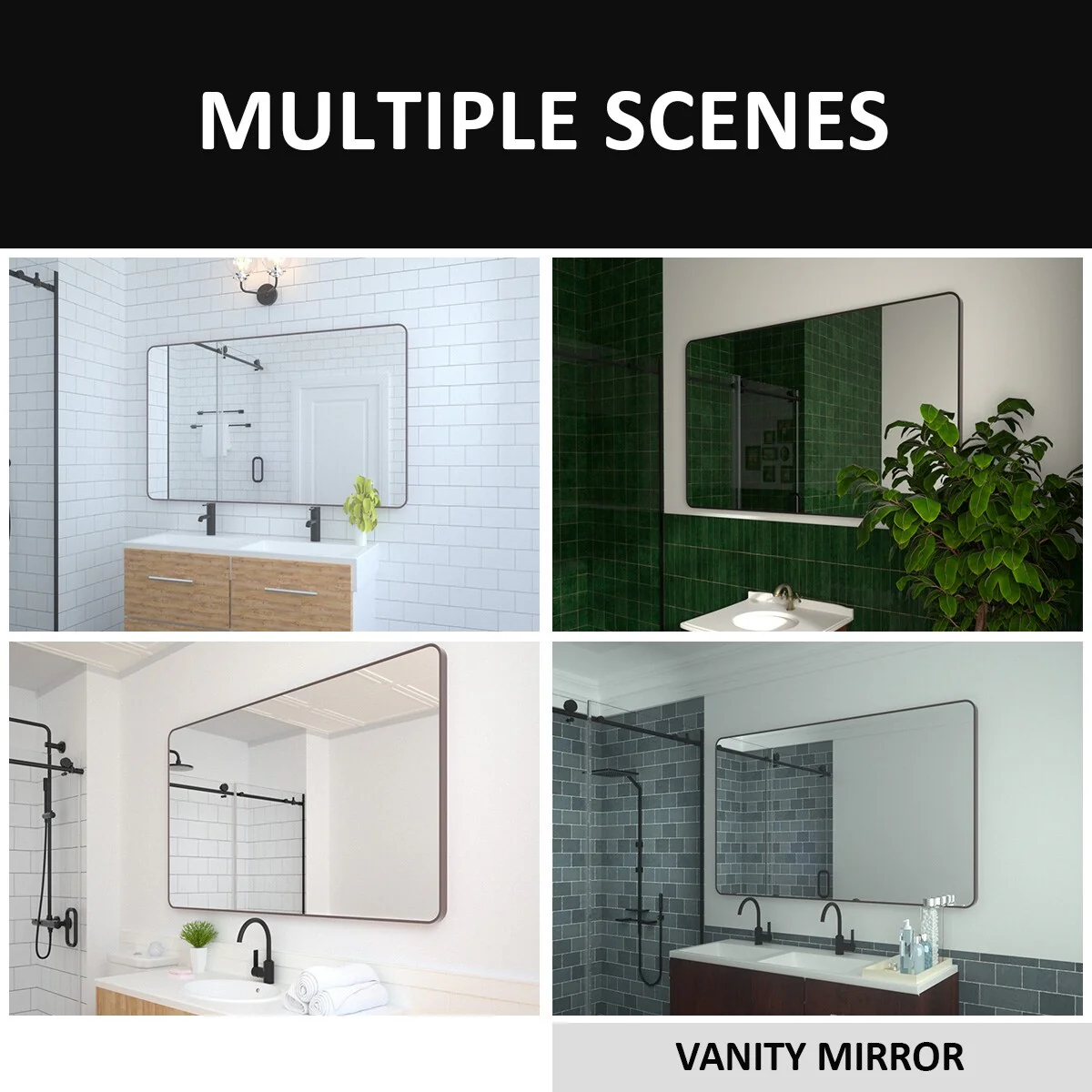 Large 60x36 Inch Bathroom Vanity Mirror, Rounded Rectangle Anti-Rust Aluminum Frame, Hangs Horizontally or Vertically