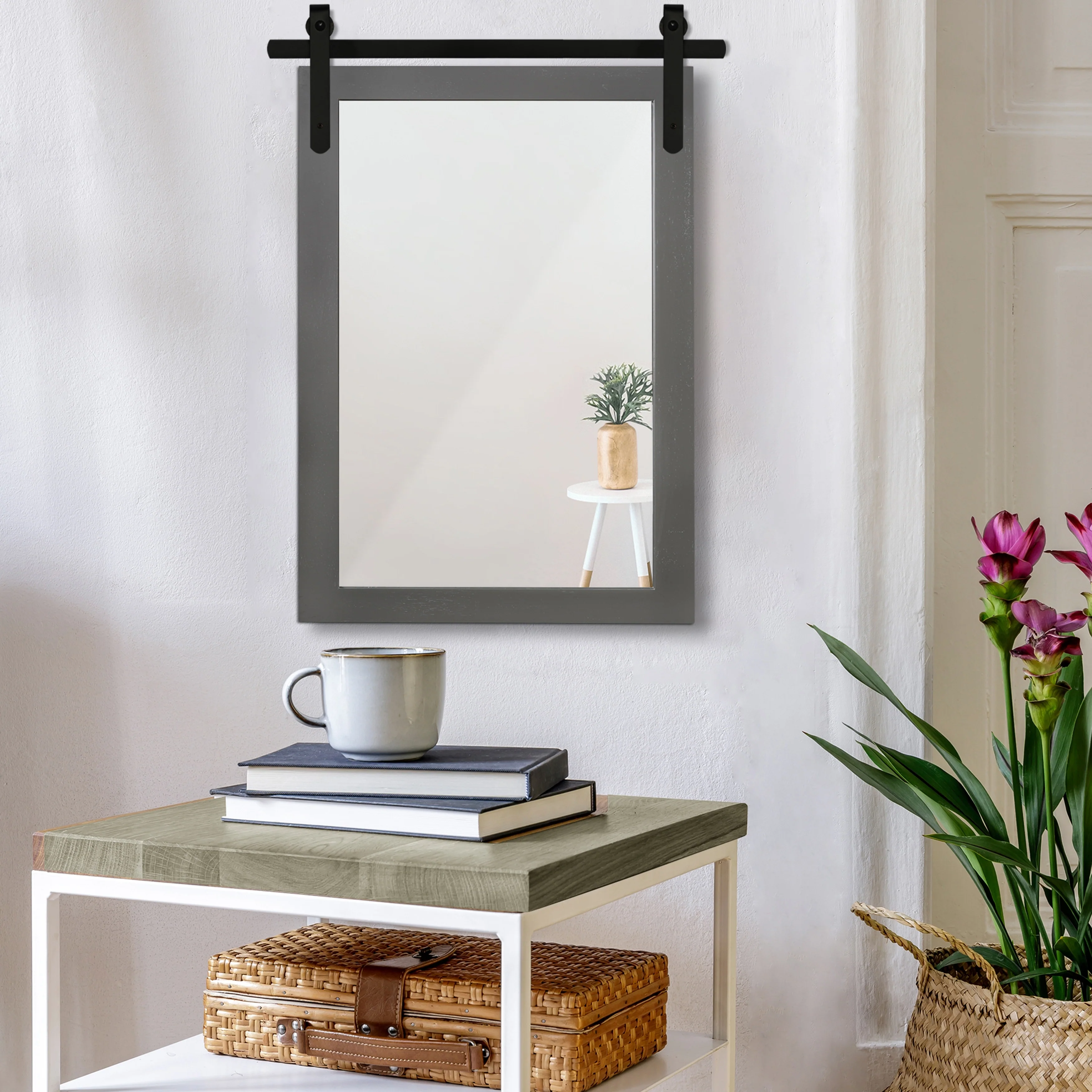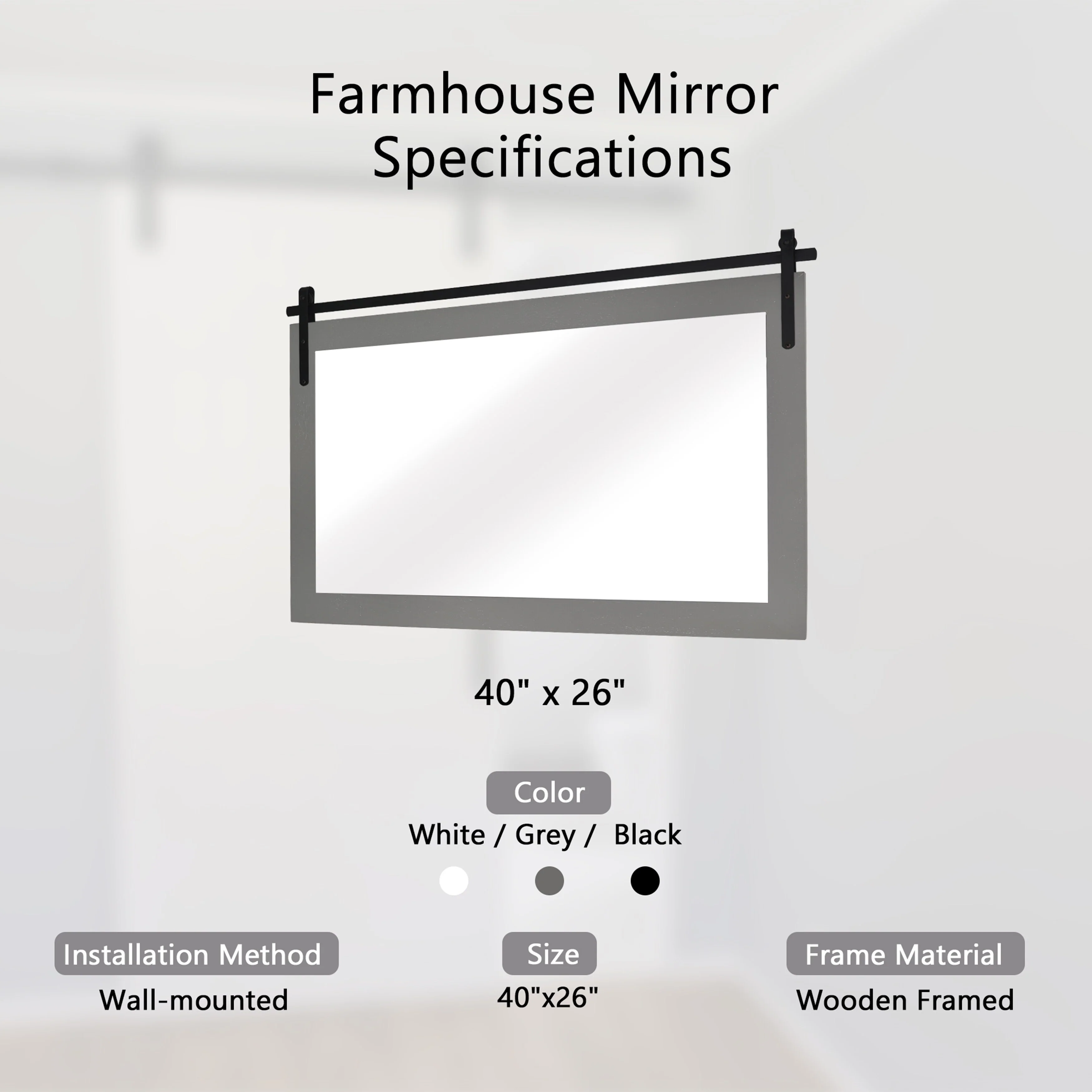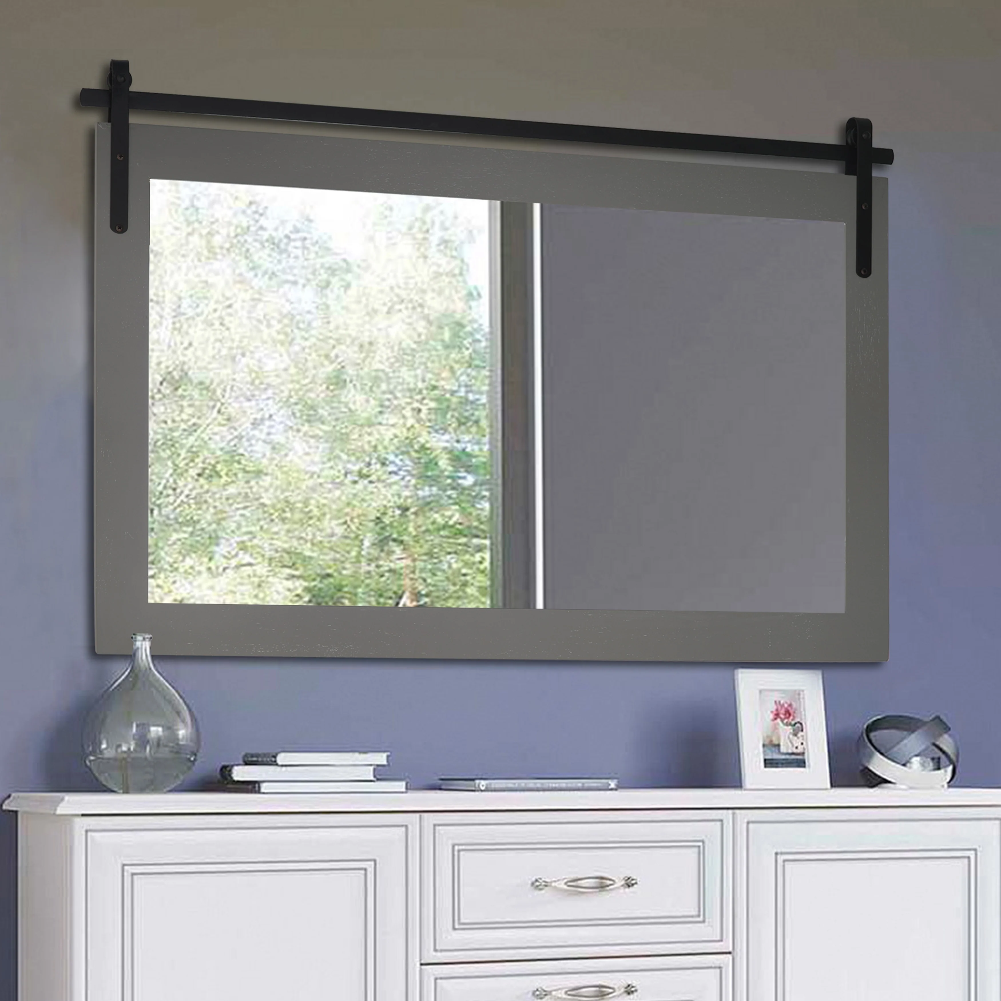 Rustic Farmhouse Mirror Vanity Mirror Solid Wood Frame with Metal Barn Style Mirror
