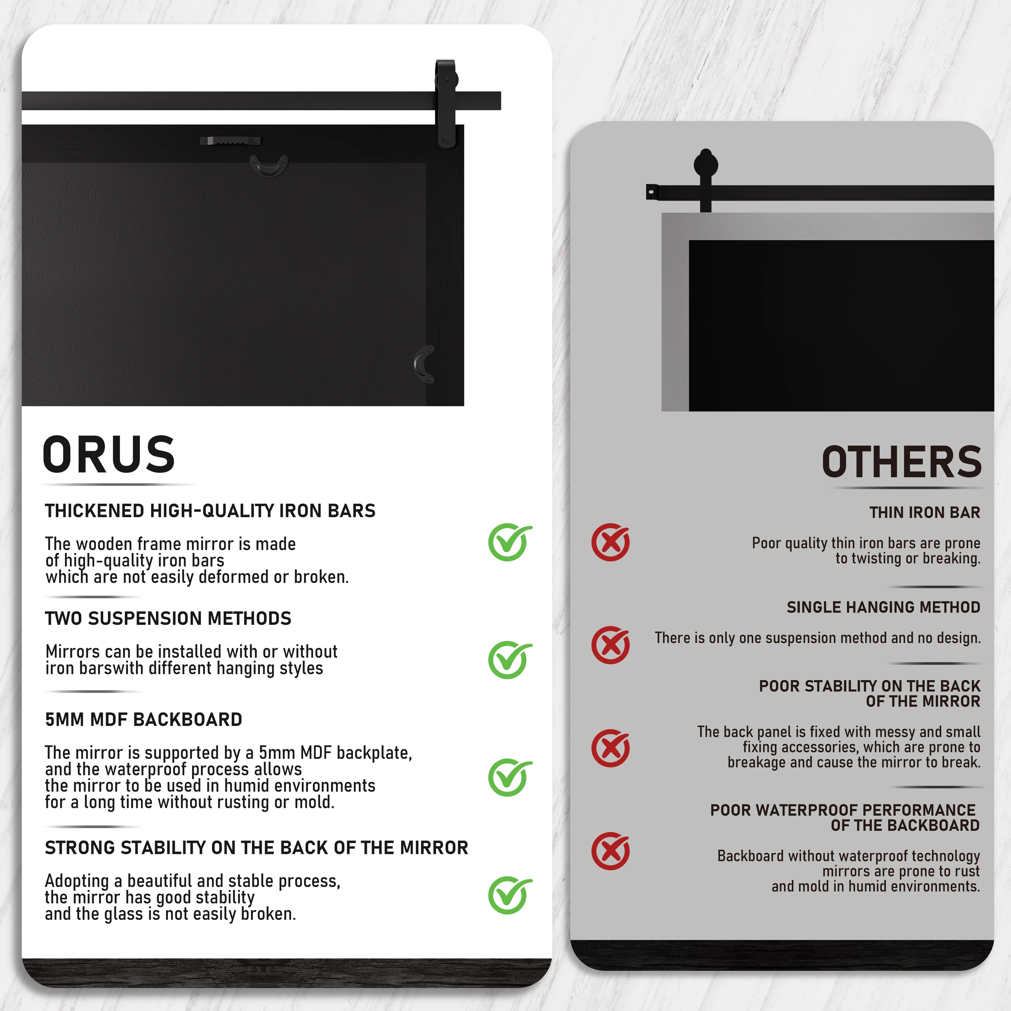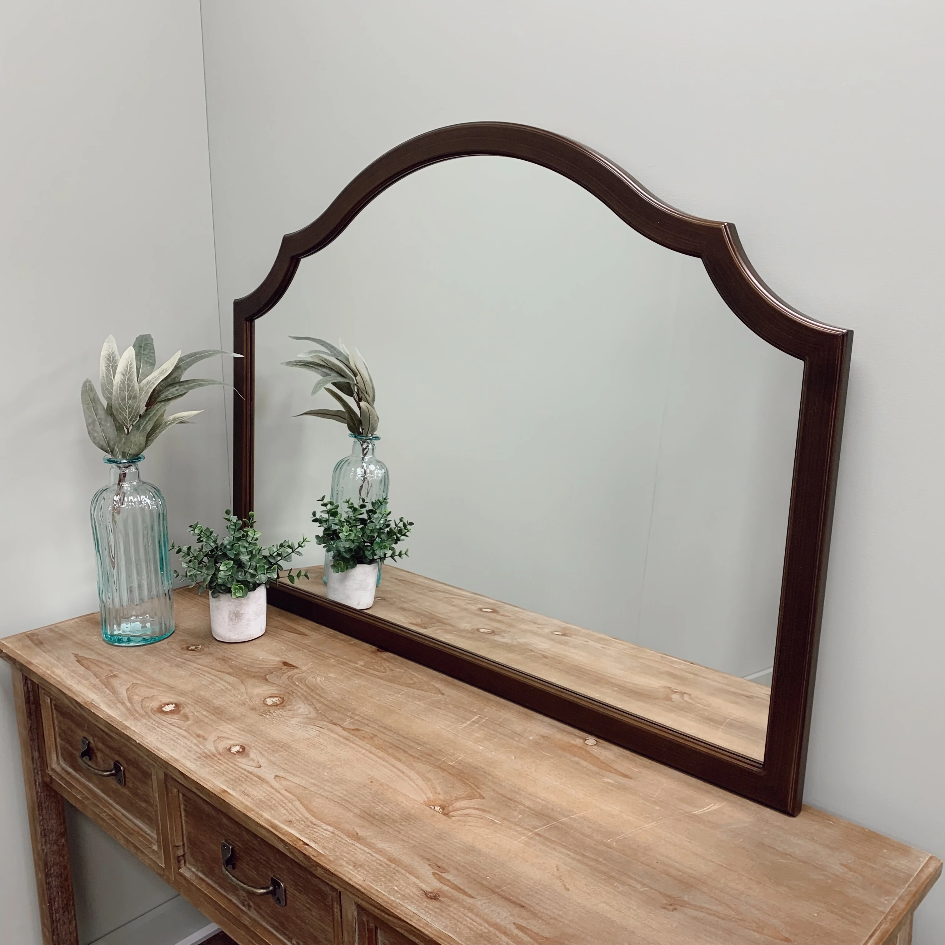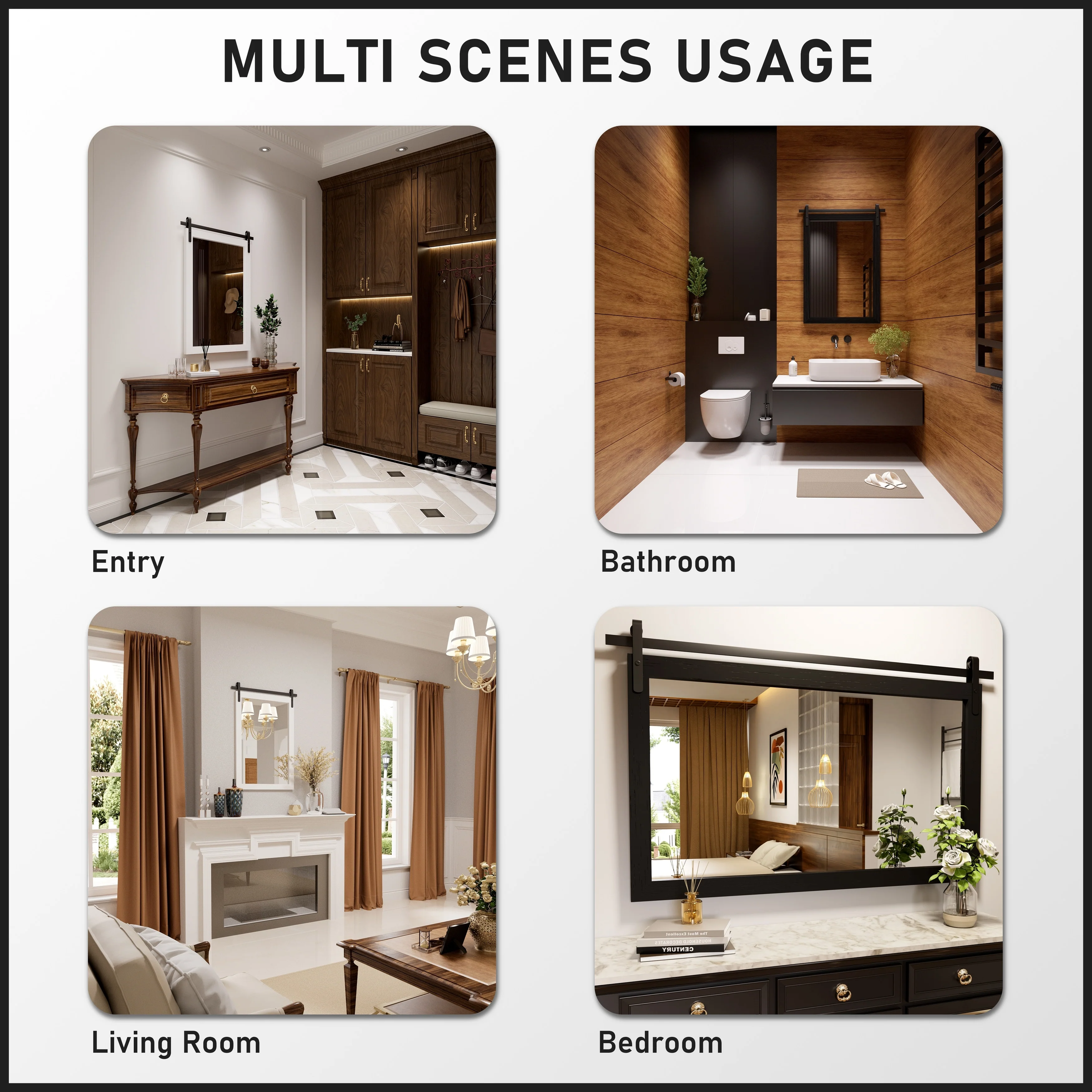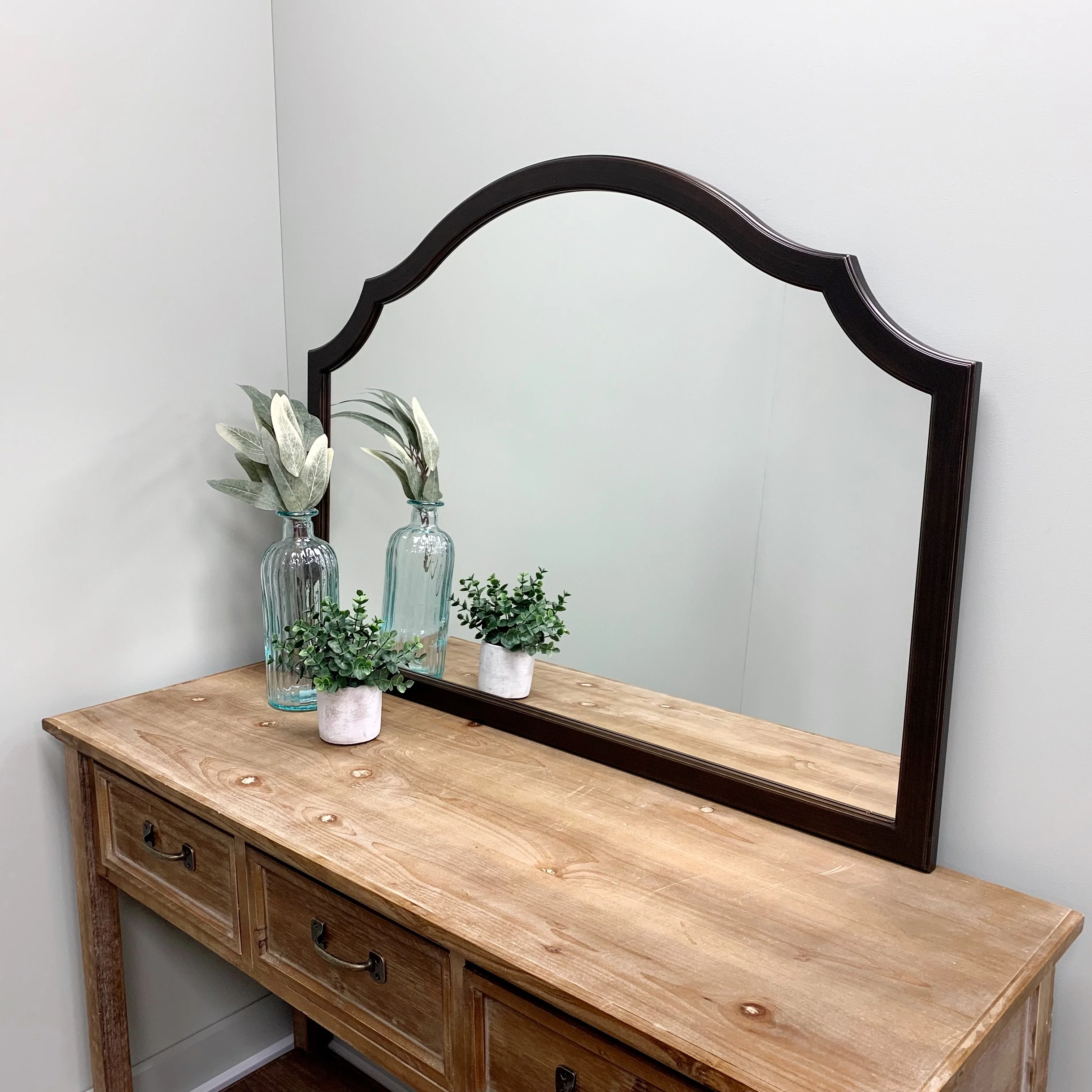 Rustic Farmhouse Mirror Vanity Mirror Solid Wood Frame with Metal Barn Style Mirror