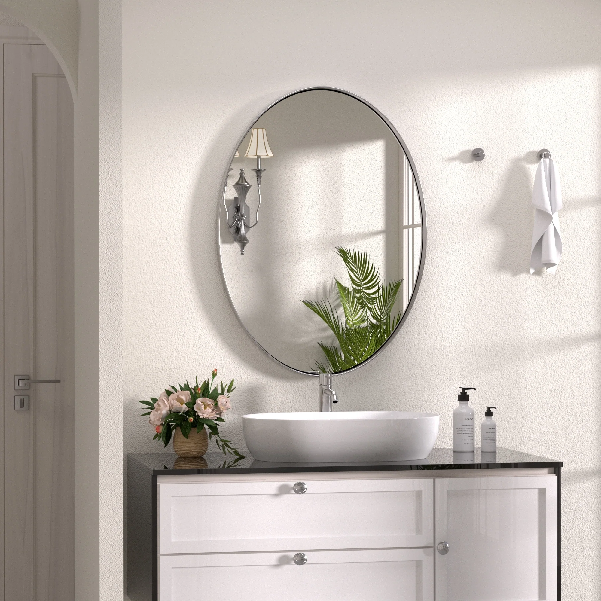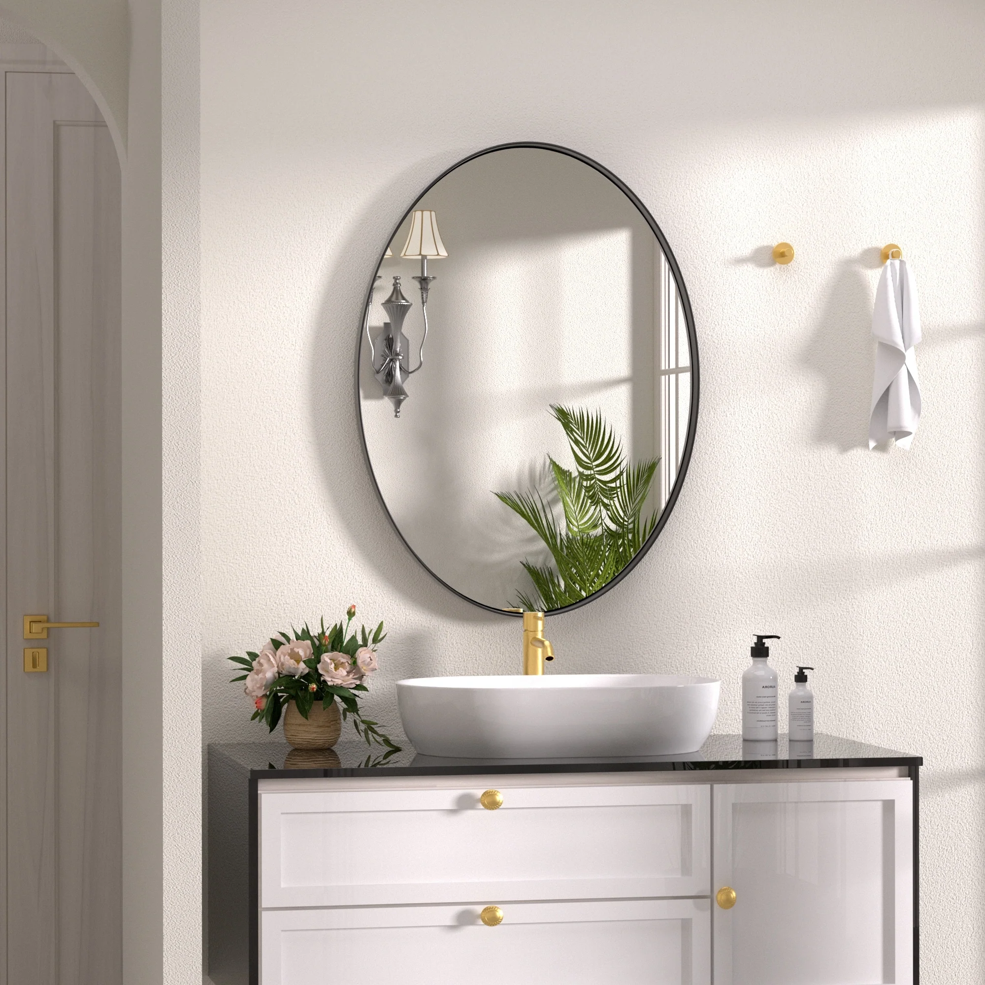 Rita Metal Framed Oval Wall Mirror Bathroom Vanity Mirror