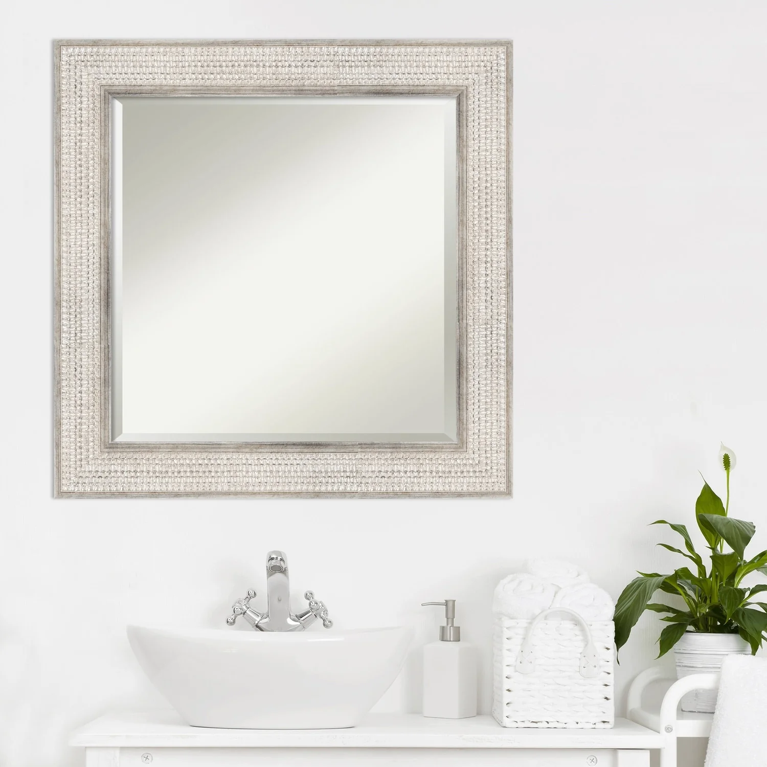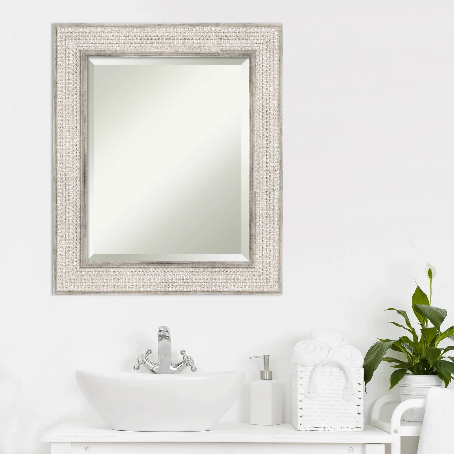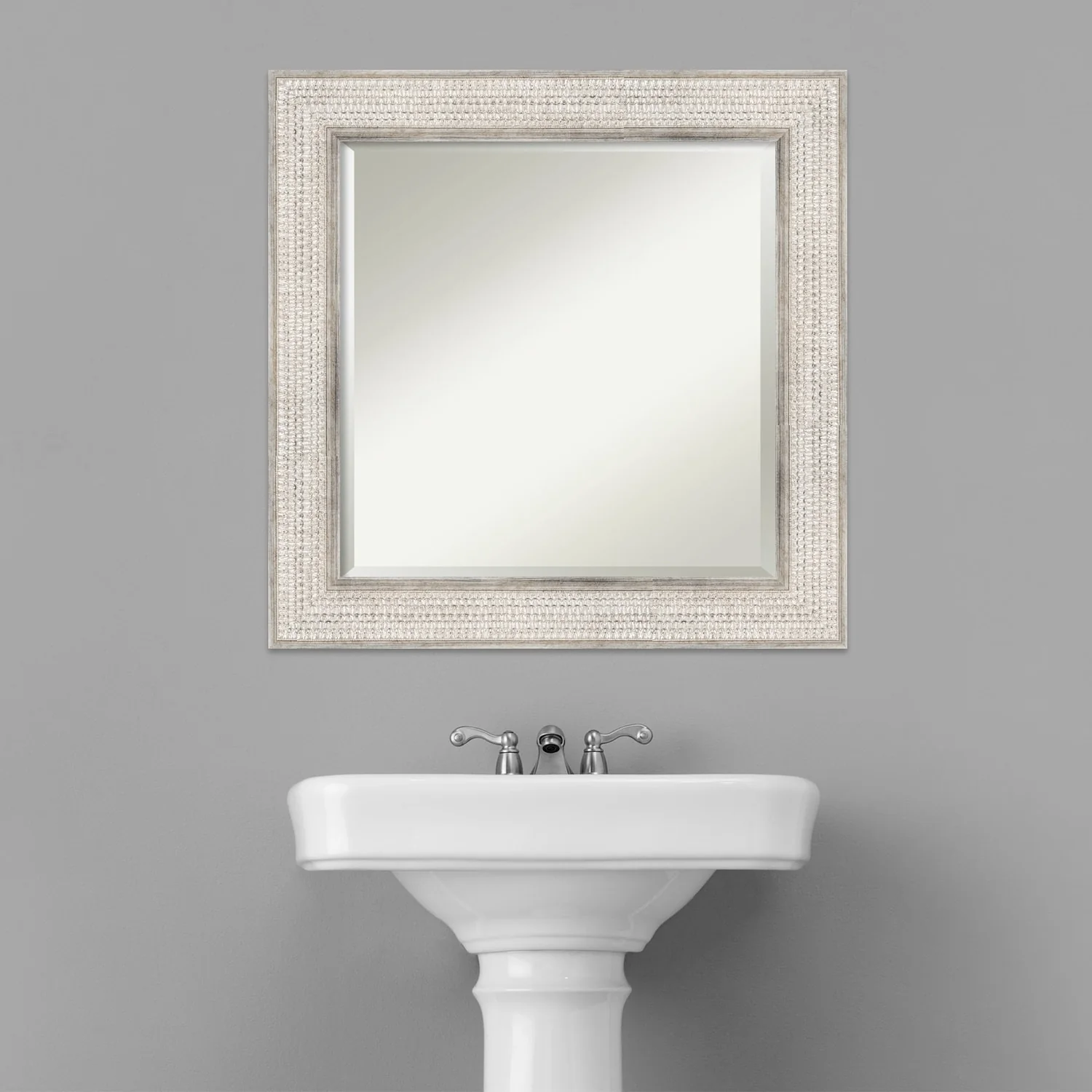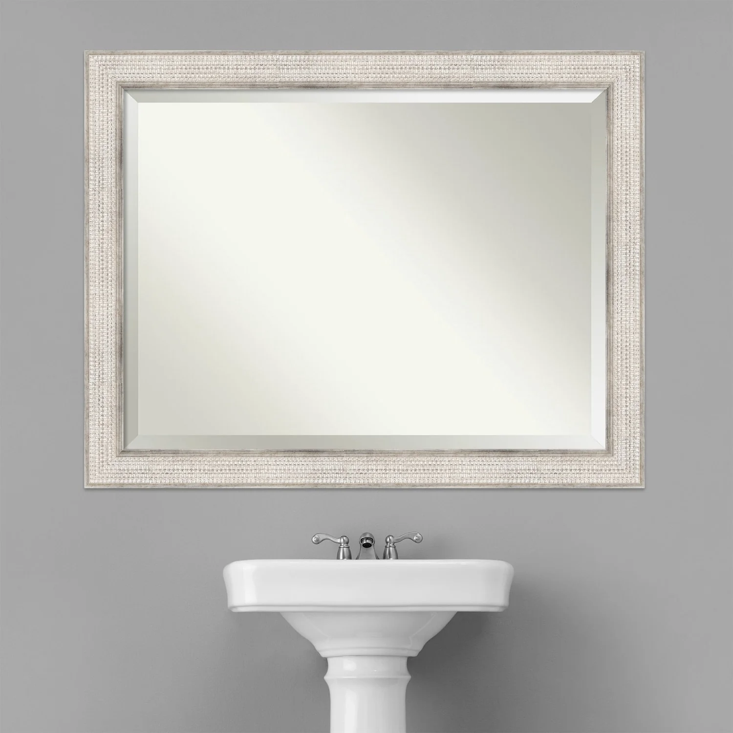 Beveled Wood Bathroom Wall Mirror - Trellis Silver Frame - Trellis Silver