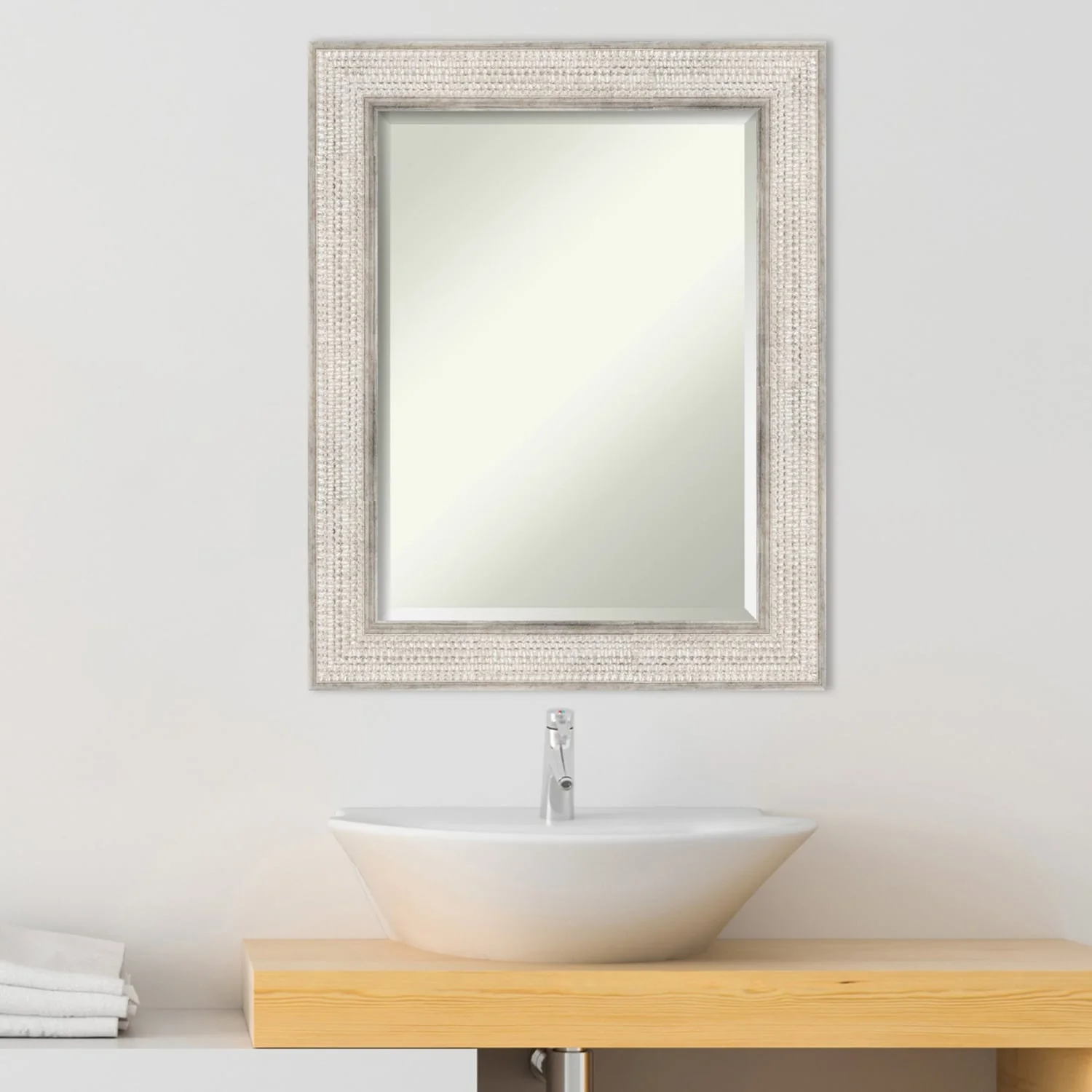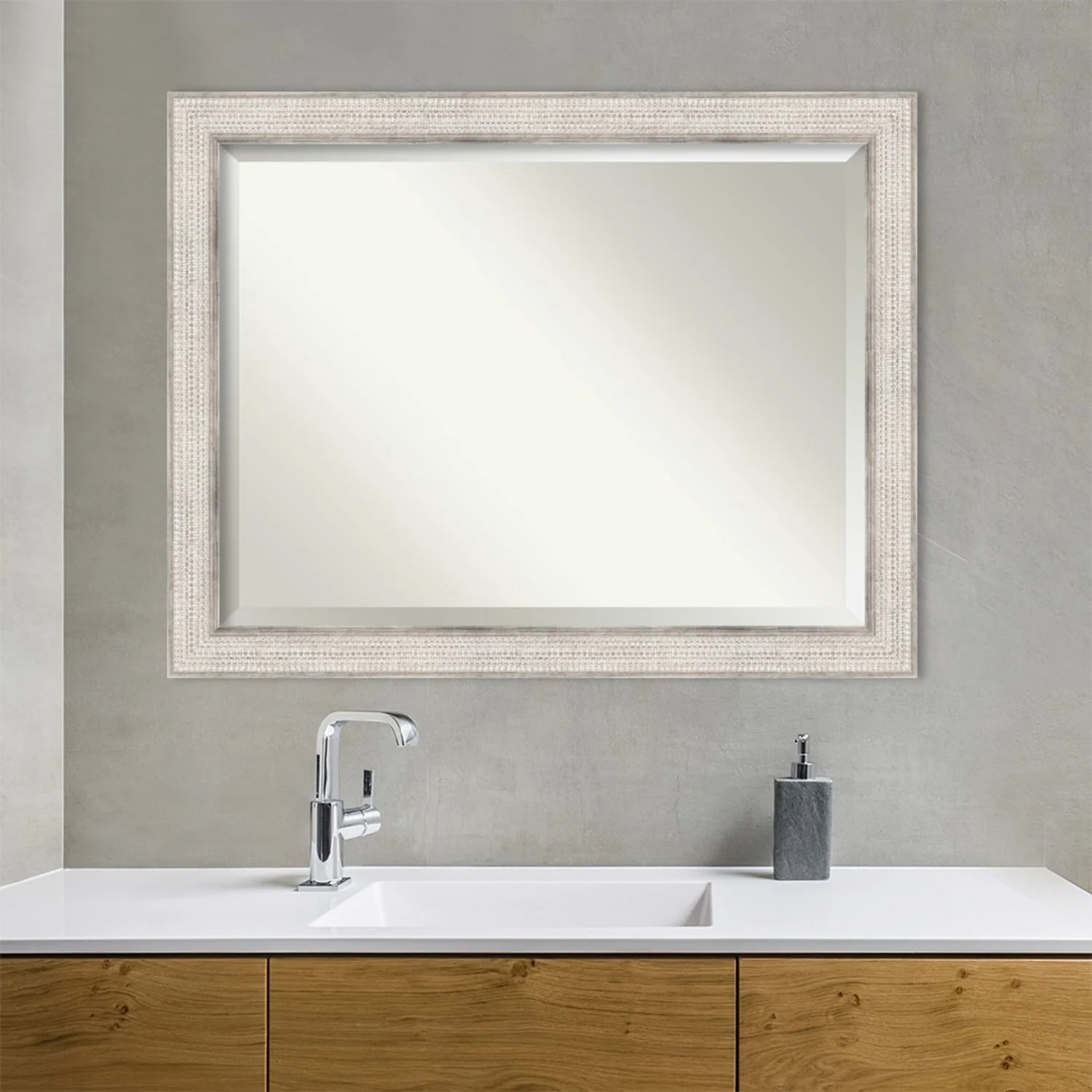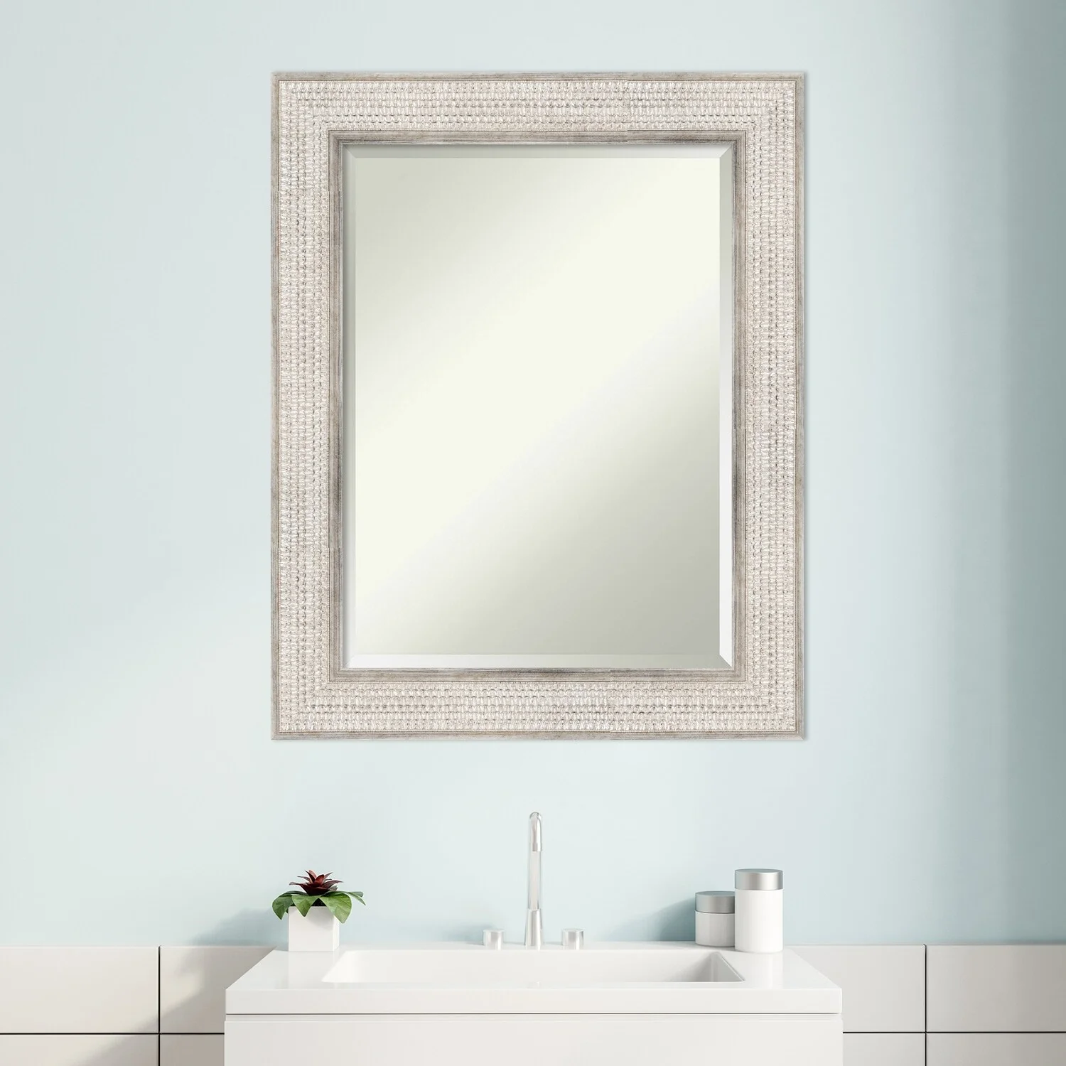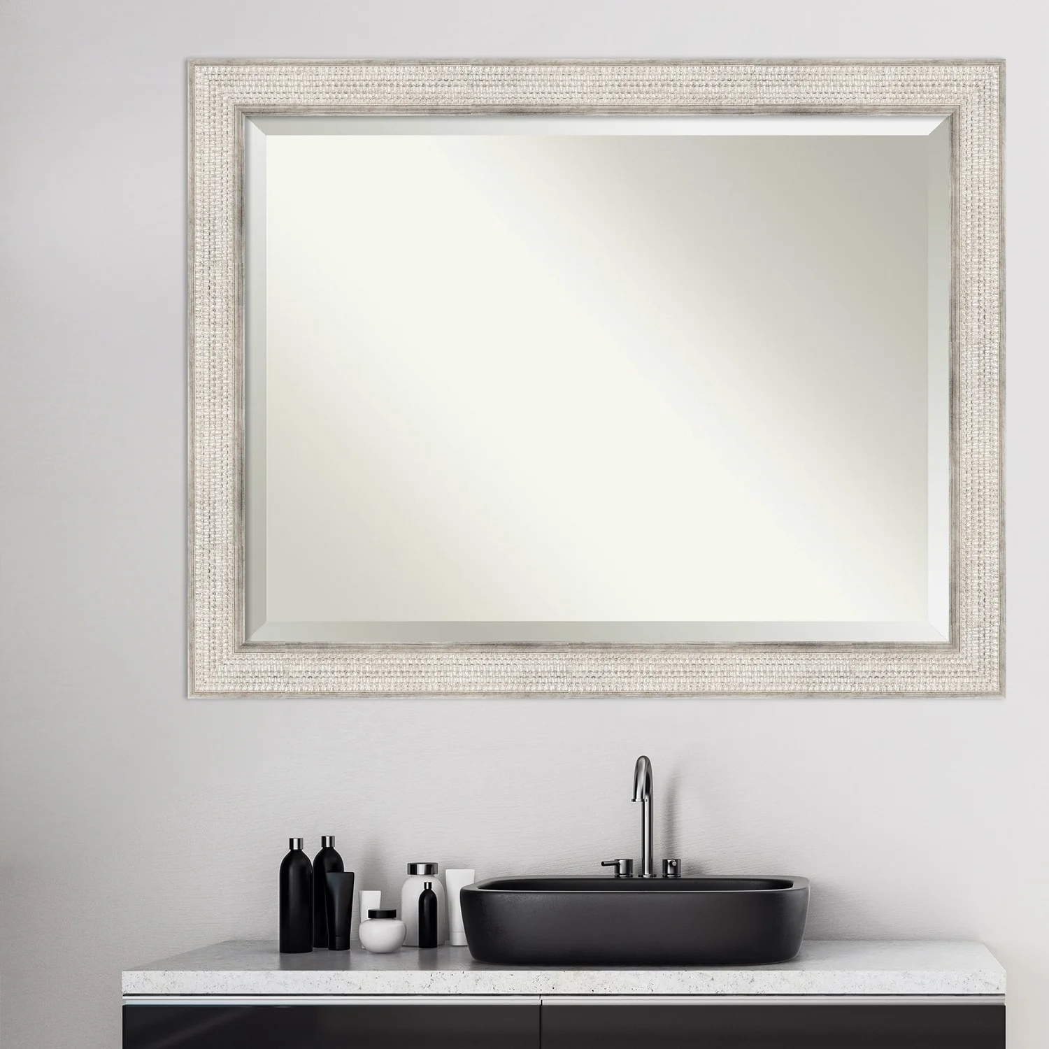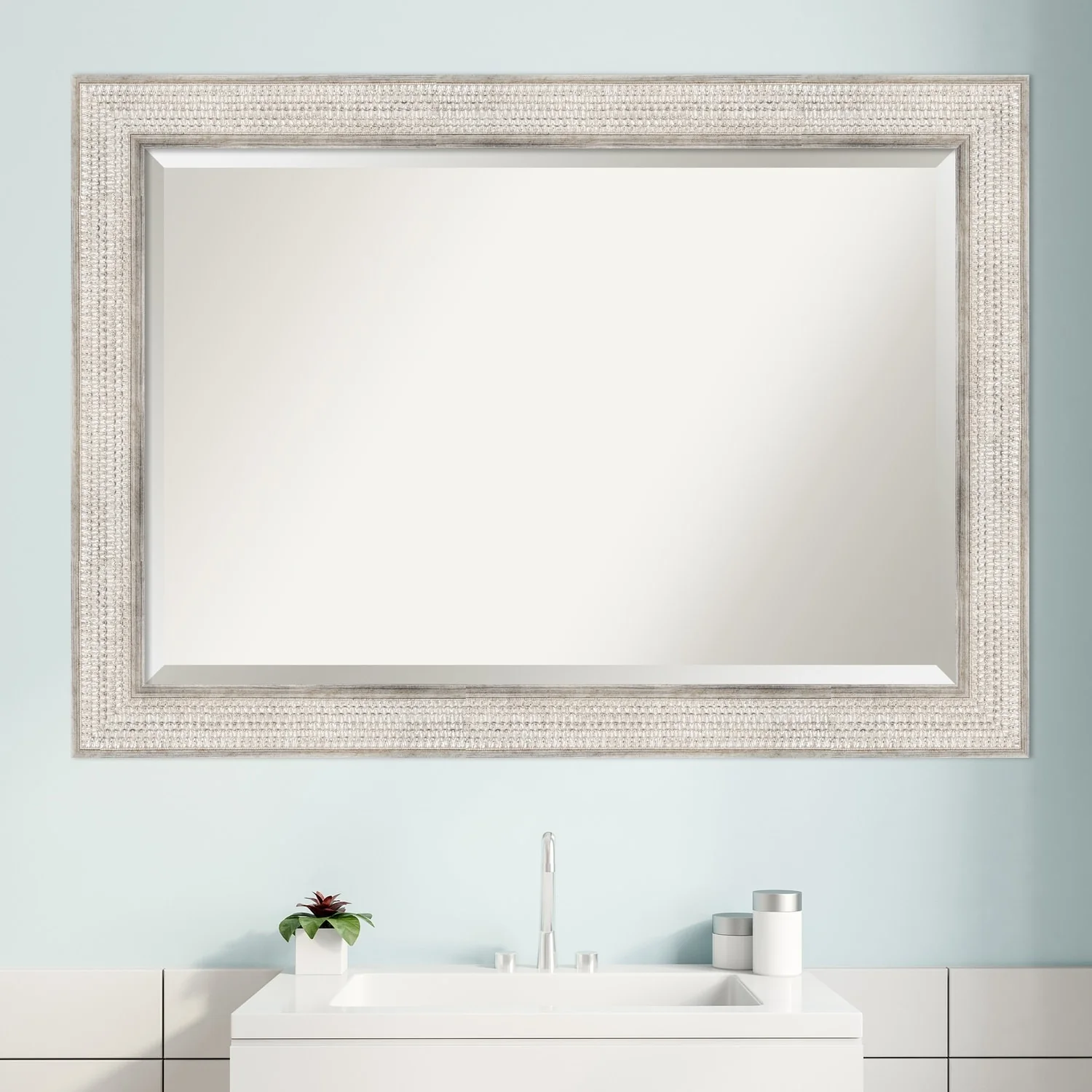 Beveled Wood Bathroom Wall Mirror - Trellis Silver Frame - Trellis Silver