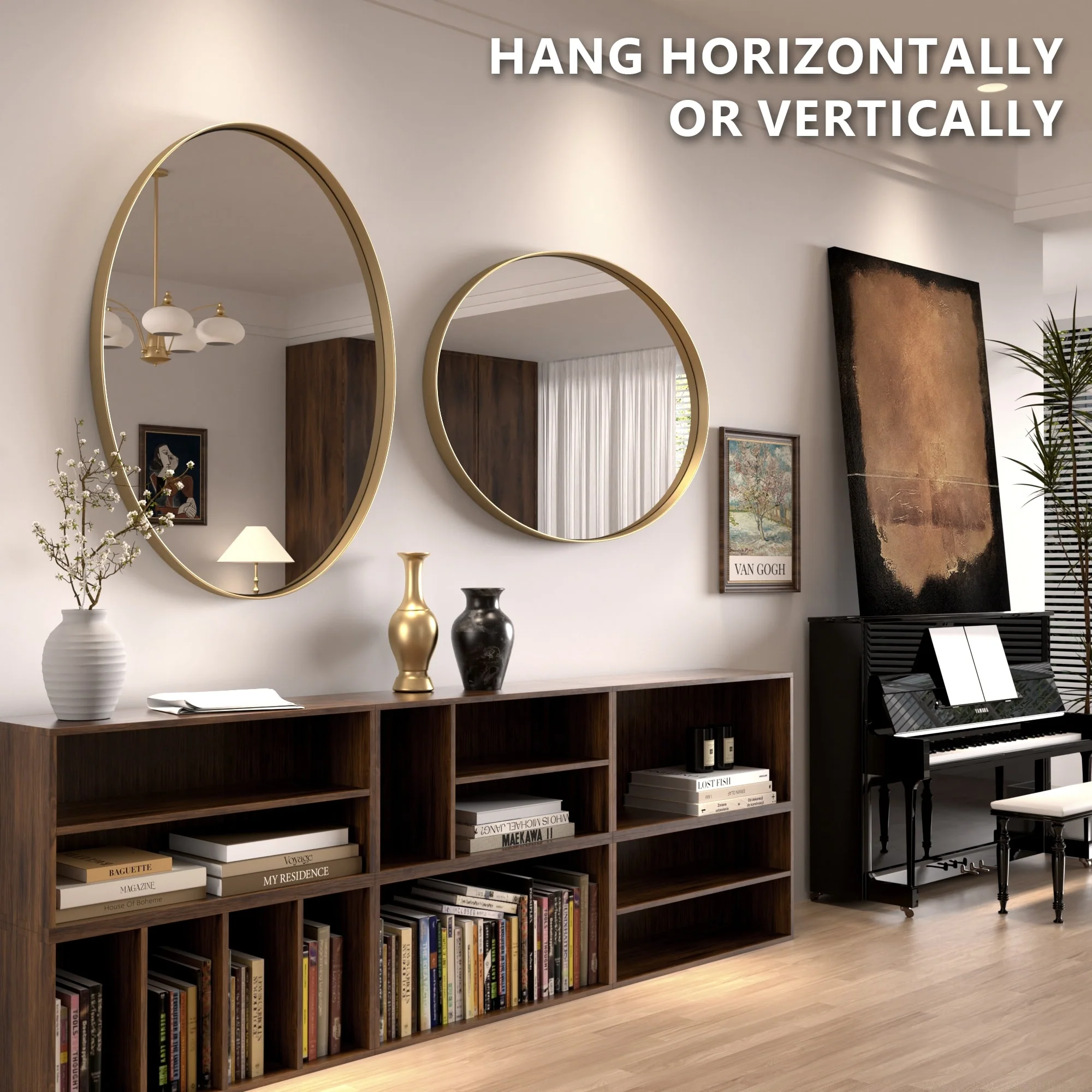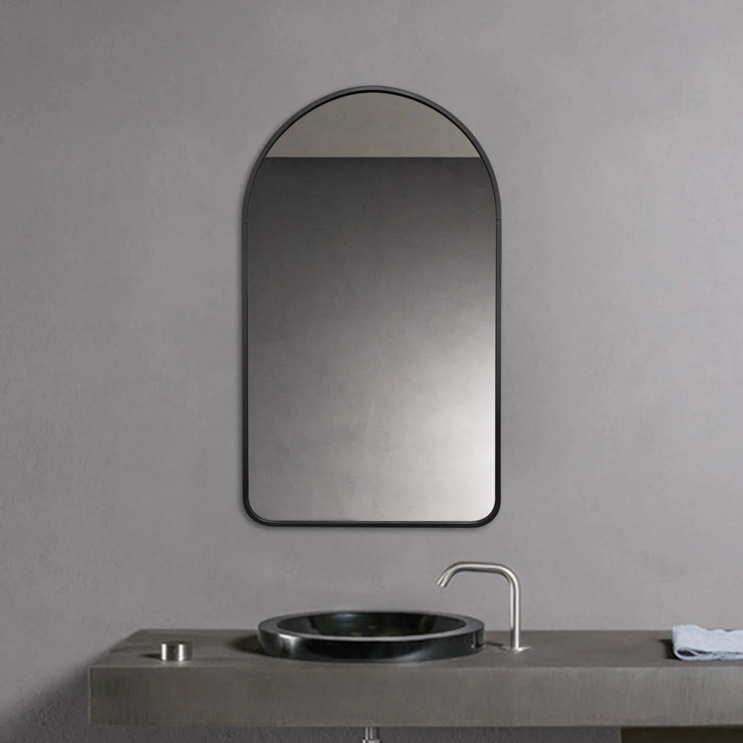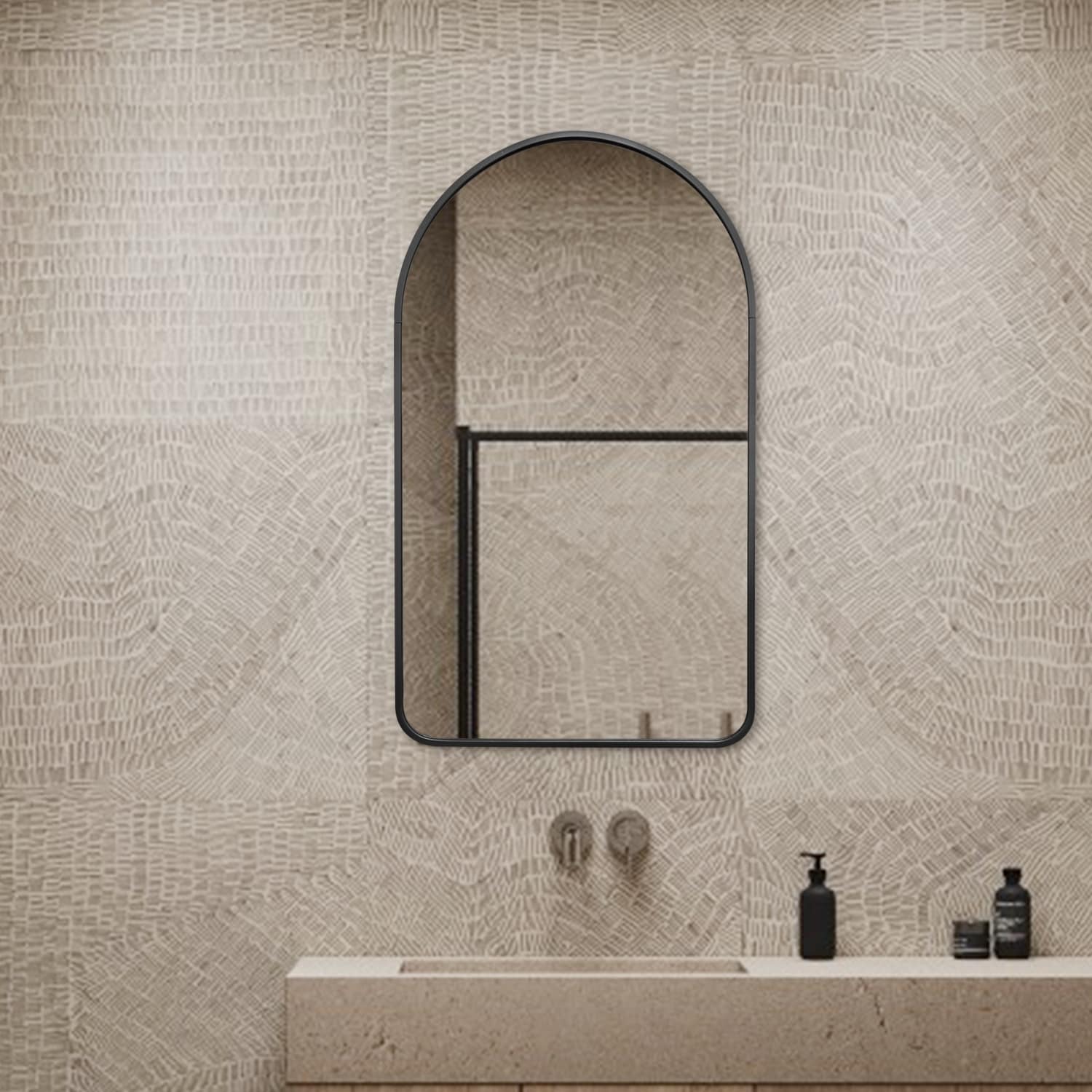 Modern Wall Mirror, Oval Mirror with Metal Framed, Bathroom Mirror with Round Corner Vanity Mirror for Vertical/Horizontal