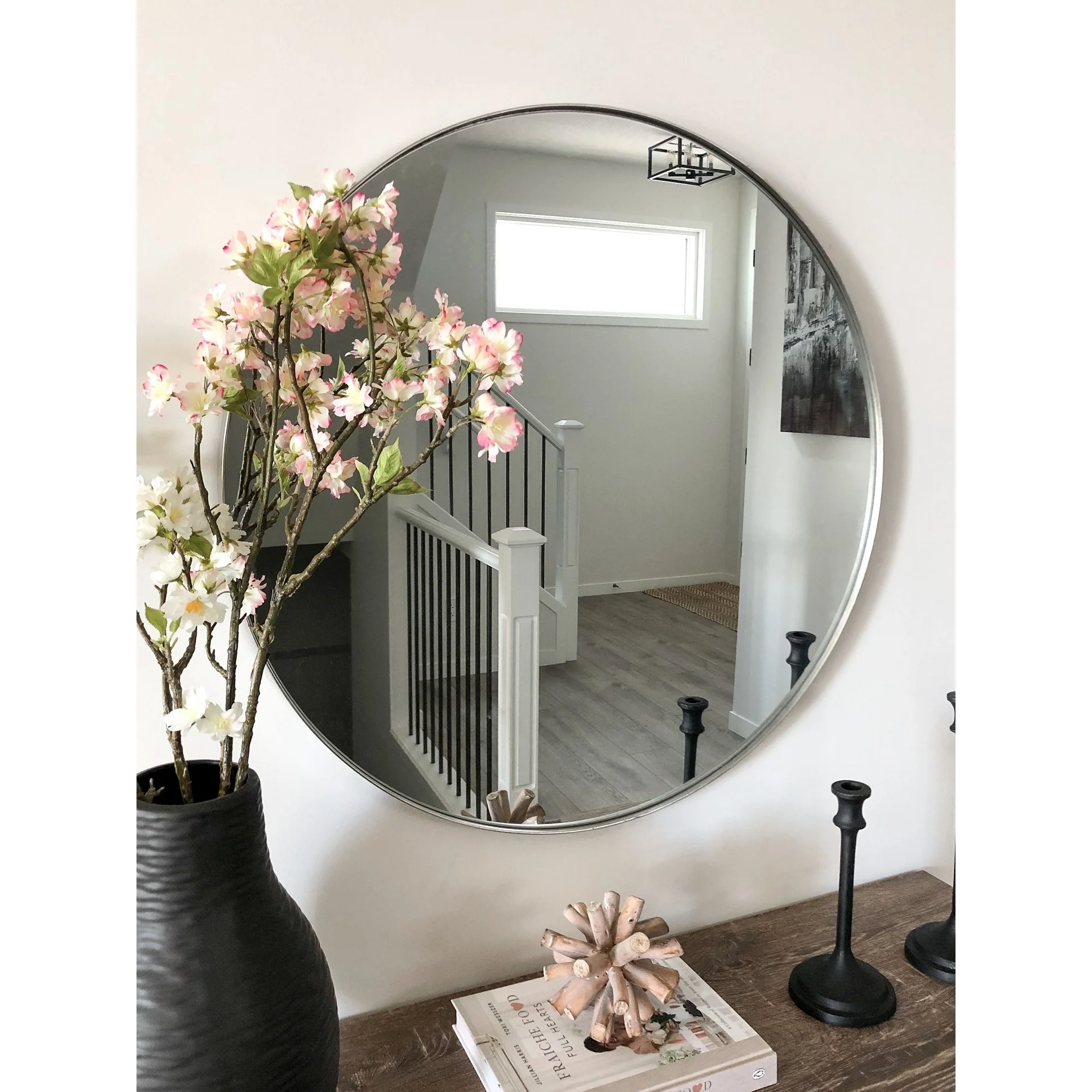 Modern 30-Inch Round Bathroom Wall Mirror, Premium HD Glass with Brushed Metal Frame and Easy Installation