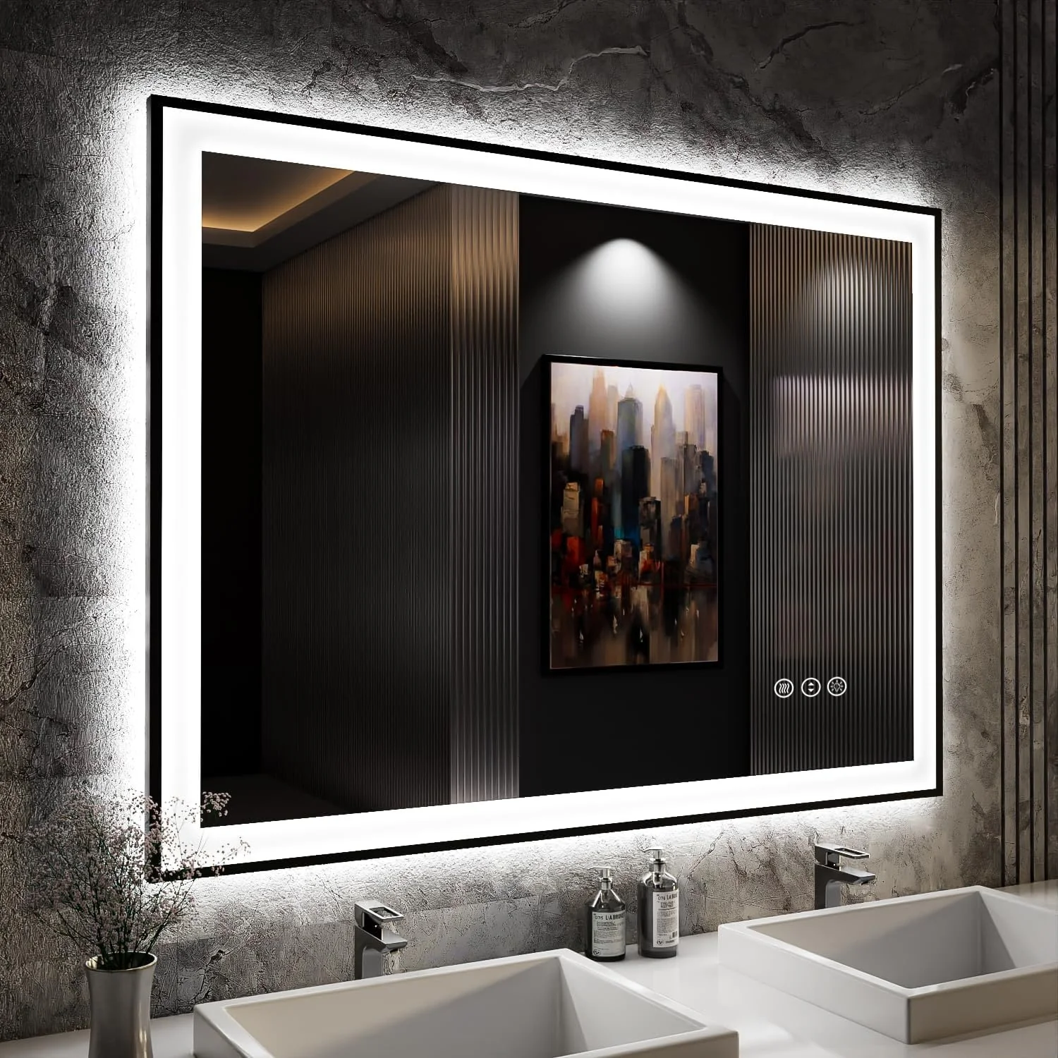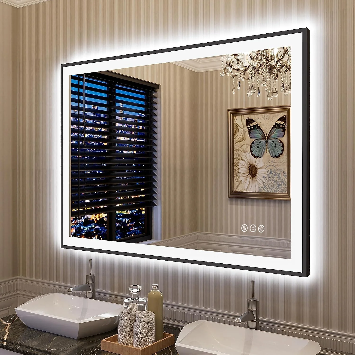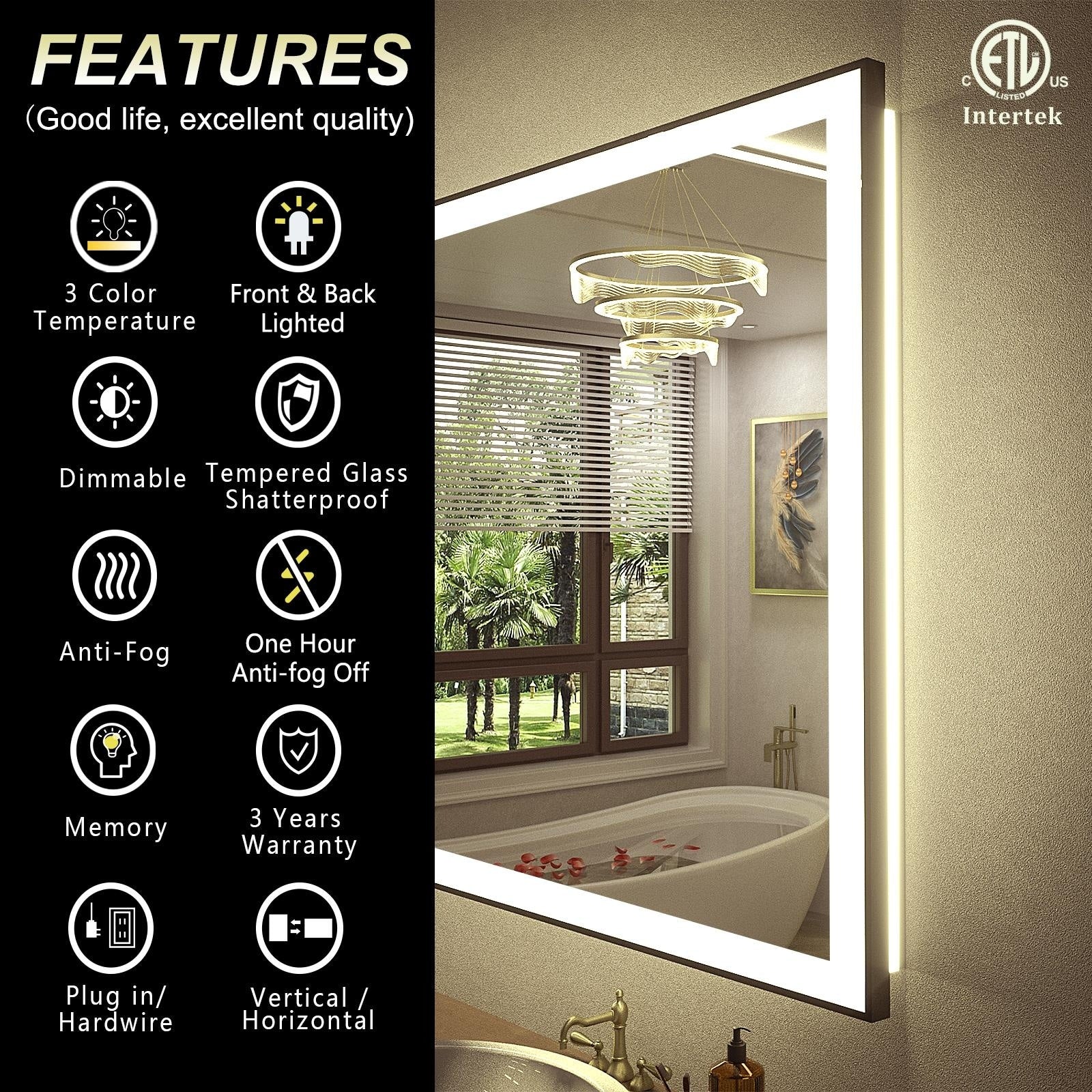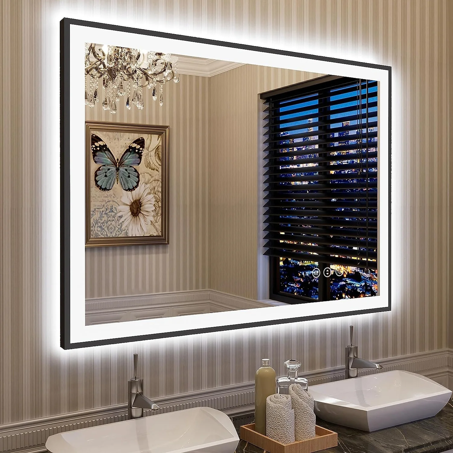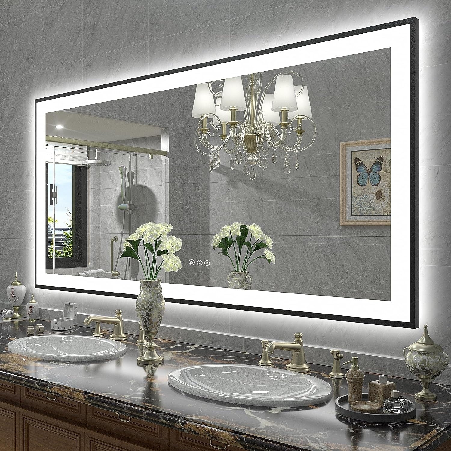 KIOTEE Metal Frame Front and Back LED Lighted Defogger Tempered Glass Bathroom Vanity Mirror with ETL and 3 Years Warranty