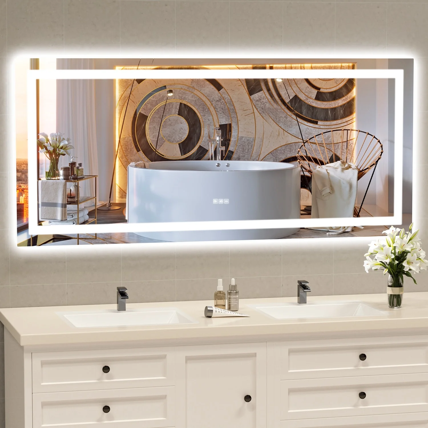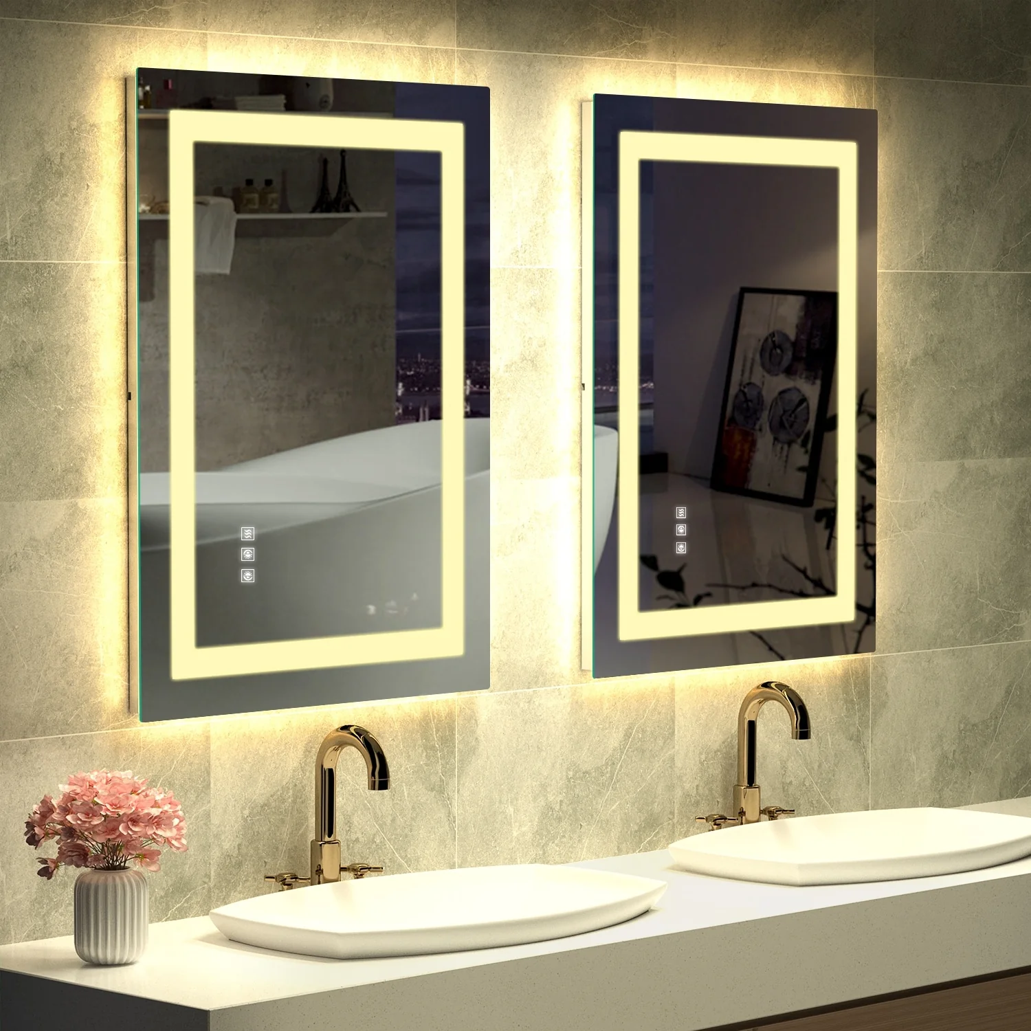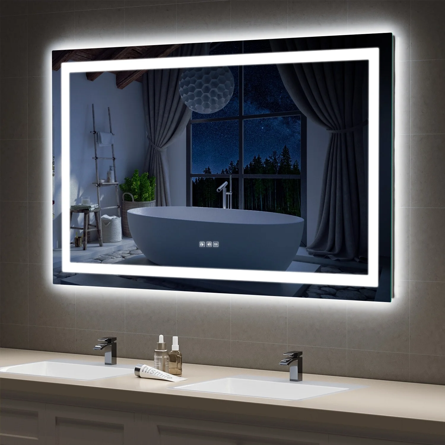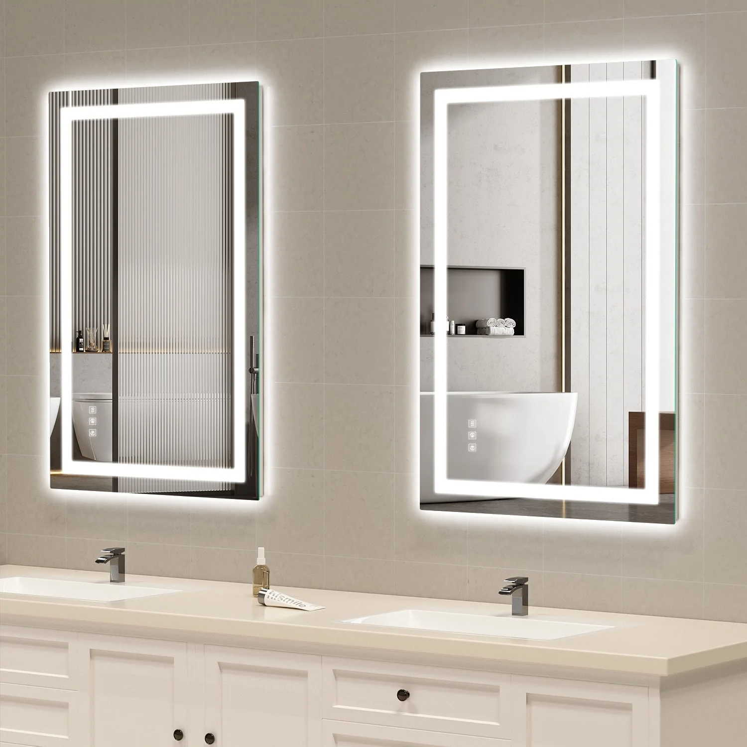KIOTEE Metal Frame Front and Back LED Lighted Defogger Tempered Glass Bathroom Vanity Mirror with ETL and 3 Years Warranty