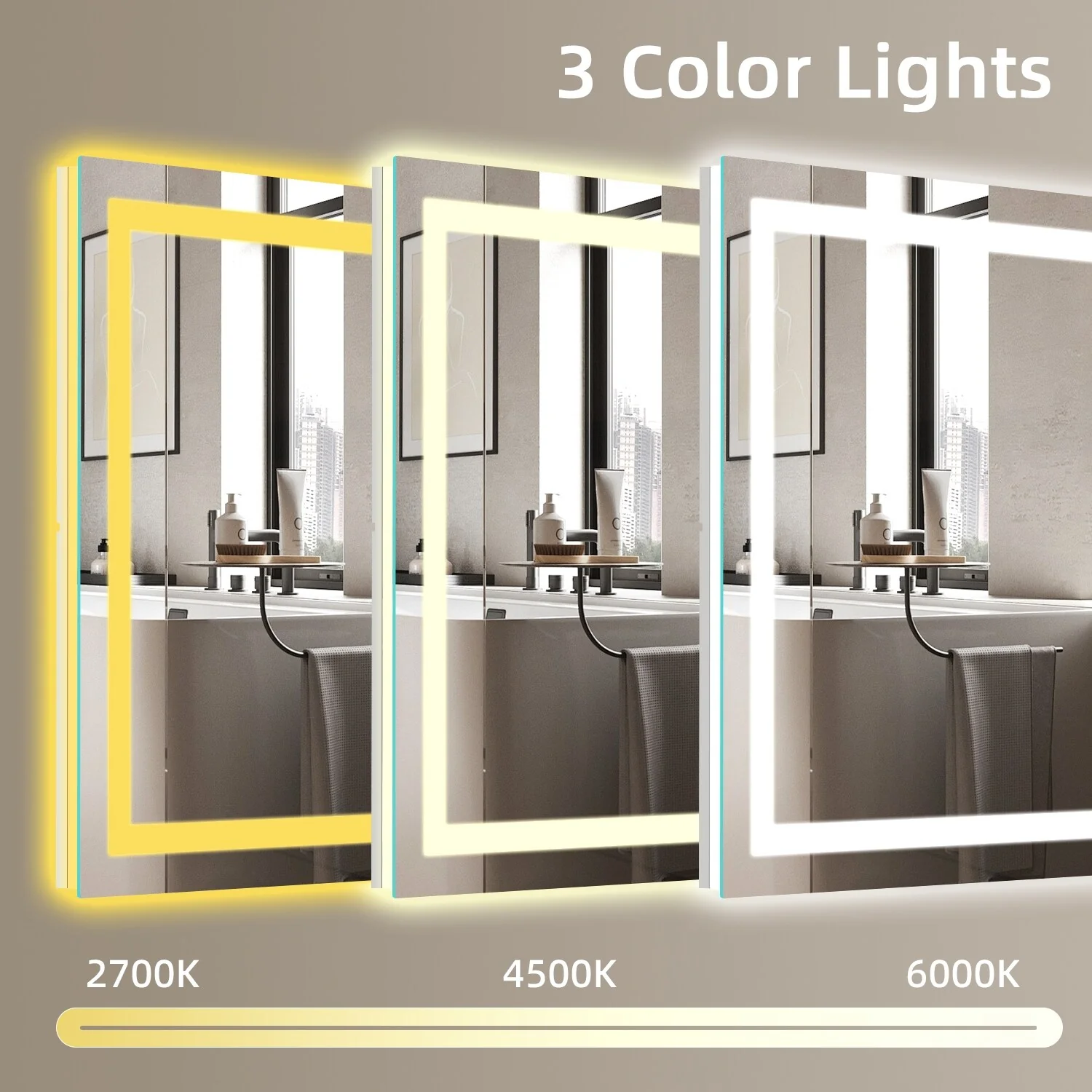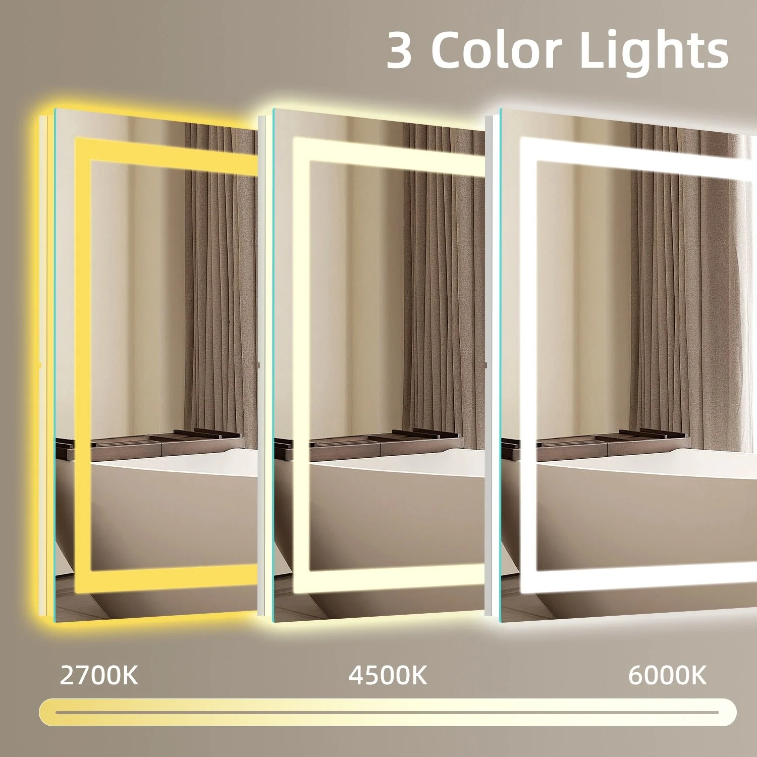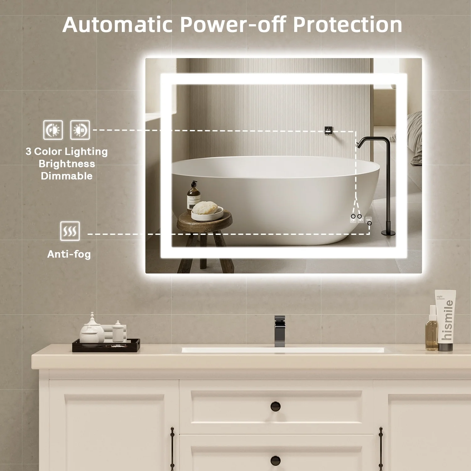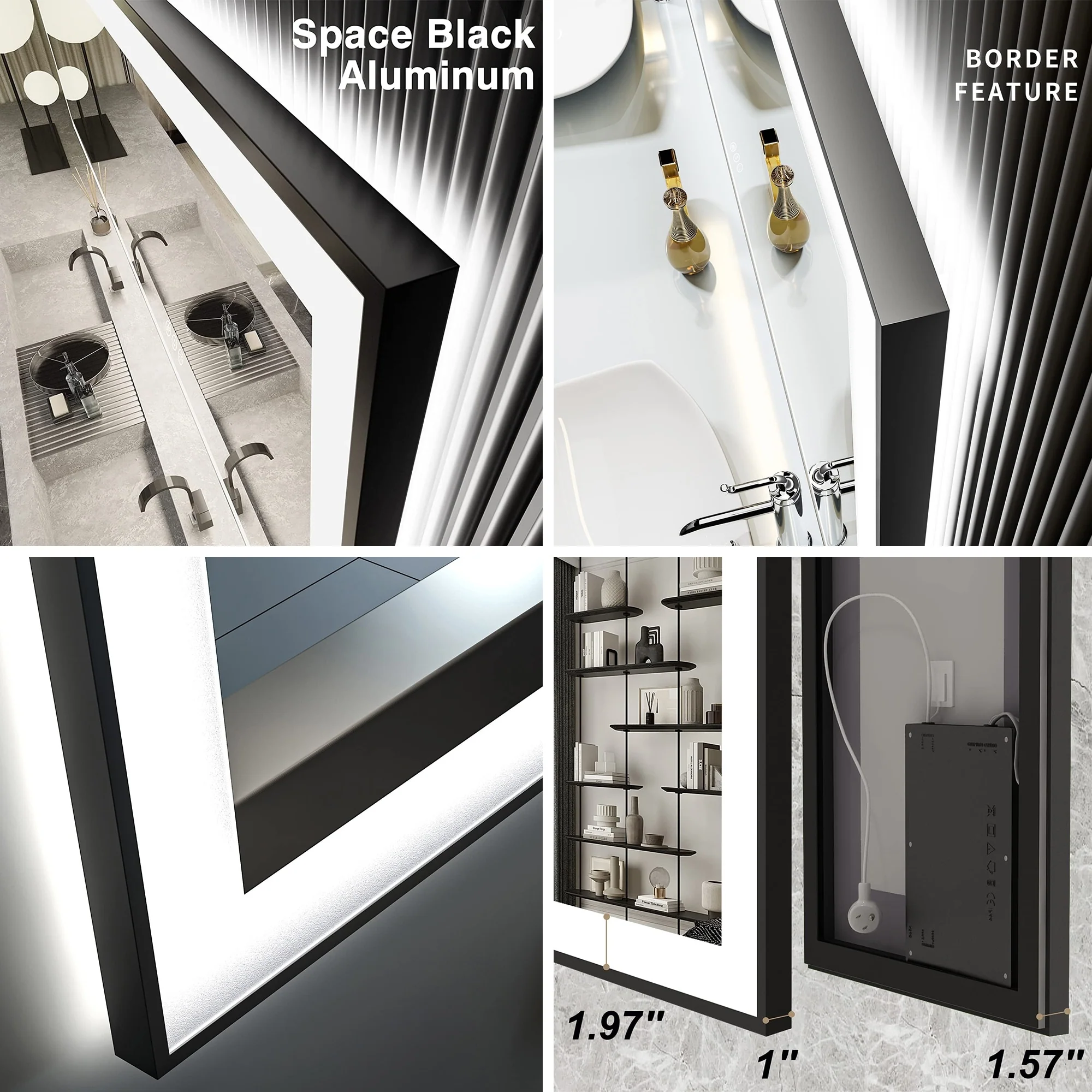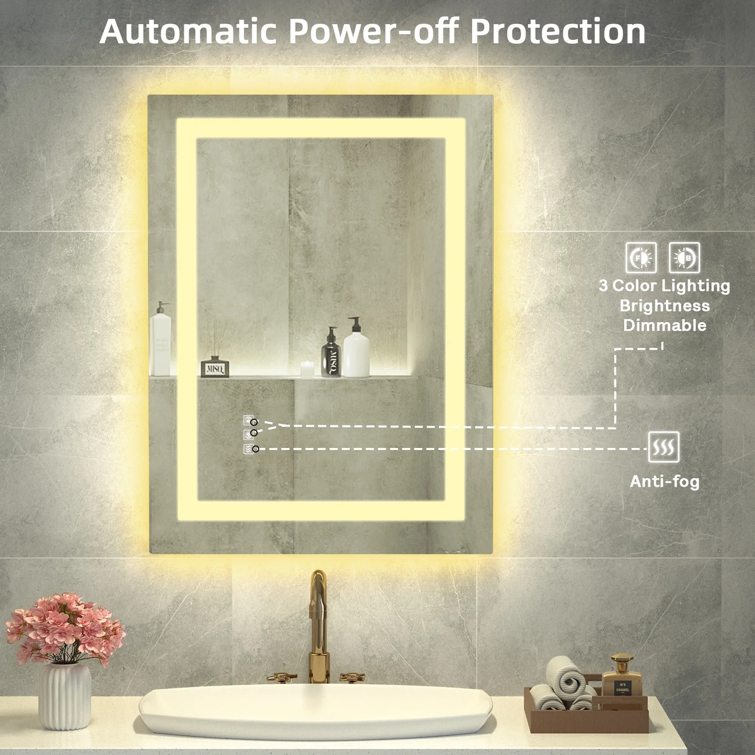 KIOTEE Metal Frame Front and Back LED Lighted Defogger Tempered Glass Bathroom Vanity Mirror with ETL and 3 Years Warranty