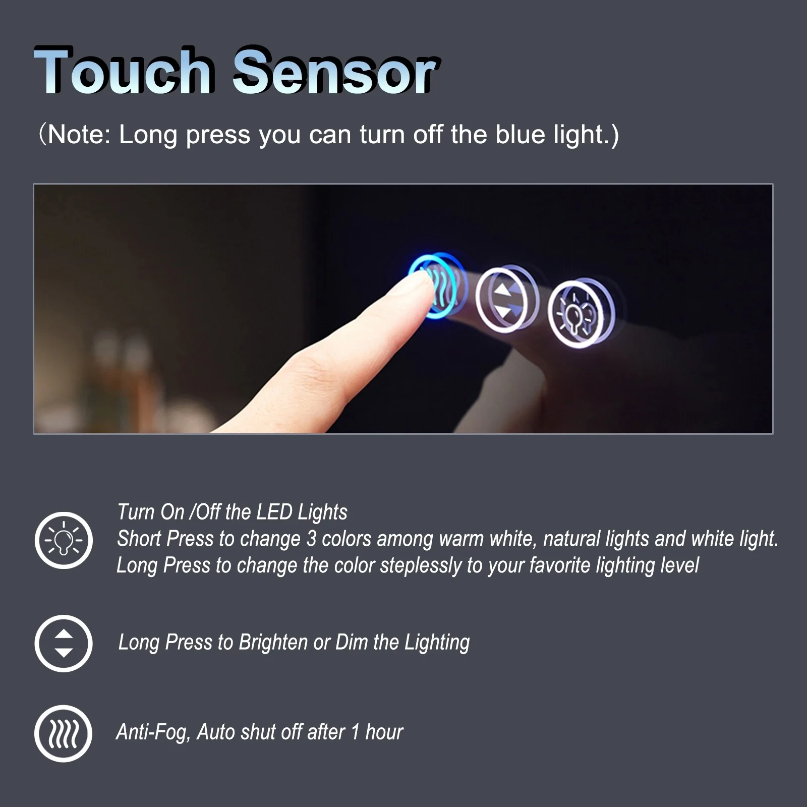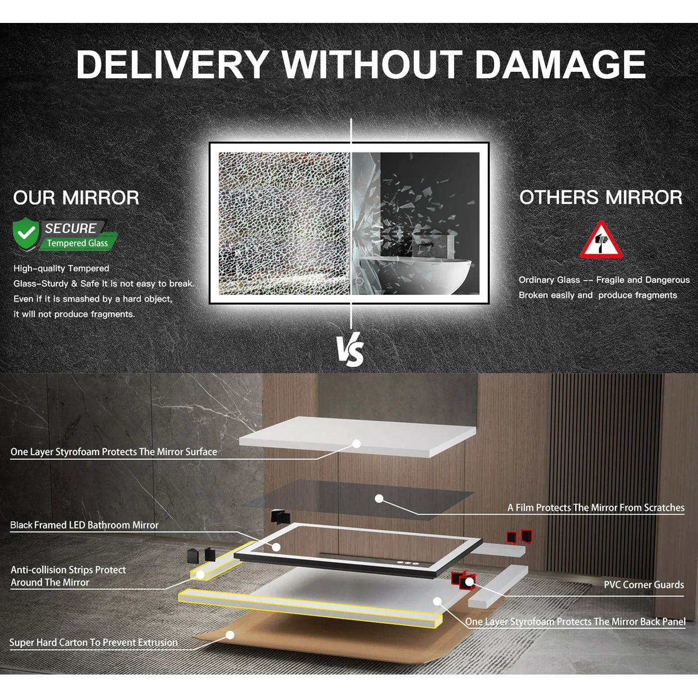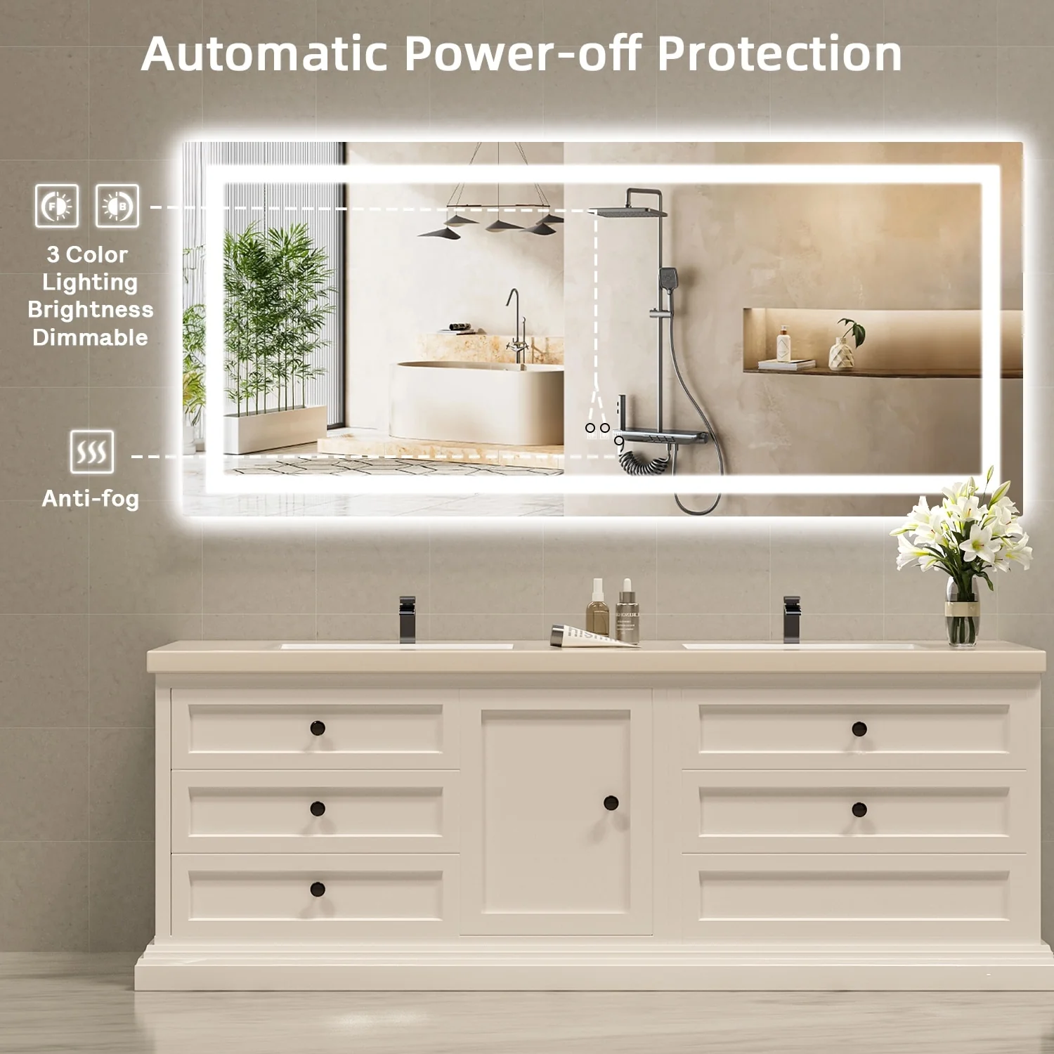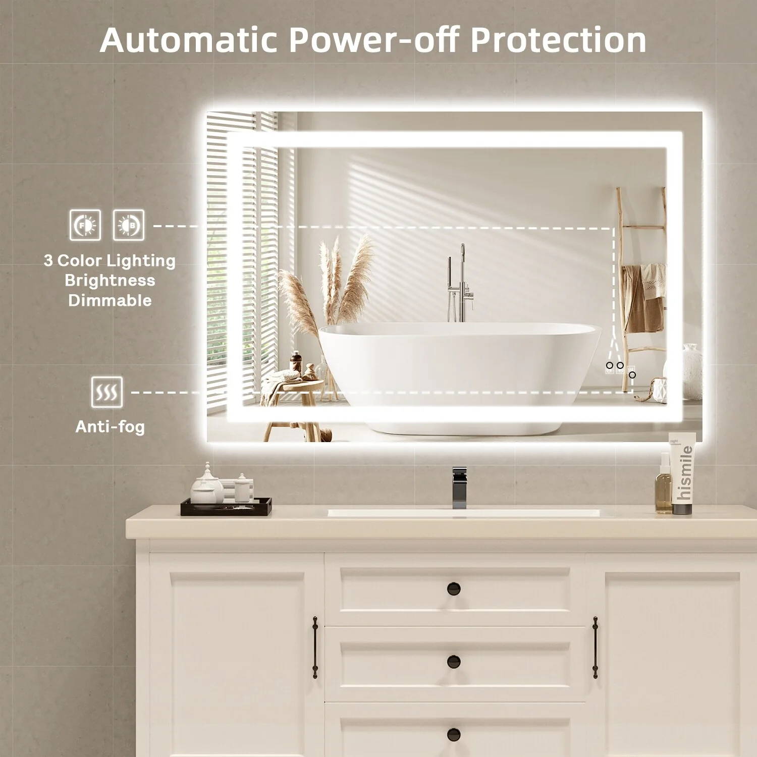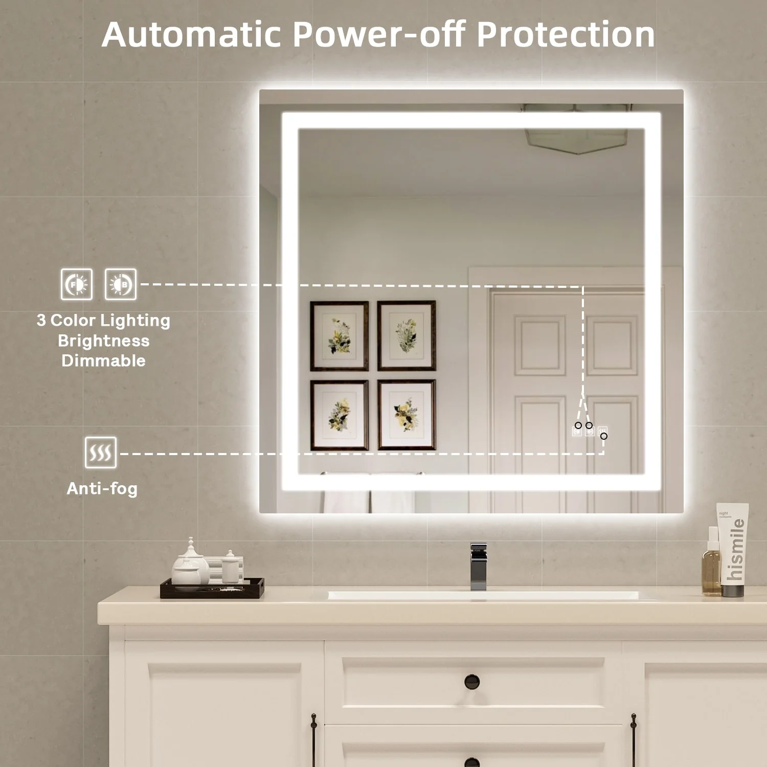 KIOTEE Metal Frame Front and Back LED Lighted Defogger Tempered Glass Bathroom Vanity Mirror with ETL and 3 Years Warranty