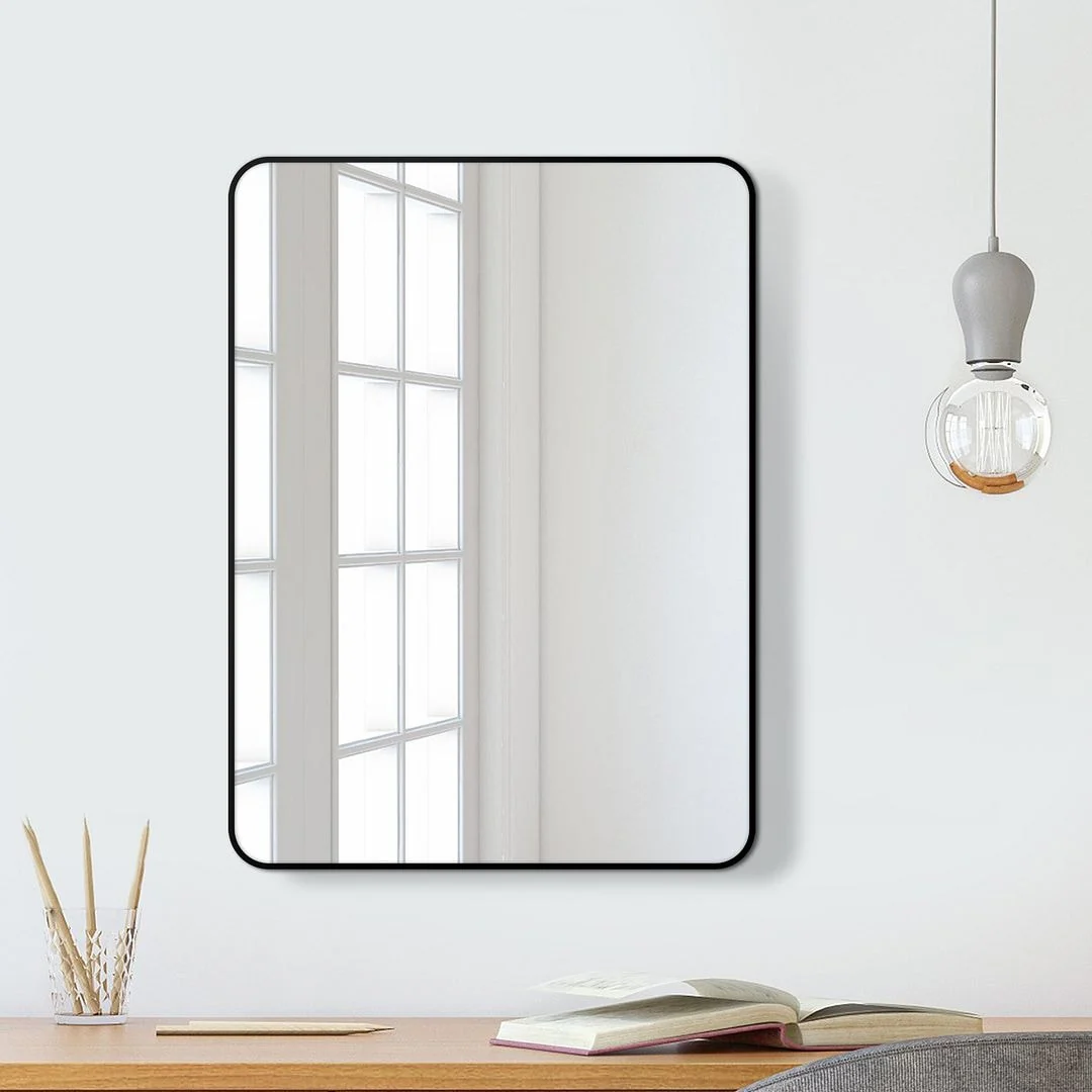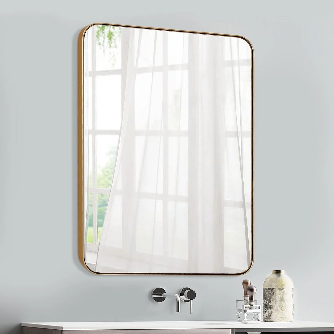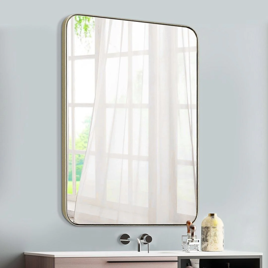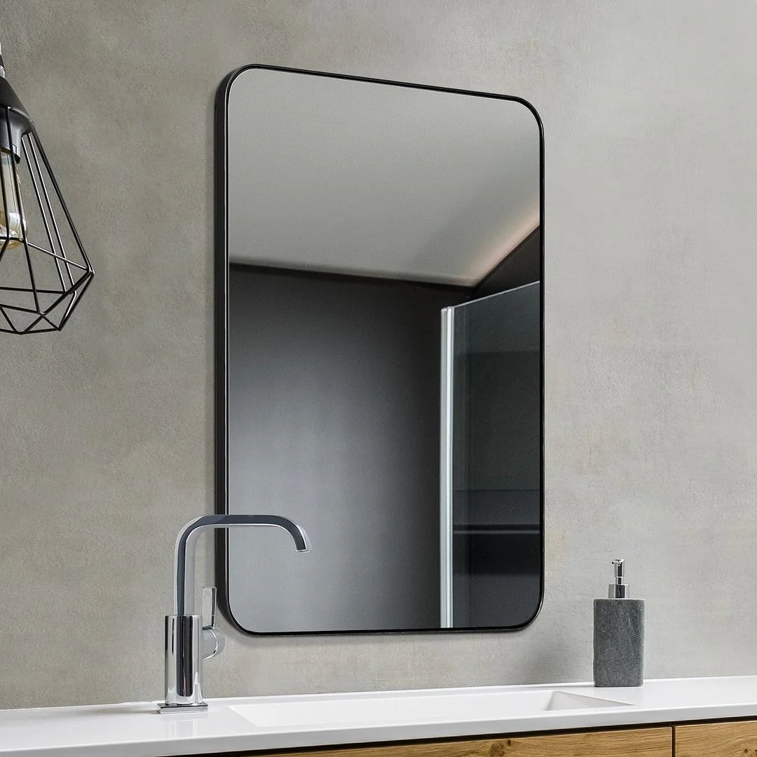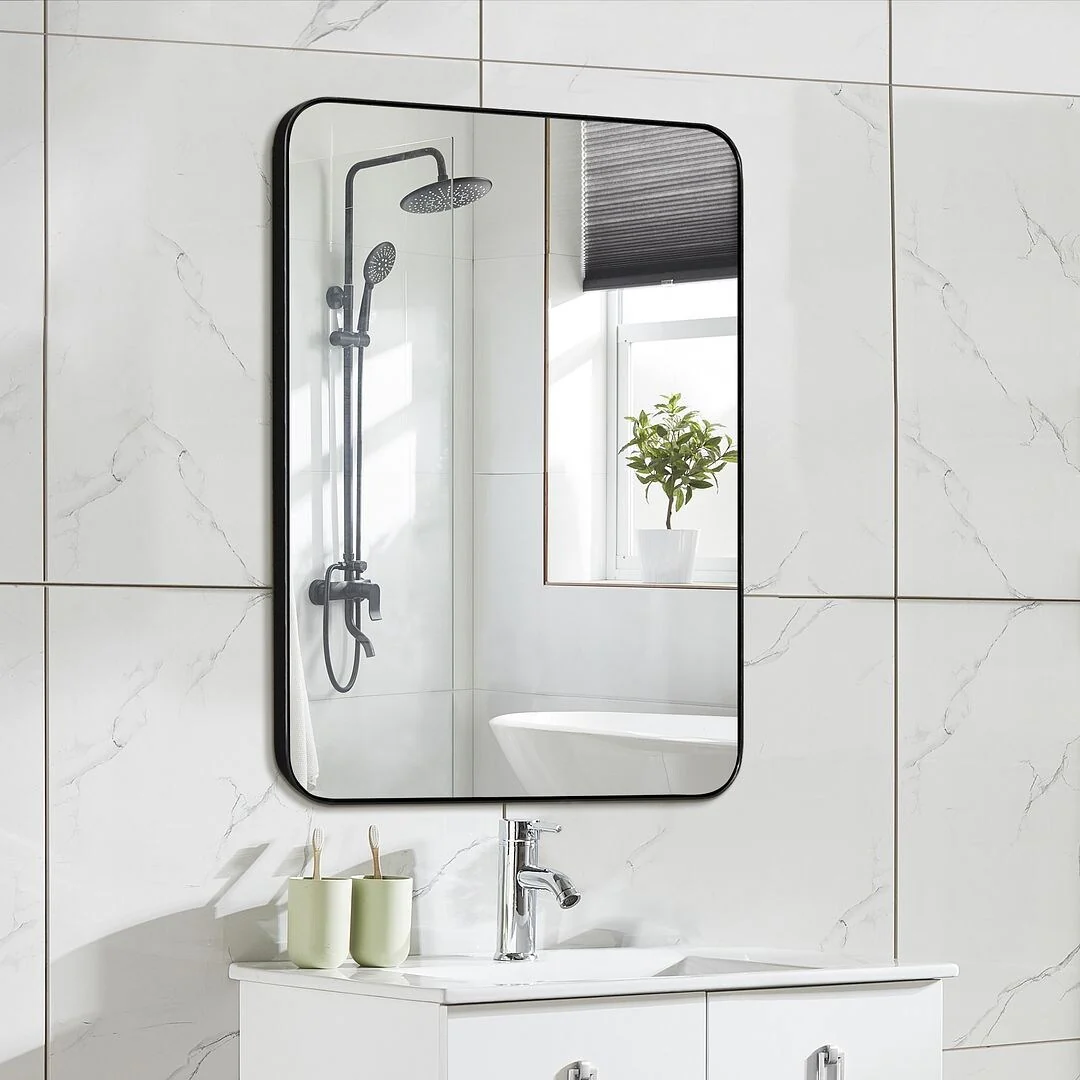Modern Wall Mirrors, Round Mirror with Metal Framed, Bathroom Mirror with Round Corner Vanity Mirror Accent Mirror