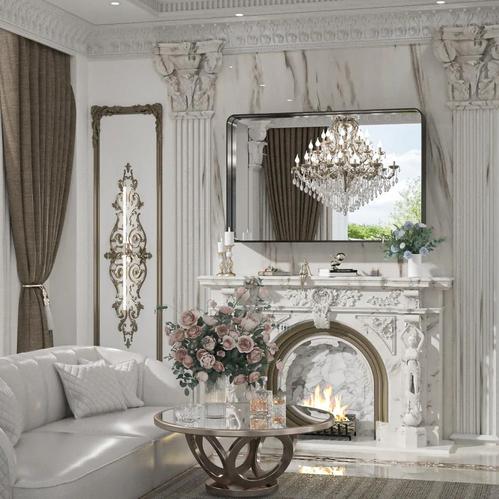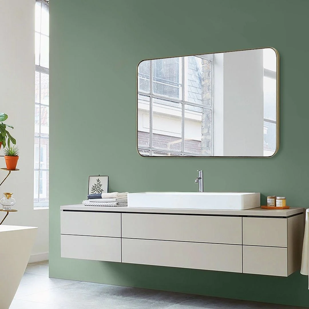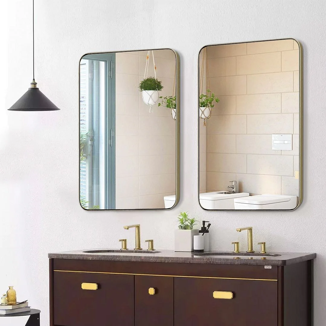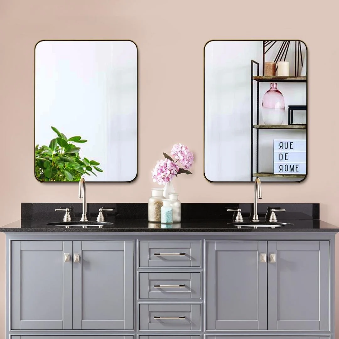 Modern Wall Mirrors, Round Mirror with Metal Framed, Bathroom Mirror with Round Corner Vanity Mirror Accent Mirror