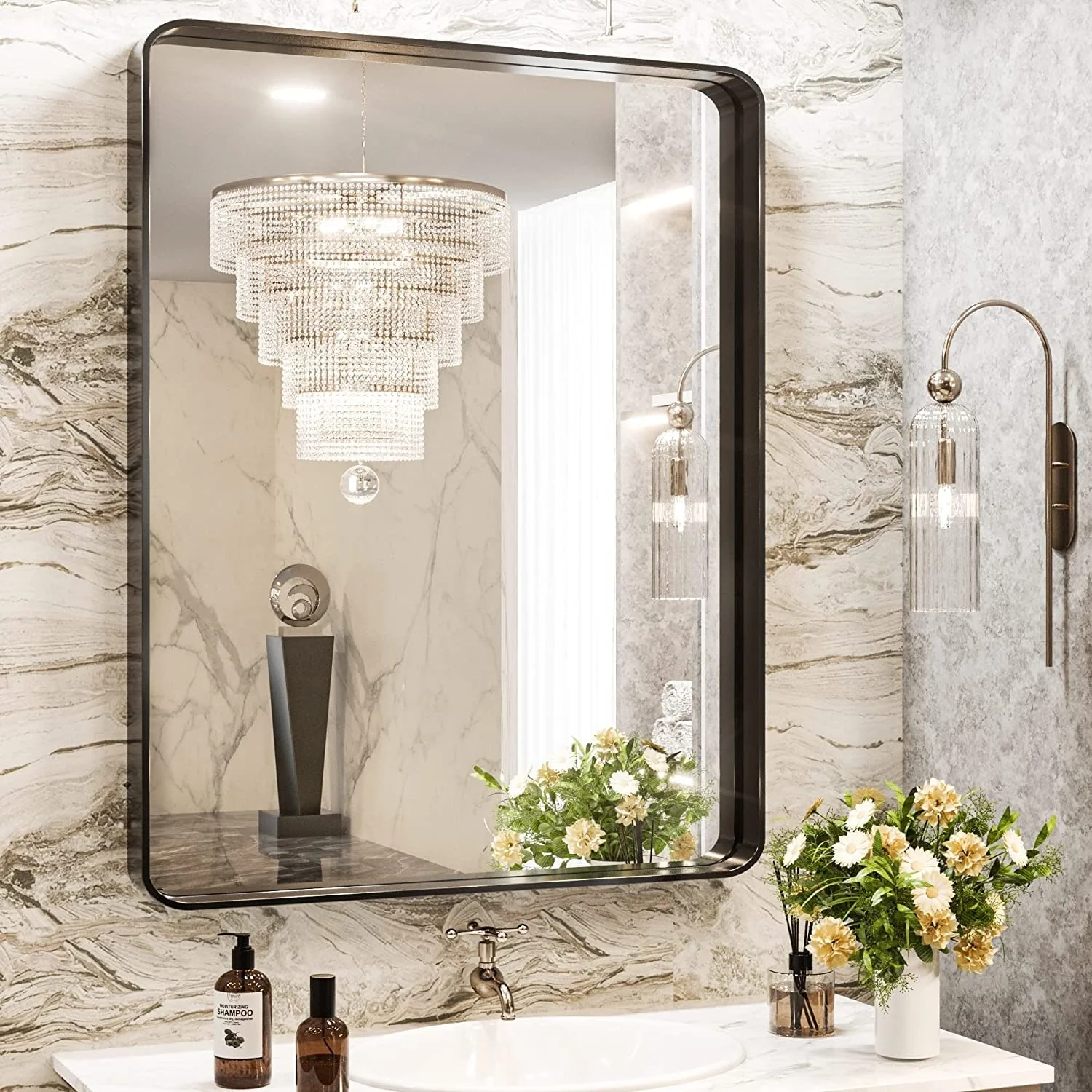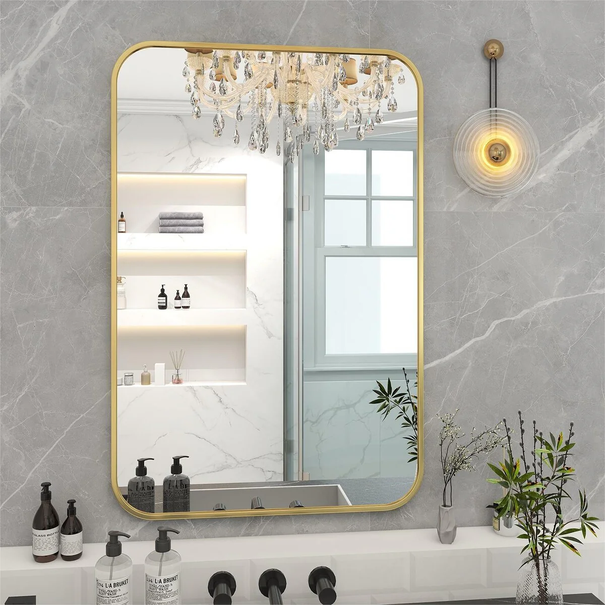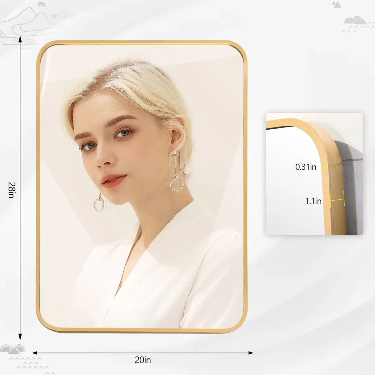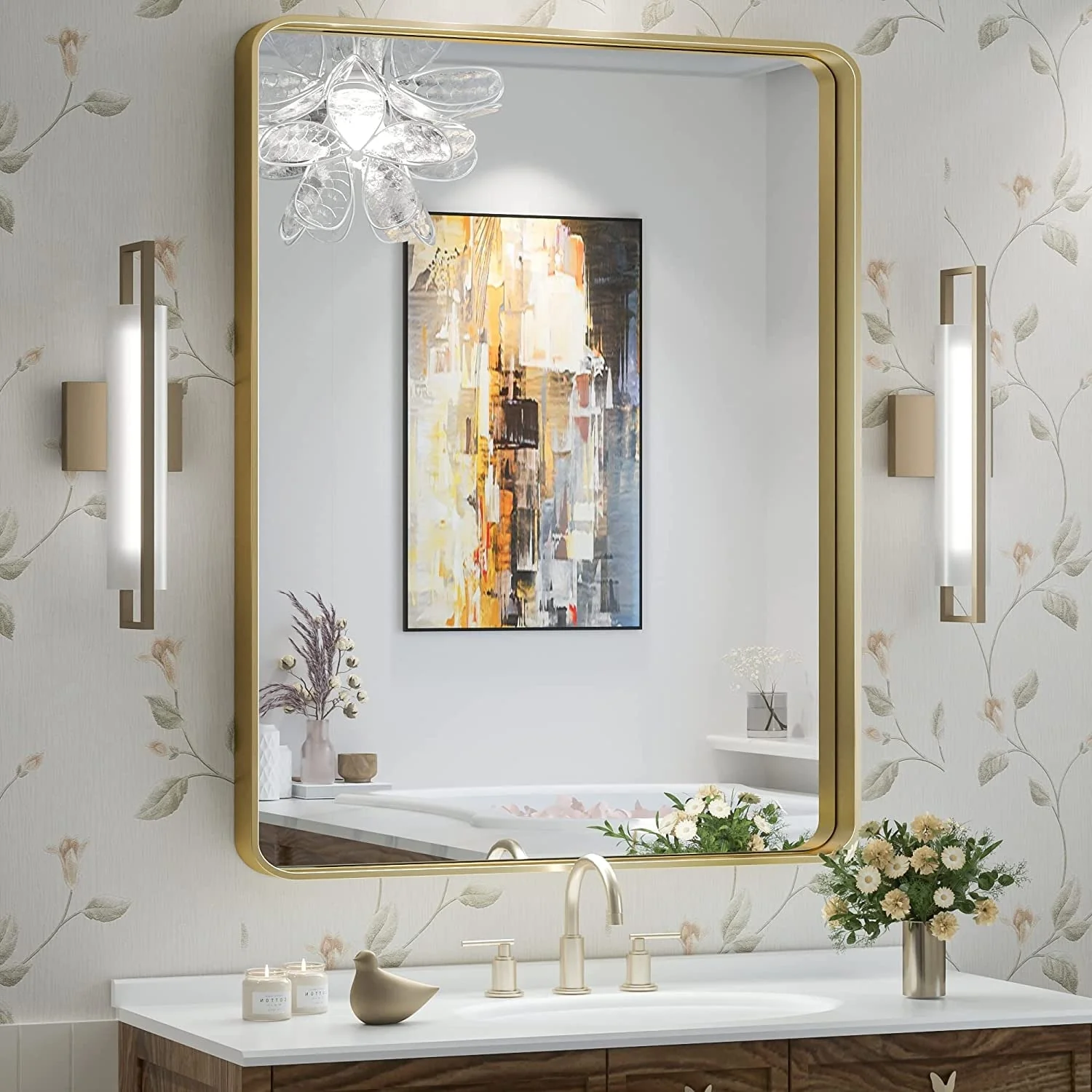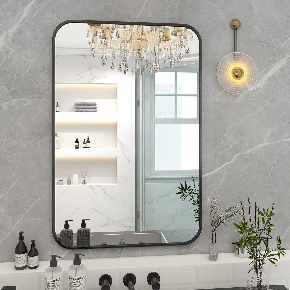 Modern Wall Mirrors, Round Mirror with Metal Framed, Bathroom Mirror with Round Corner Vanity Mirror Accent Mirror