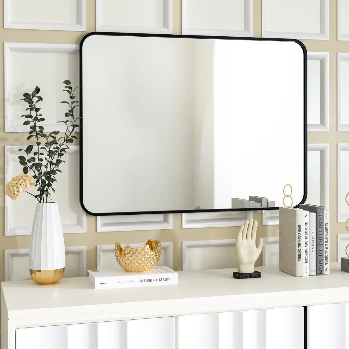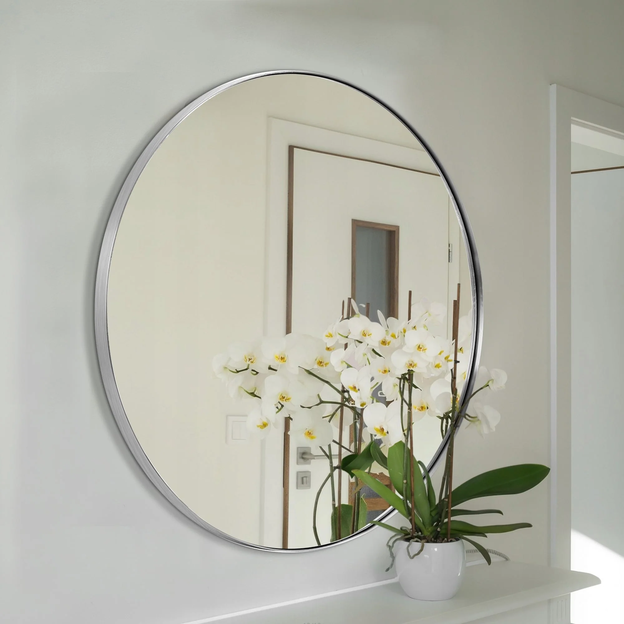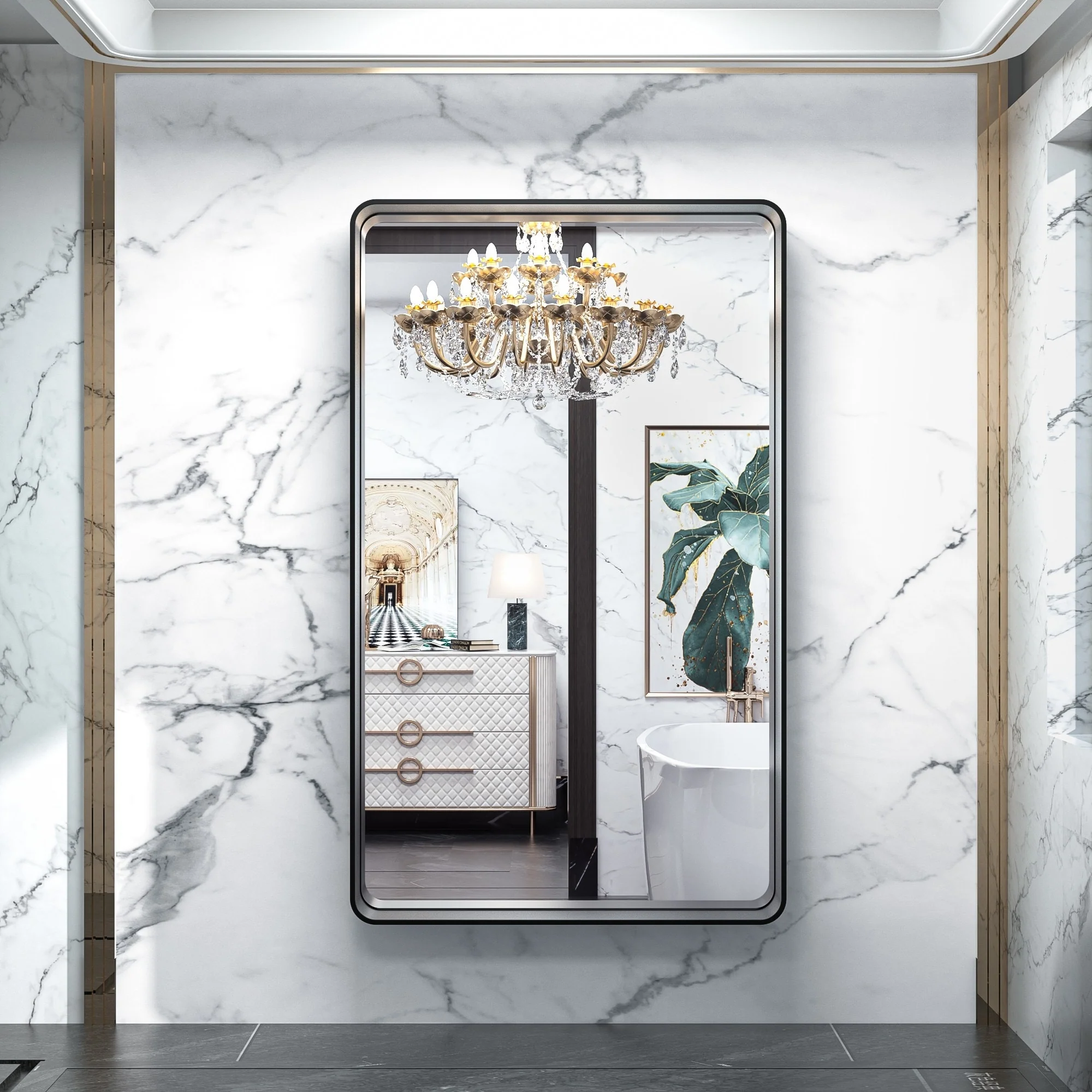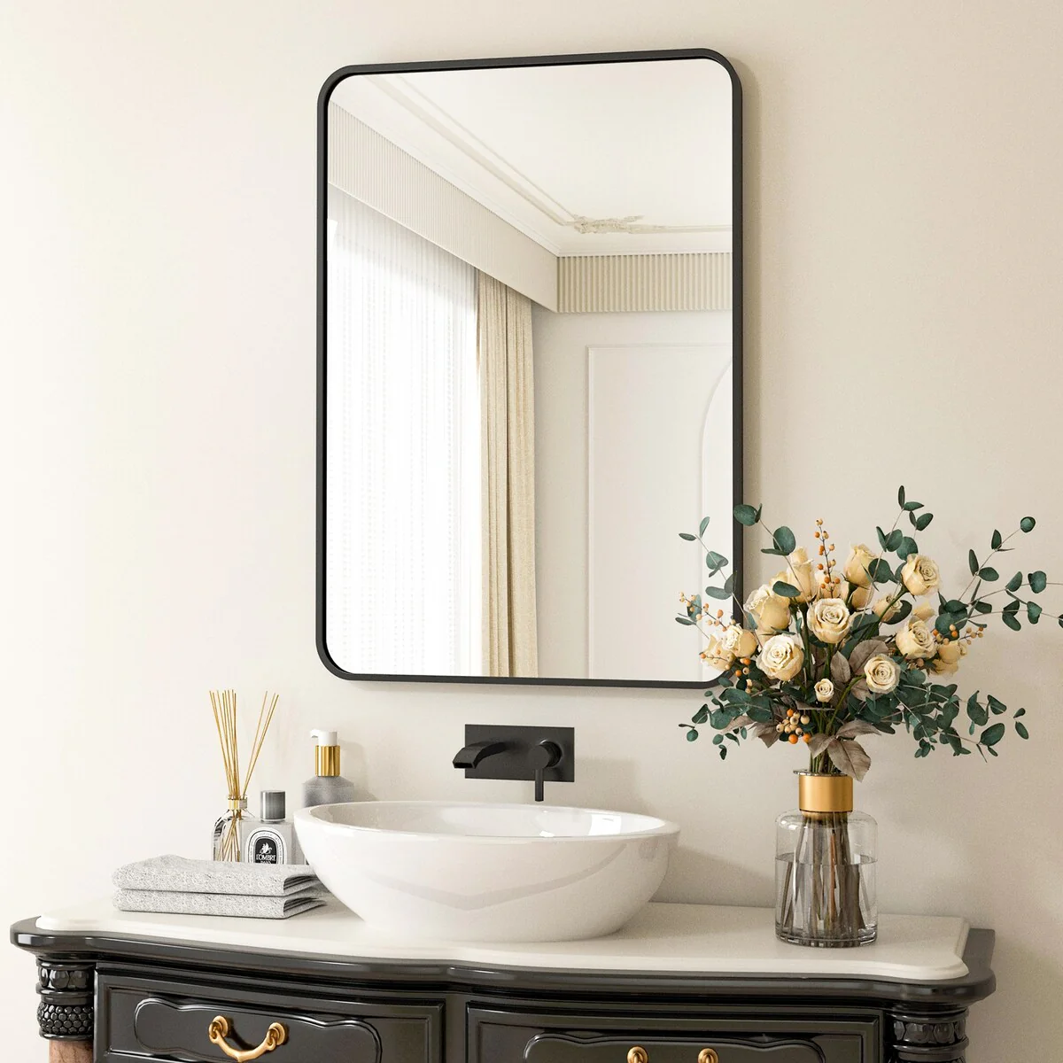 Modern Wall Mirrors, Round Mirror with Metal Framed, Bathroom Mirror with Round Corner Vanity Mirror Accent Mirror