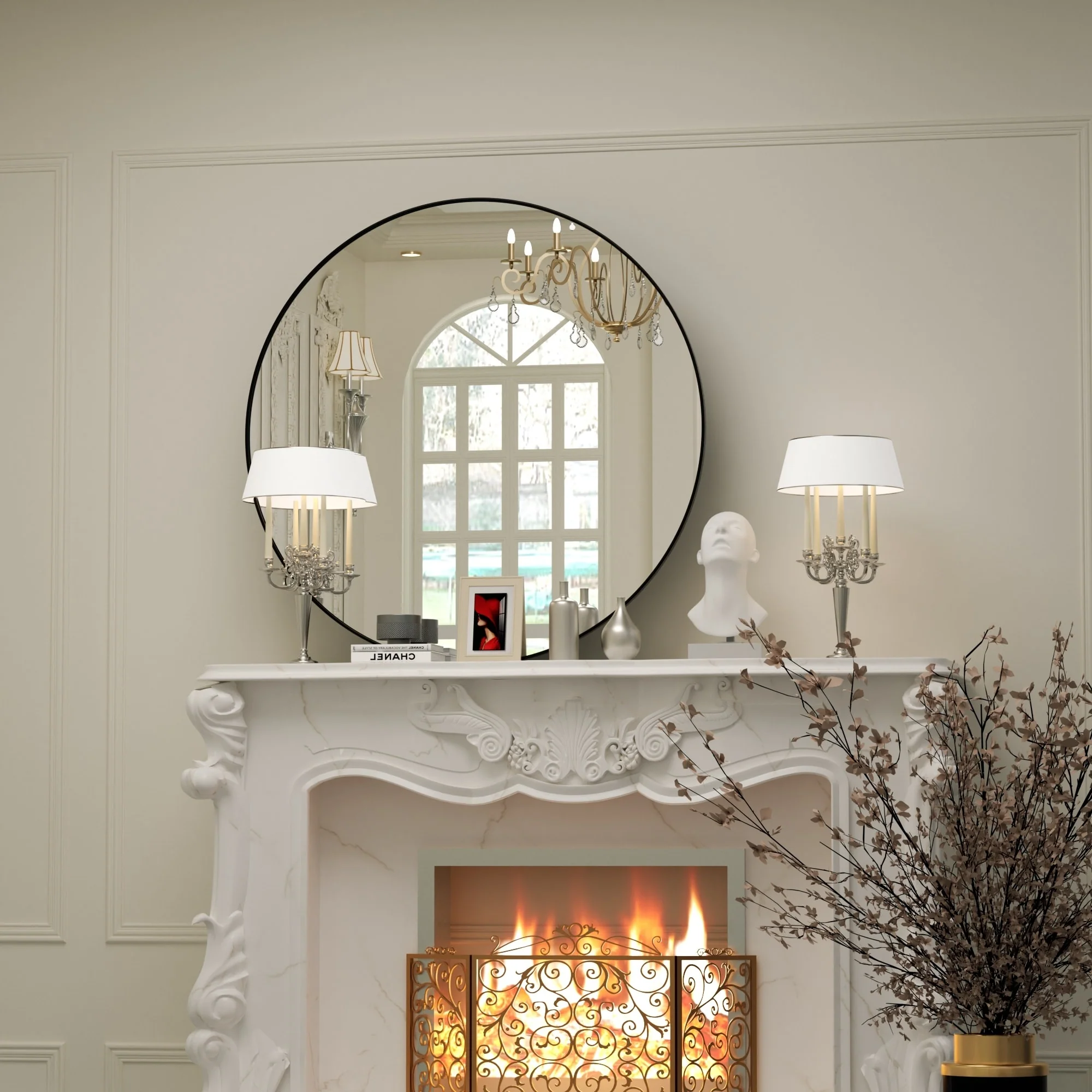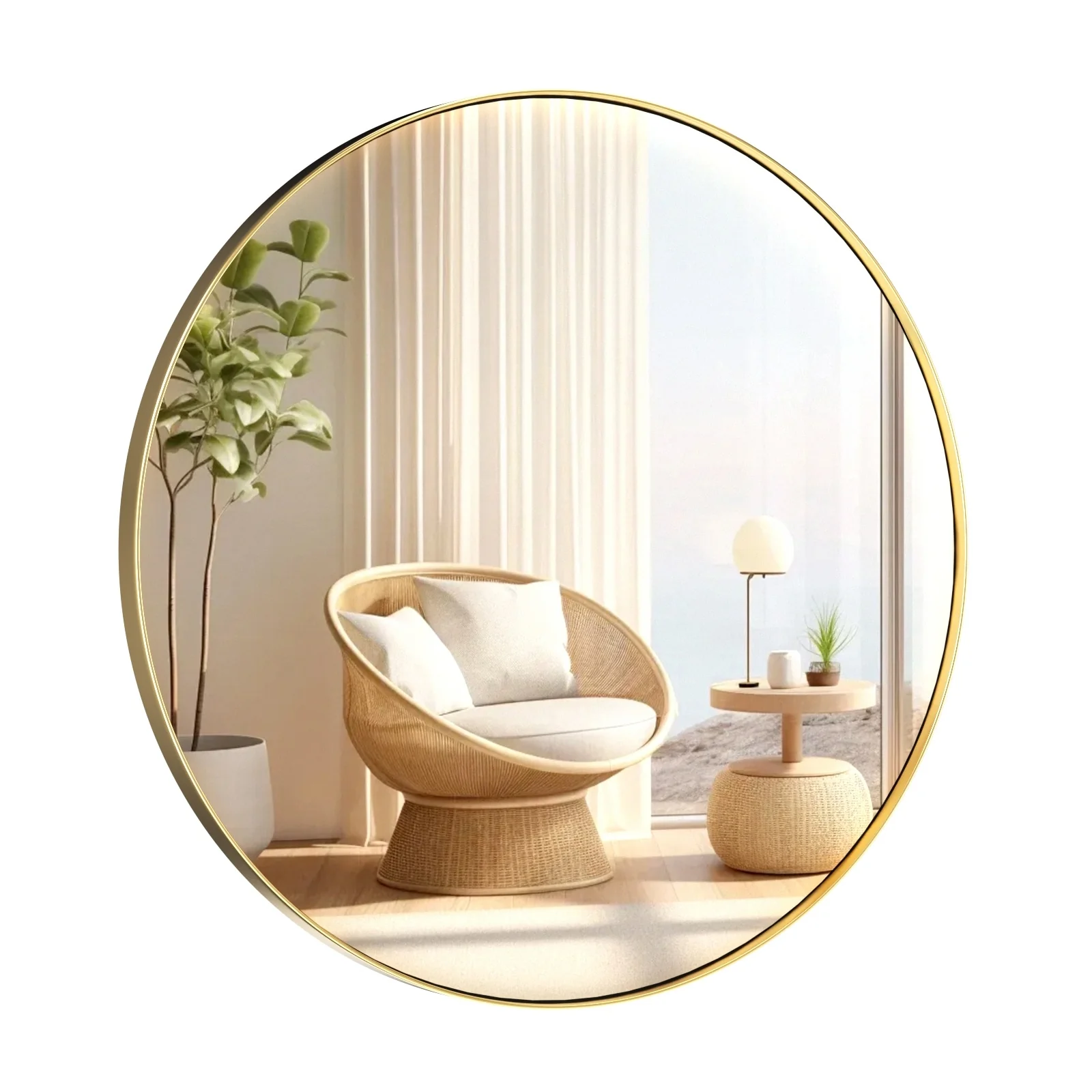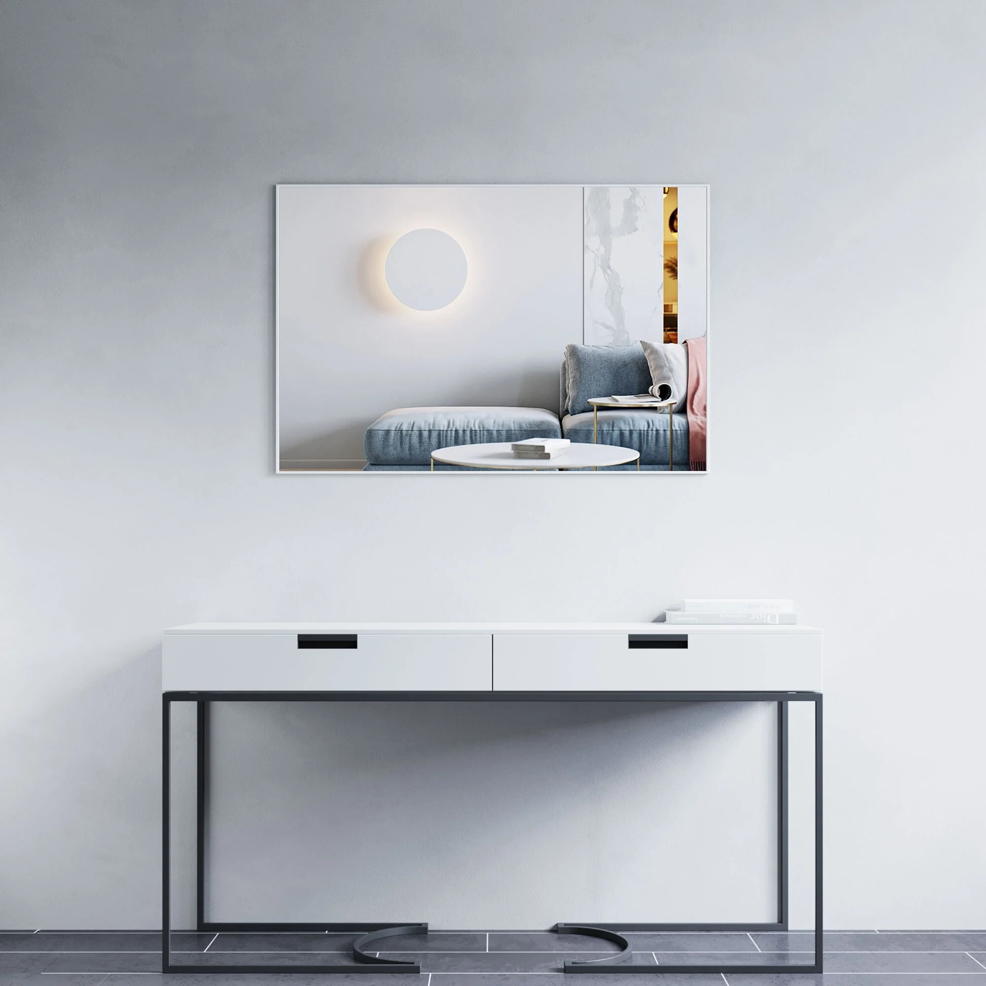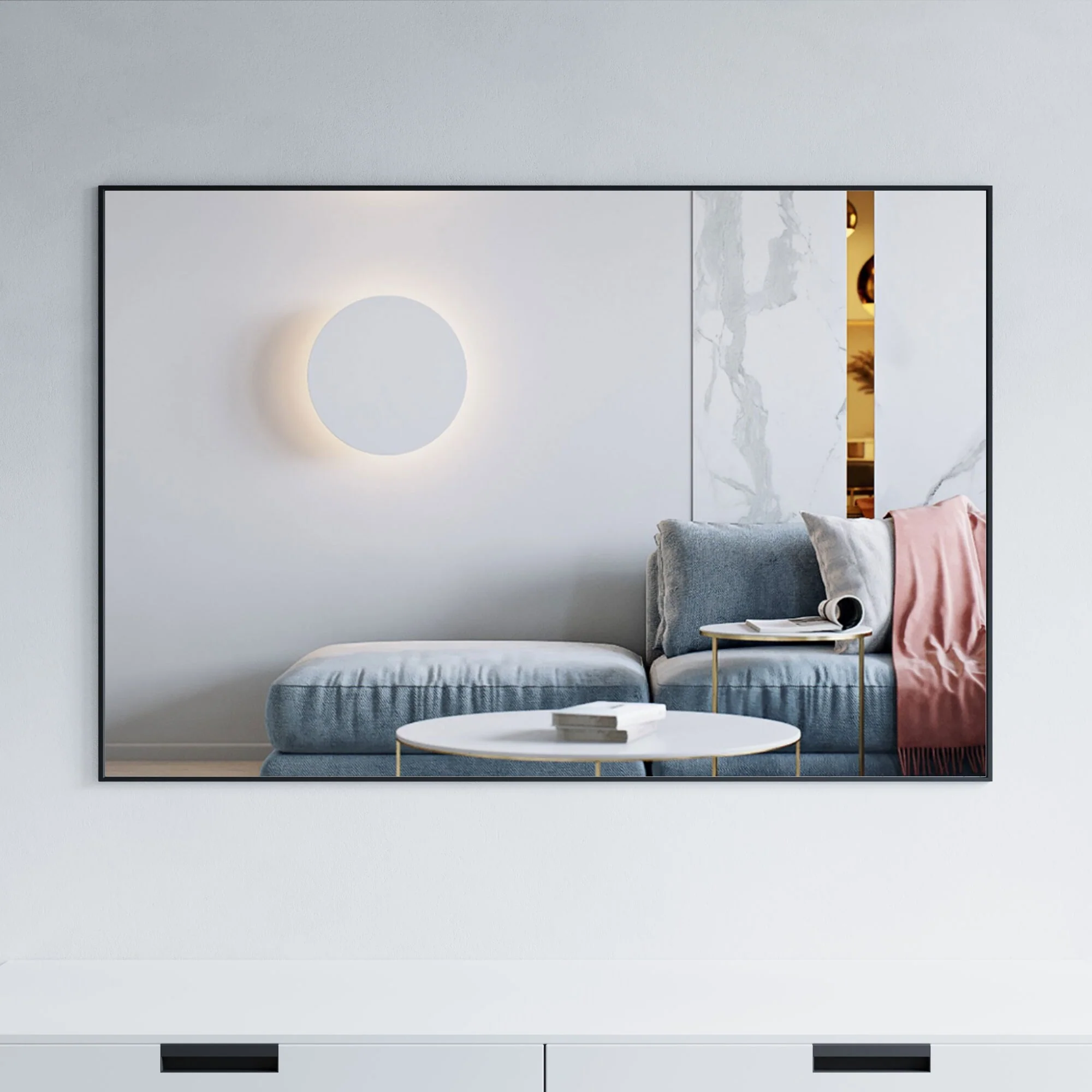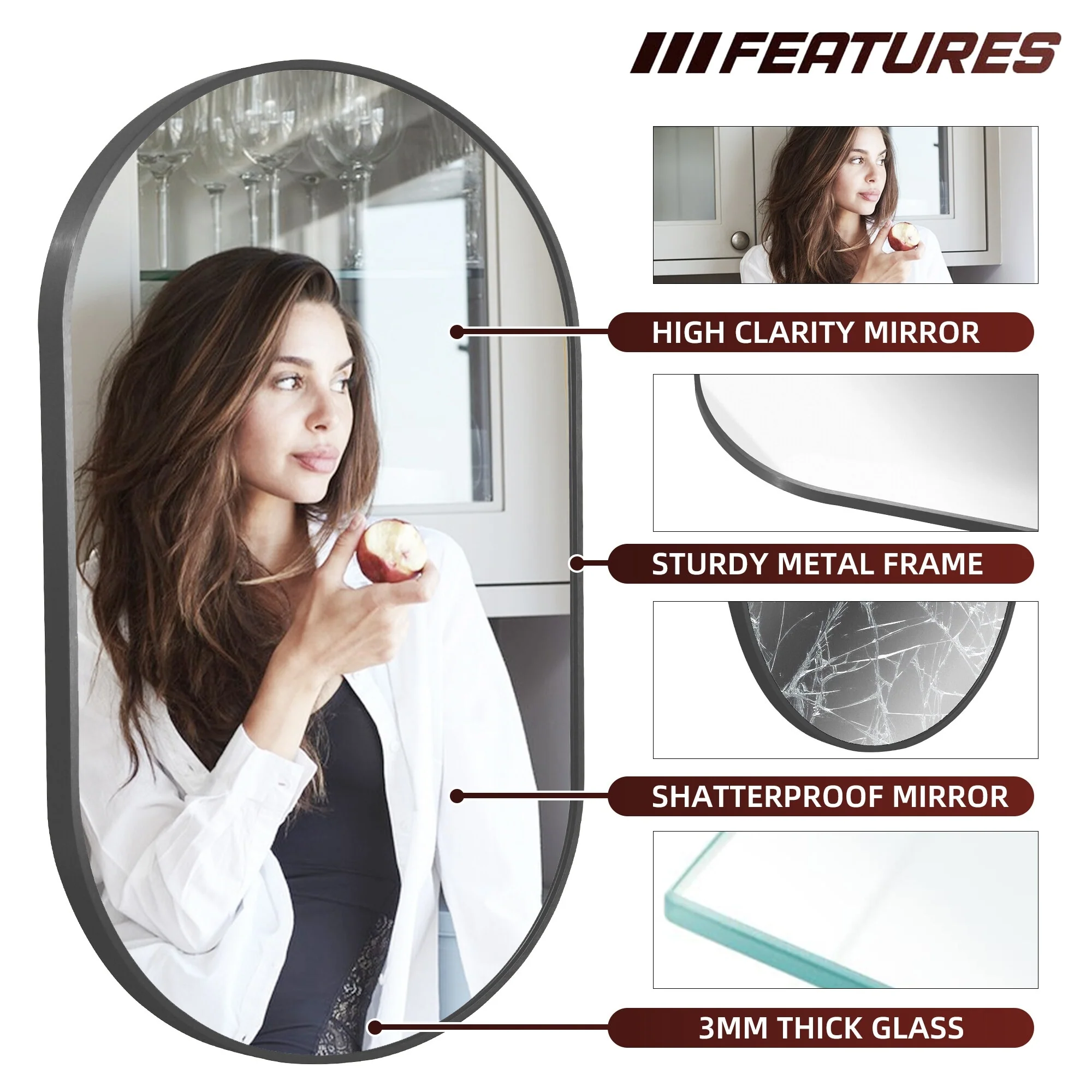 Modern Wall Mirrors, Round Mirror with Metal Framed, Bathroom Mirror with Round Corner Vanity Mirror Accent Mirror