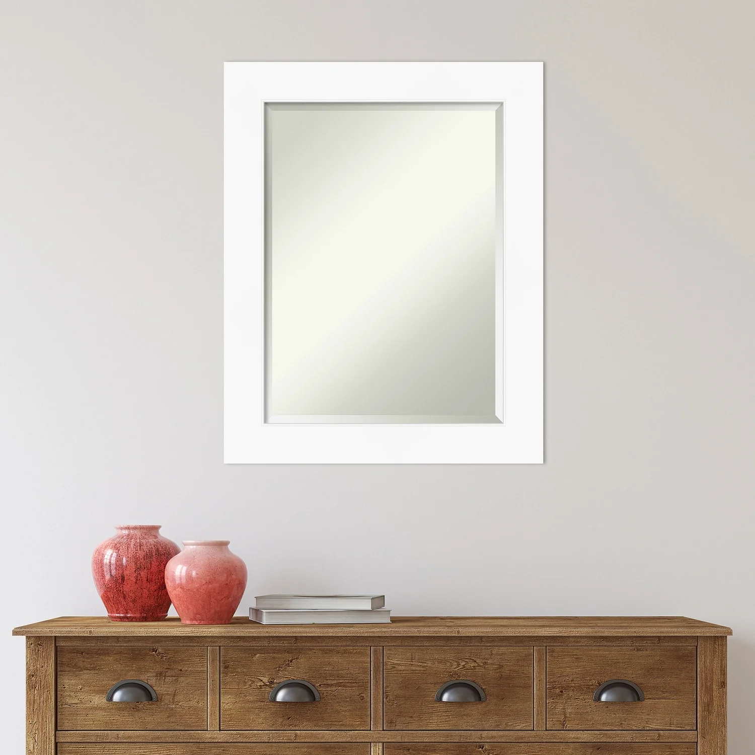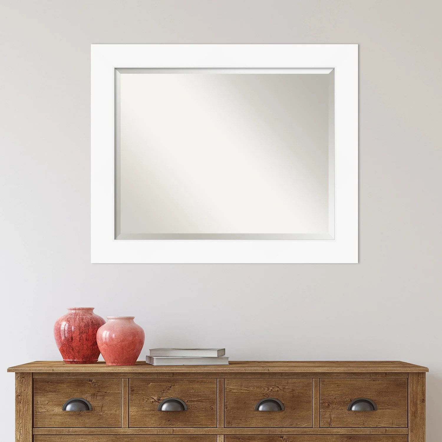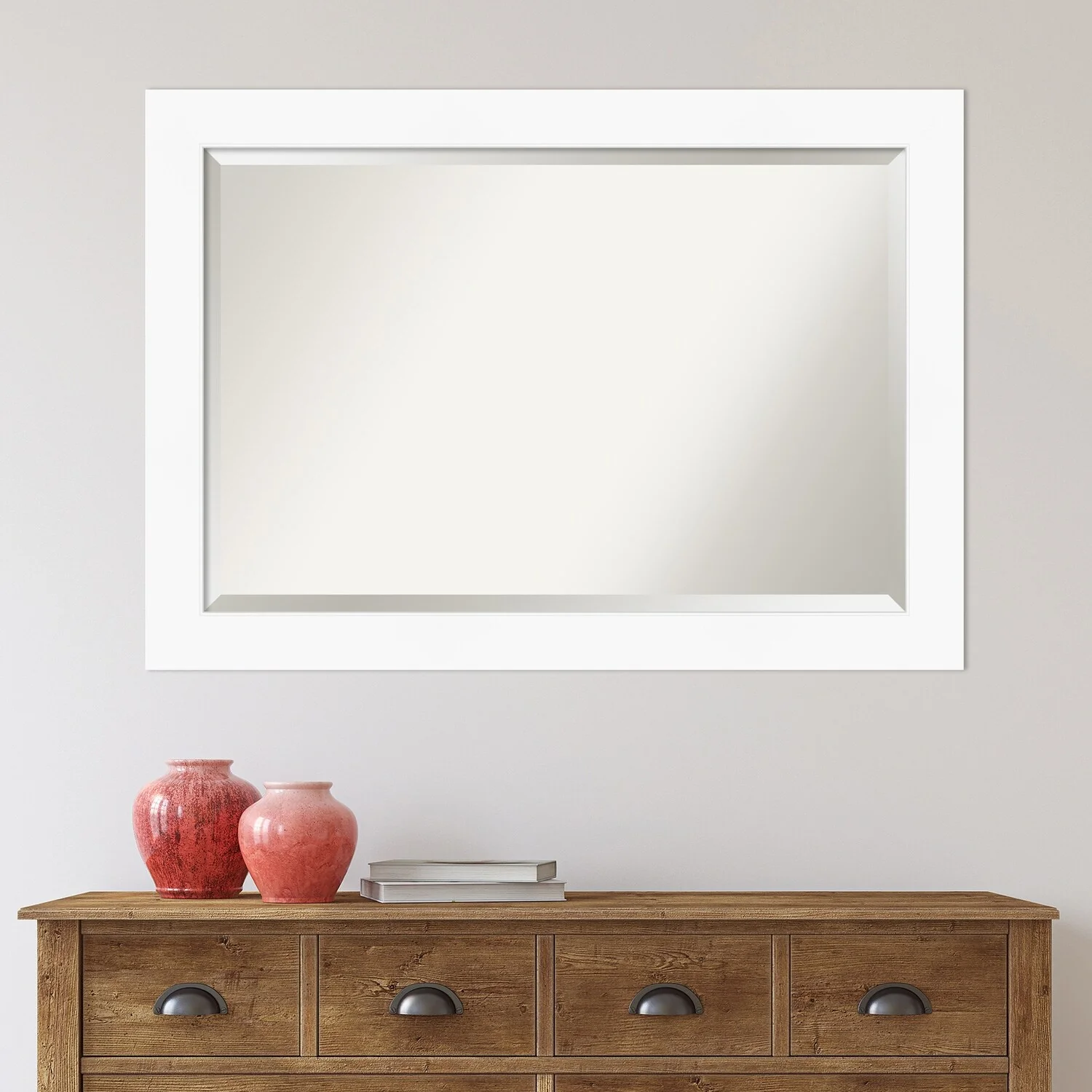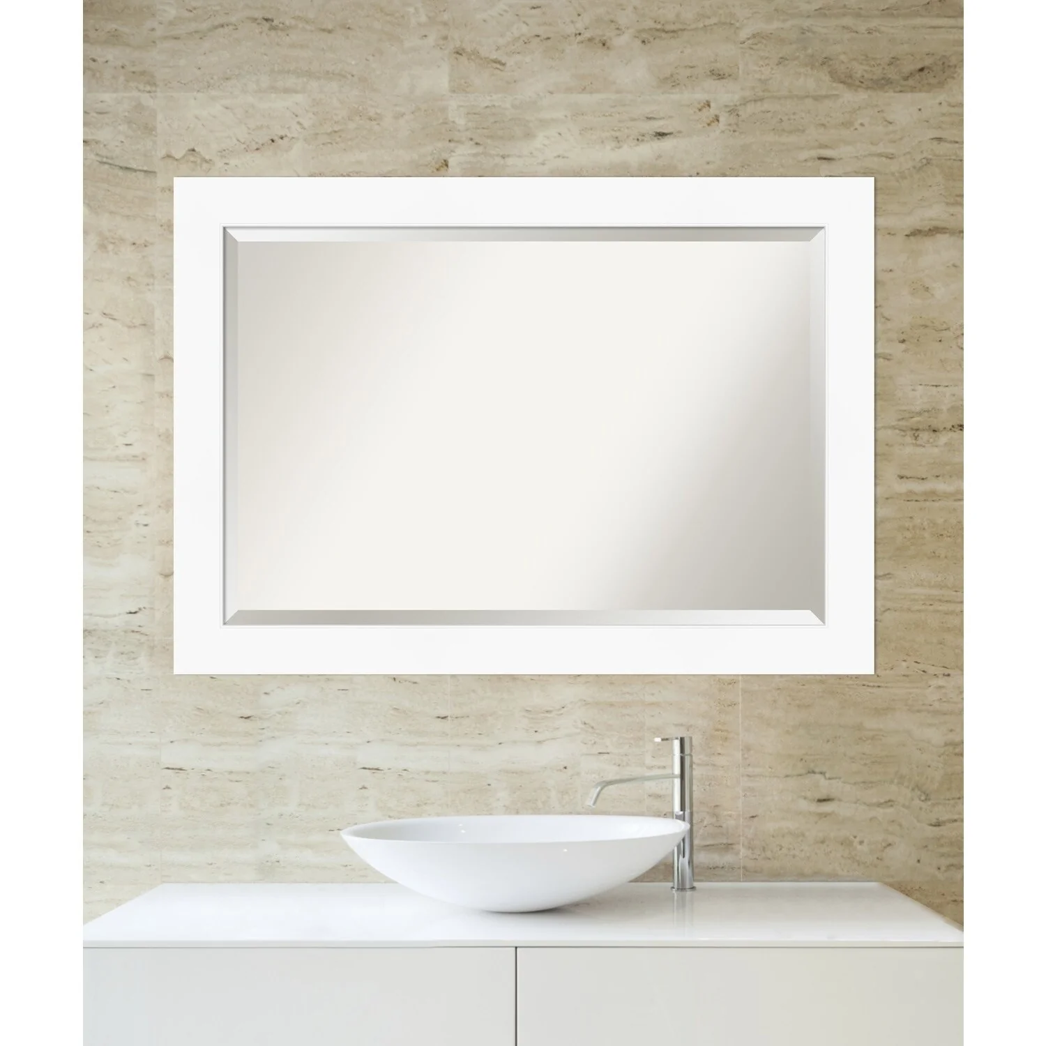 Beveled Bathroom Wall Mirror - Cabinet White Frame