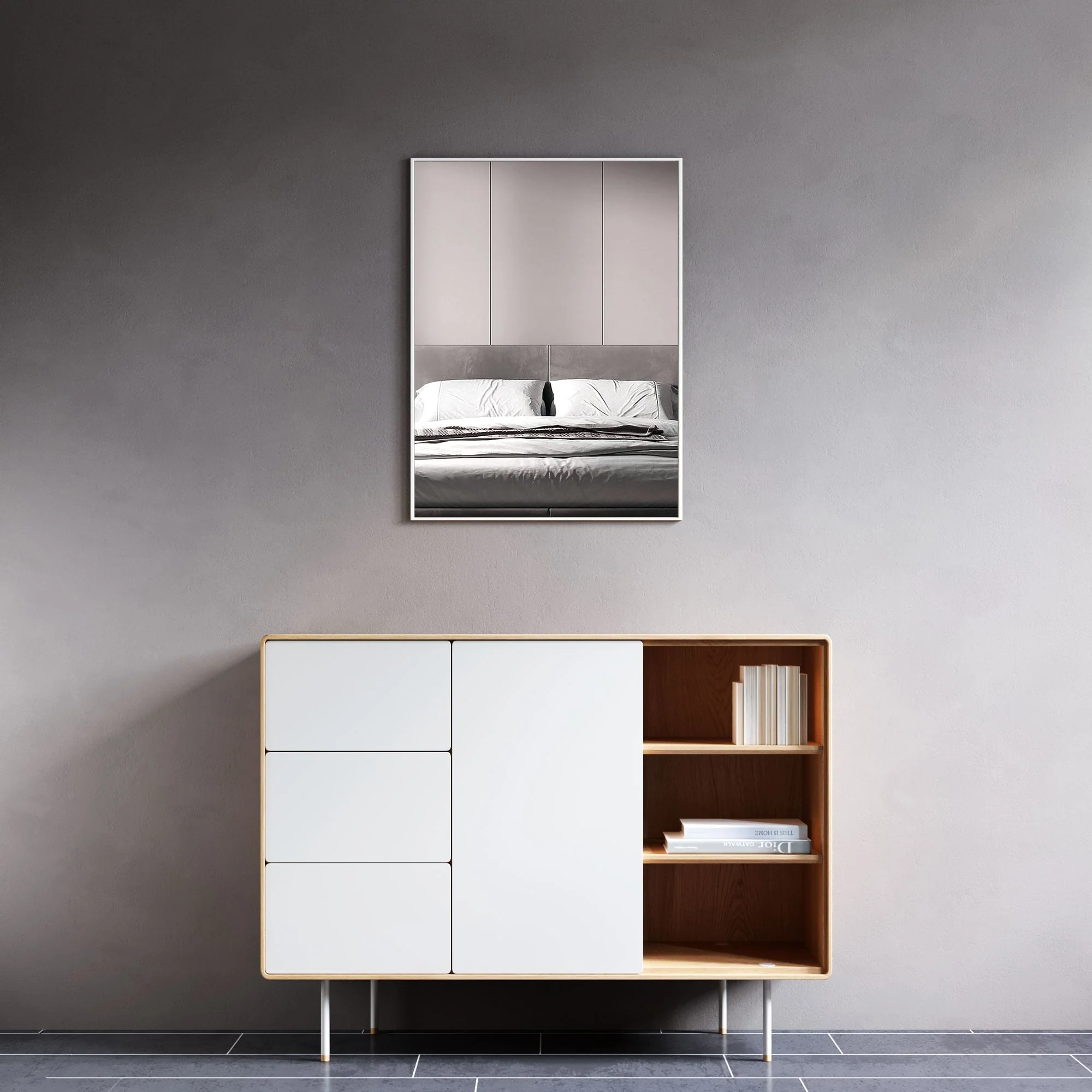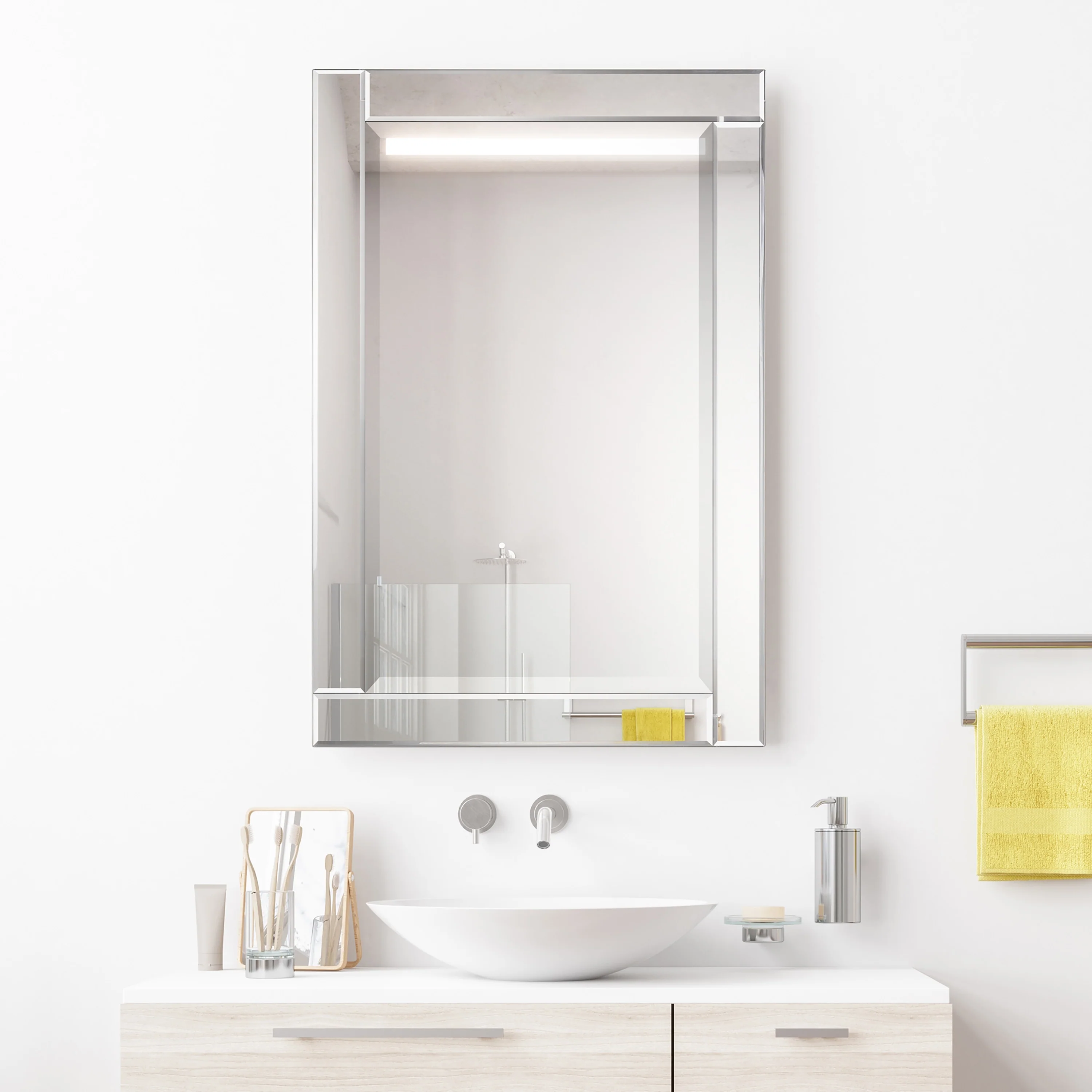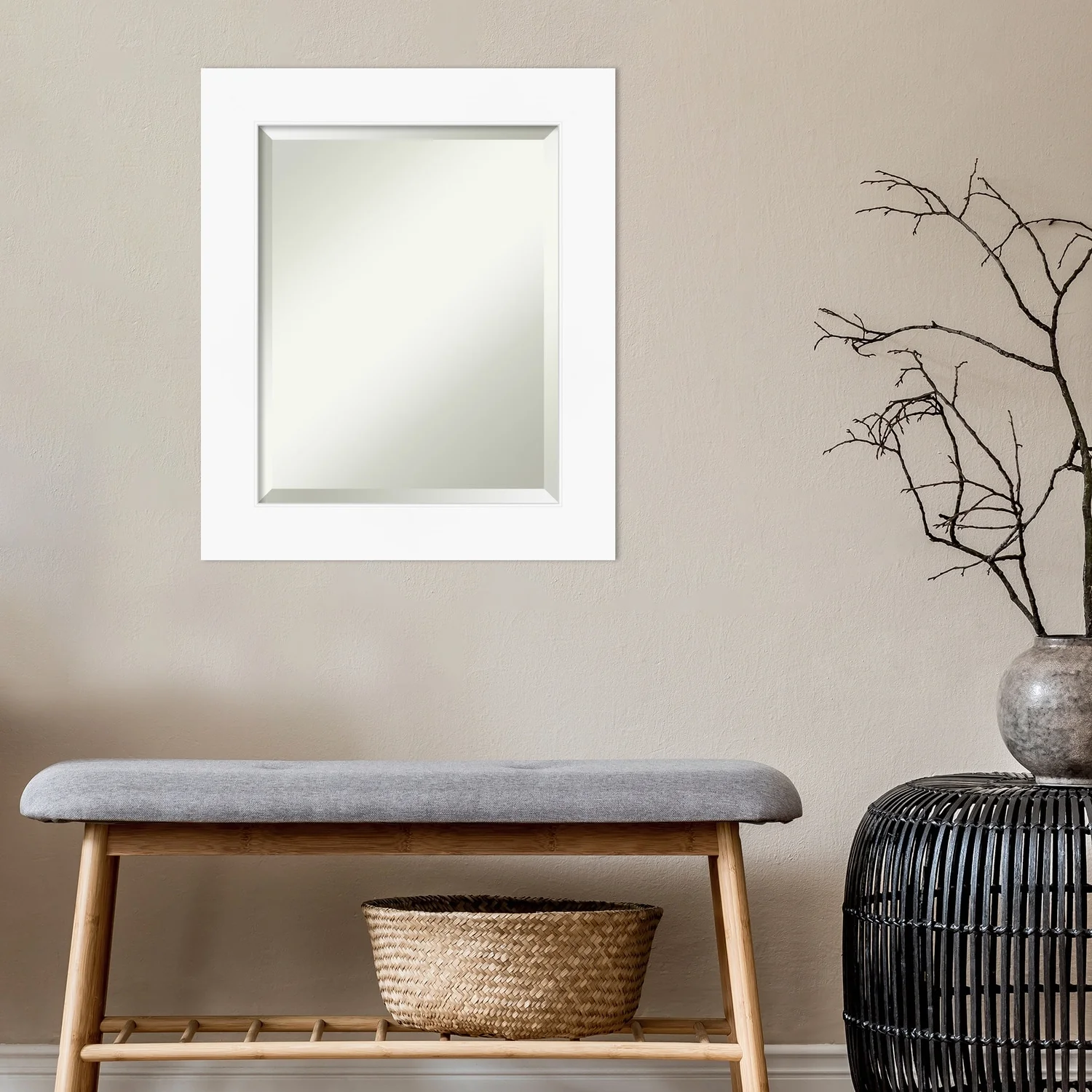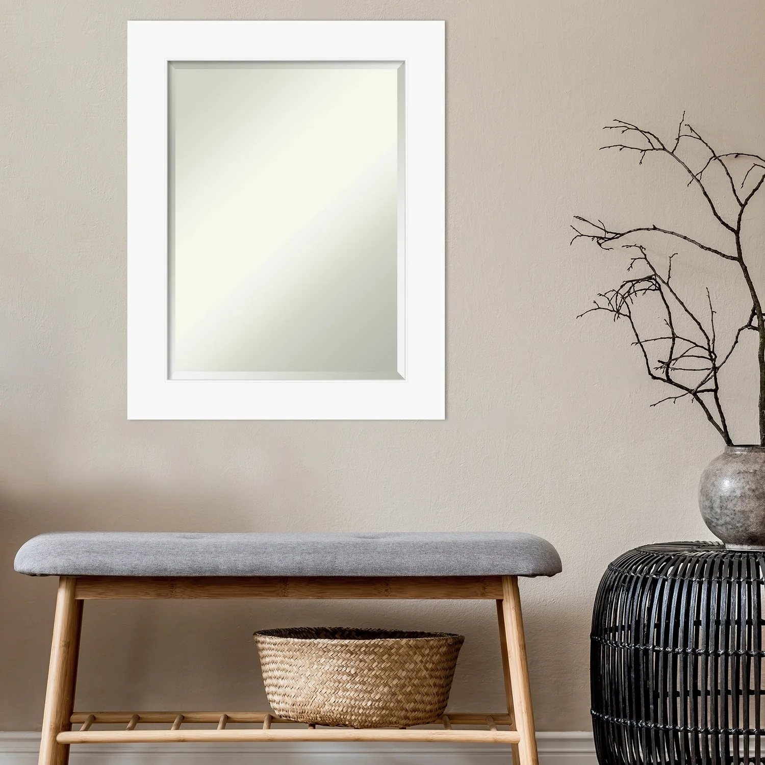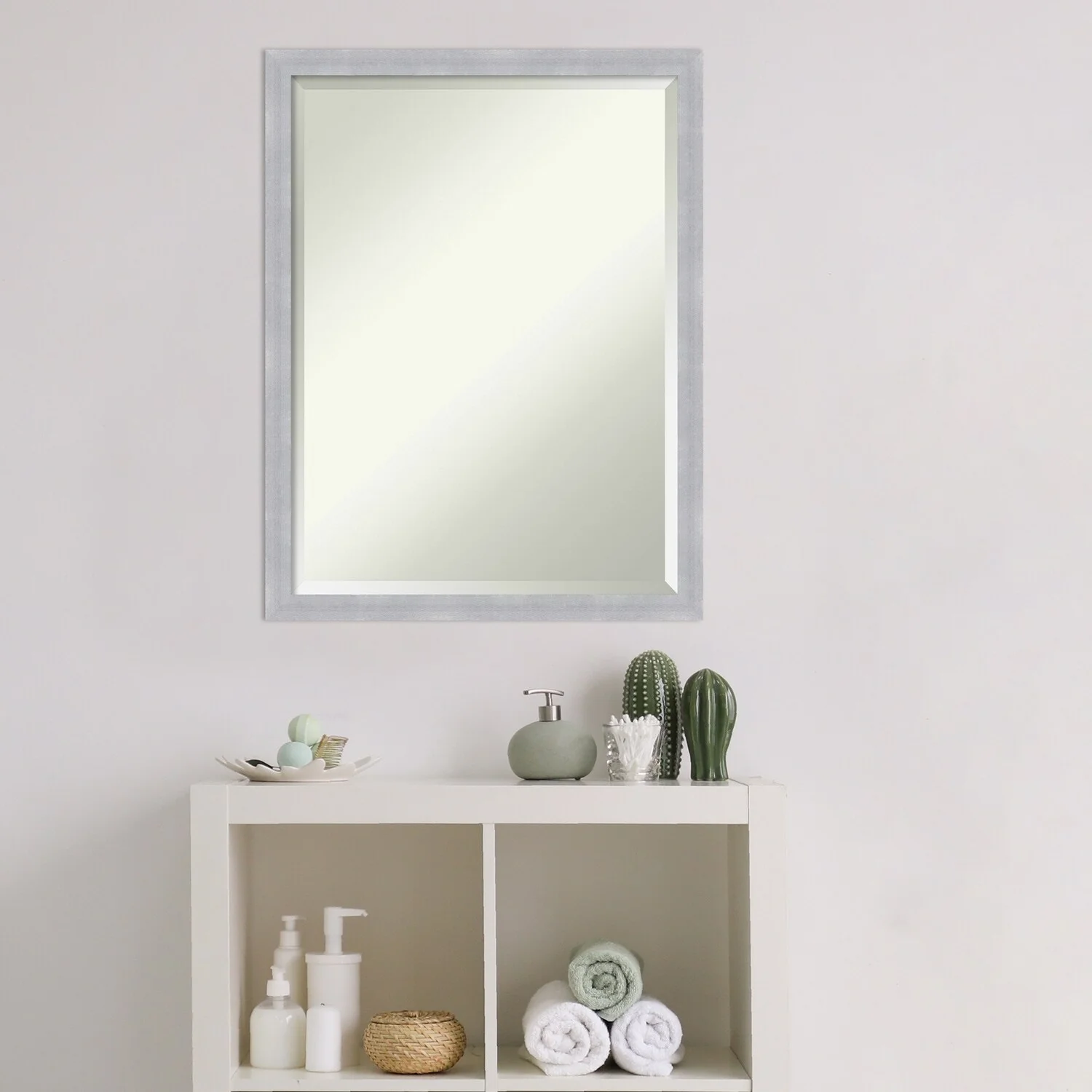 Beveled Bathroom Wall Mirror - Cabinet White Frame