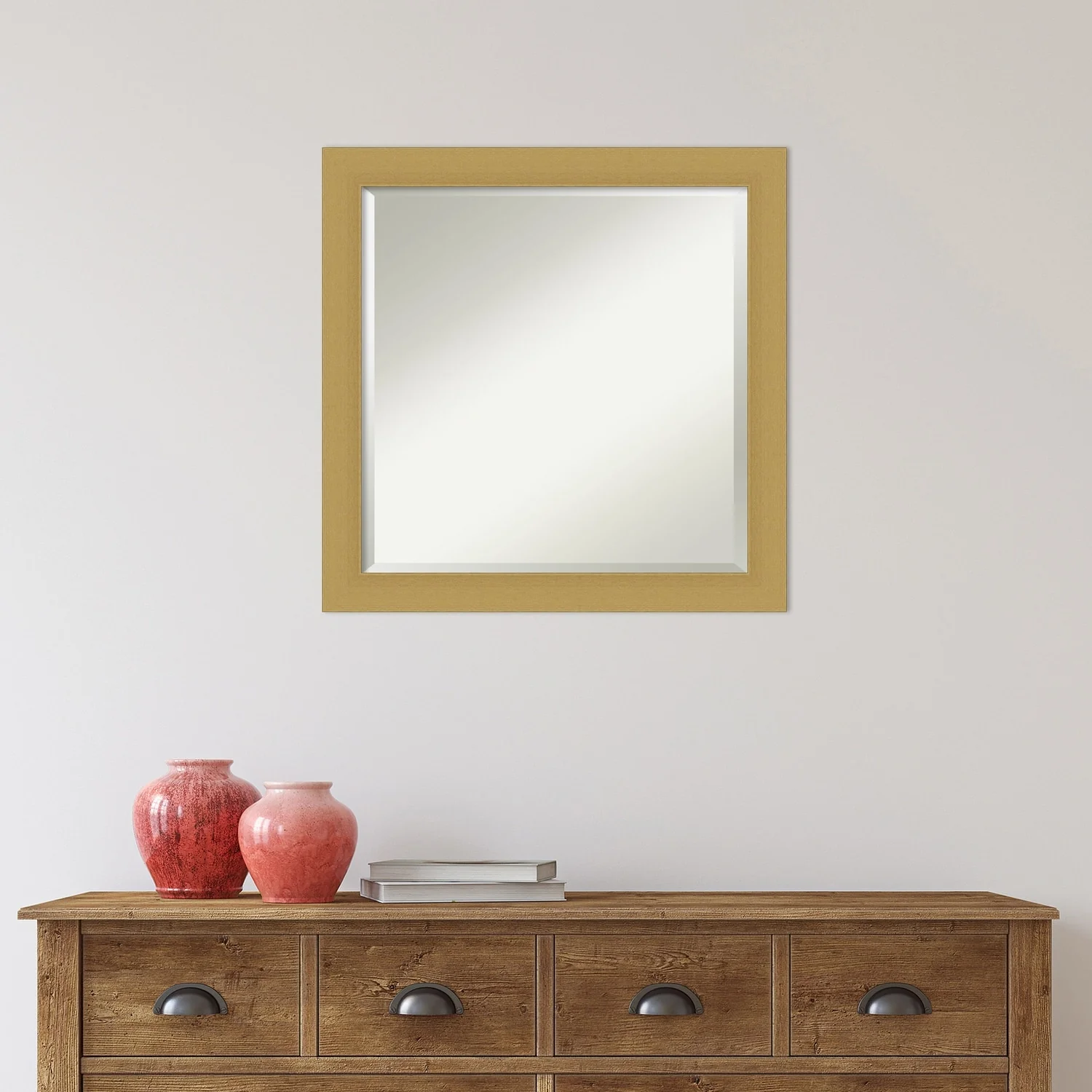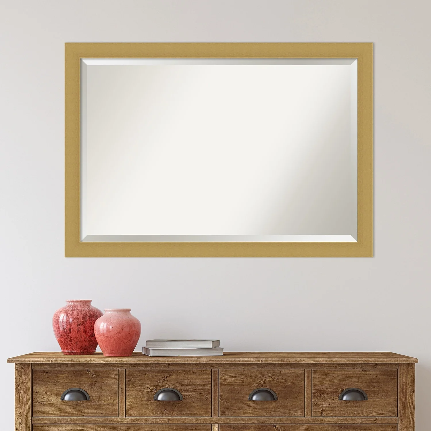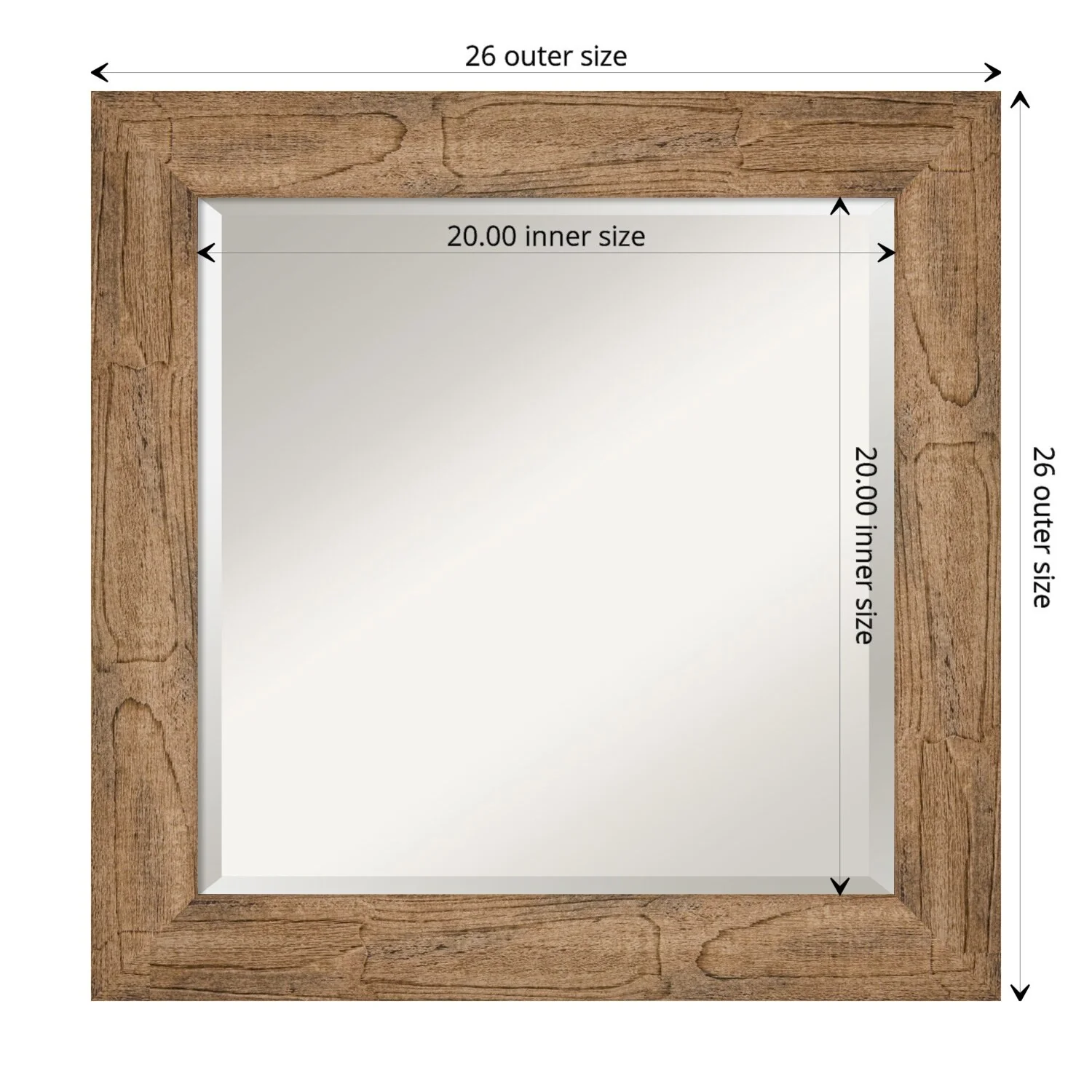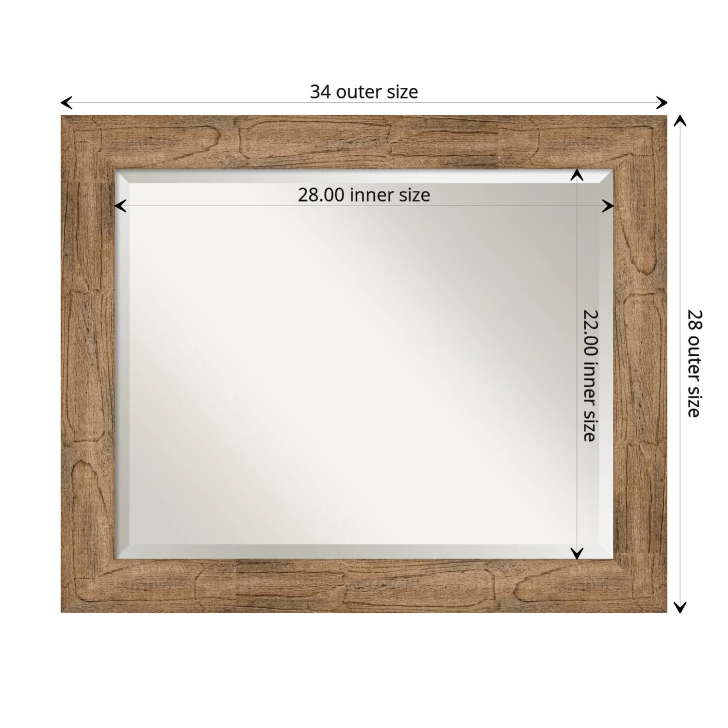 Beveled Wood Wall Mirror - Whiskey Brown Rustic Frame