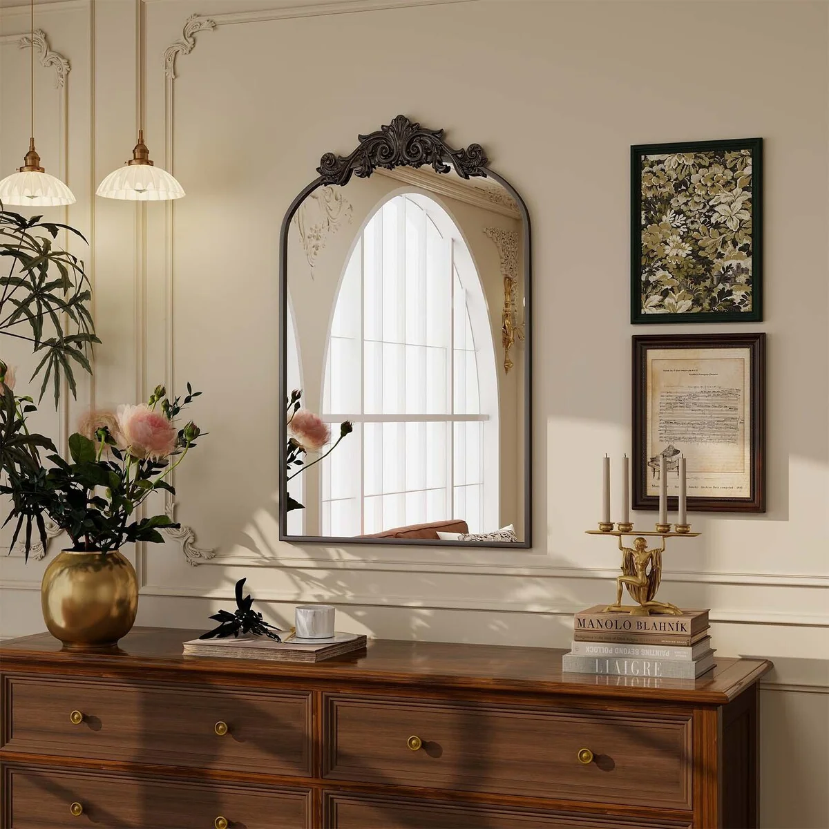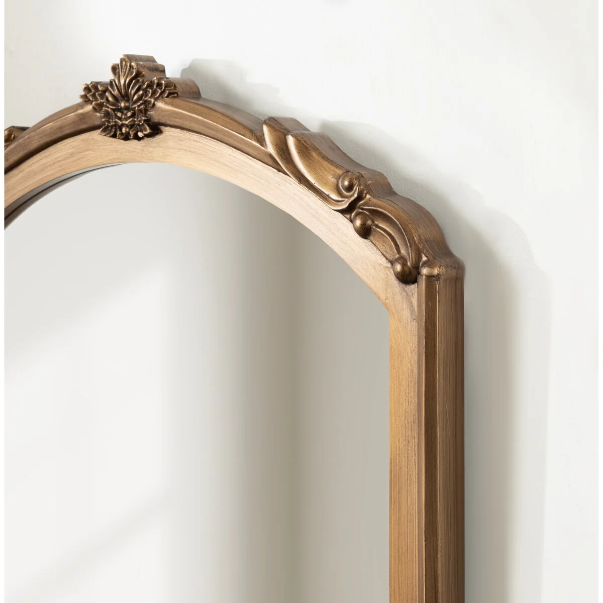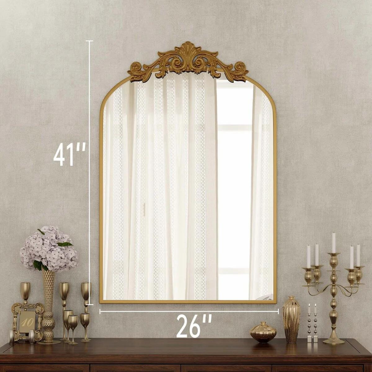 Arched Baroque Bathroom Mirror with Bottom Floral Decor