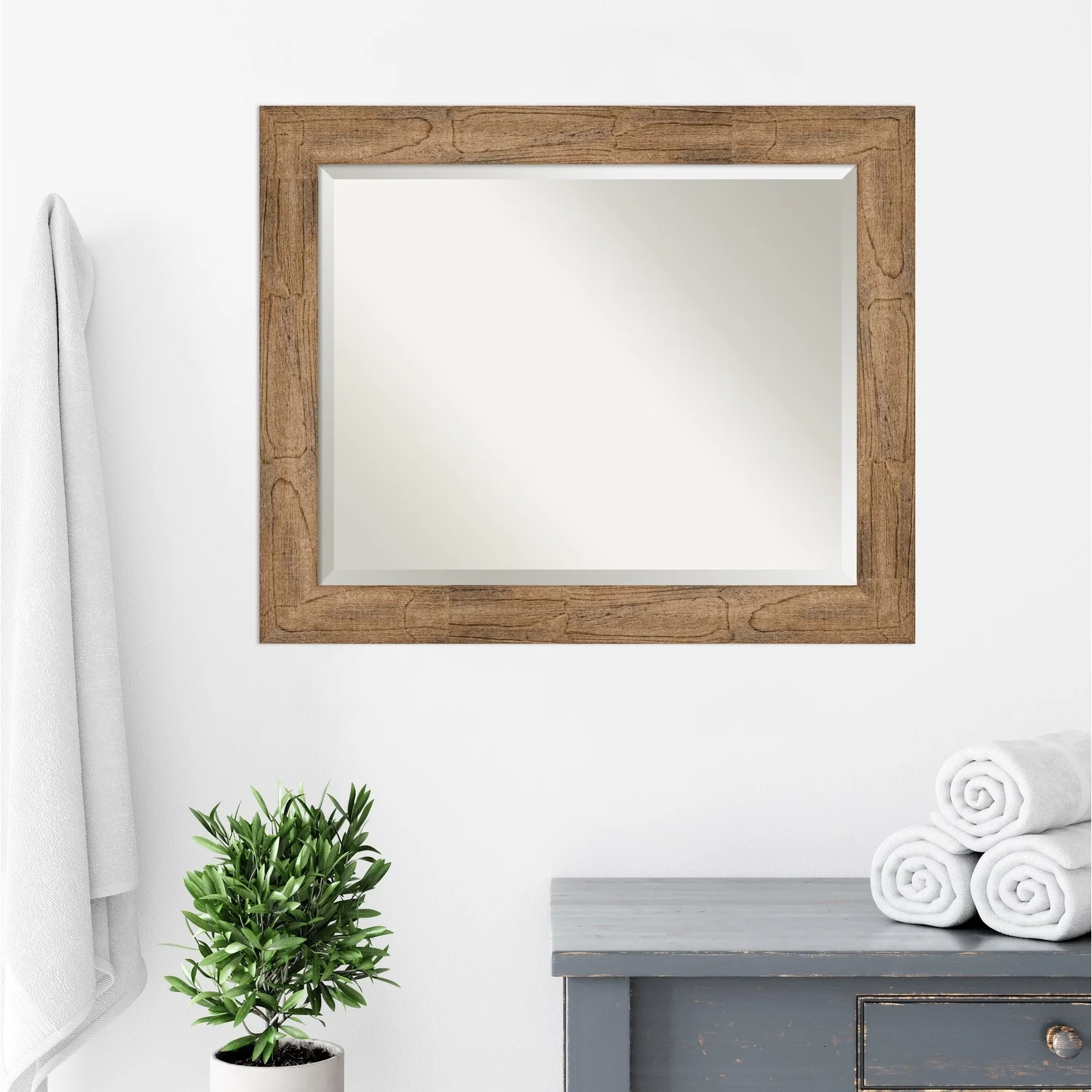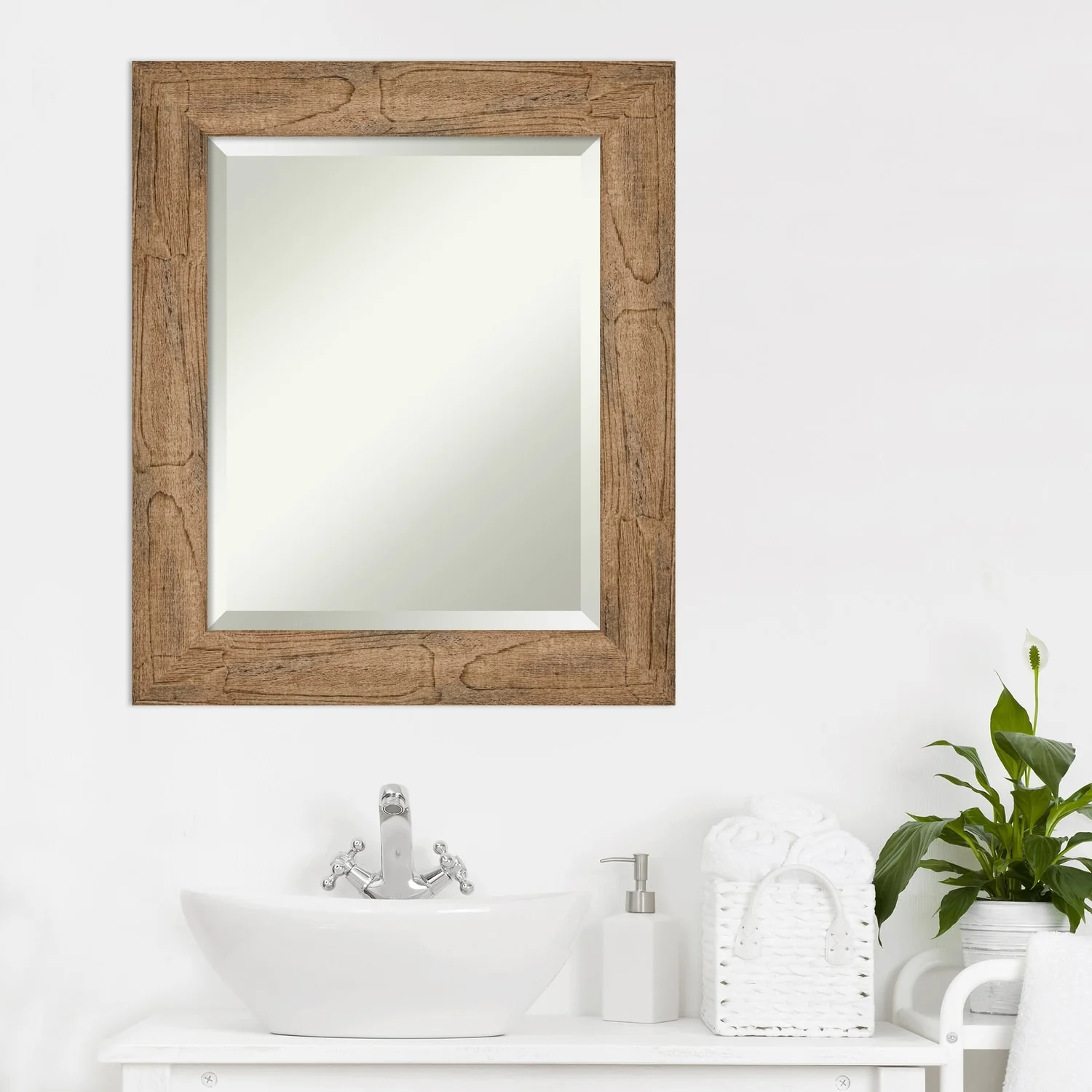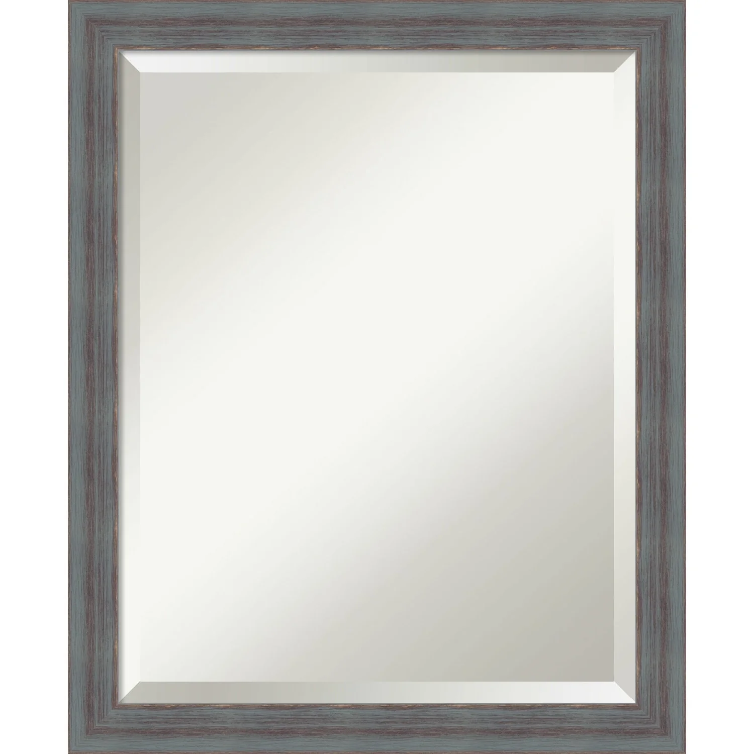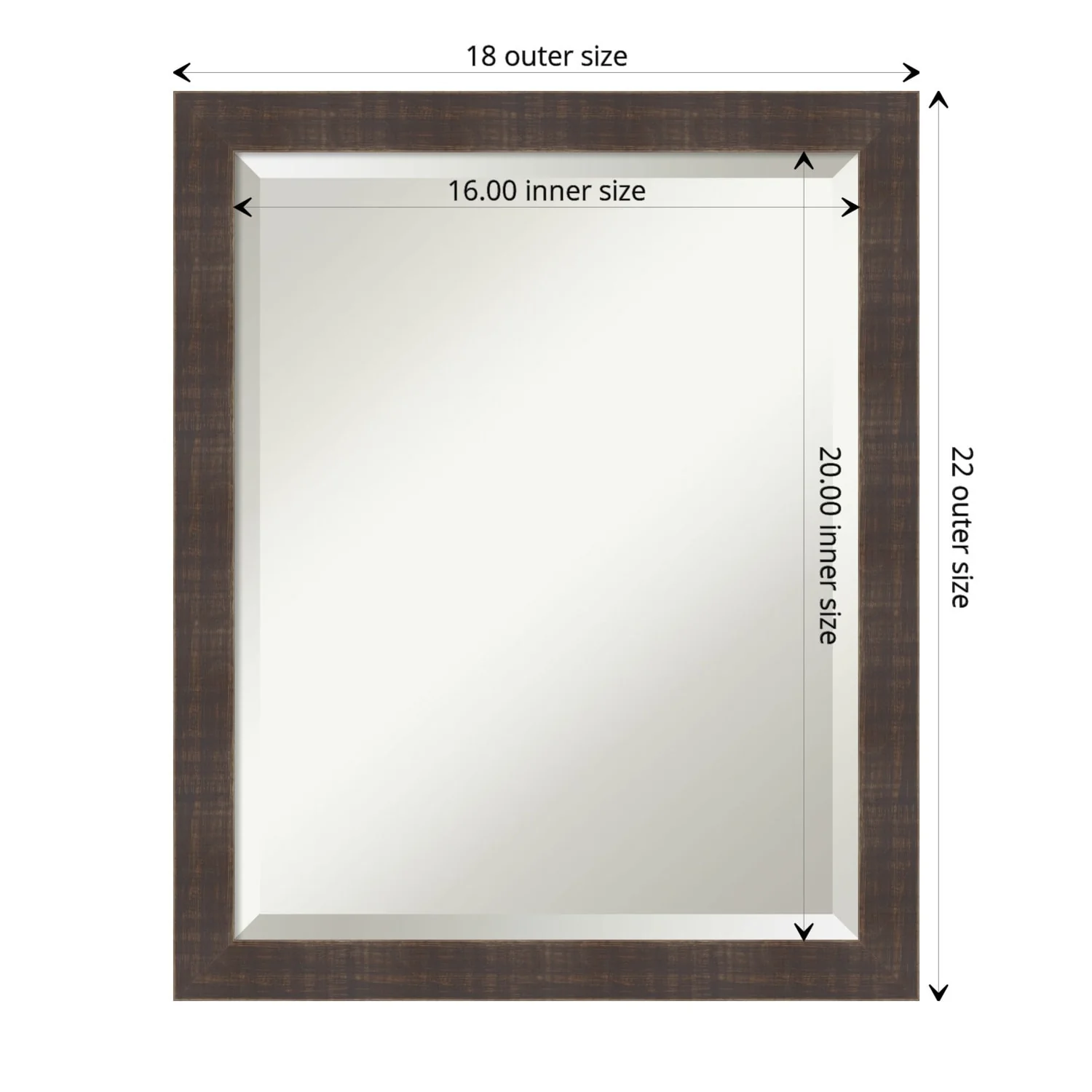 Beveled Wood Bathroom Wall Mirror - Distressed Rustic Brown Frame - Distressed Rustic Brown