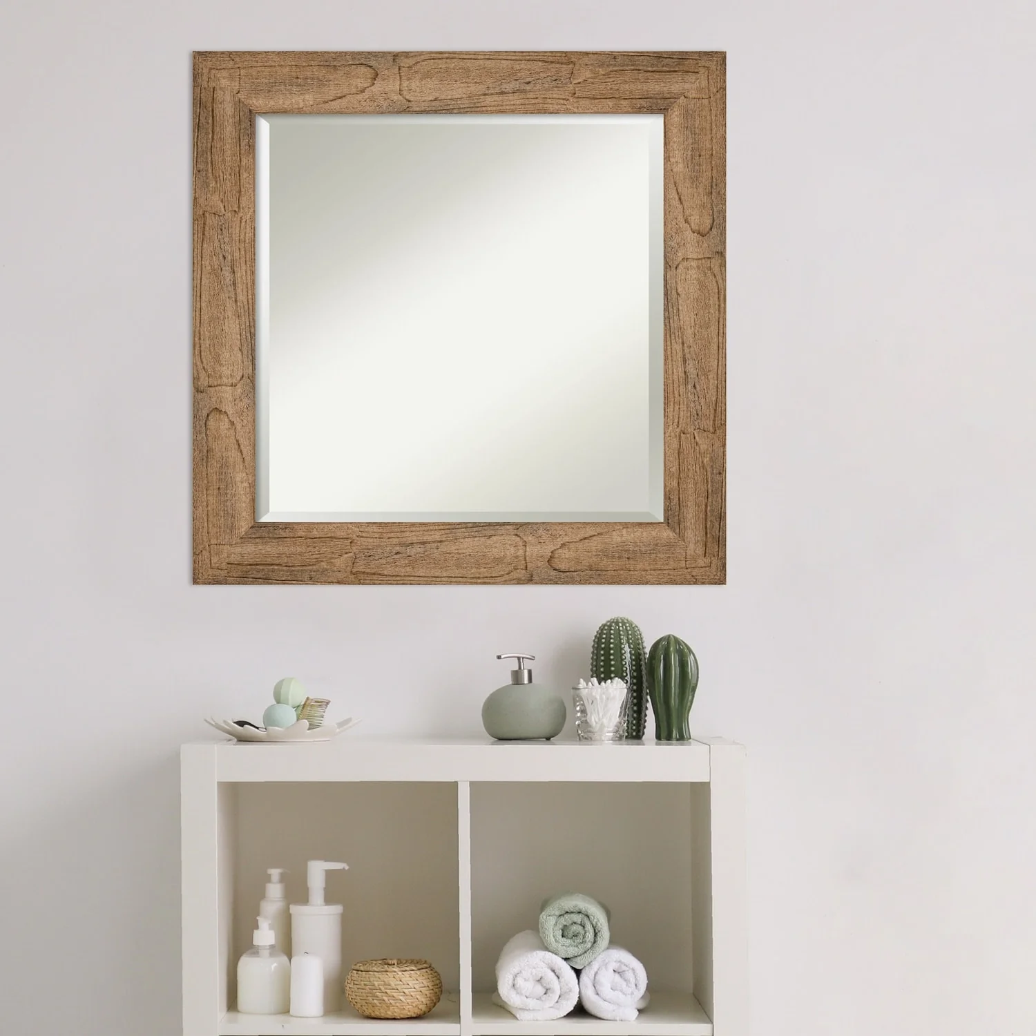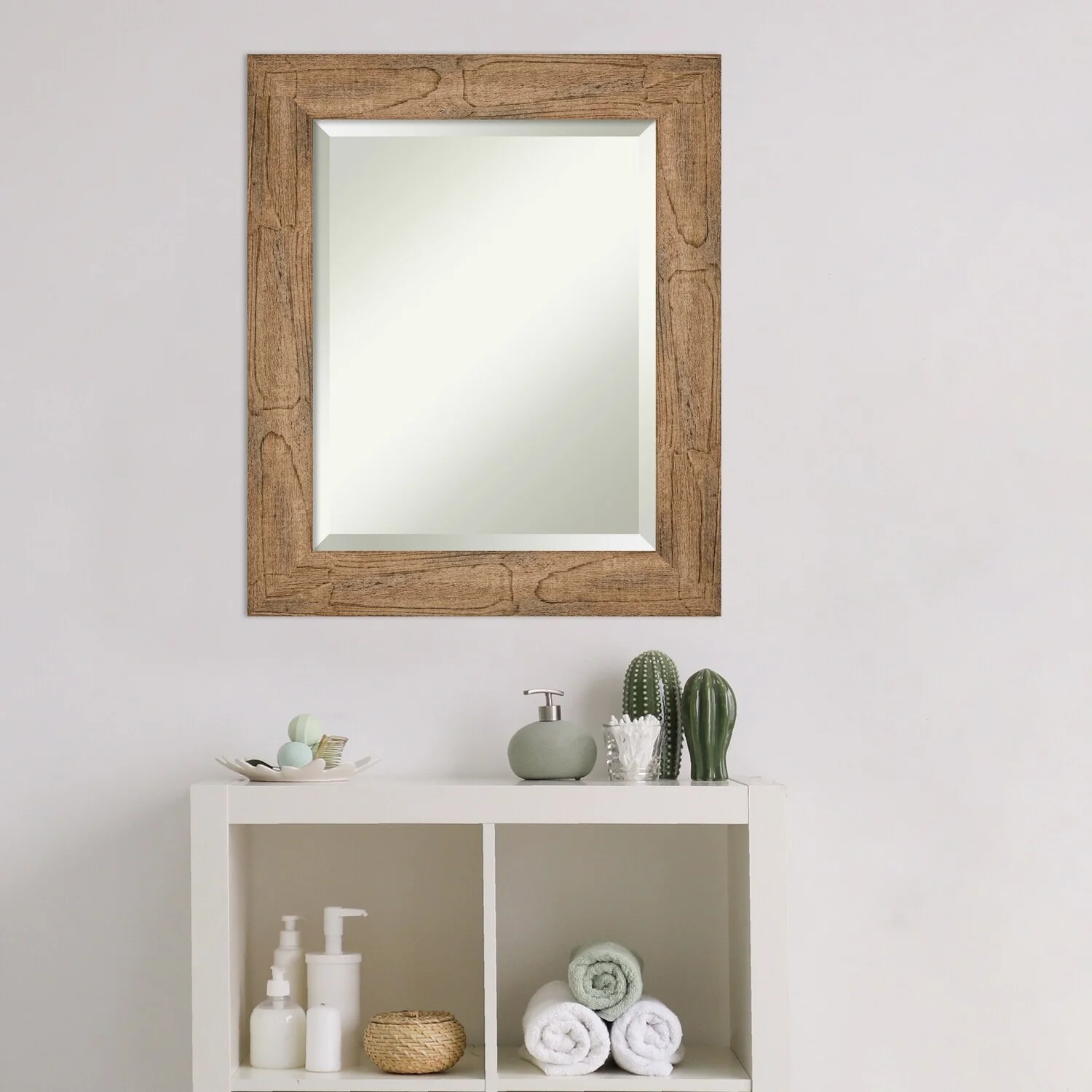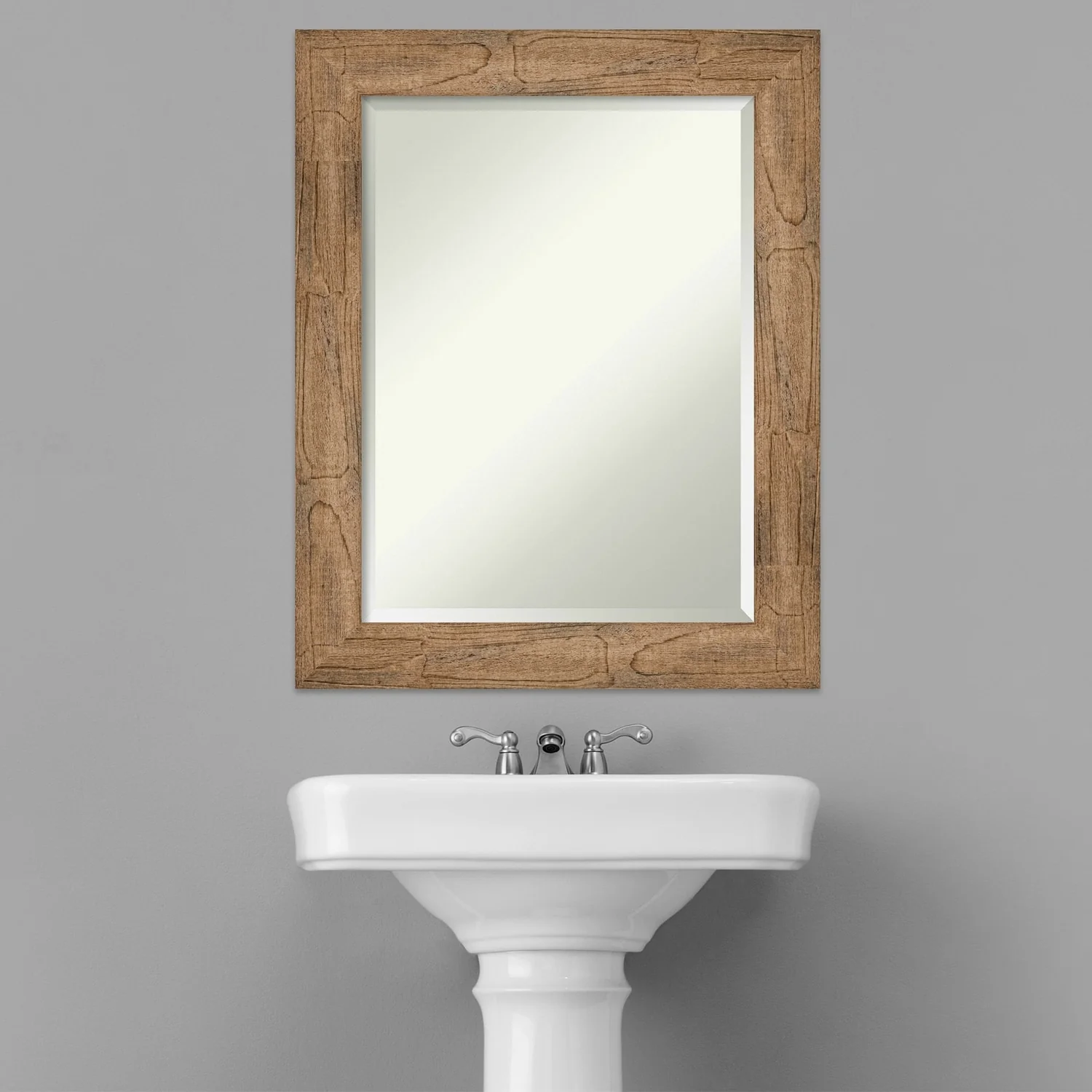 Beveled Wood Bathroom Wall Mirror - Distressed Rustic Brown Frame - Distressed Rustic Brown