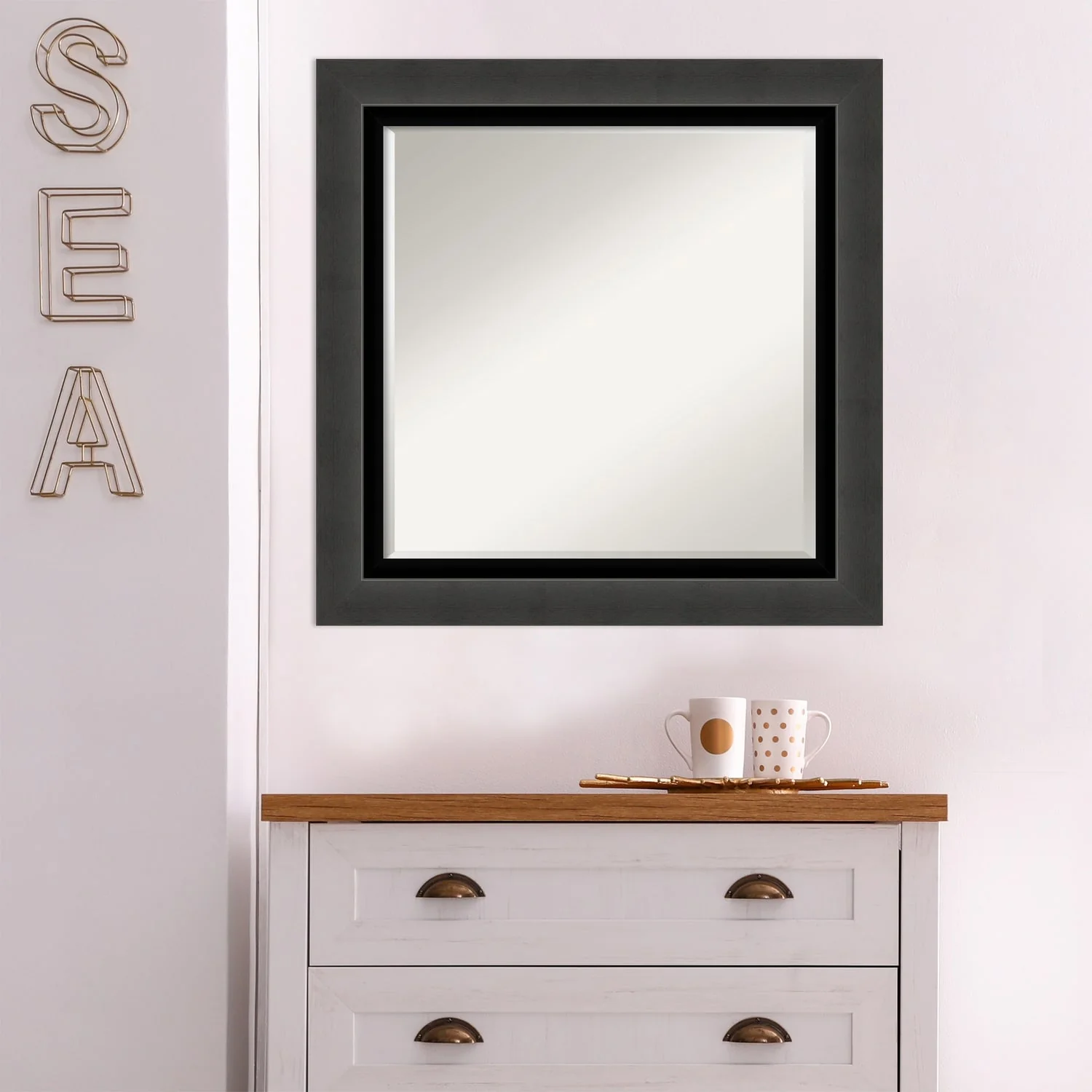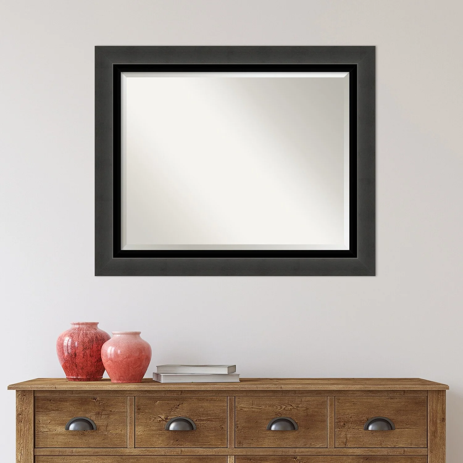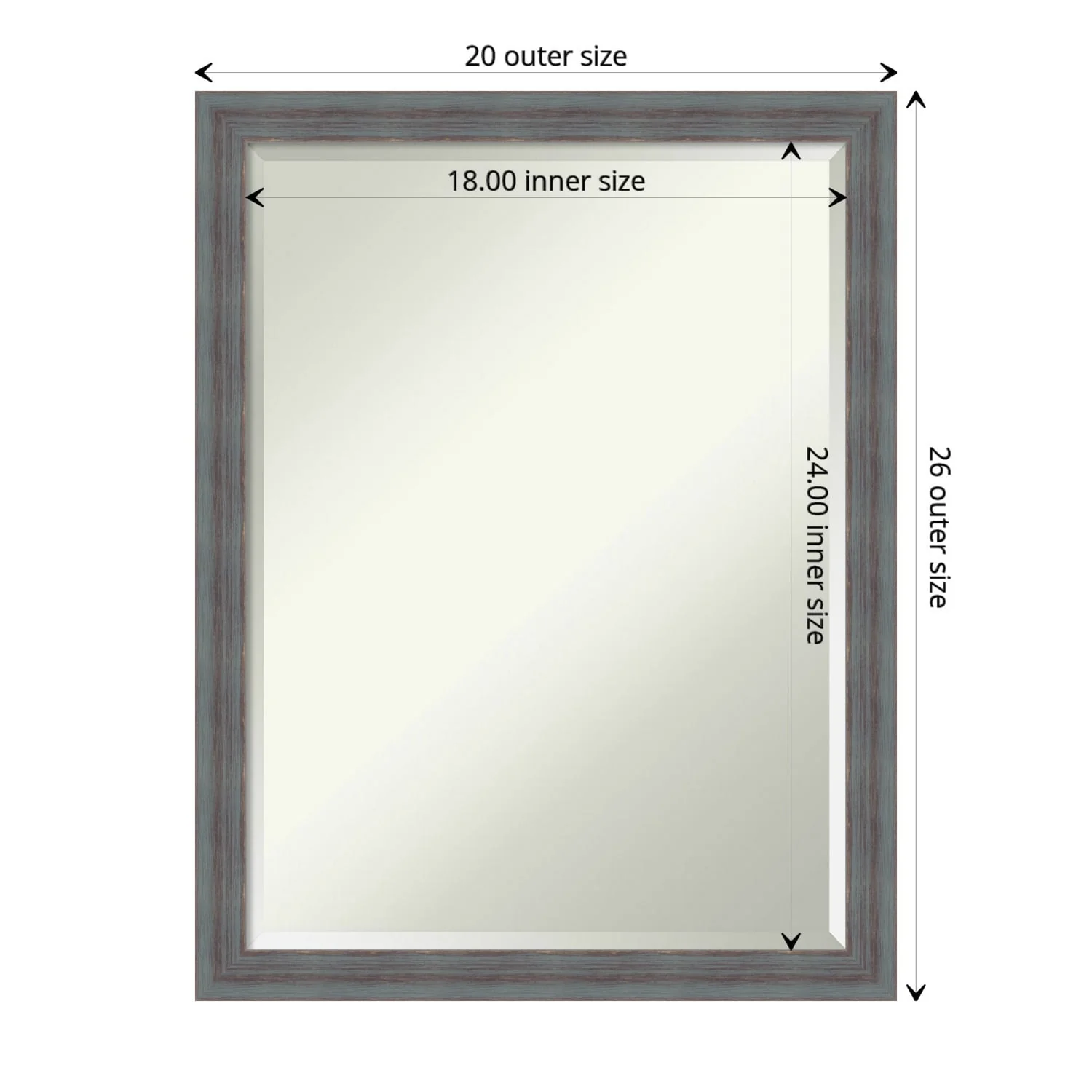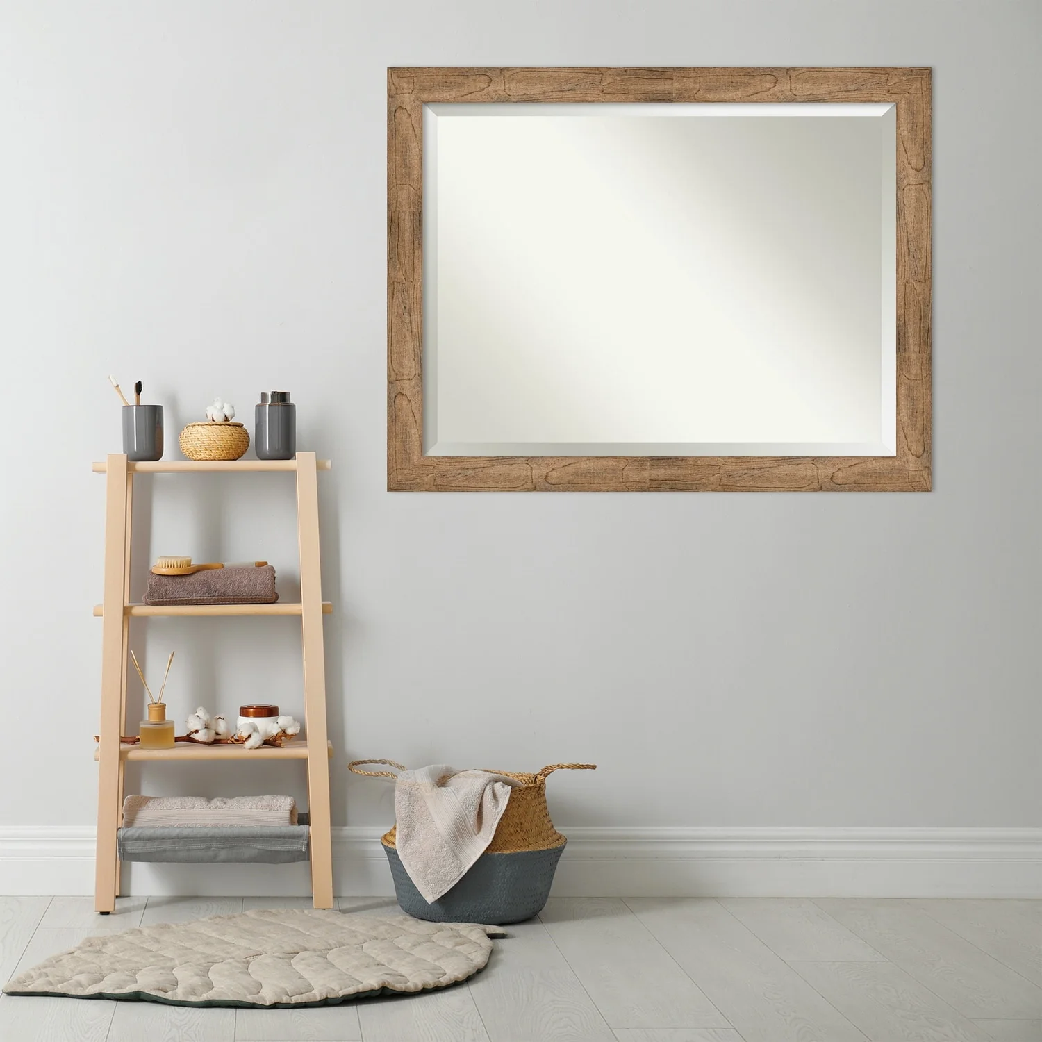 Beveled Wood Bathroom Wall Mirror - Distressed Rustic Brown Frame - Distressed Rustic Brown