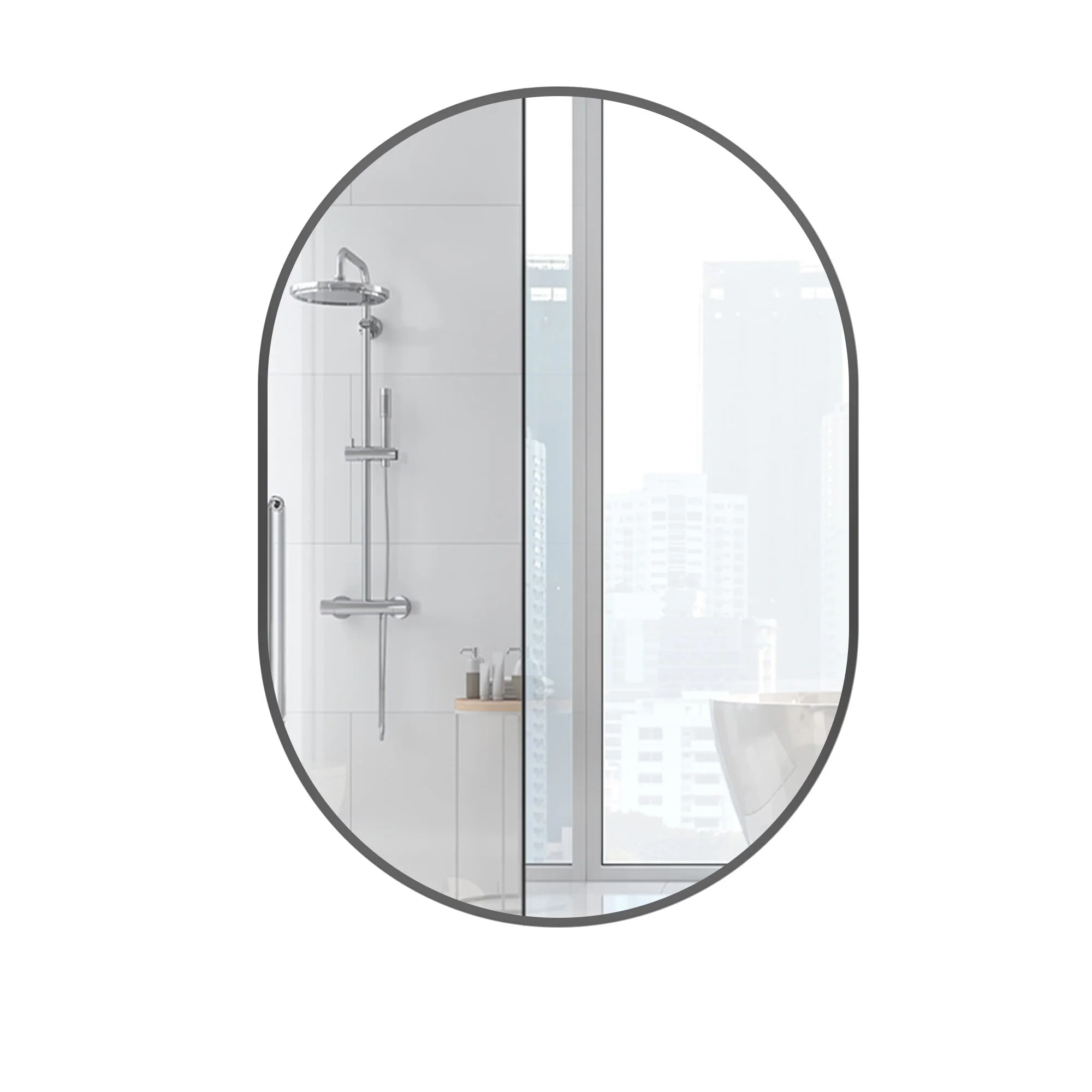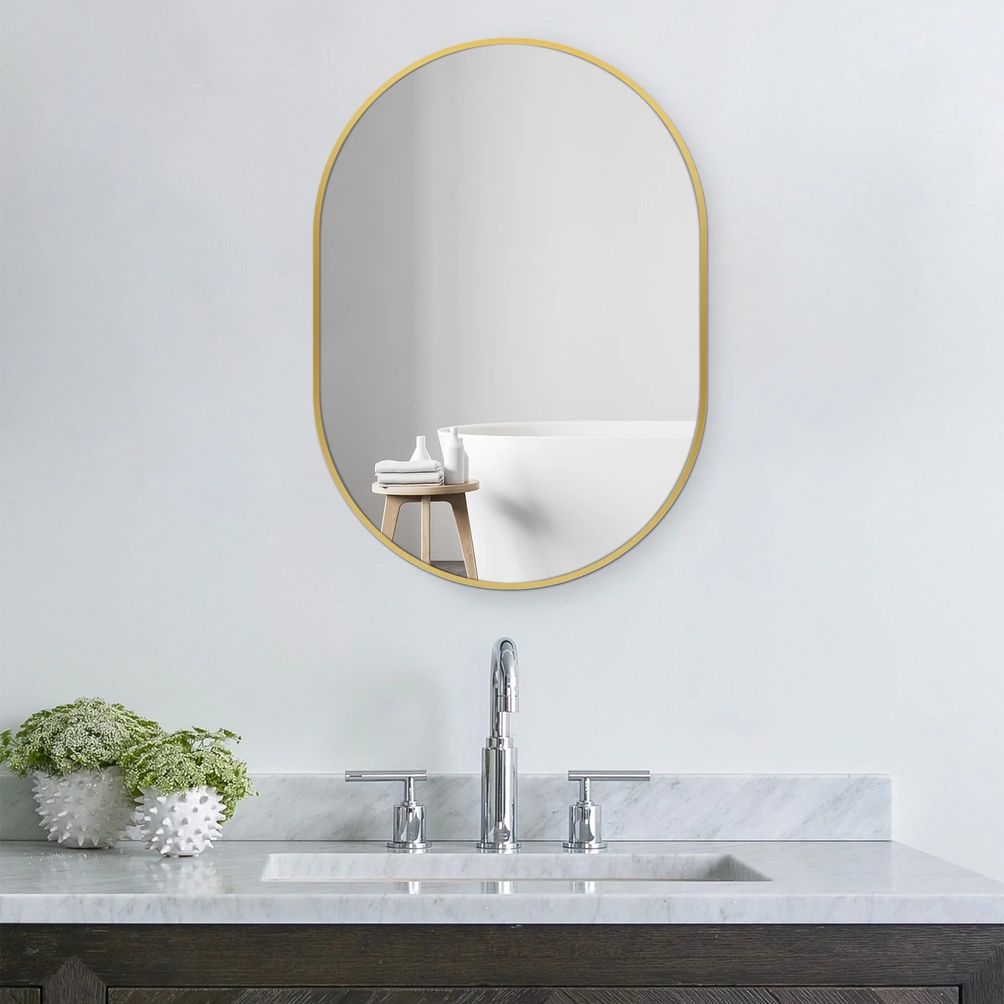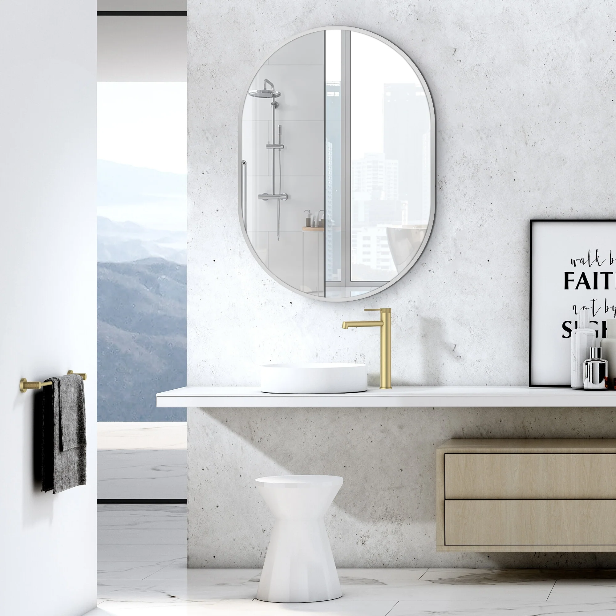 Small Oval Aluminum Framed Wall Bathroom Vanity Mirror