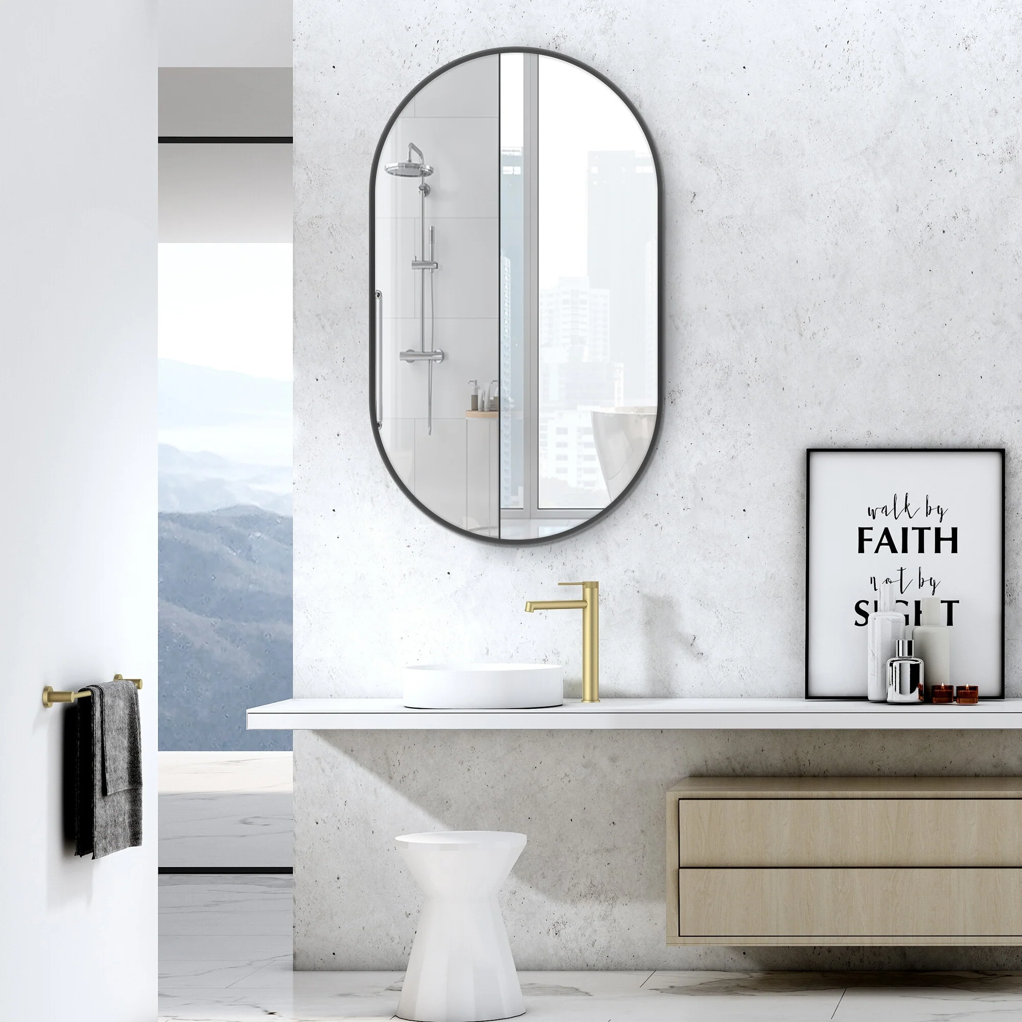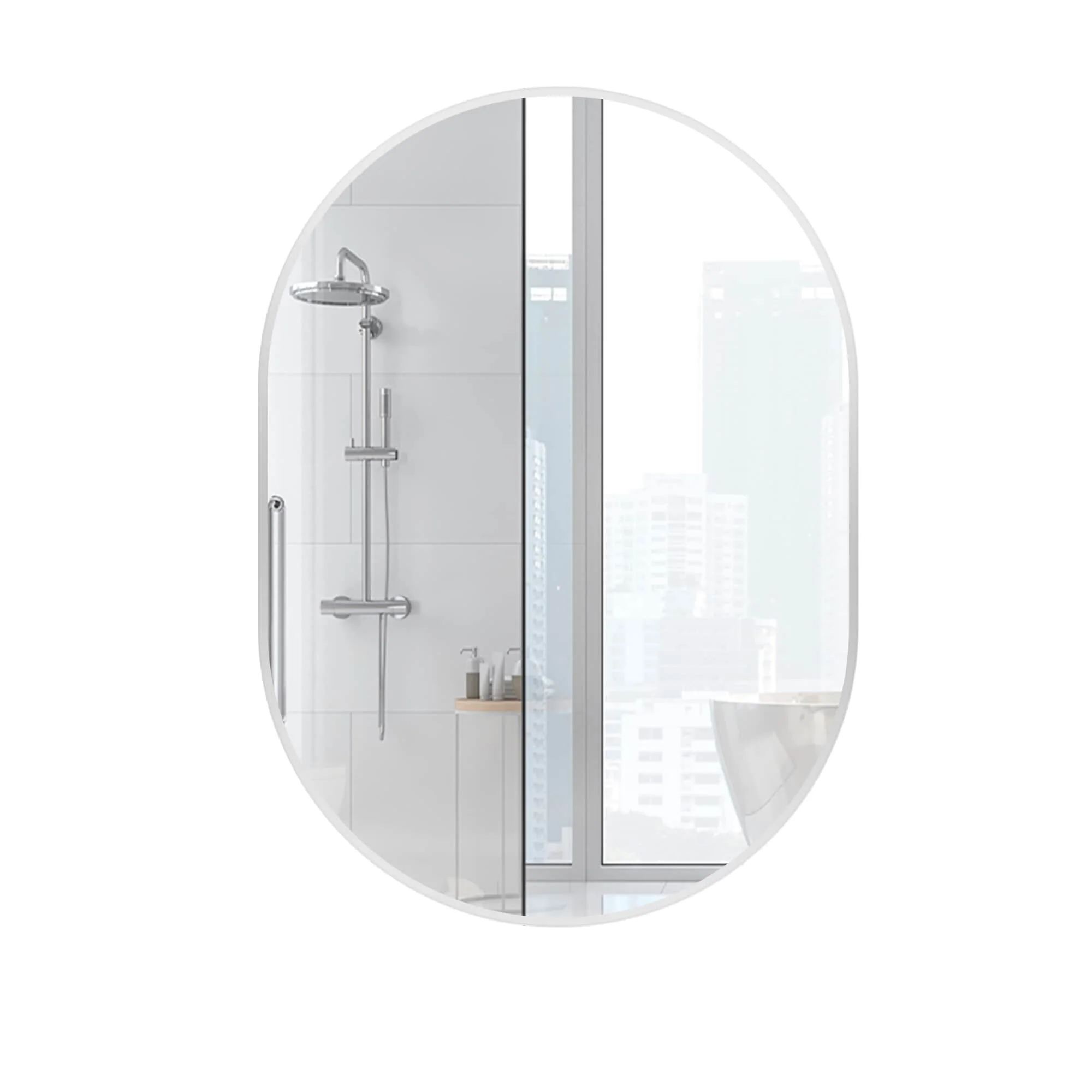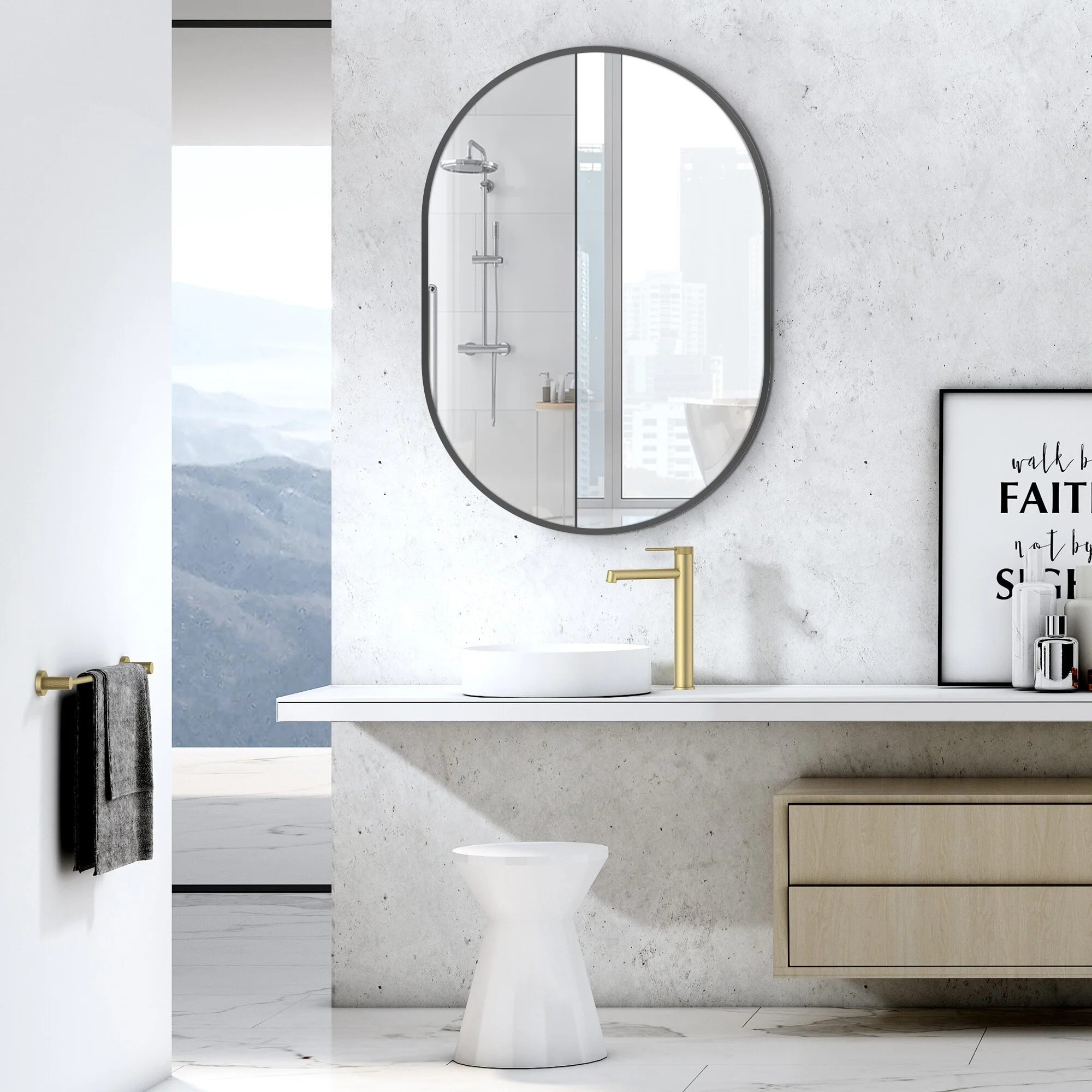Small Oval Aluminum Framed Wall Bathroom Vanity Mirror