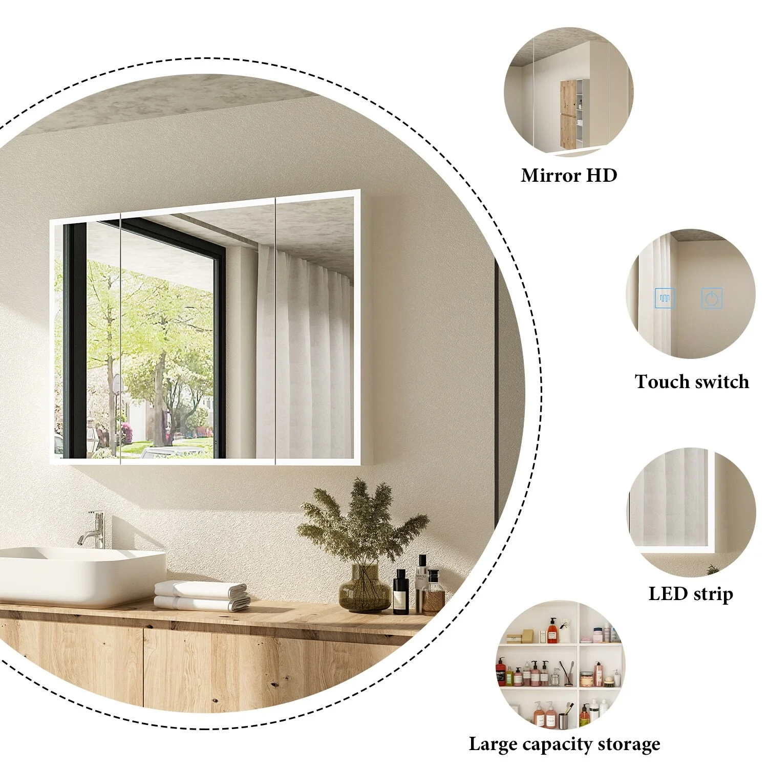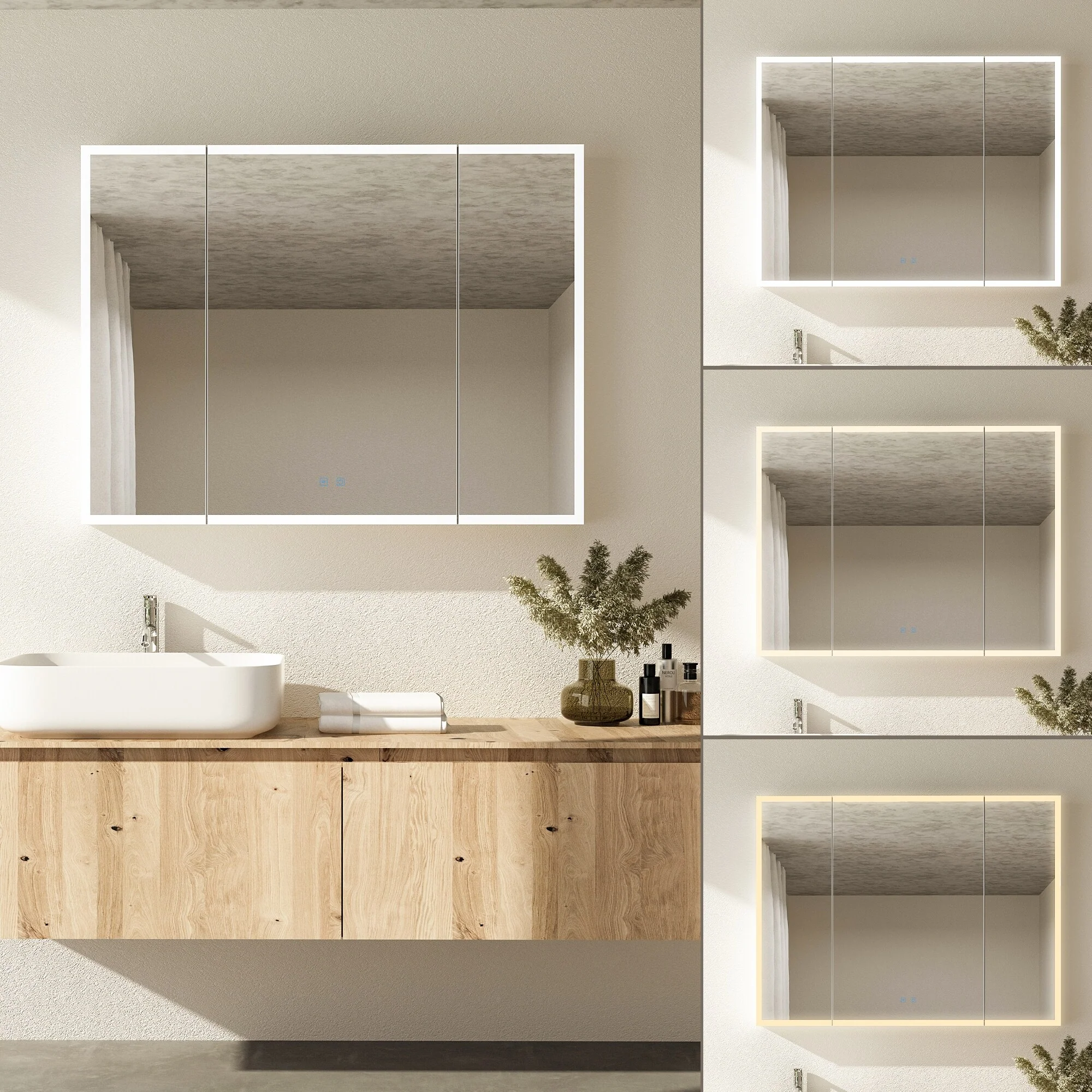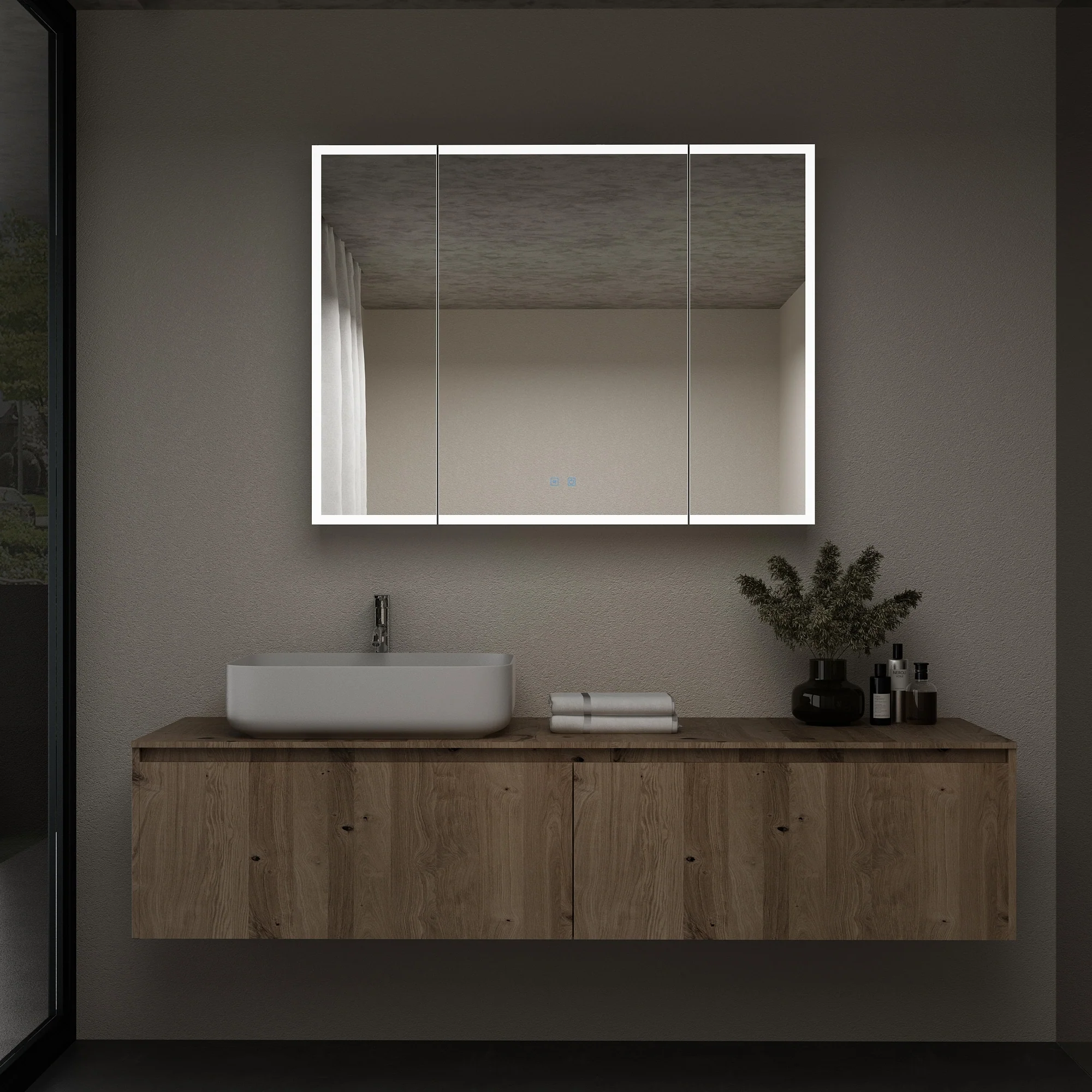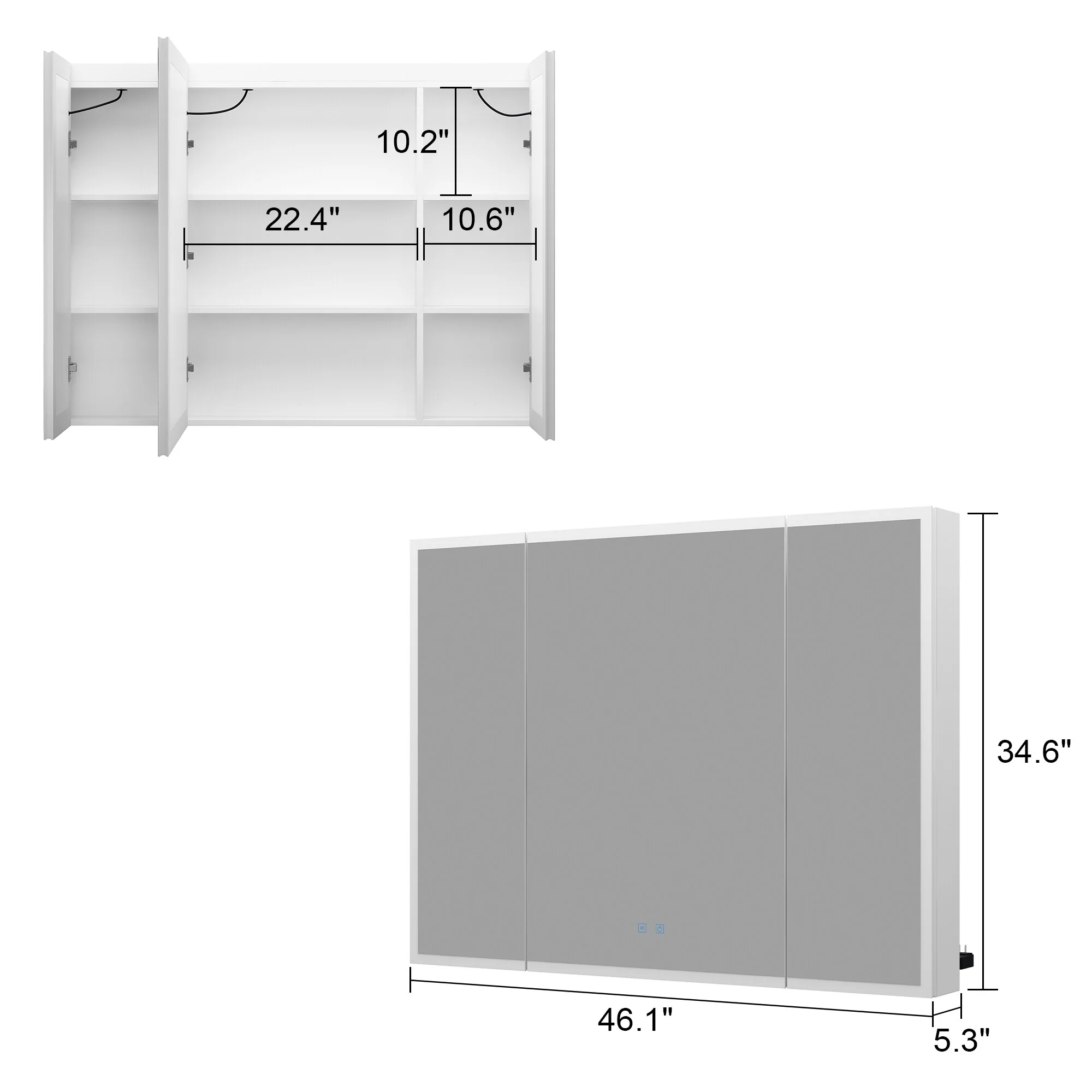 Smart Touch LED Mirror Cabinet - Fogless Vanity with Ambient Lighting - 45.9"