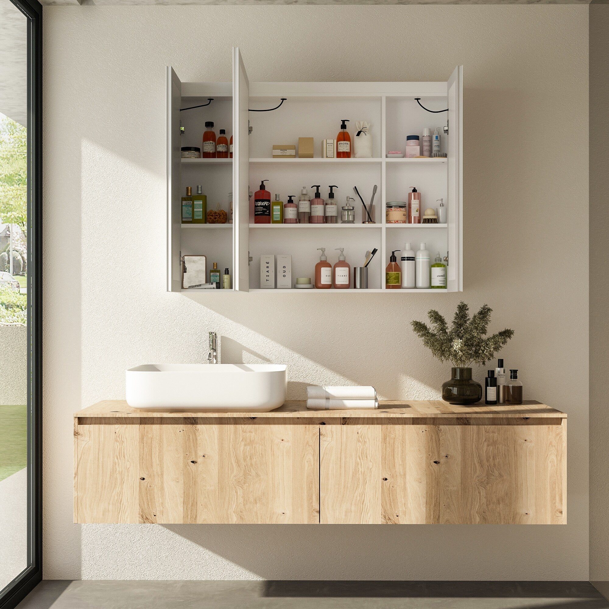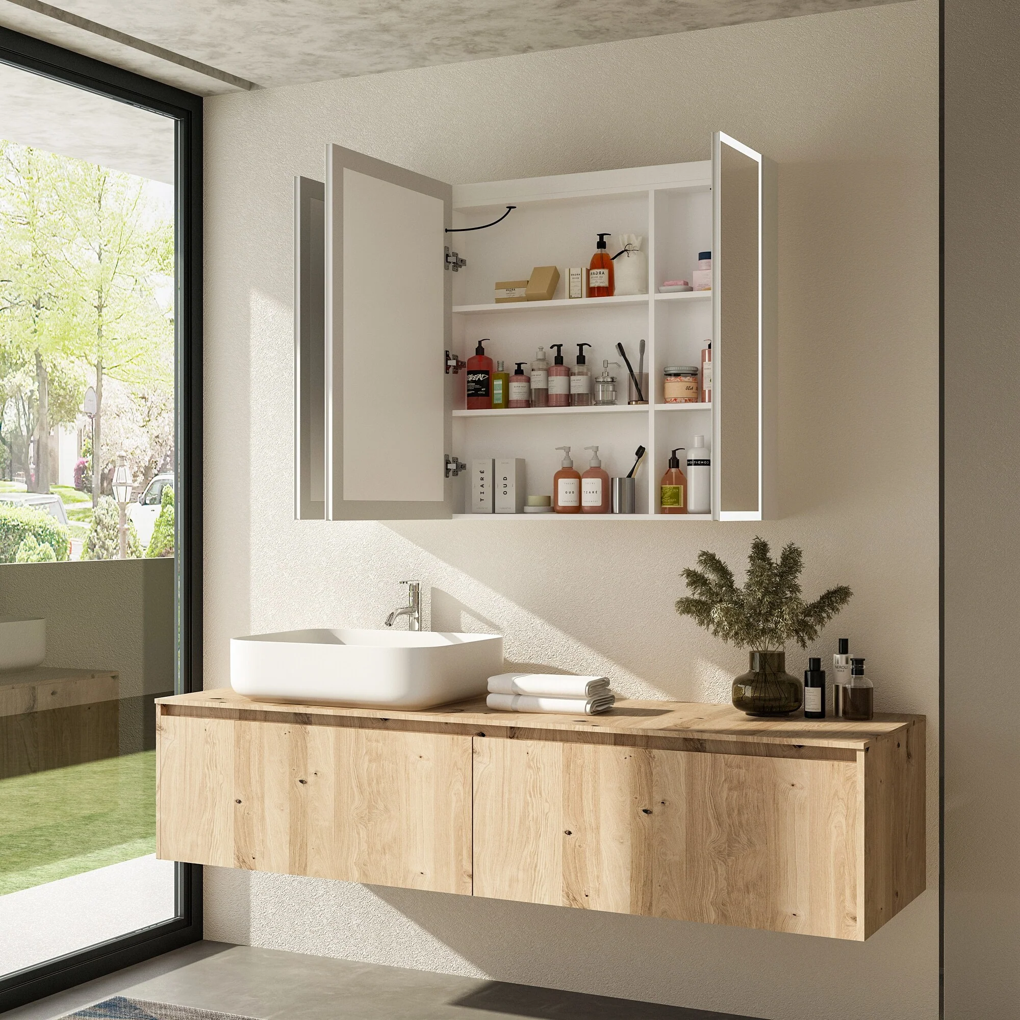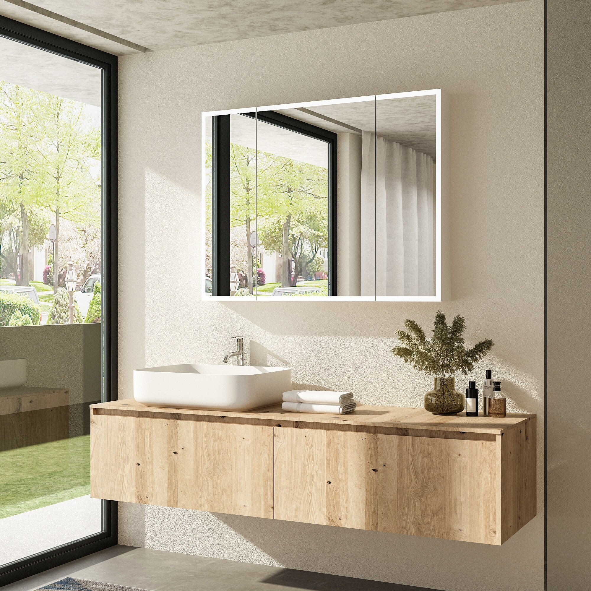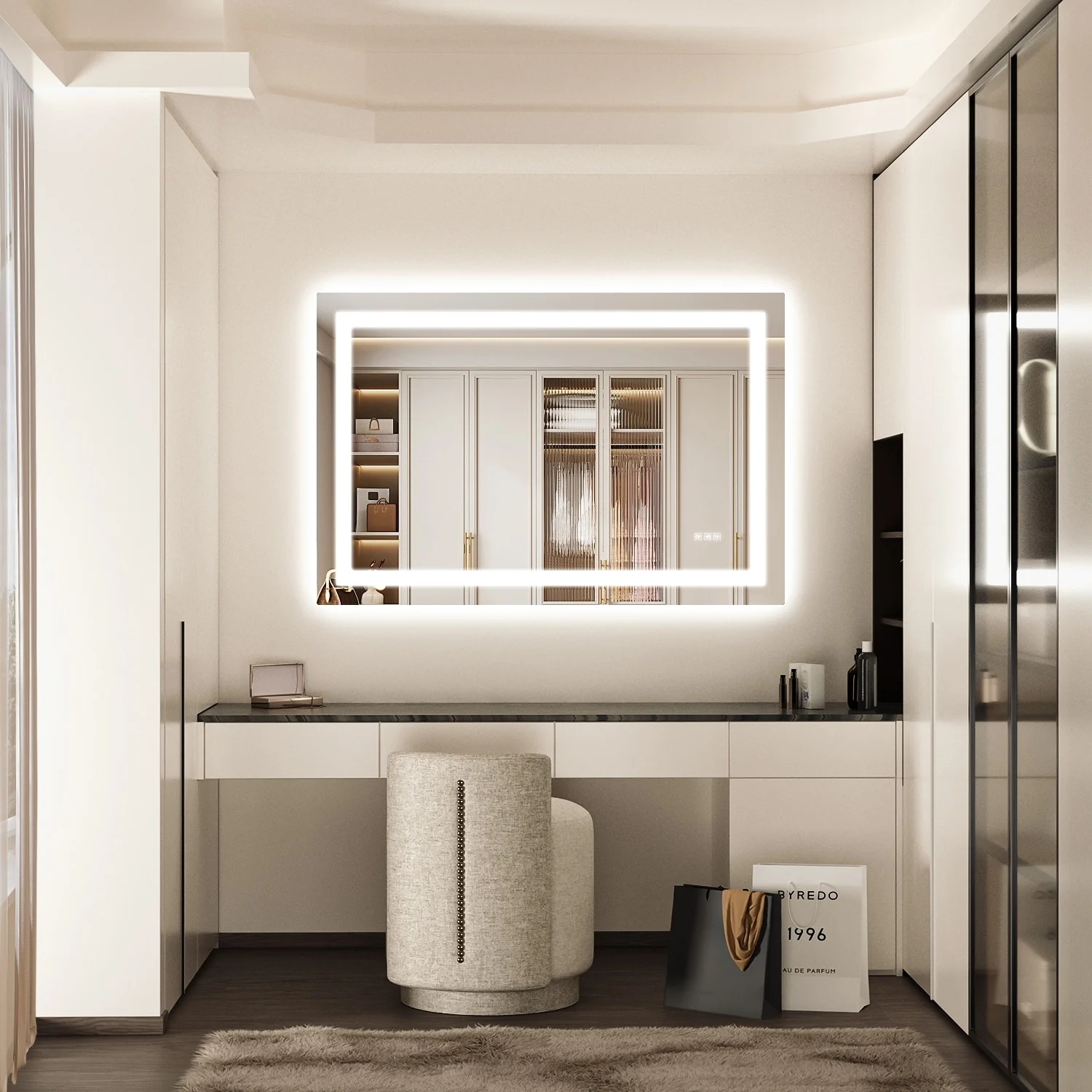 Smart Touch LED Mirror Cabinet - Fogless Vanity with Ambient Lighting - 45.9"
