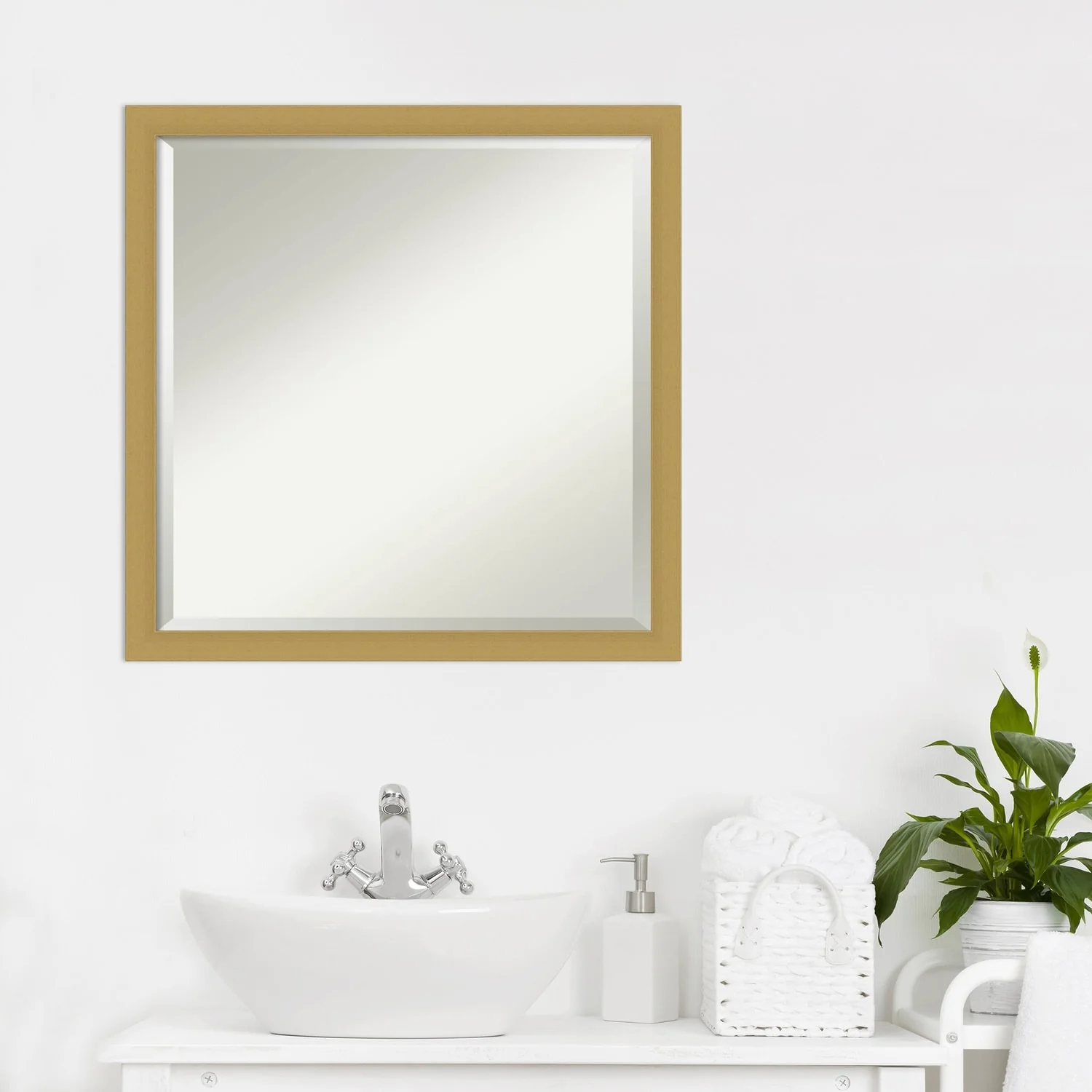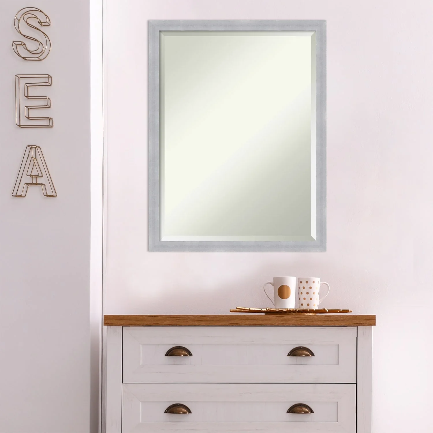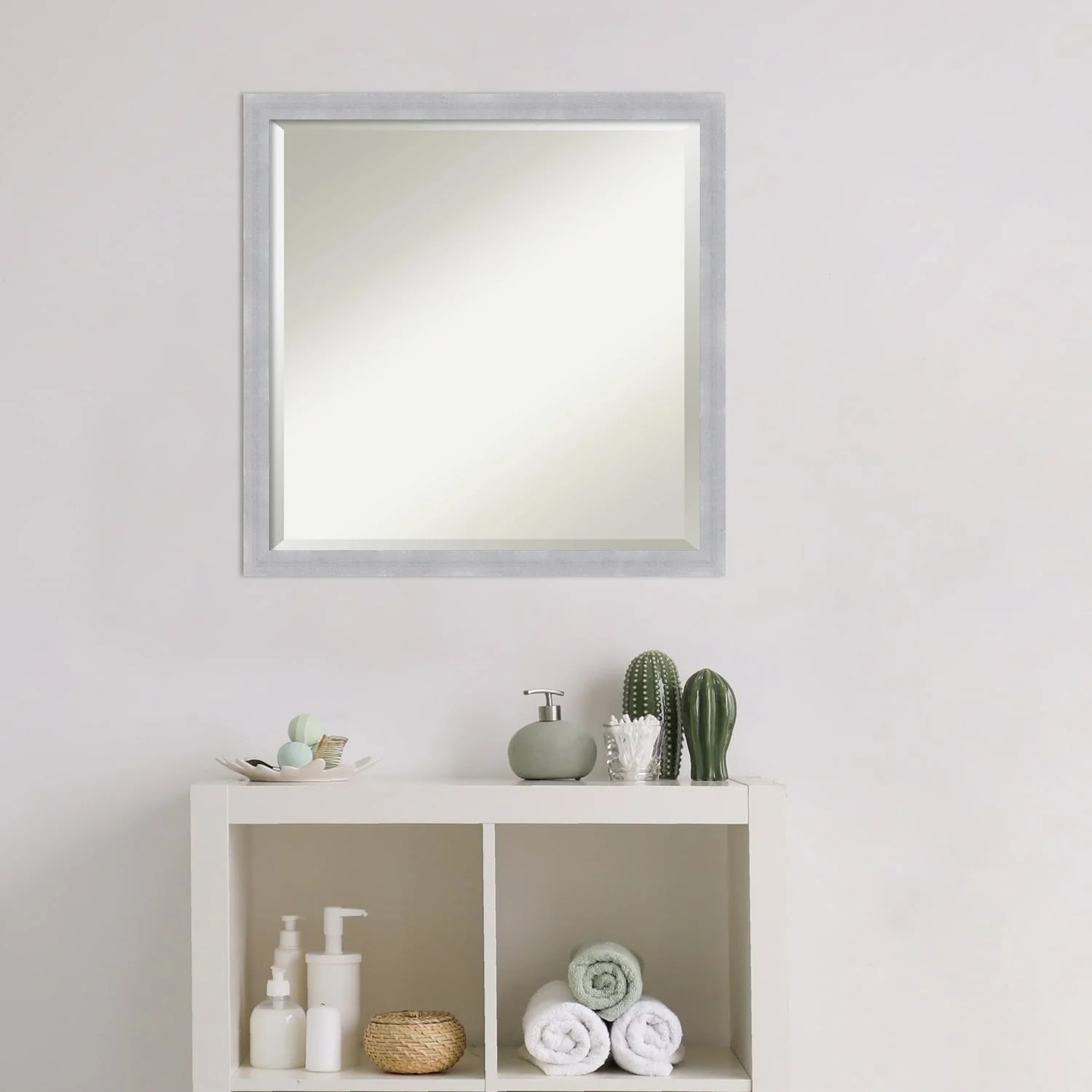 Beveled Bathroom Wall Mirror - Mosaic White Frame