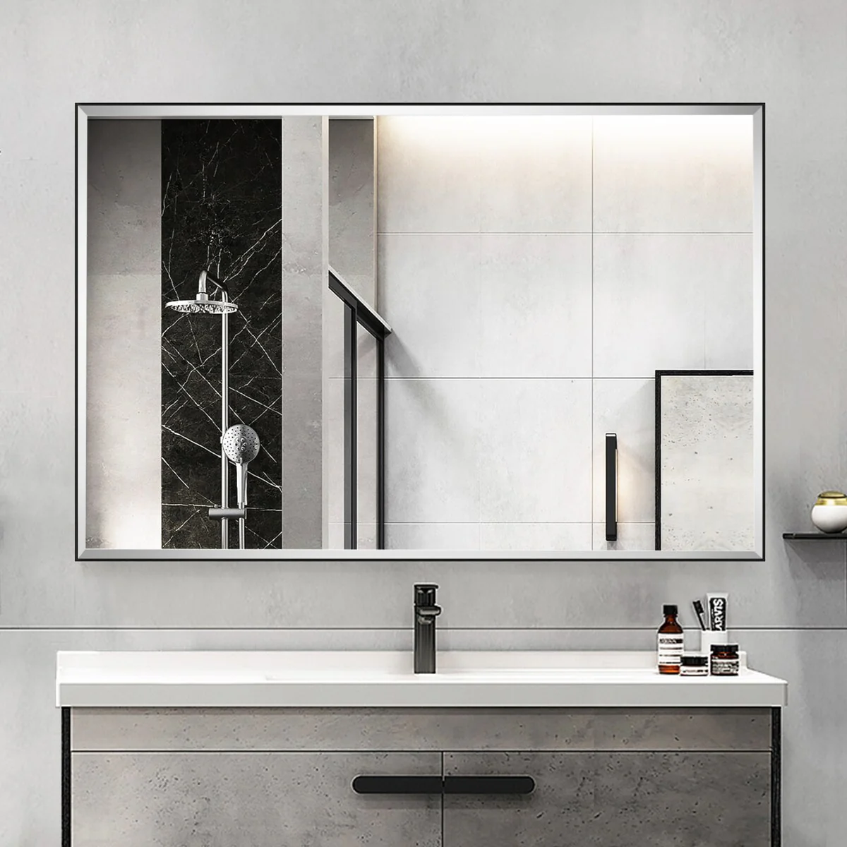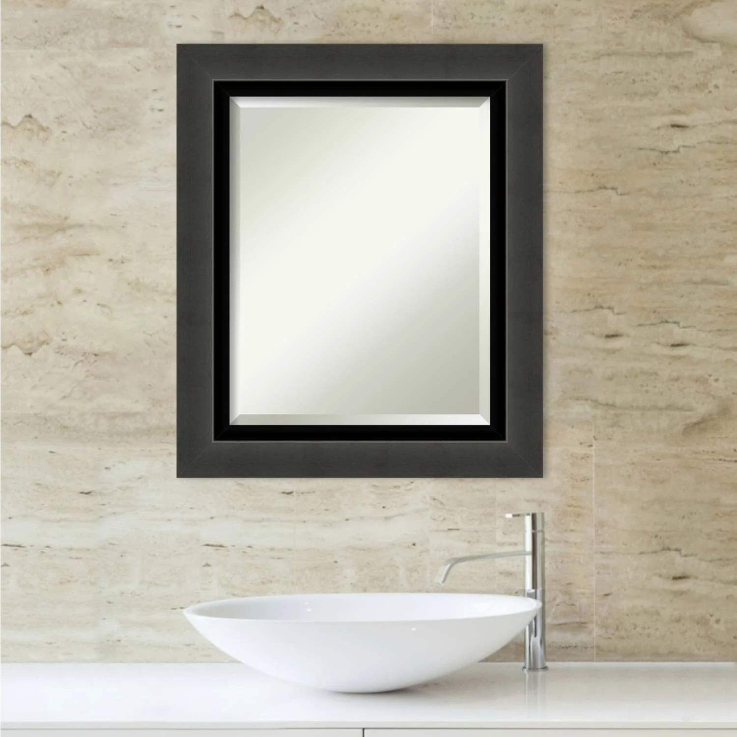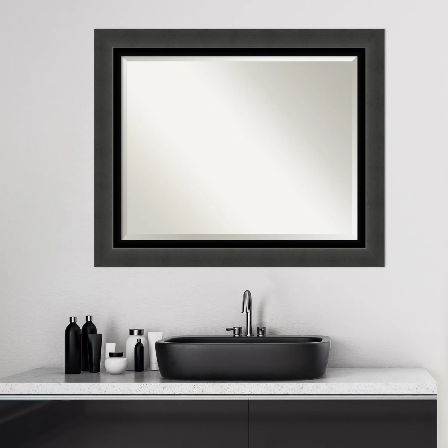 Beveled Bathroom Wall Mirror - Tuxedo Black Frame - Tuxedo Black