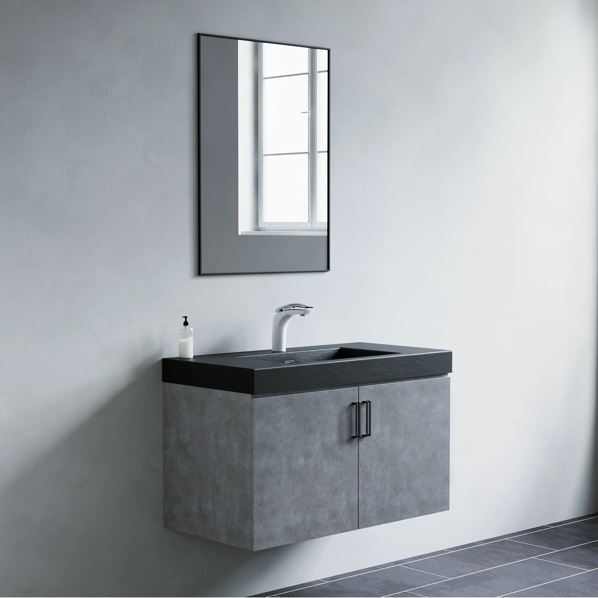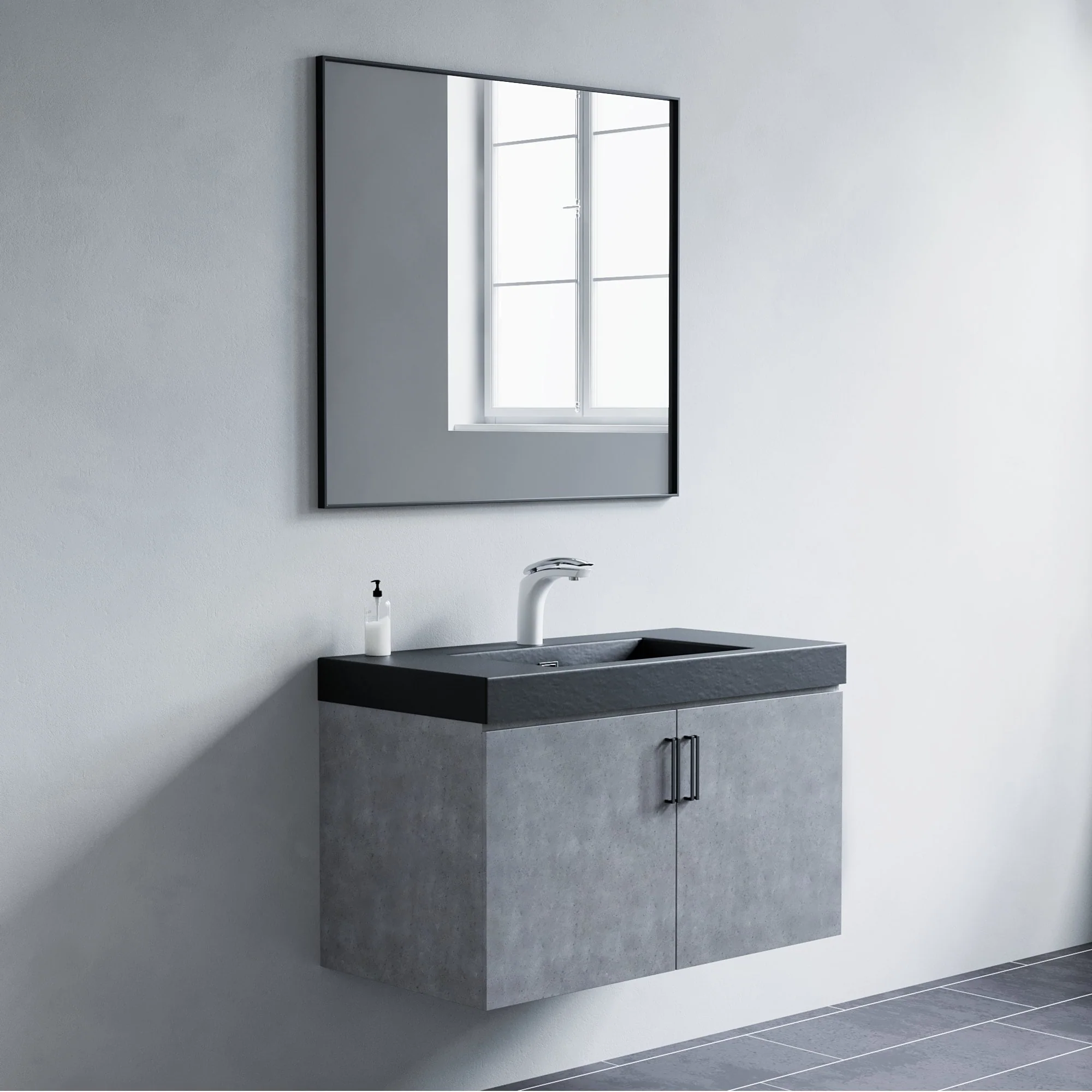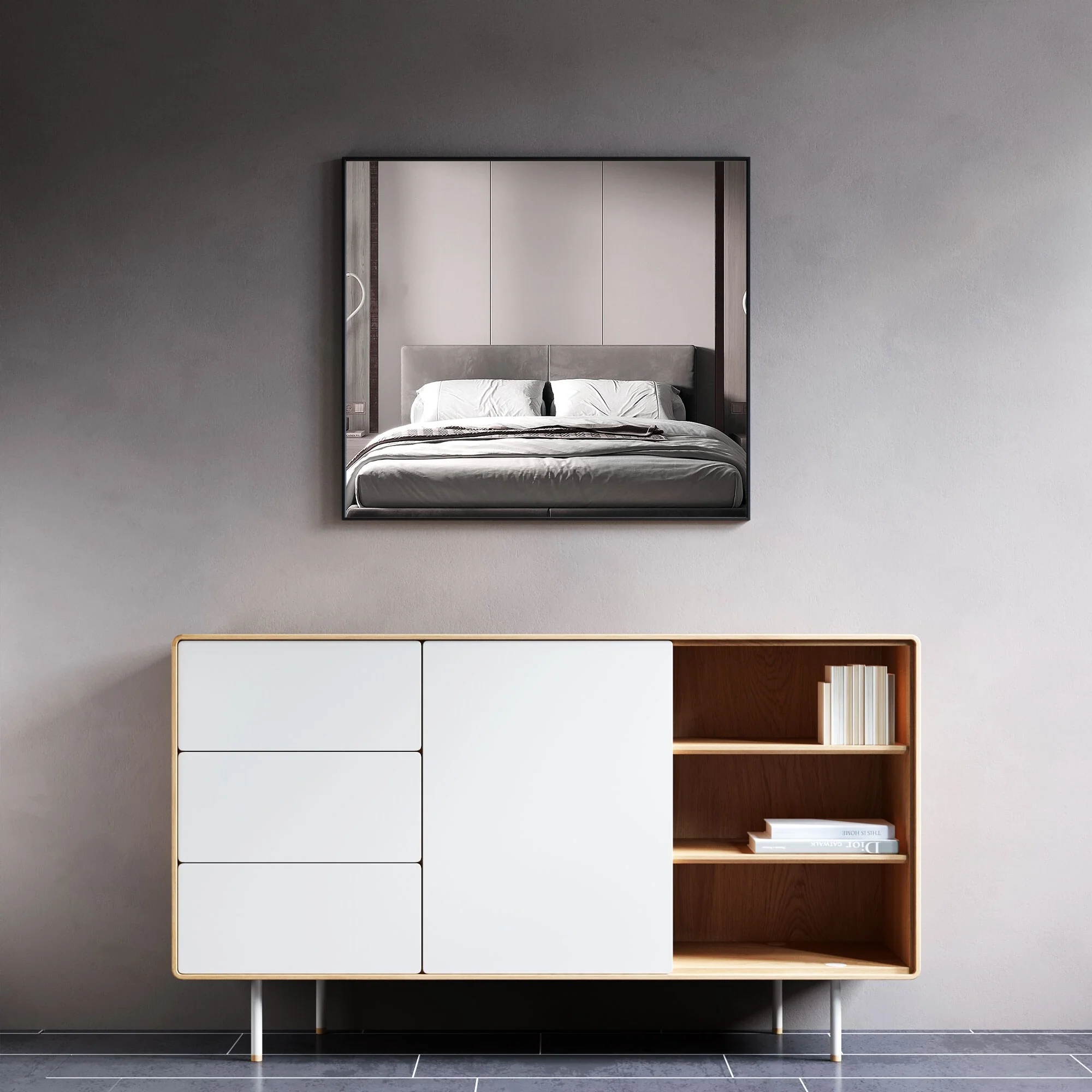 Beveled Bathroom Wall Mirror - Tuxedo Black Frame - Tuxedo Black