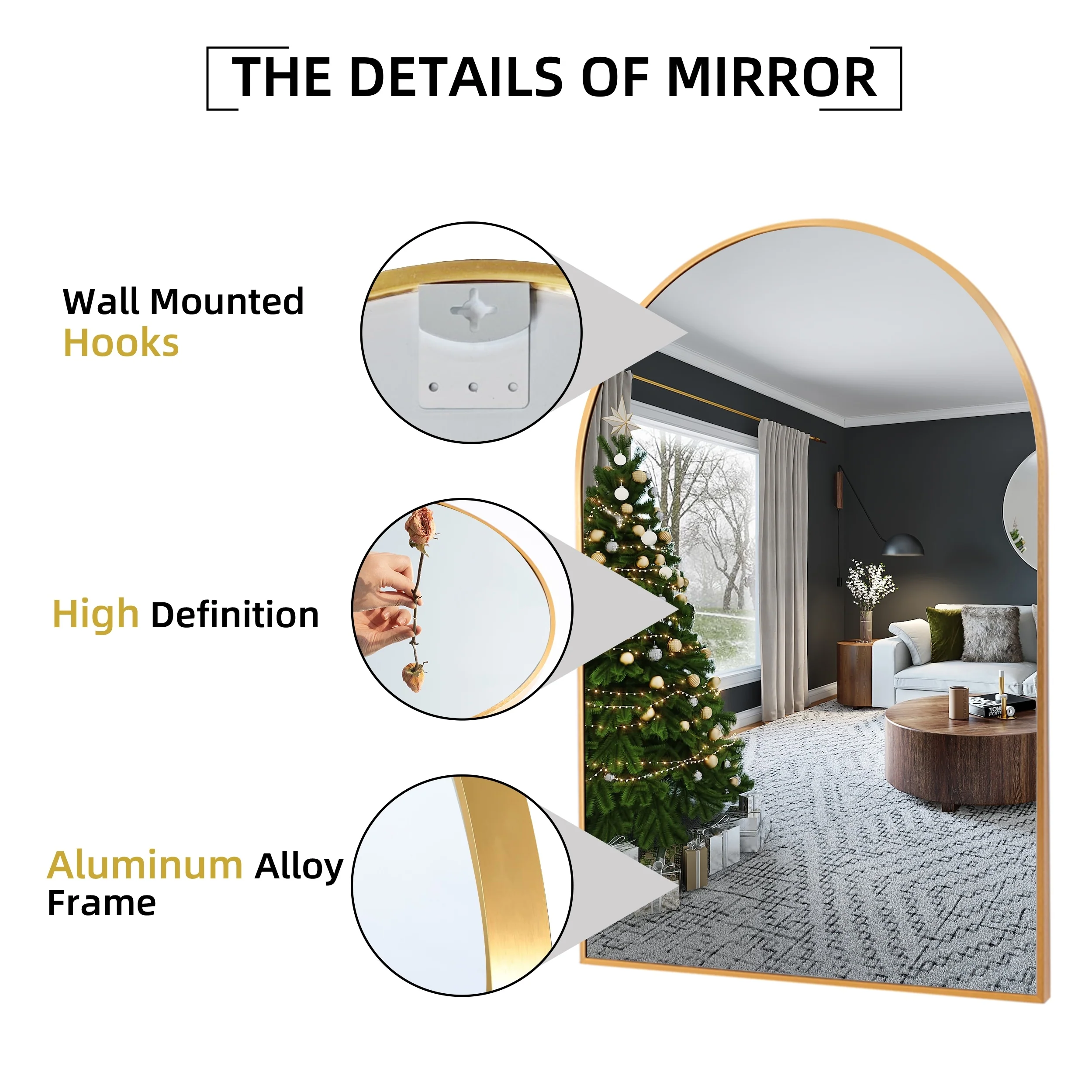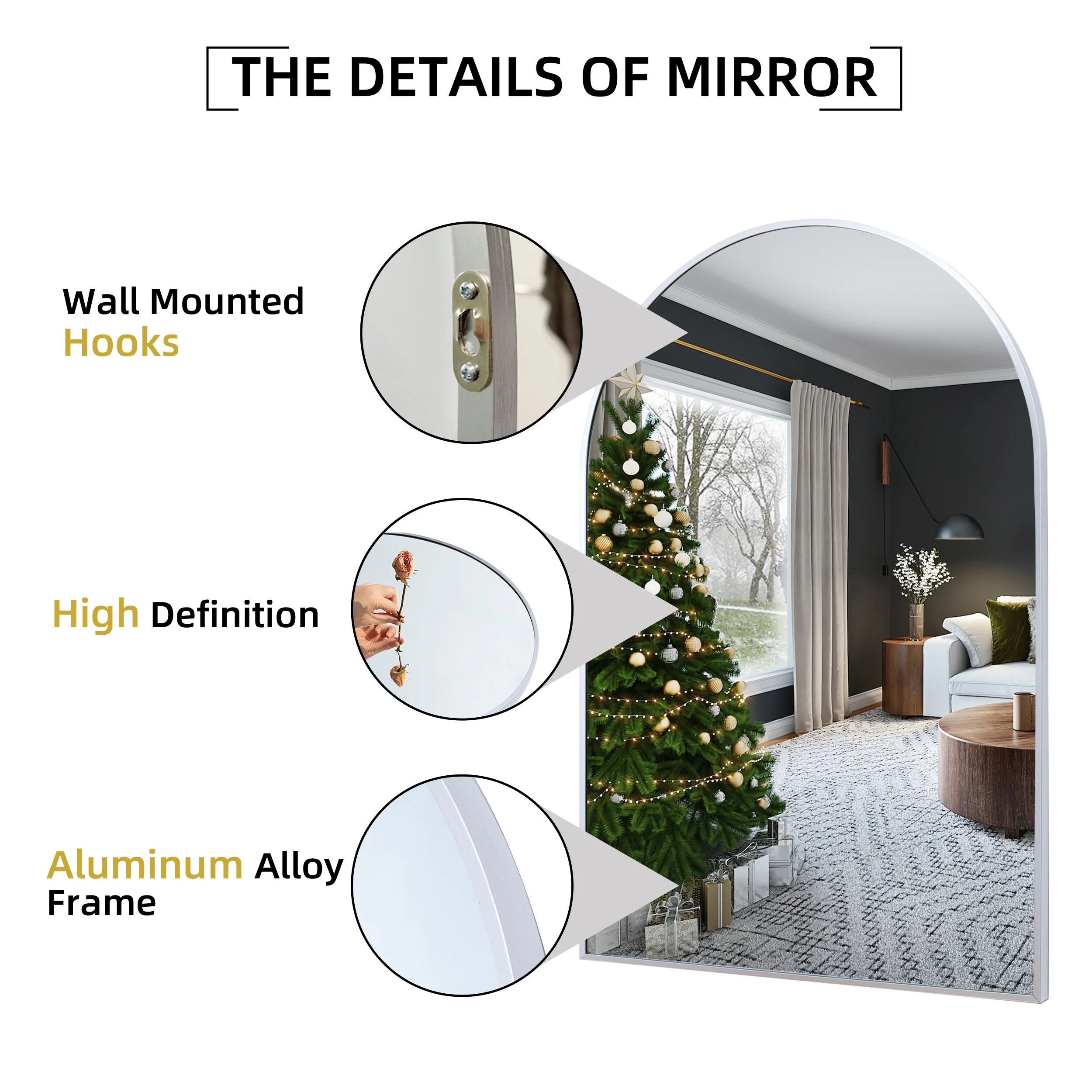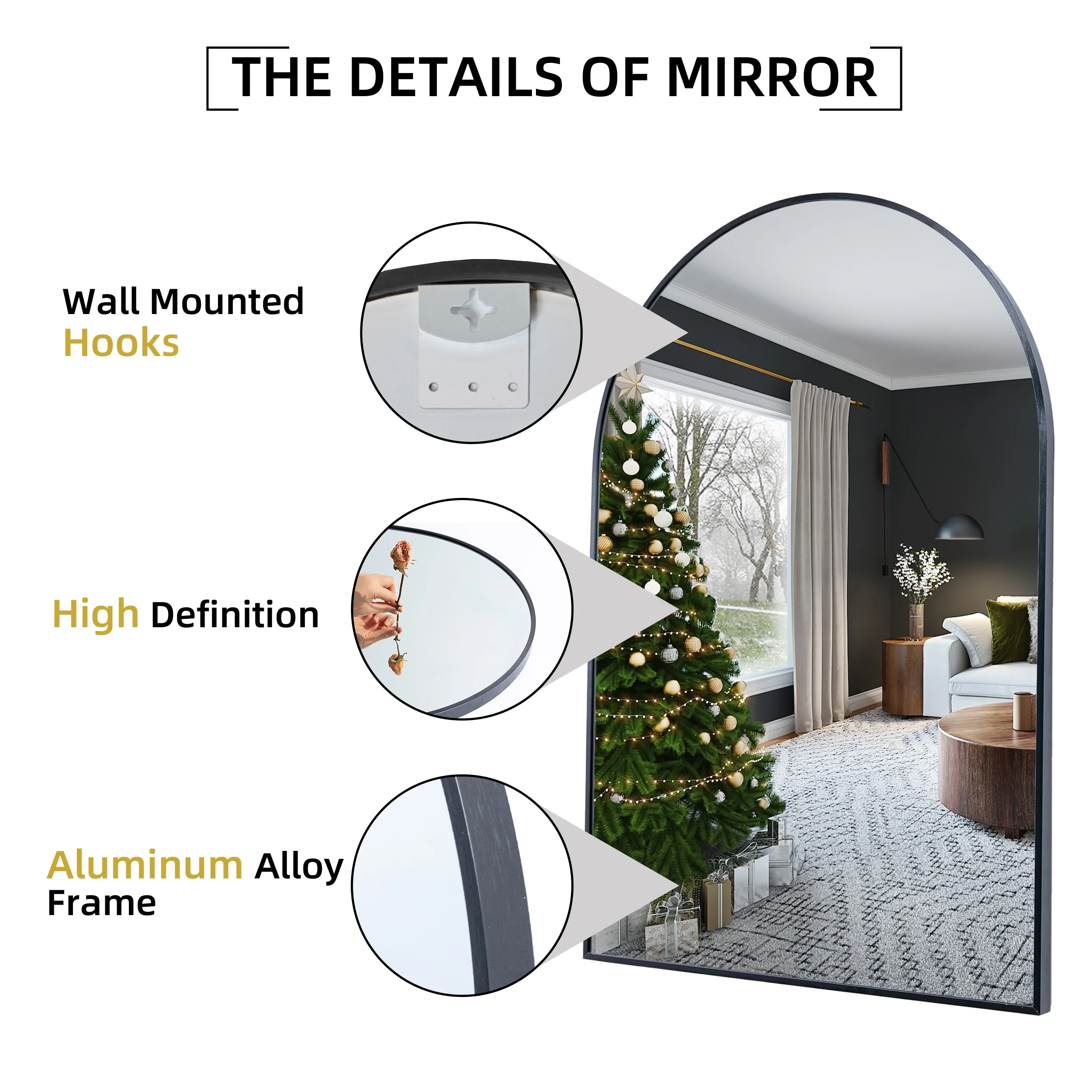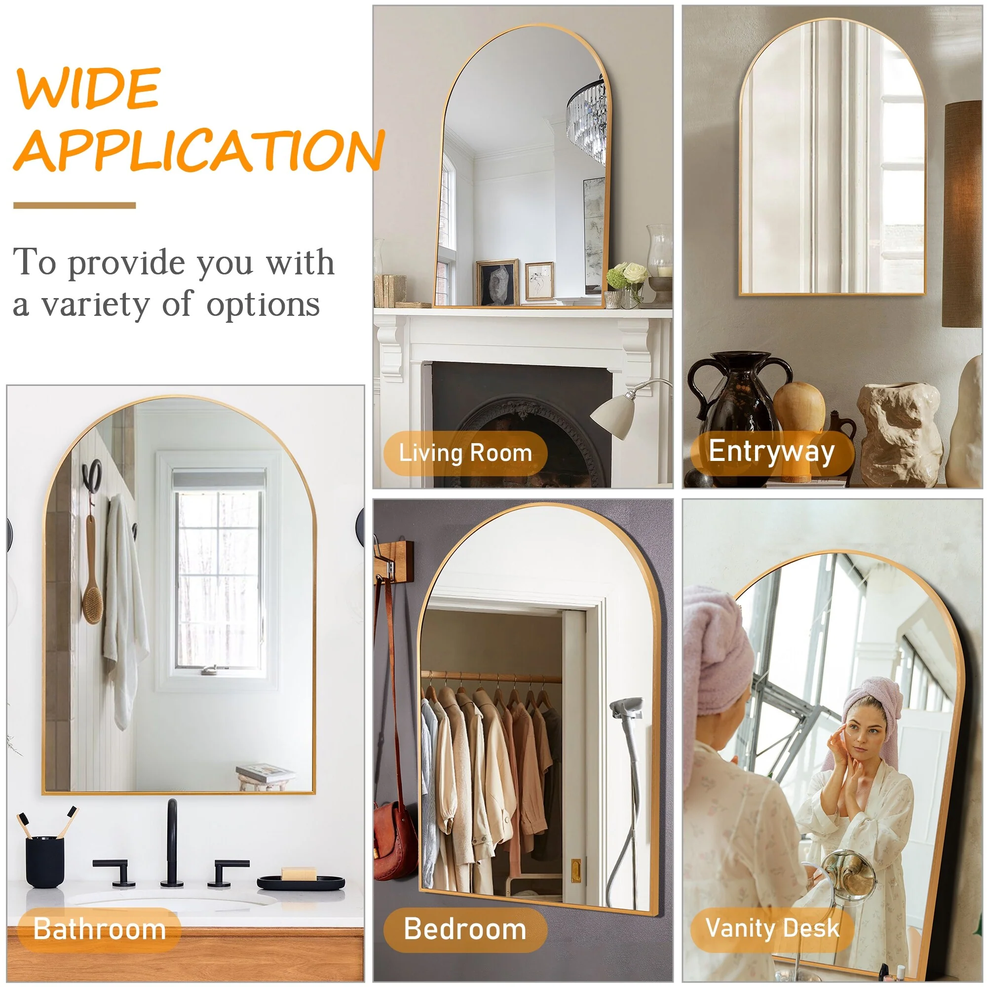 35.9"x 23.9"Arched Bathroom Mirror,Wall Mounted Mirror,Vanity Mirror,for Bedroom,Entryway