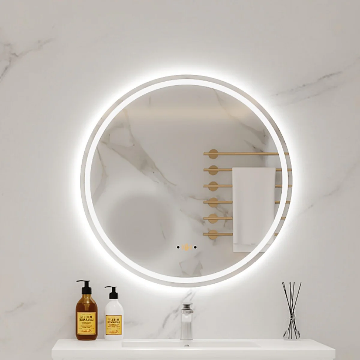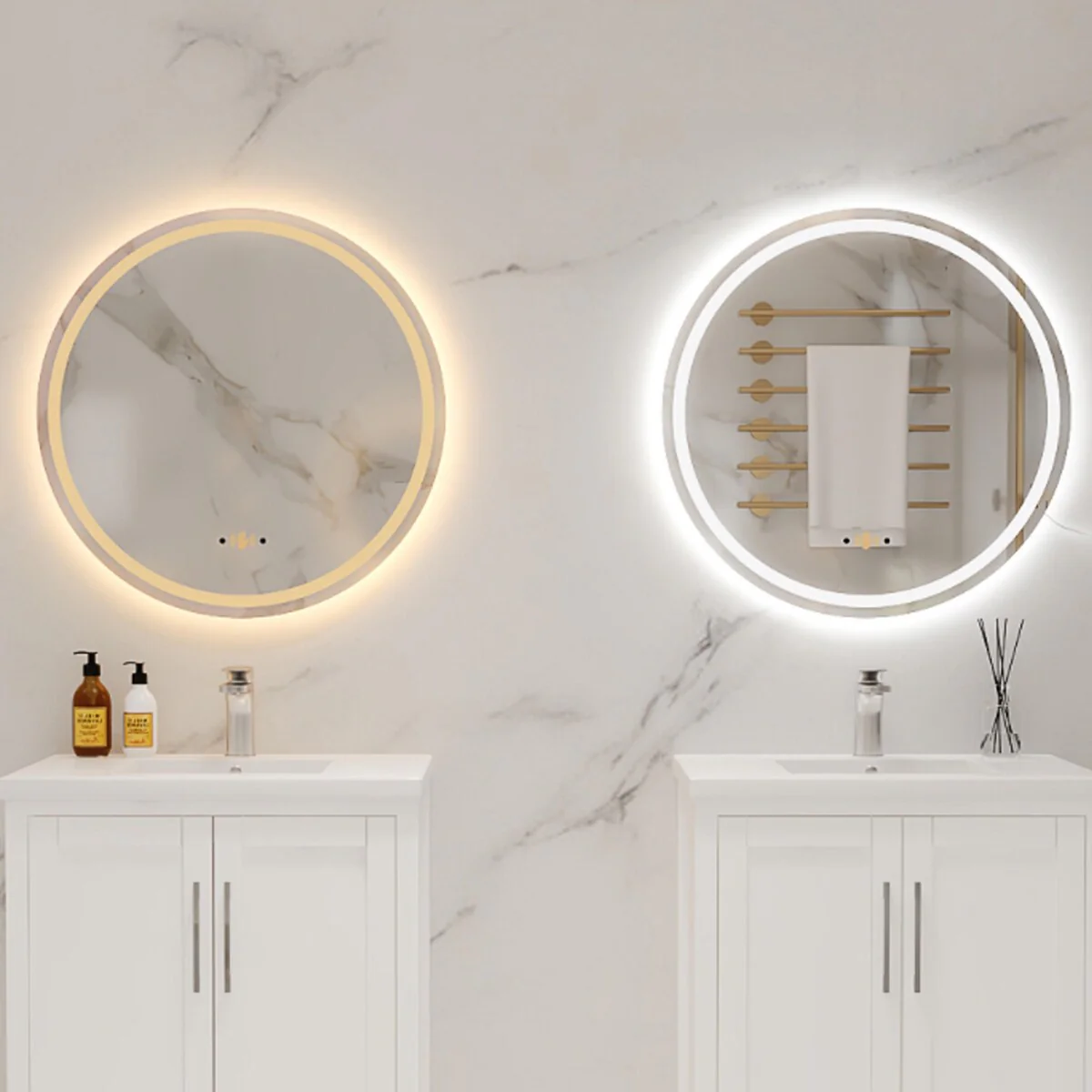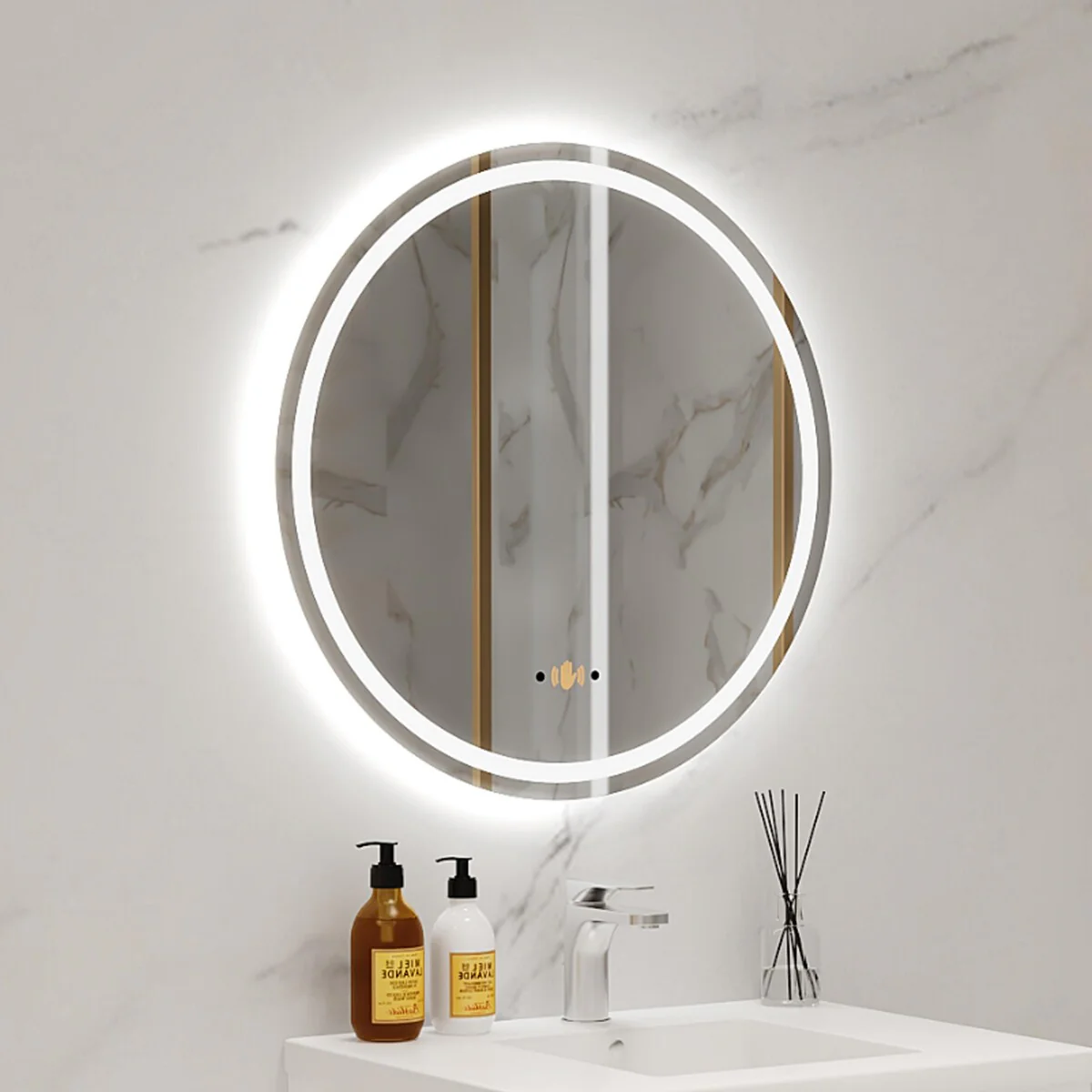 Round Smart LED Bathroom Mirror, 24''/30''/36'' Lighted Wall Mounted Vanity Mirror, Anti-fog, Frameless,Three Color, Dimmable
