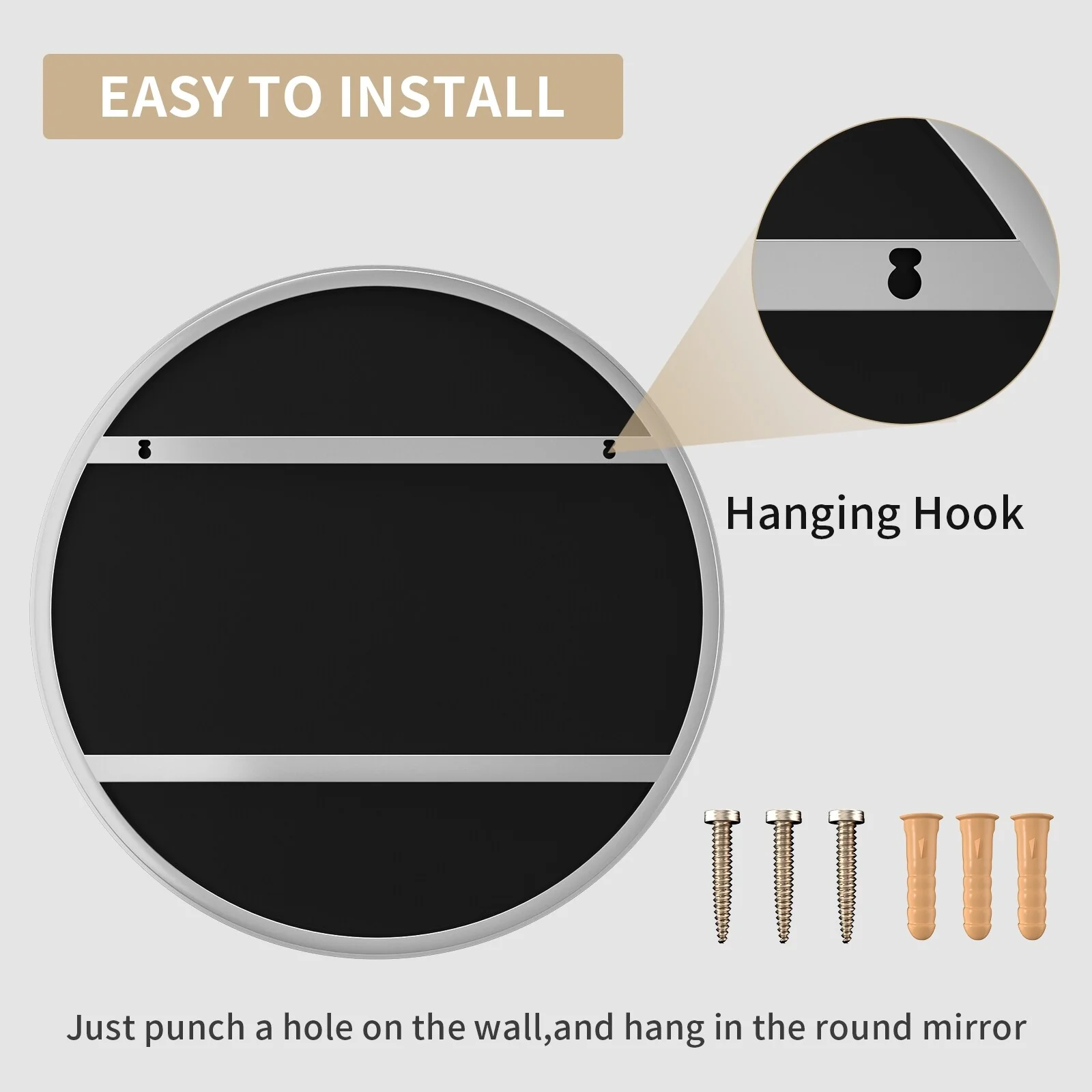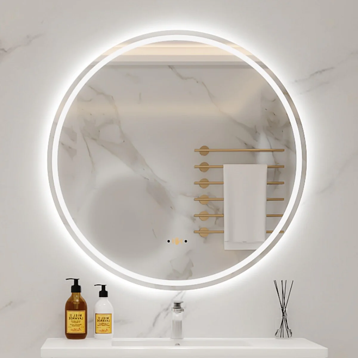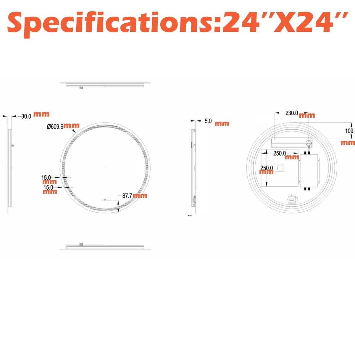 Round Smart LED Bathroom Mirror, 24''/30''/36'' Lighted Wall Mounted Vanity Mirror, Anti-fog, Frameless,Three Color, Dimmable