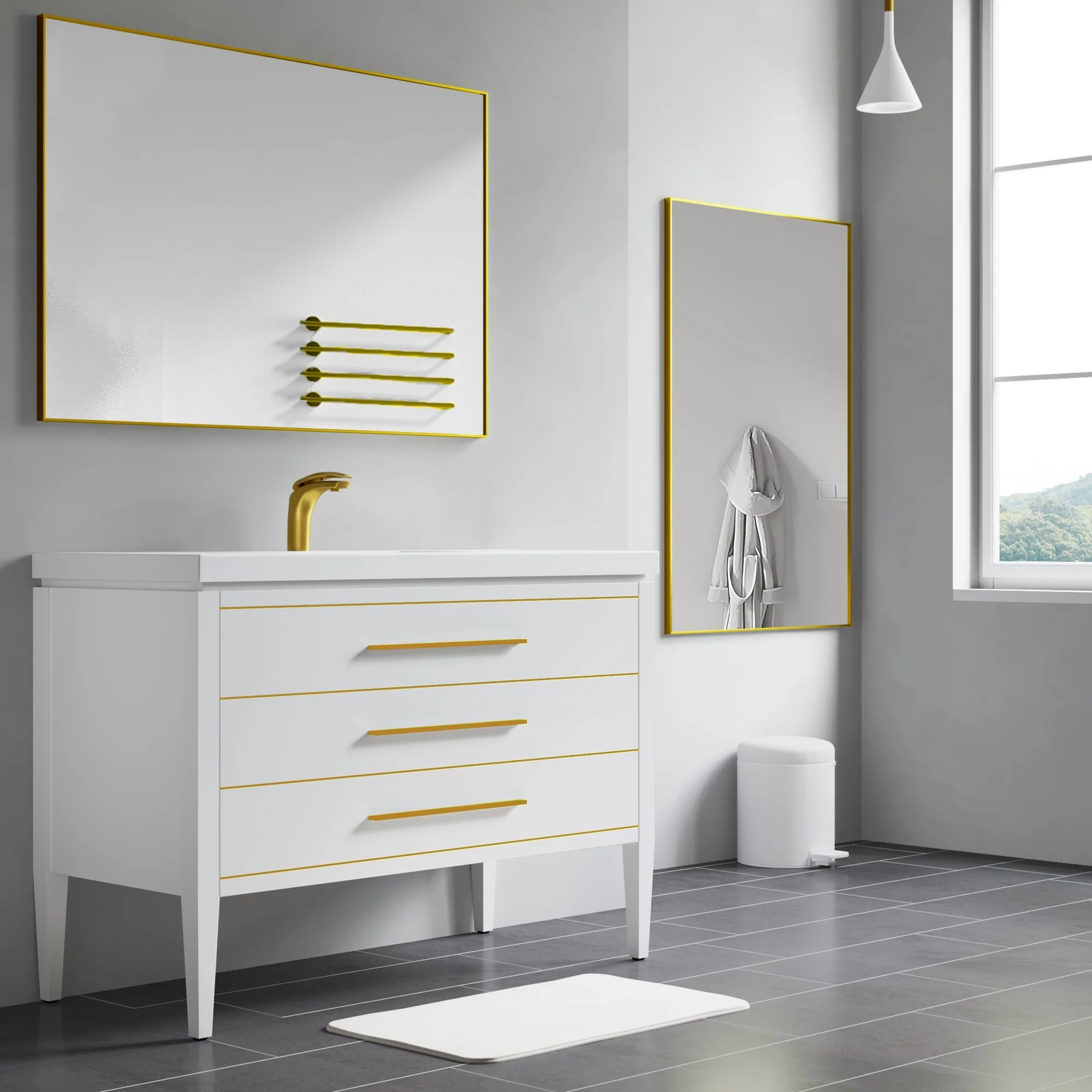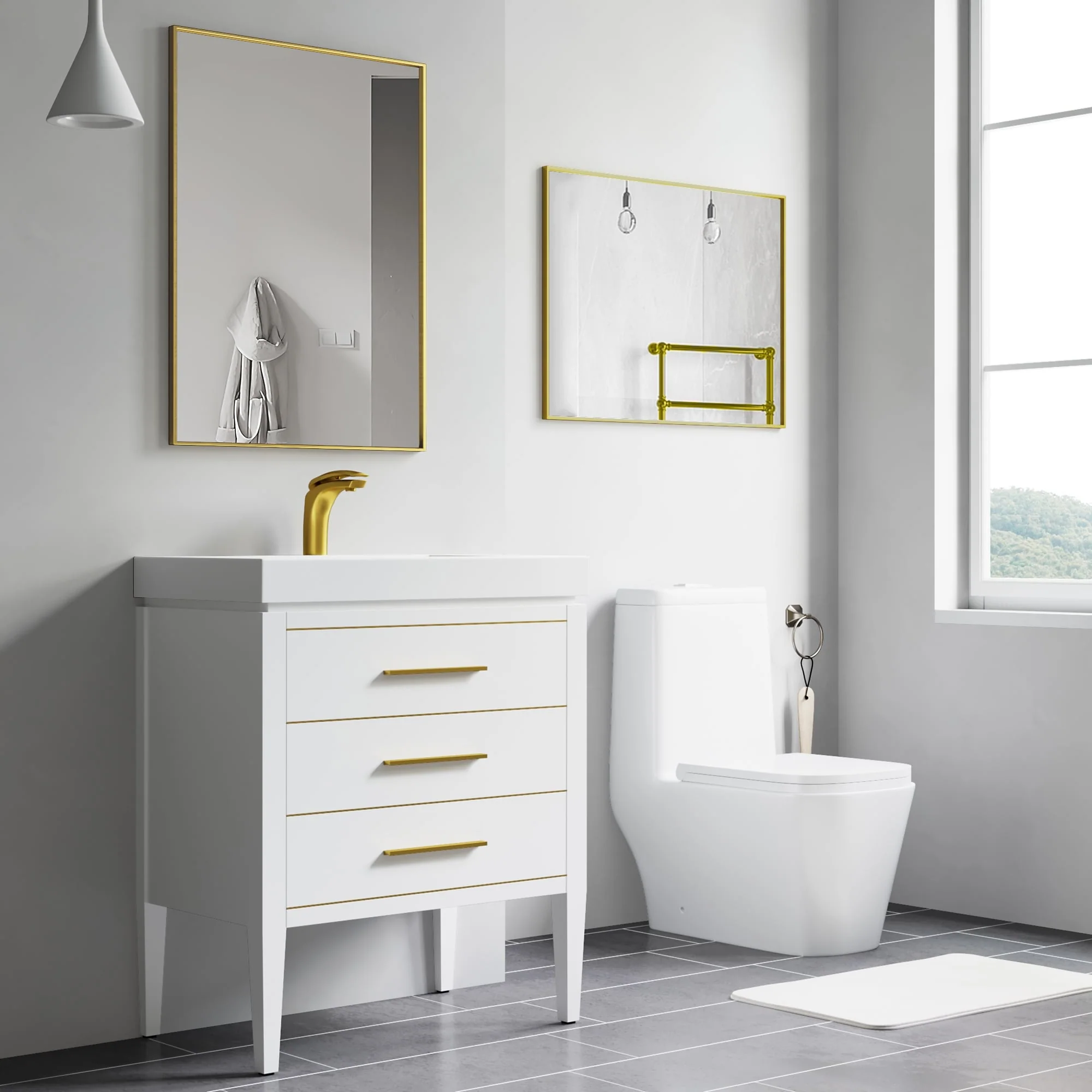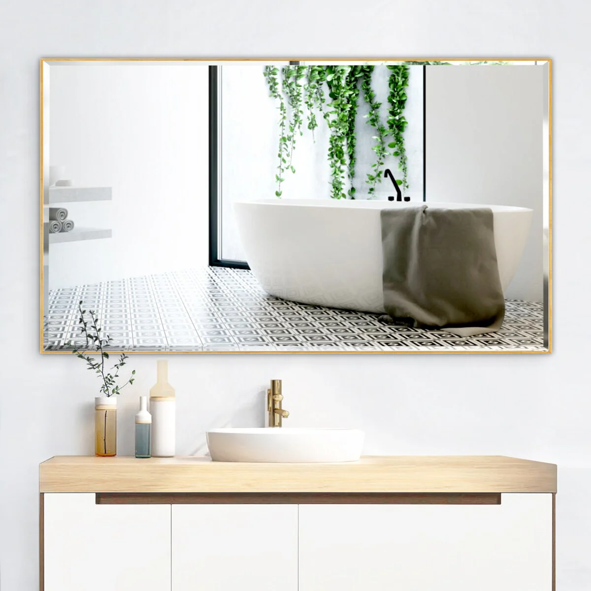 30-in Modern Simply Gold Rectangular Decorative Wall Bathroom Vanity Mirror