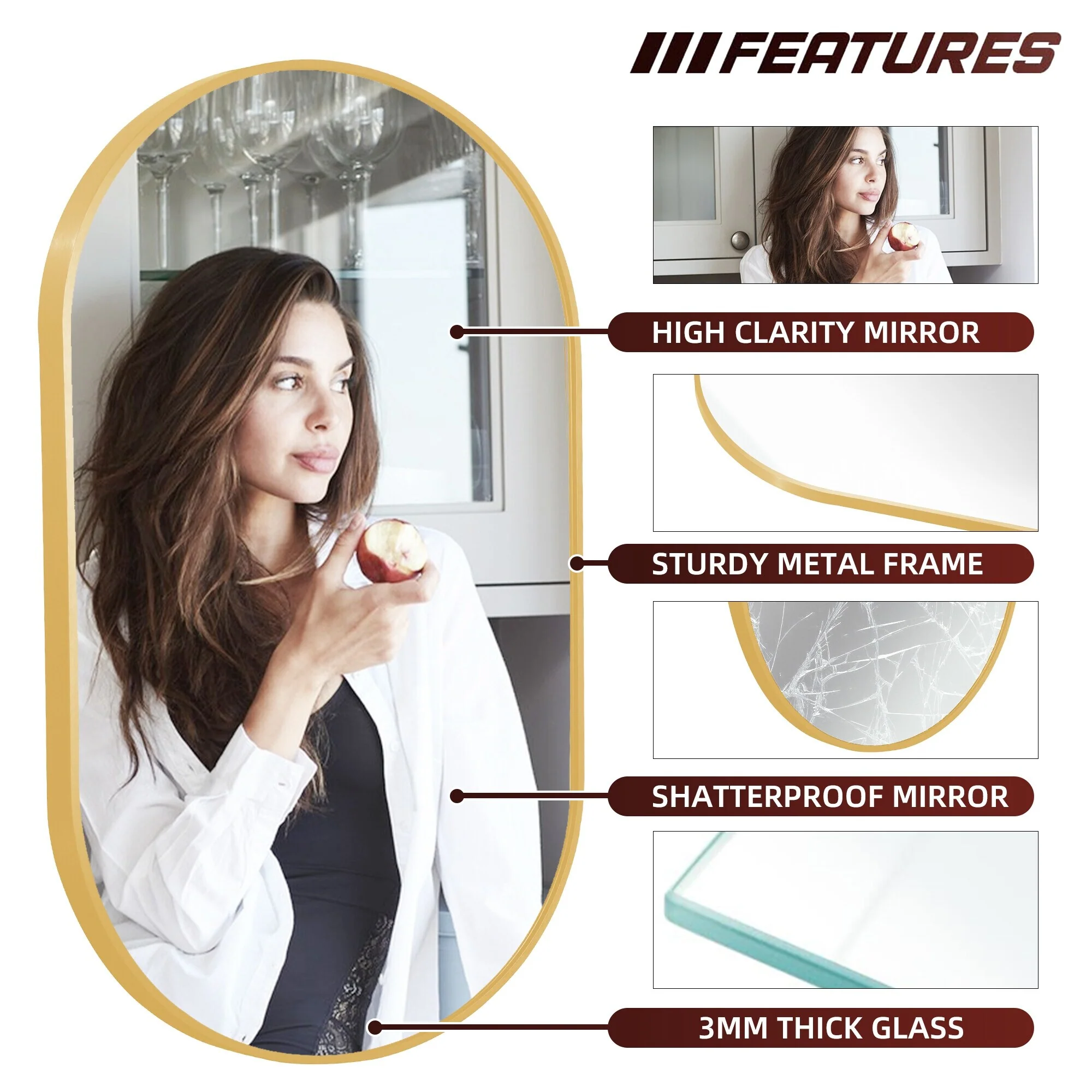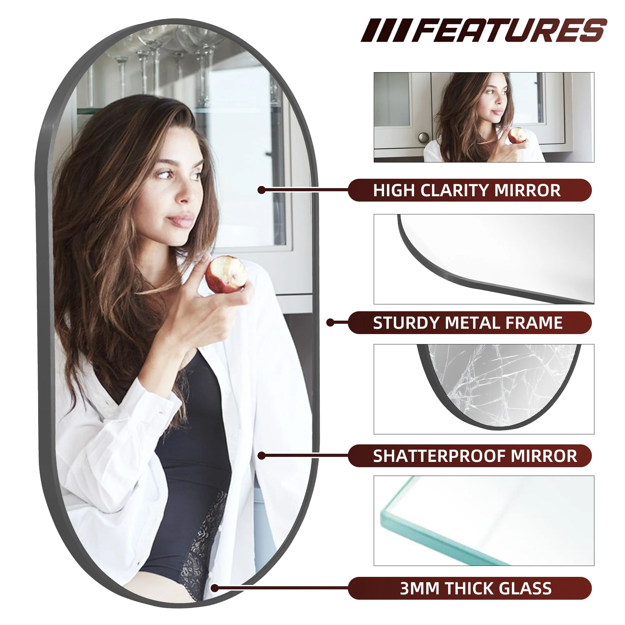 TokeShimi Modern Metal Frame Bathroom Vanity Wall Mirror
