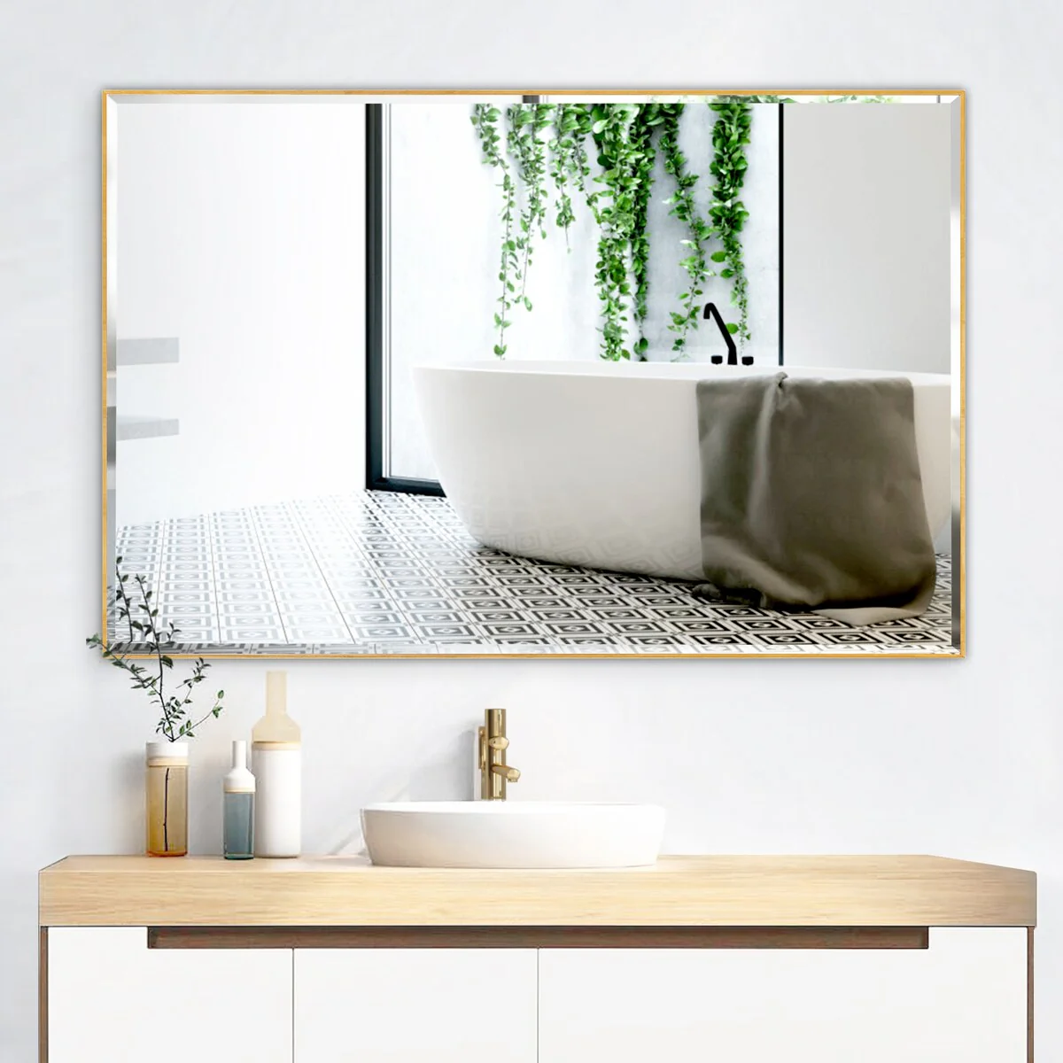 Rectangle Metal Framed Beveled Edge Bathroom Vanity Mirror