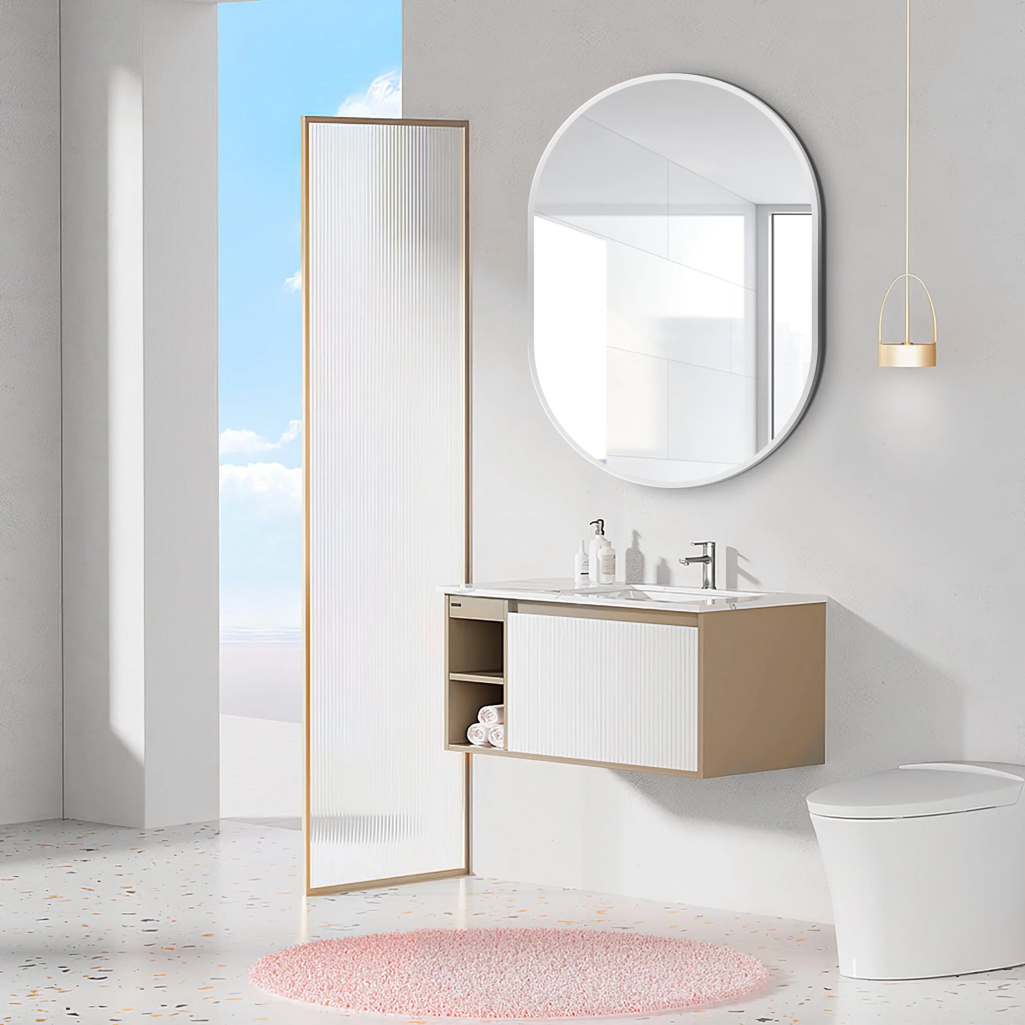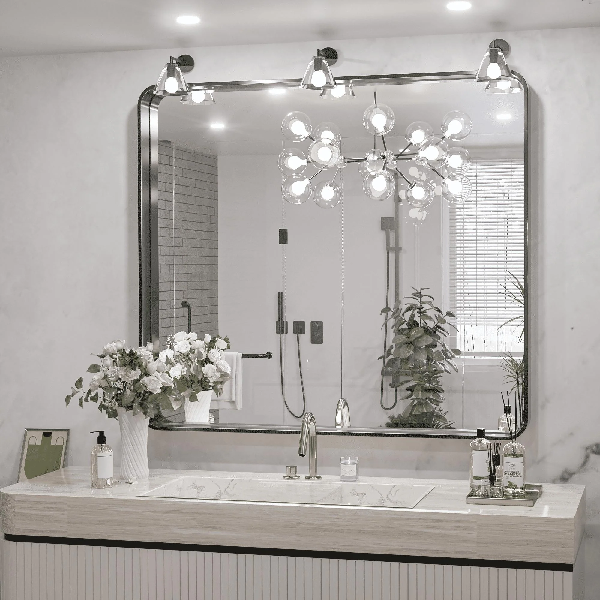 Wall Mounted Bathroom Mirror with Round Corner