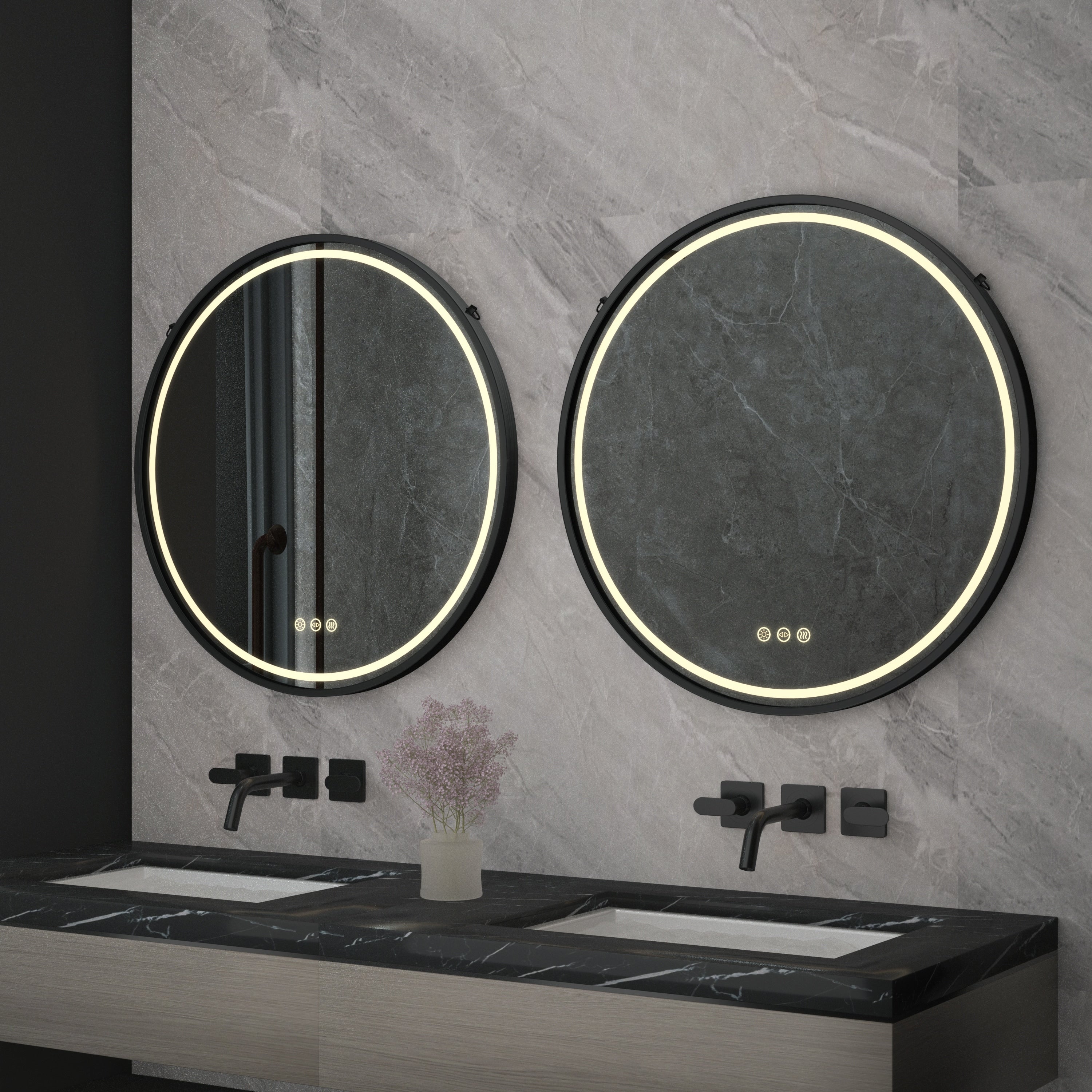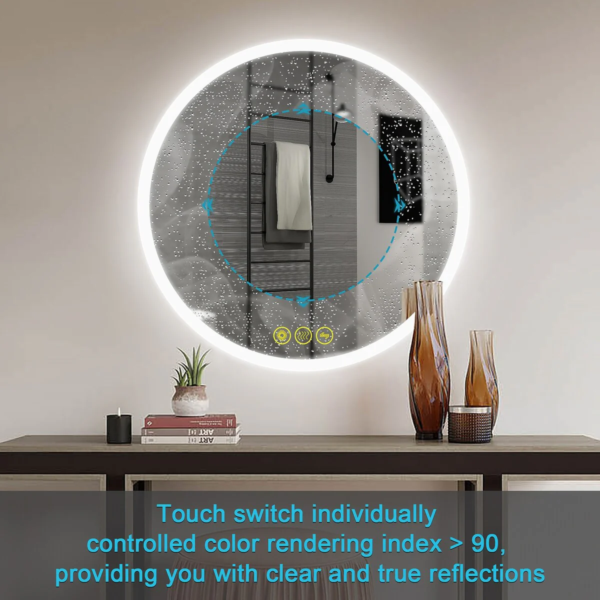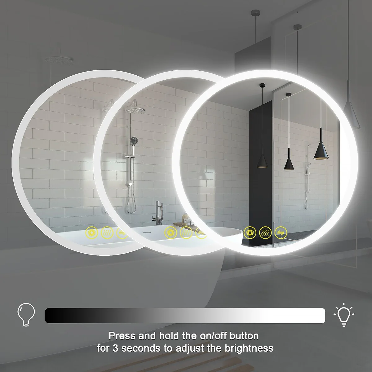 Smart Round LED Bathroom Mirror Light Frame Defogger Dimmable 3 Color
