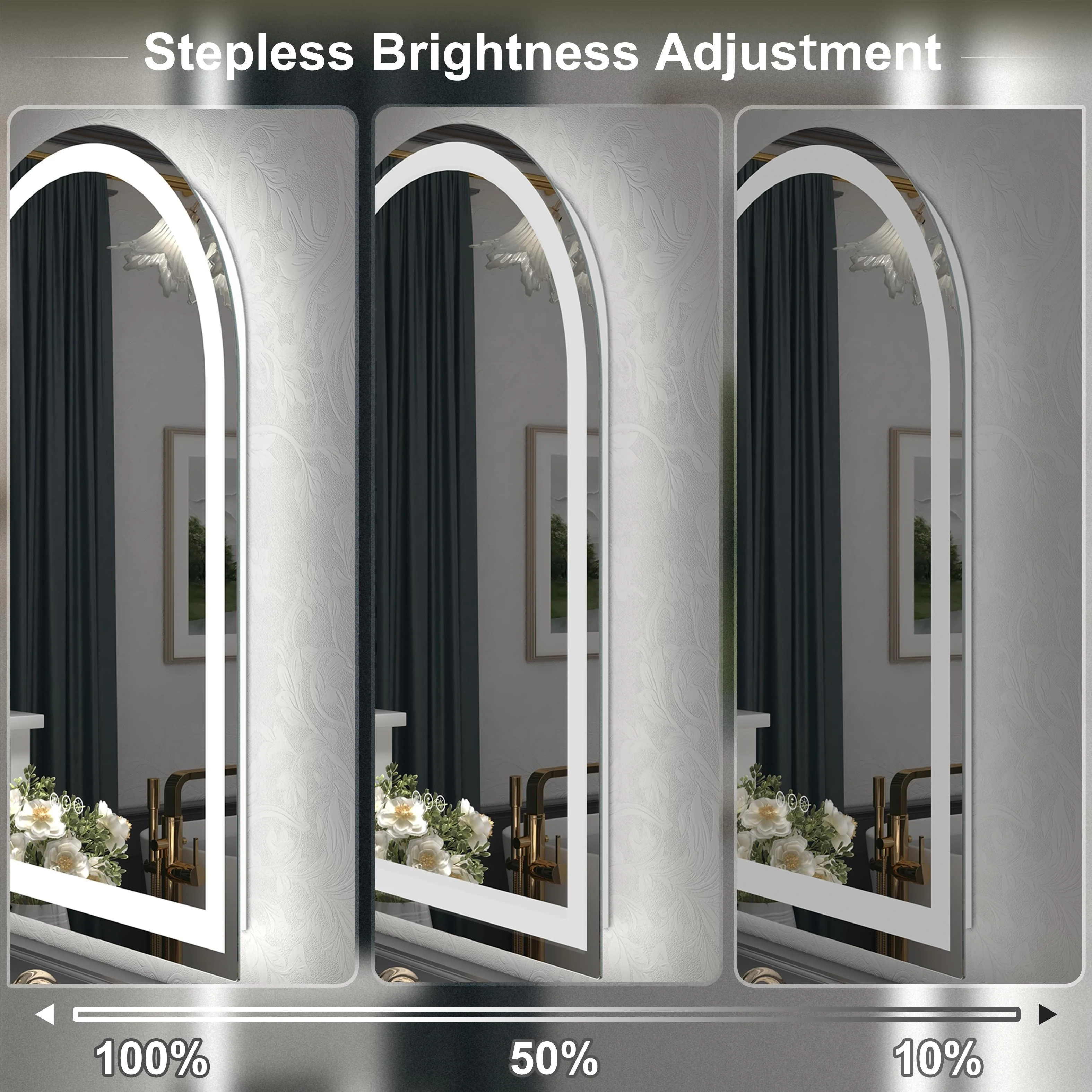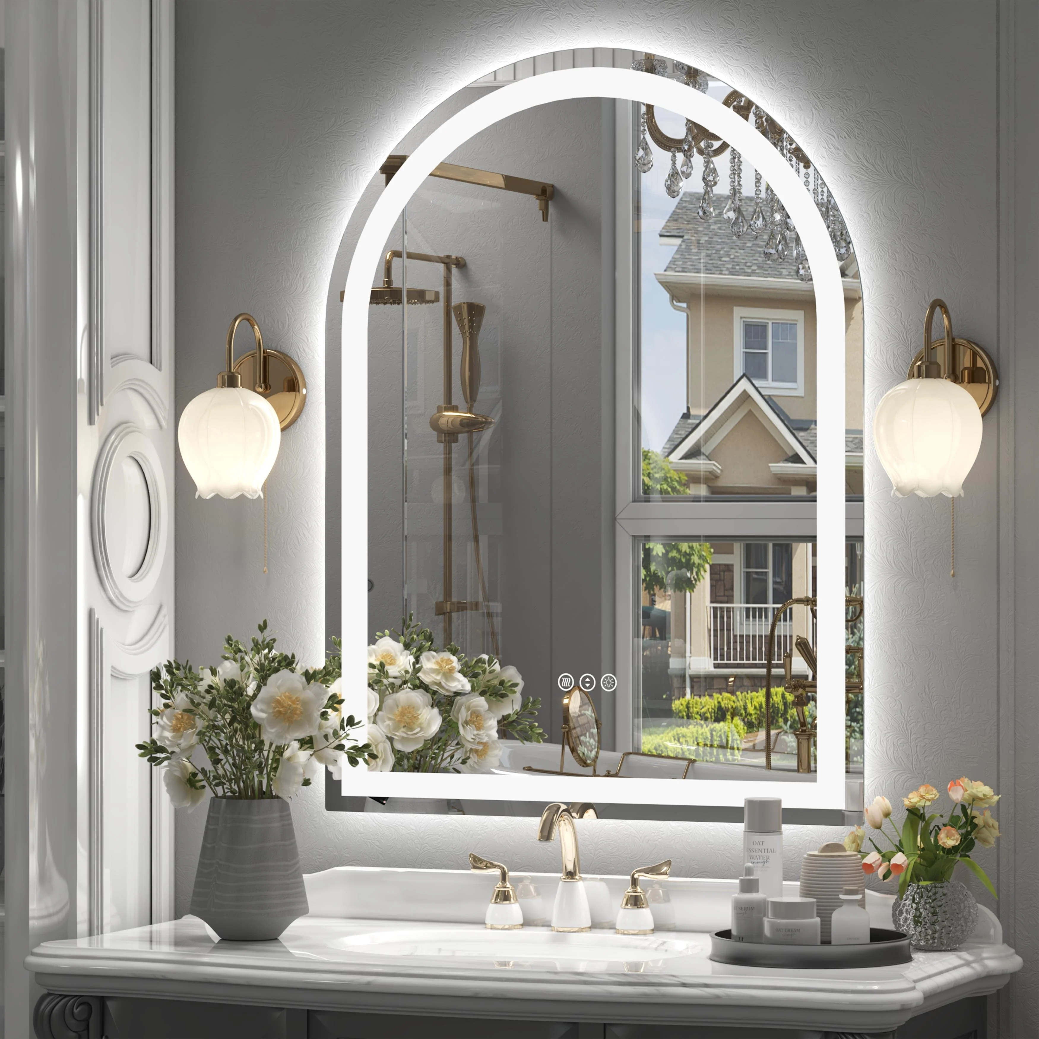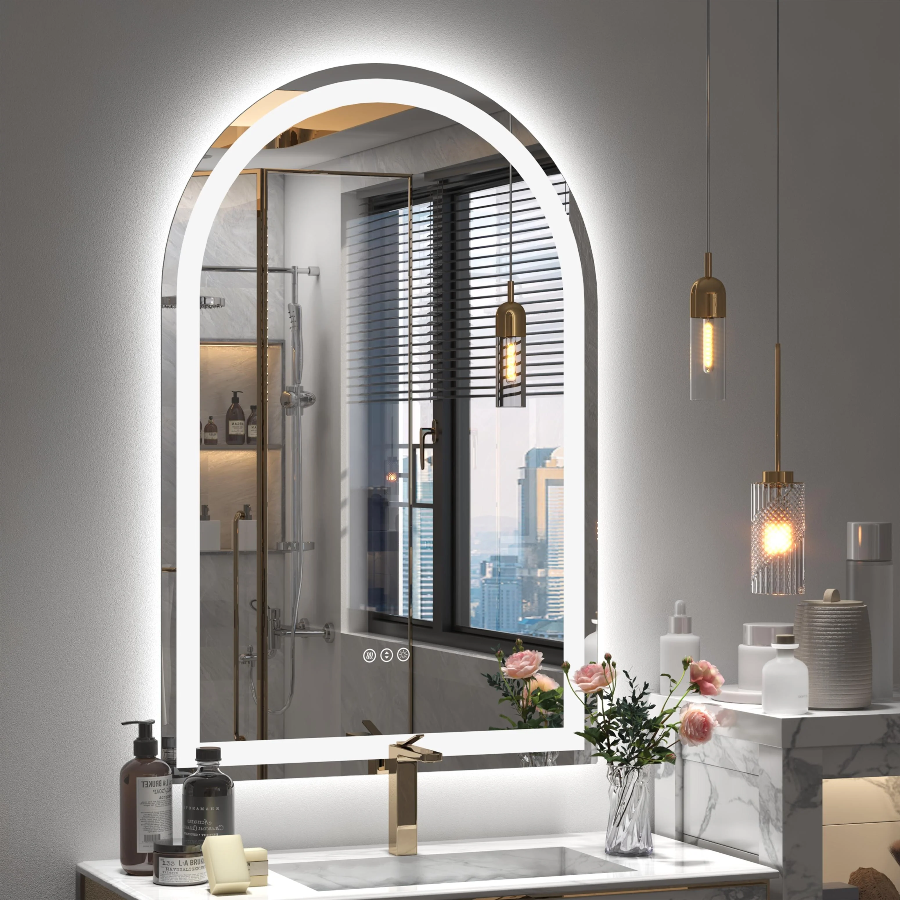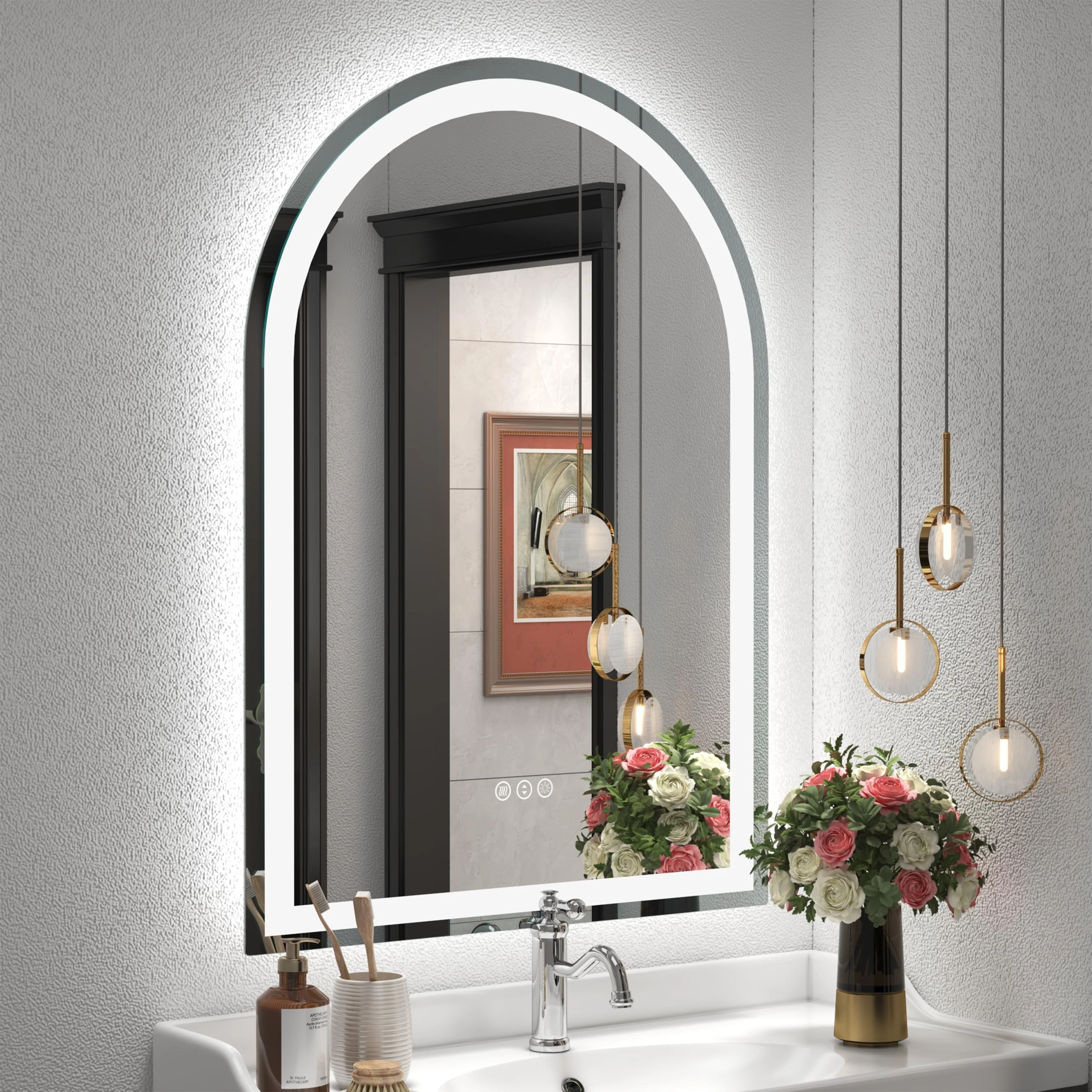 Smart Round LED Bathroom Mirror Light Frame Defogger Dimmable 3 Color